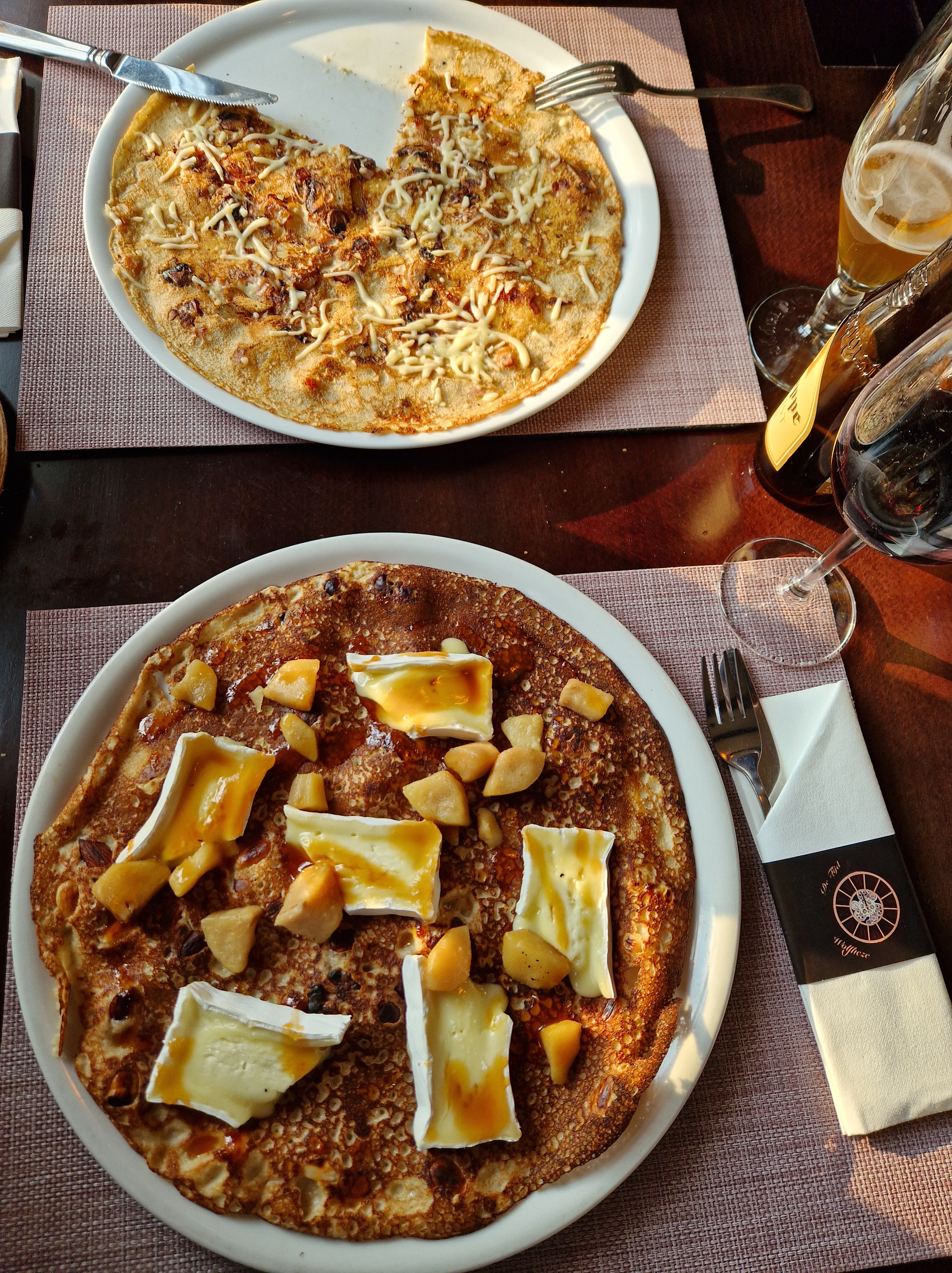 In Wolfheze, bij restaurant De Tijd, dineren we in de zon met pannenkoeken. Ik heb er eentje met brie, peer en veel te veel noten. Lekker maar veel te machtig. Terug bij het hotel moeten we de laatste meters ineens rénnen, het onweer barst met grote hagelstenen los. Ze roffelen op de dakkapel, begeleid door flitslichten. Wij zitten hoog en droog, knus alsof we in de tent zitten. Ravi, bekaf van de oerwoud avonturen, slaapt.