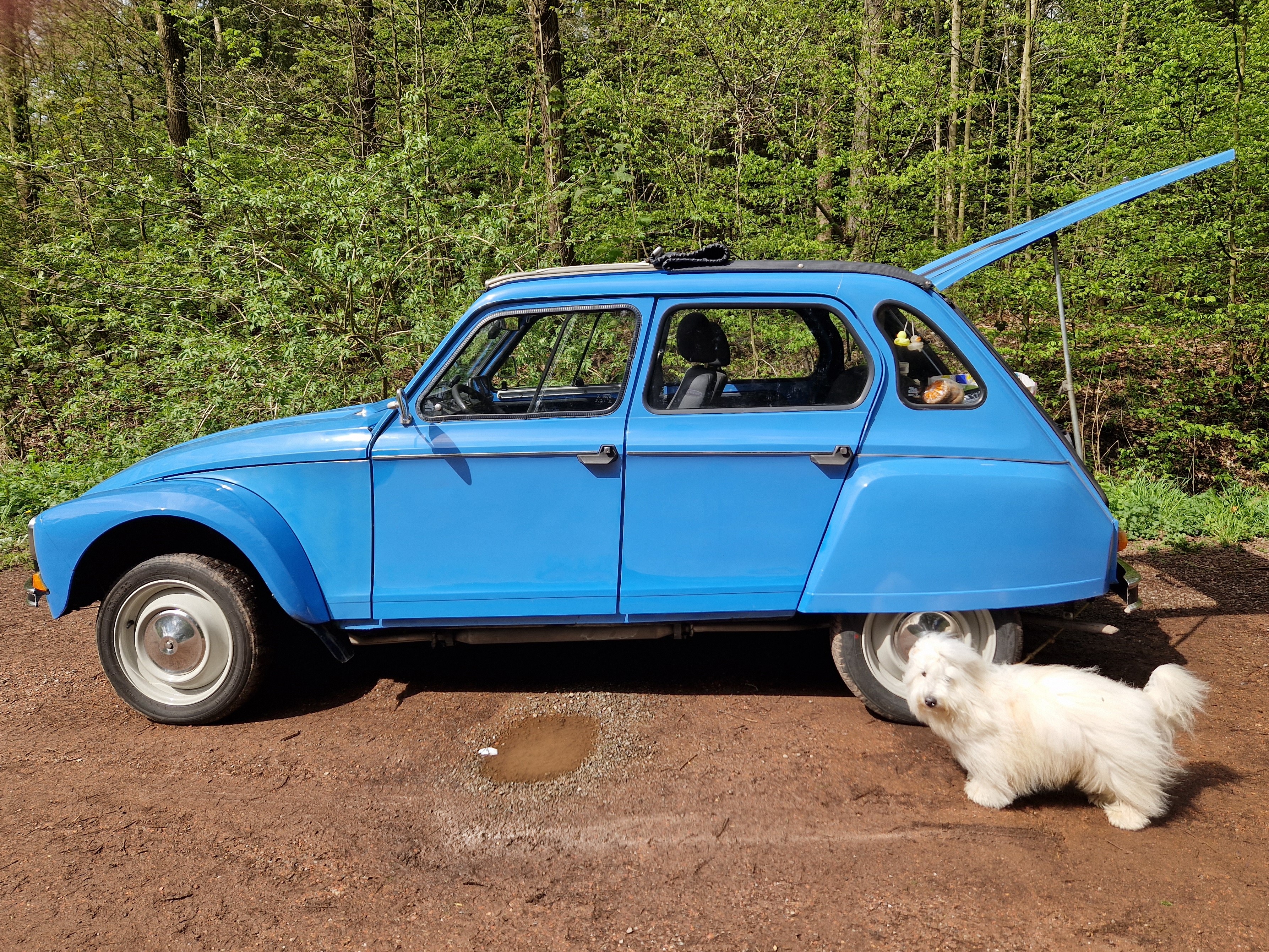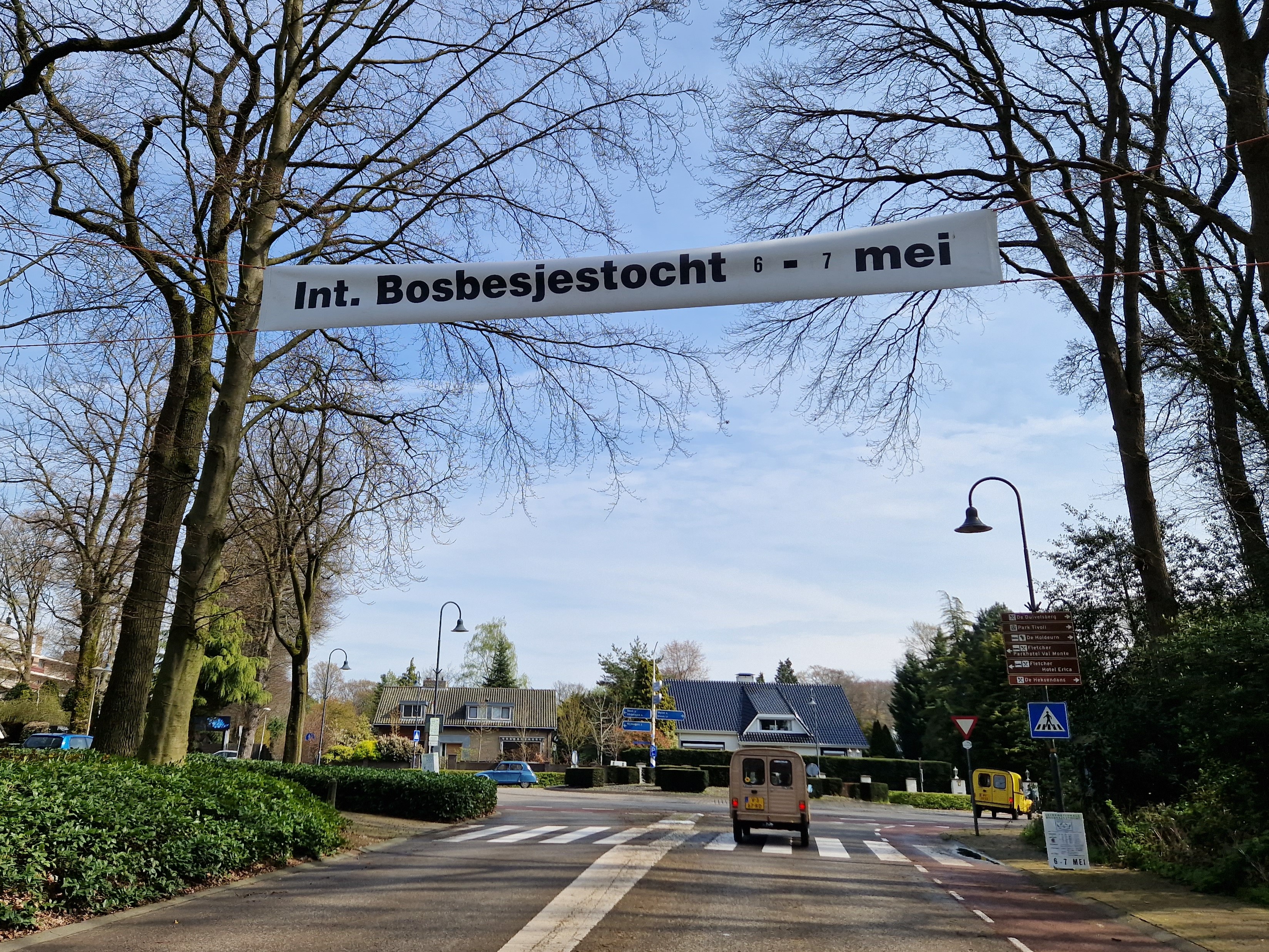 Zowel de Dyane Vereniging Nederland (DVN) als de 2CV Club Nederland heeft een tocht uitgezet. De één op zaterdag en de andere op zondag zodat we ze allebei kunnen doen. We hebben het ons bekende, midden in het bos gelegen, Bilderberg-hotel in Beekbergen geboekt voor twee nachten. Weersverwachting: huilen met de plu op. We gaan het wel zien, Ravi heeft er in elk geval zin in.
