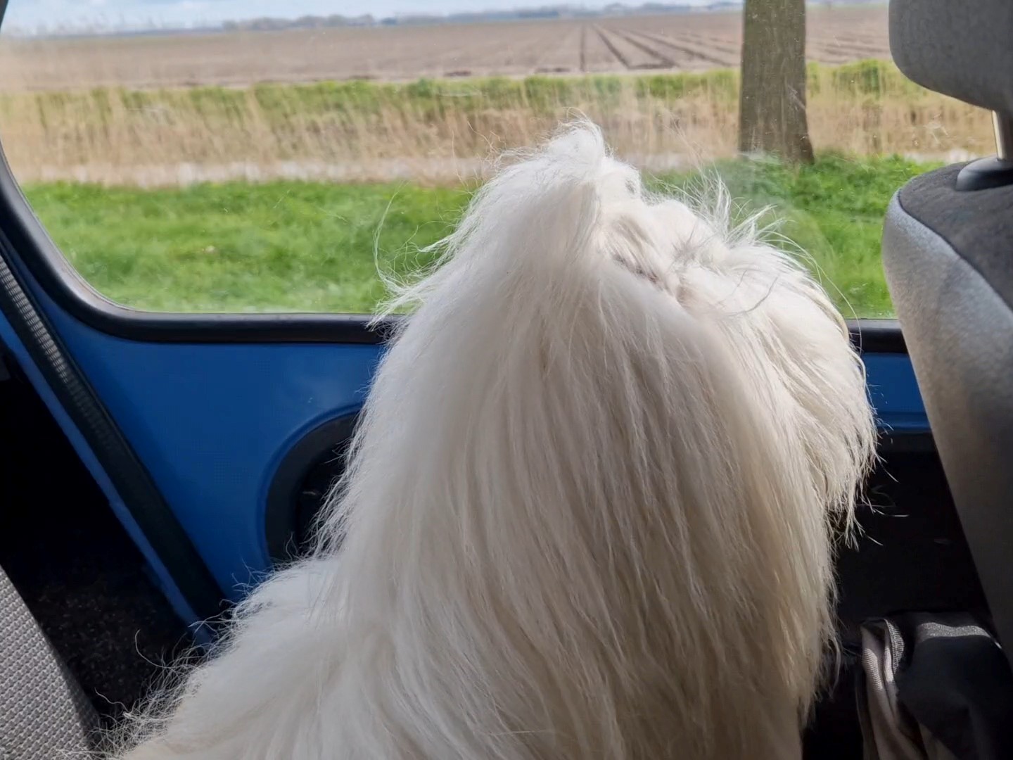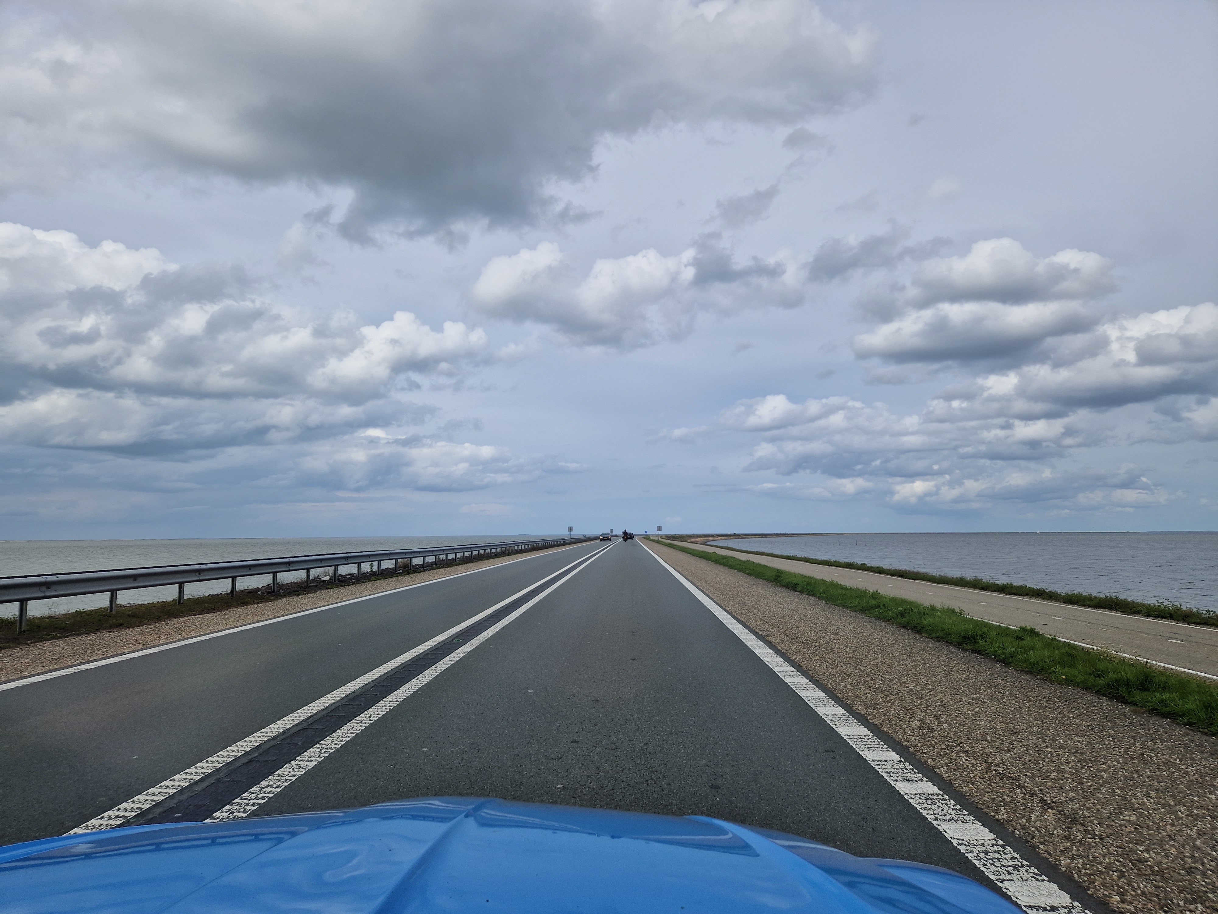 Jas uit, zonnebril op en we zijn weg. Na de brug over de IJssel komen we in de polder en zoals je weet waait het in de 20e-eeuwse polders áltijd. Hard….