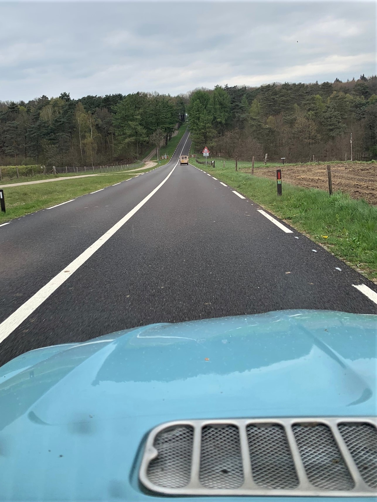 Via de N247 naar Amsterdam, A10, A1 en bij Bussum van de snelweg af. Soest-Amersfoort-Leusden-Woudenberg-Scherpenzeel. We passeren zelfs Ederveen waar het clubhonk van de 2CV Club zich bevindt. We zijn al dik twee uur onderweg, een “op-en-neertje naar het magazijn” is voor ons niet zo vanzelfsprekend. Verder via Ede naar Wolfheze. Aan de meivakantiefiles, op de wegen die we oversteken, te zien is deze kronkelroute zelfs sneller dan de rechtstreekse snelweg-weg.