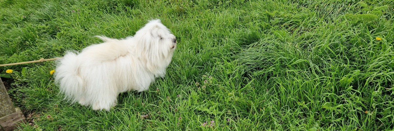 Het duurt wel lang zeg. Geen idee welke routes ze allemaal aflopen om mij te zoeken. Ik had terug naar huis kunnen lopen. Of de gewone weg rechtdoor. Of dwars door en dan langs de huizen. Maar ik zit hier wel goed, laat hen maar zoeken. Het halve dorp door en vast aan iedereen vragen of ze een witte wolbaal hebben gezien. Maar ik zit hier gewoon, te genieten van mijn vrijheid.