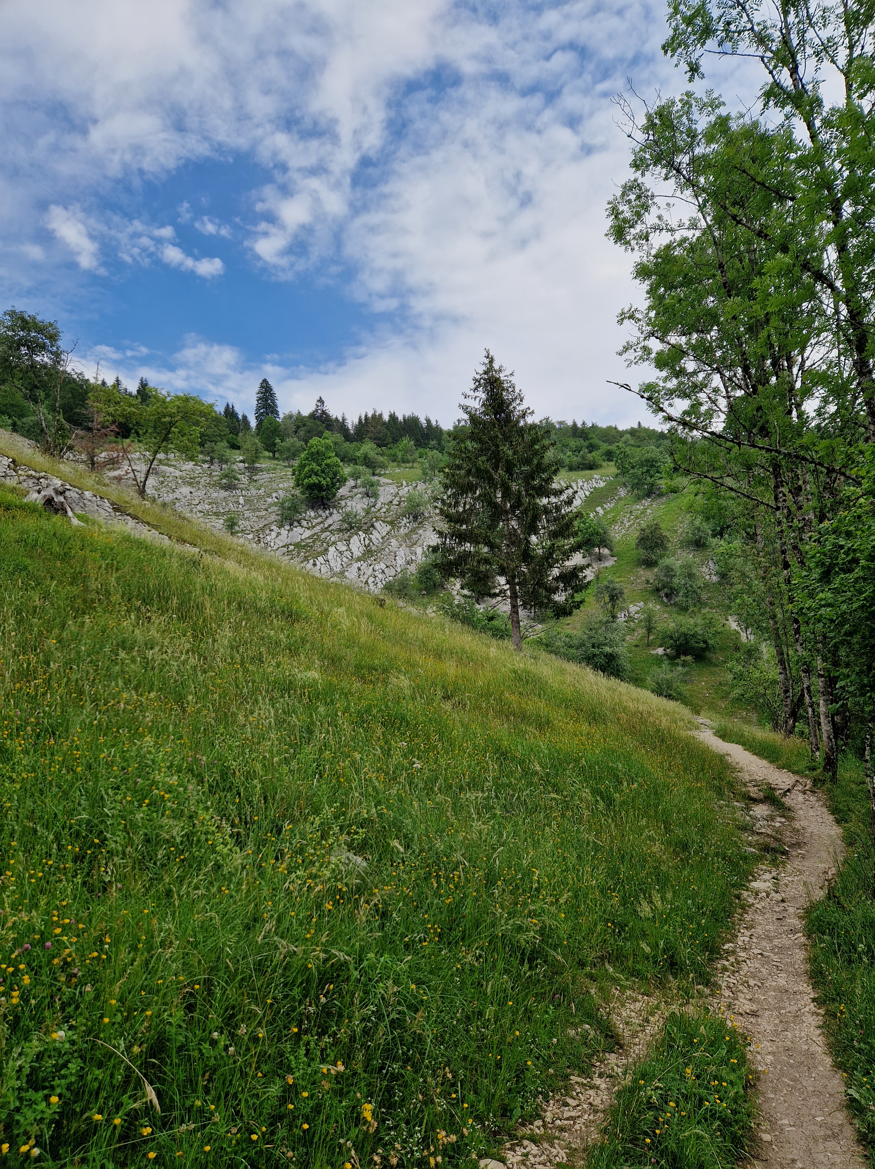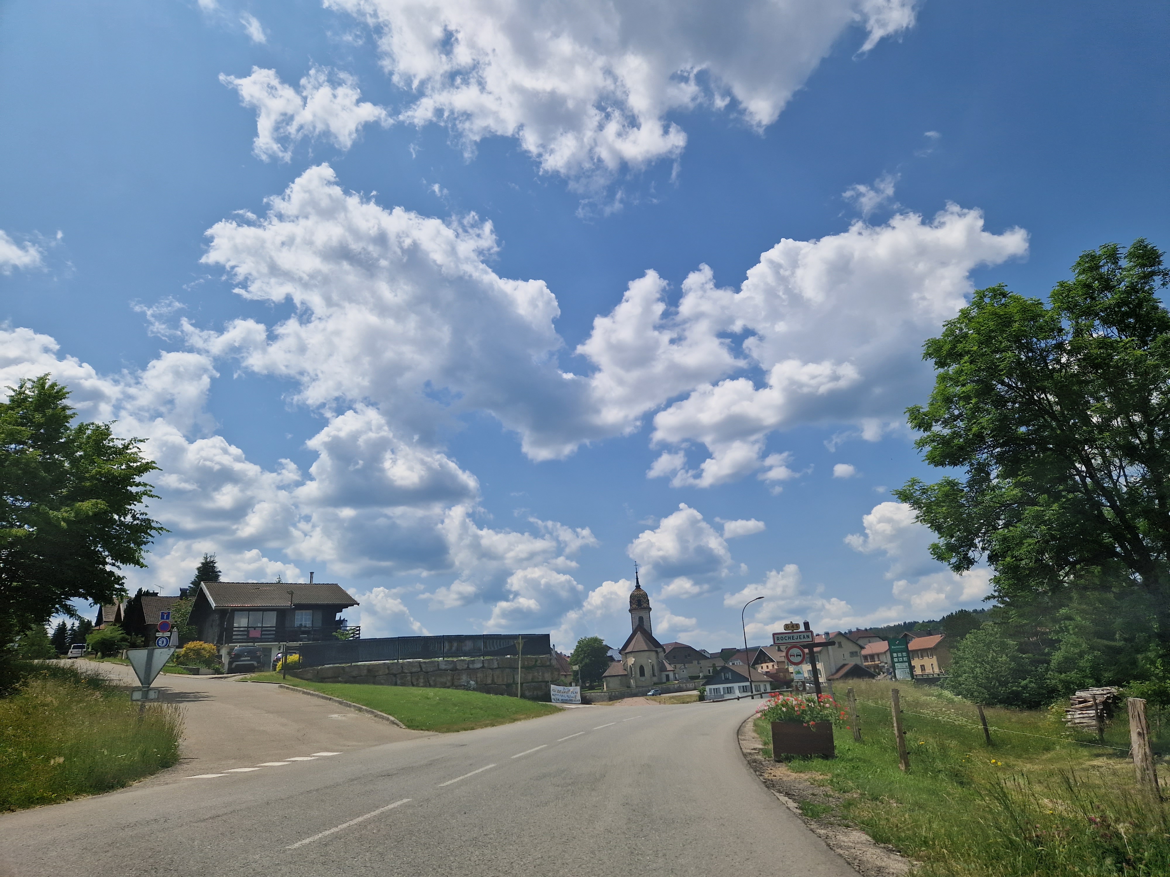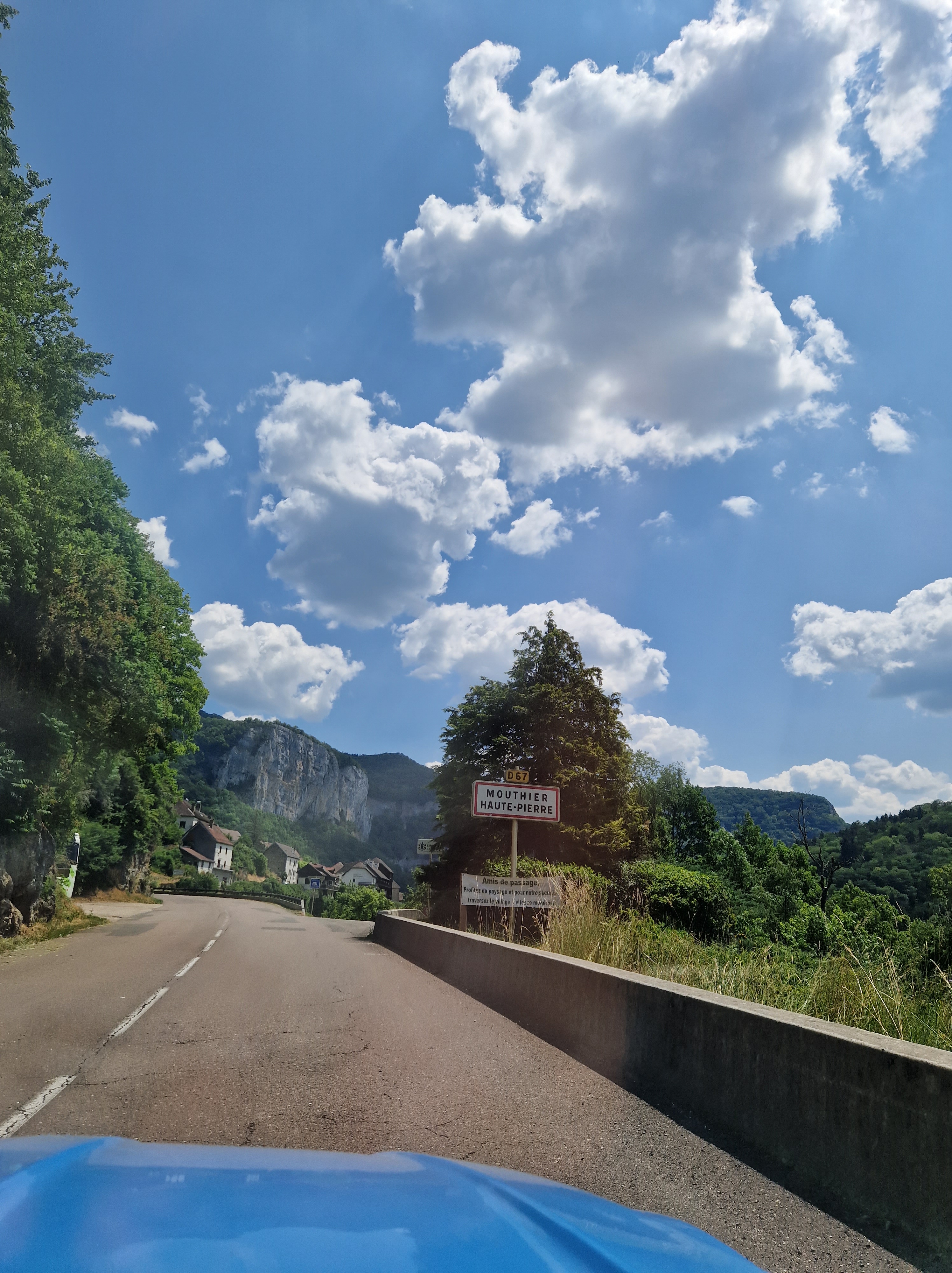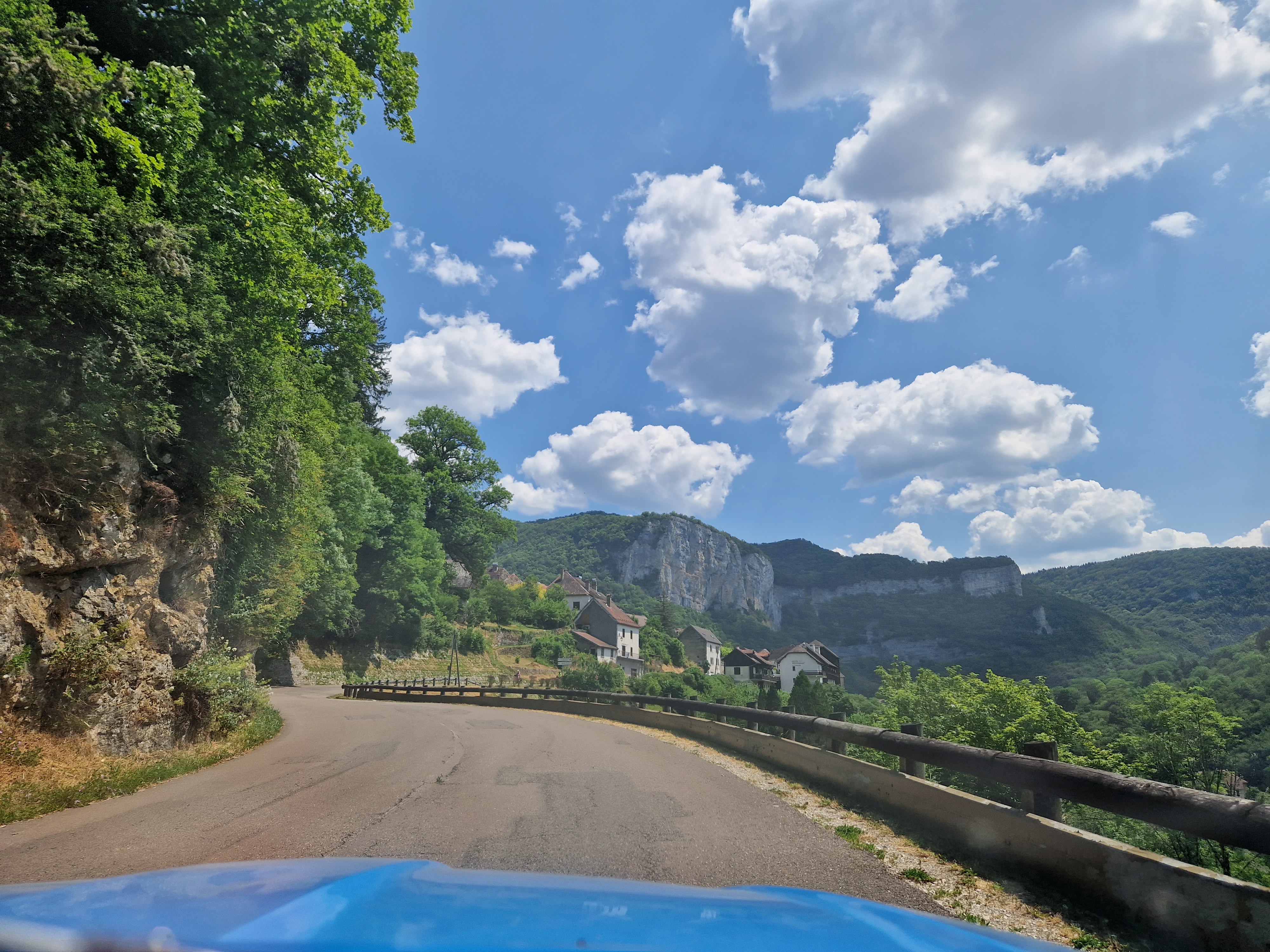 ’s Avonds eten we Indiaas bij Le Rajasthan (mooie porties, precies goed, niet te pittig) op 20 km rijden in Champagnole. De weg ernaartoe kronkelt als een malle. Gijs rijdt pittig door, even lekker scheuren door de bergen omdat er vette audi’s achter hem zitten te drammen. Ik hang ondertussen in de ankers. Voor de terugweg krijgen we een andere route voorgeschoteld, iets langer maar sneller. Ook mooi. Steile rotswanden, uit een kloof groeit een bloeiende gouden regen. Watervalletje langs de stenen, bloemetjes in de bermen, afgetopt met die eeuwige hoge bomen overal.
