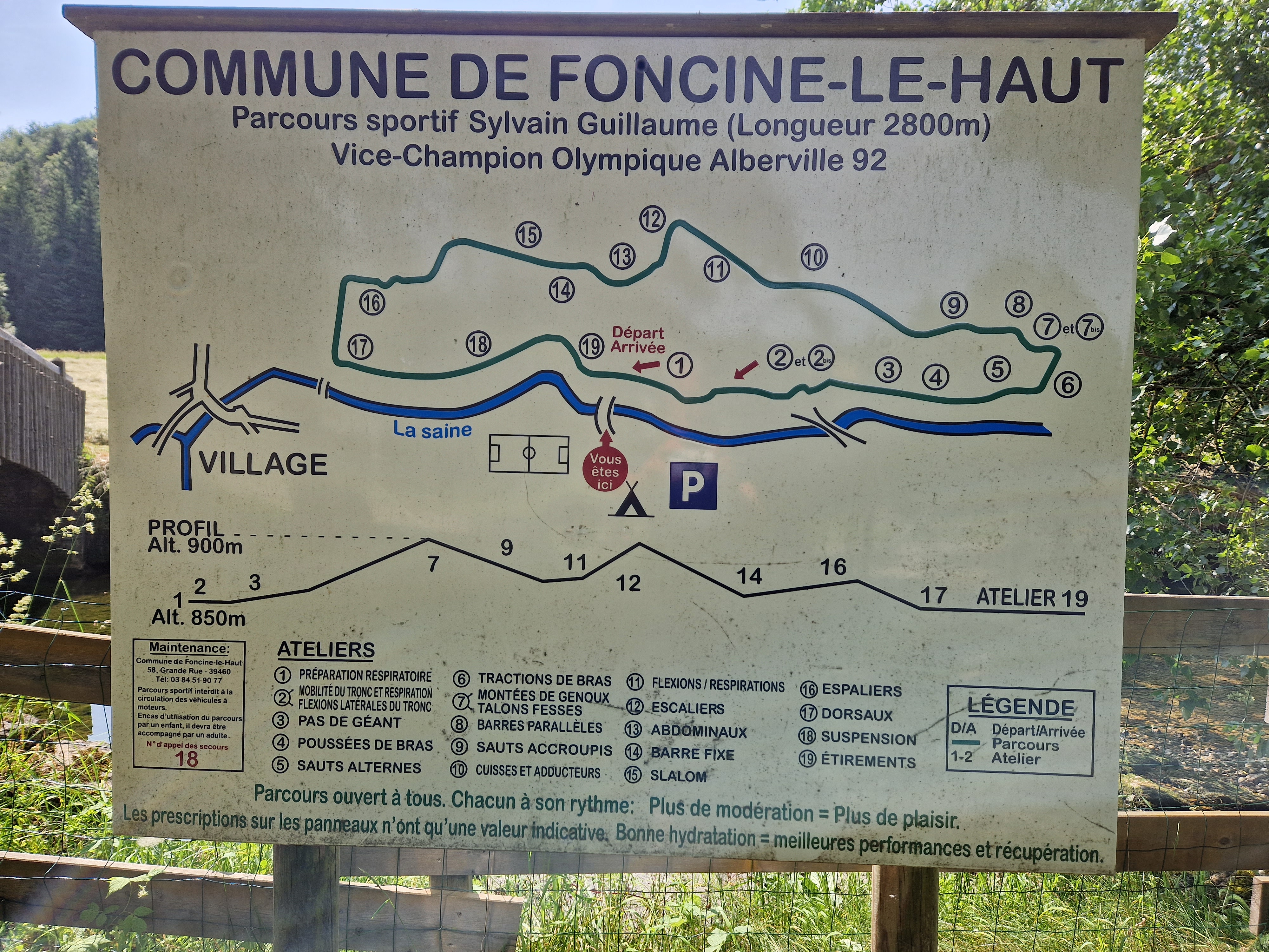 Daar zijn we rond 3 uur. Drie keer is scheepsrecht, hoewel we hier eigenlijk genoegen mee nemen omdat we er genoeg van hebben. Het is een gemeentecamping, Camping Municipal “Val de Saine” in Foncine-le-Haut. Volgens het bordje kunnen we een plek uitzoeken en ons installeren, er is zo te zien niets gereserveerd. De beheerder komt pas tegen 6en. Het sanitair is ook hier basic en verouderd, maar wel voldoende. Goed genoeg voor een paar nachten. We zitten op 850 meter hoogte, de temperatuur is goed en de vooruitzichten eveneens.