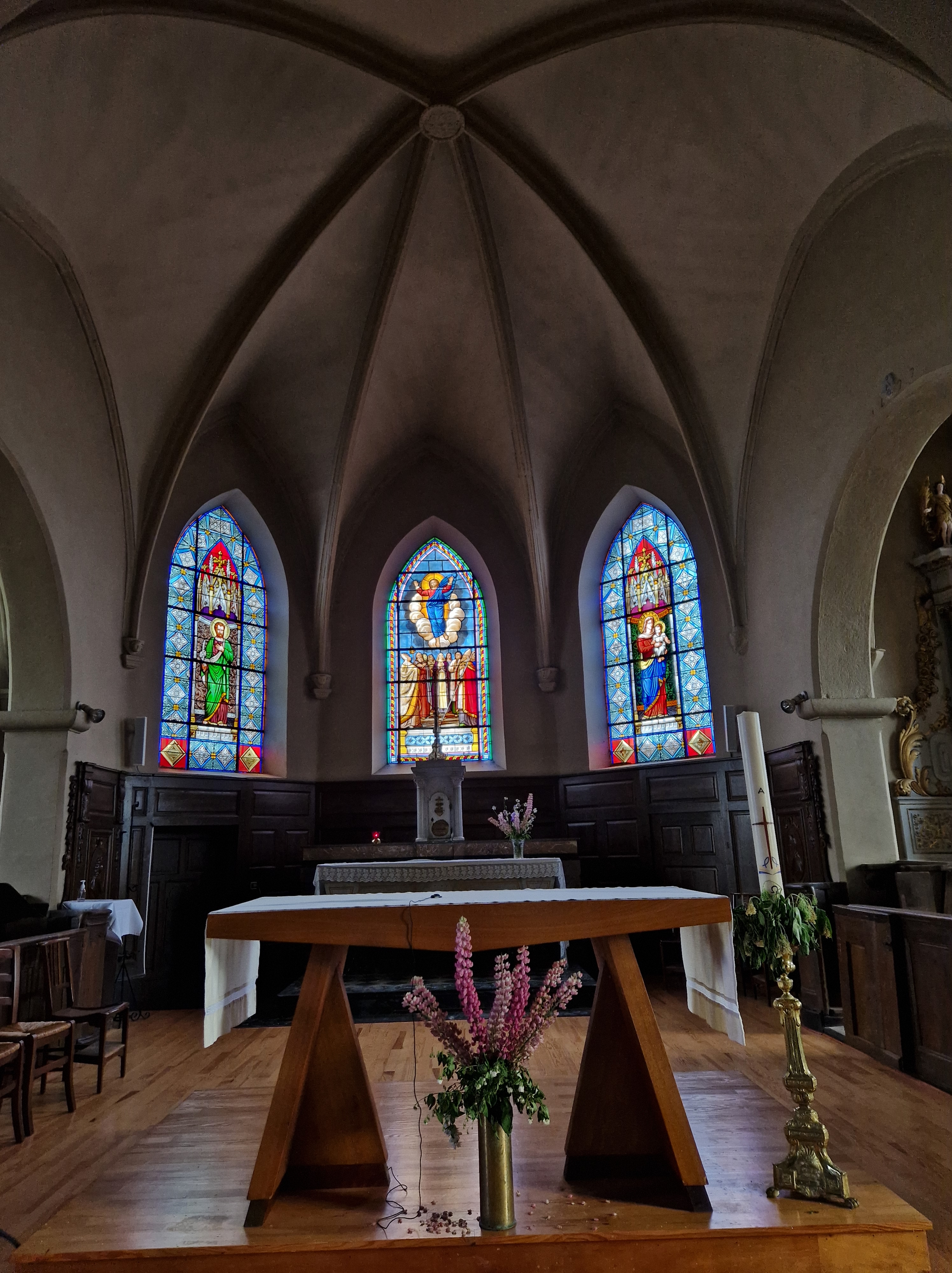 We parkeren de Dyane bij het kerkje van Foncine le Haut, waar ik binnen wat rondloop. Een sober kerkje, bijna niet echt katholiek op het gebrandschilderde glas-in-lood na. Het is er koud, vergeleken met de buitentemperatuur.