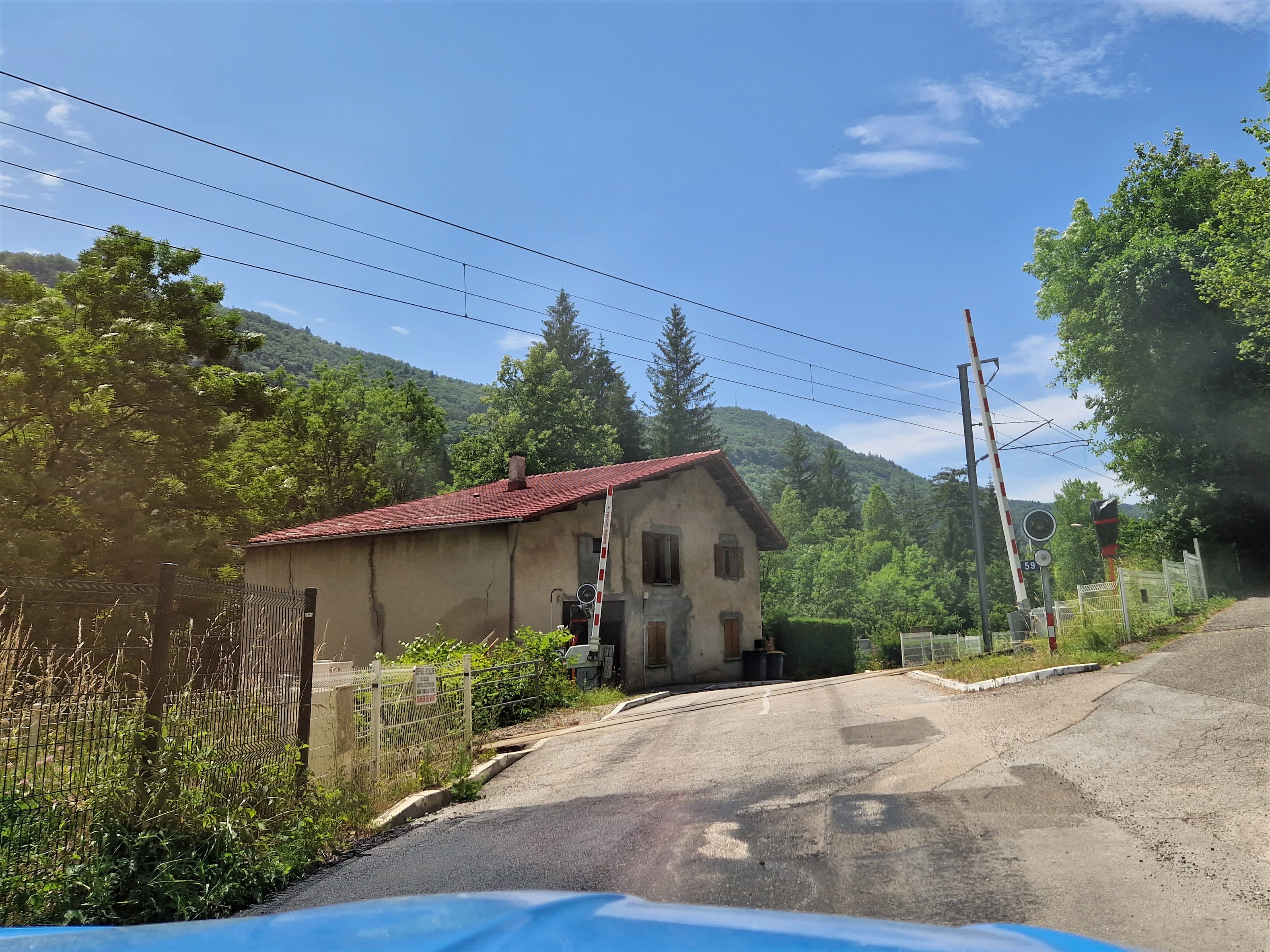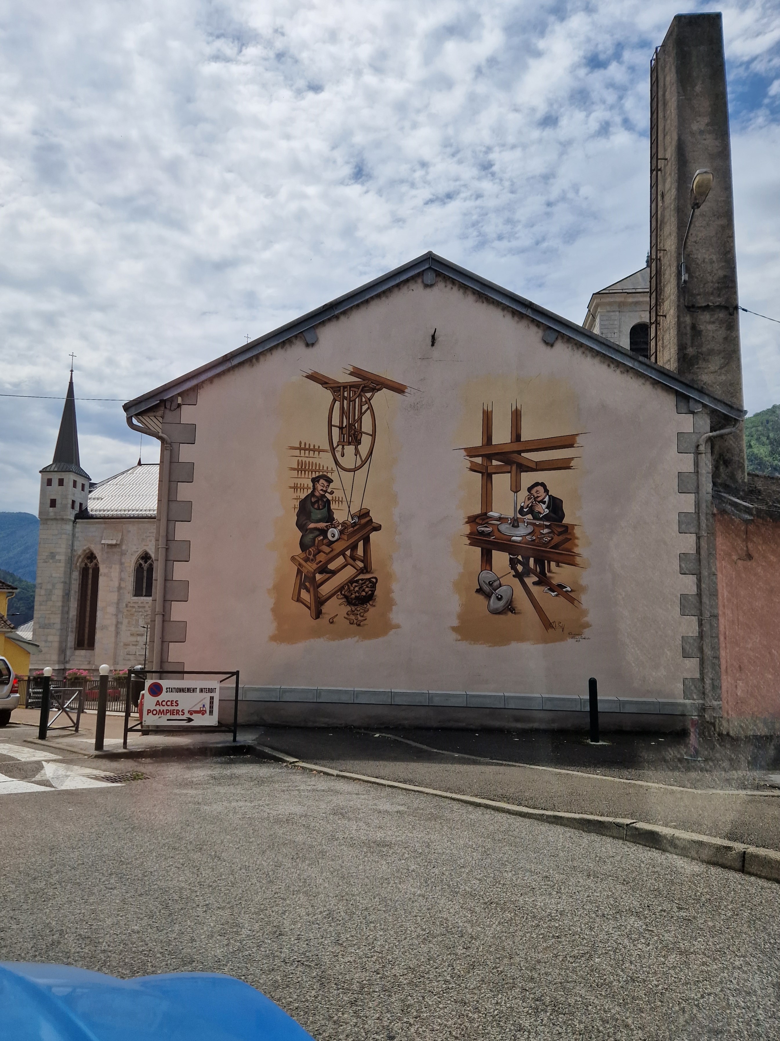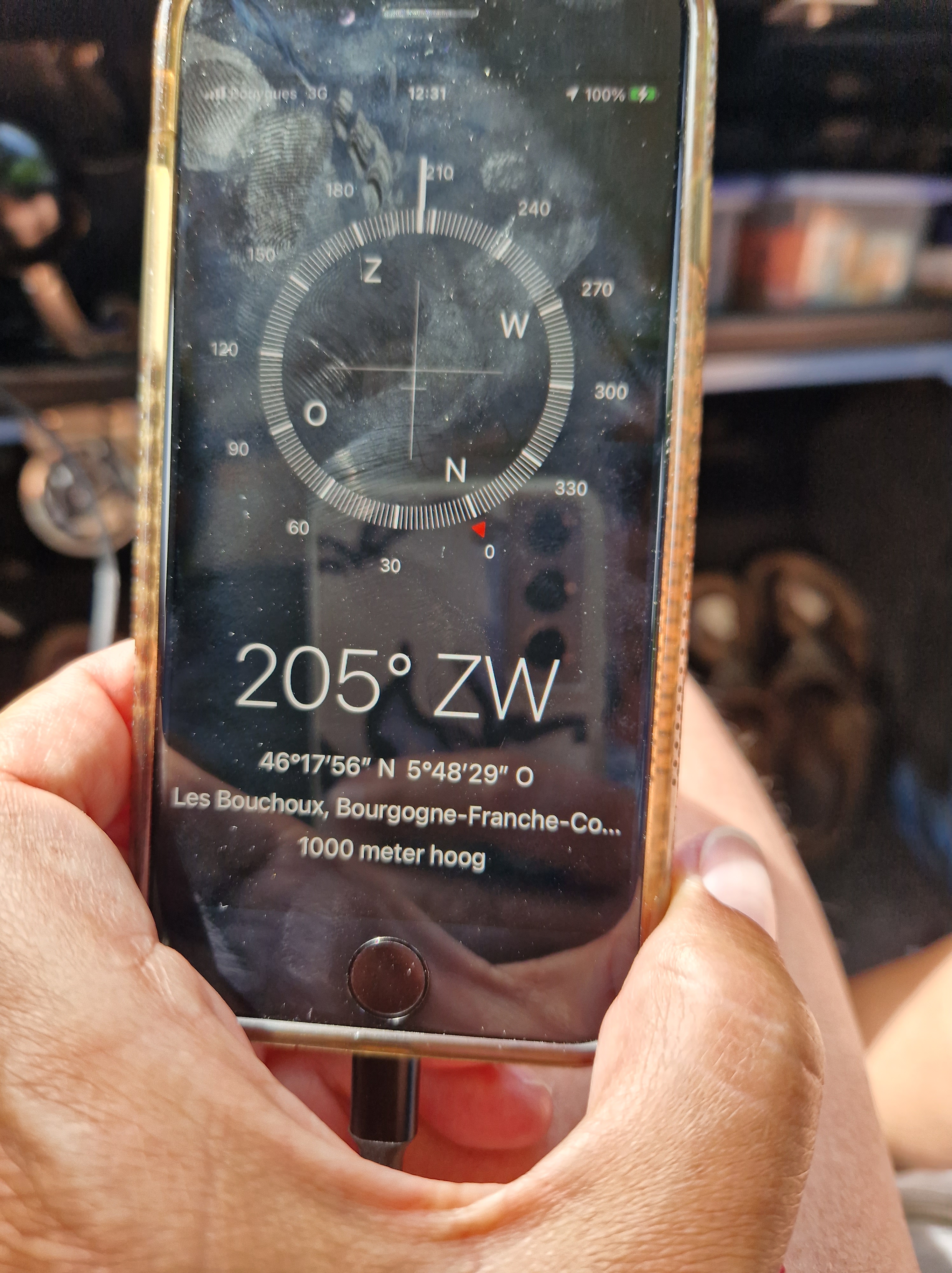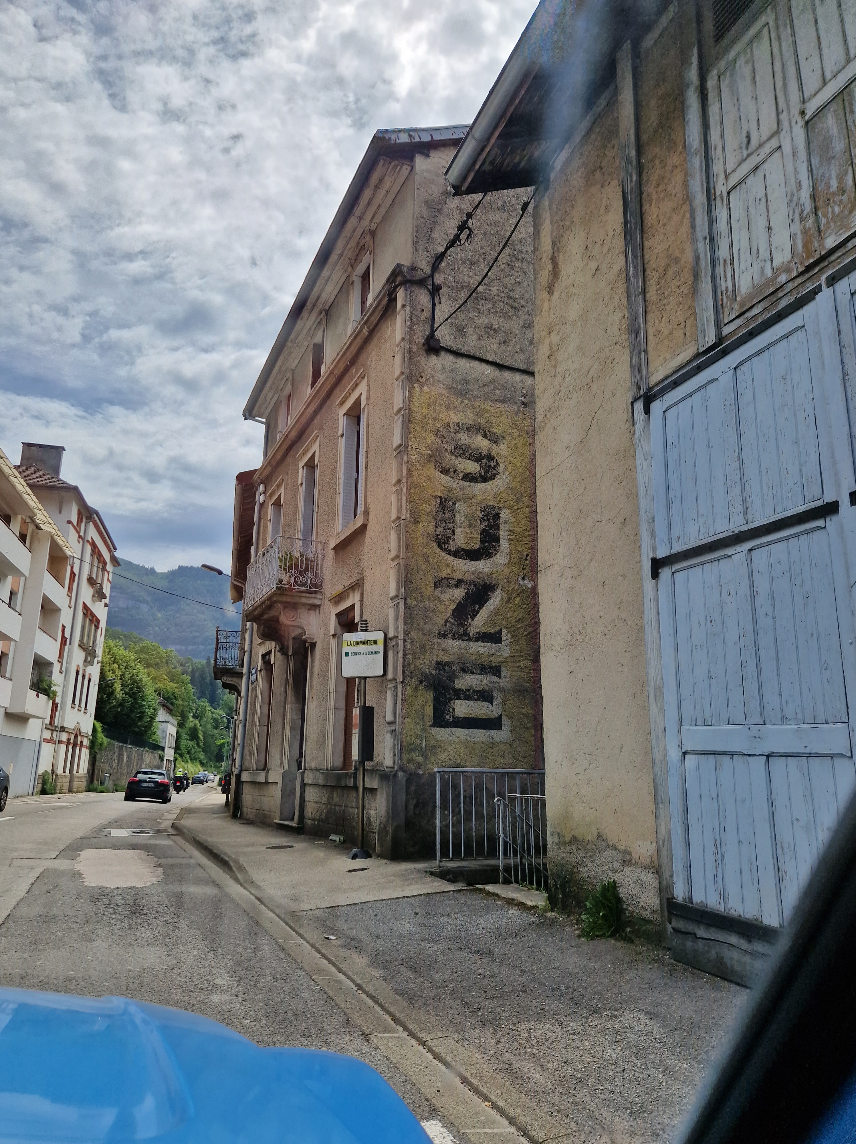 Buiten Voreppe stuurt Tom ons na de steengroeve een steil plaatsje in, de berg op. Loodrecht, in haarspelden, tussen de huizen door. Muren aan elke kant, geen idee wat we moeten doen als er een tegenligger aankomt. Laat staan de schoolbus. Het bovenste weggetje waar we volgens Tom in moeten draaien… loopt dood! Dat betekent op anderhalve vierkante meter keren, tussen de muurtjes, op 25% helling. Ik krijg m’n deur niet eens open, zo scheef staan we. Gijs redt het, onder toeziend oog van een bewoonster. Slechts twee keer steken en we duiken de berg weer af.