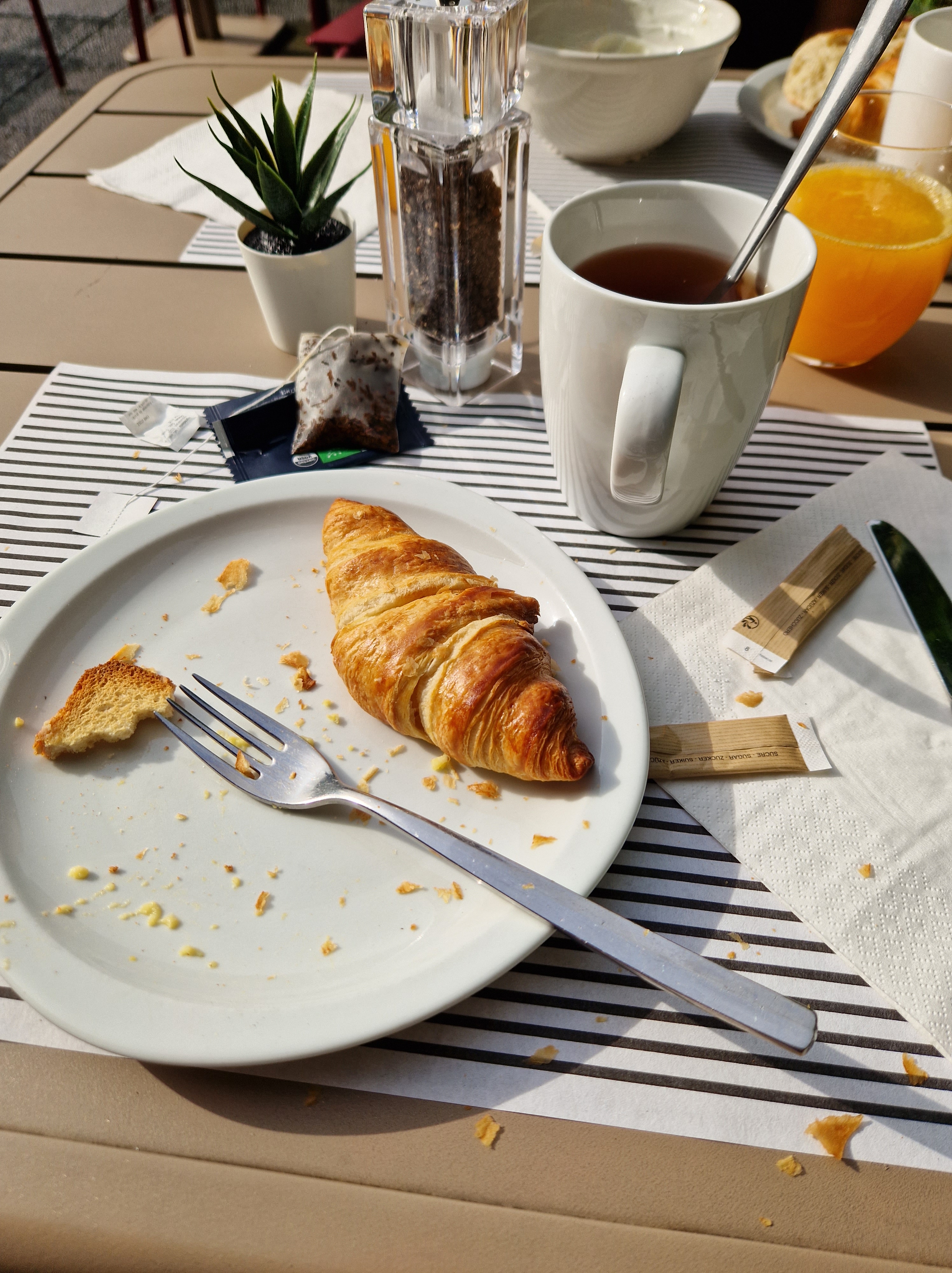 “Ik bedel niet, écht niet!” maar ondertussen kijkt Ravi ons het croissantje uit de mond. We hebben goed geslapen, na het ontbijt vangen we met nieuwe moed de doorreis aan.