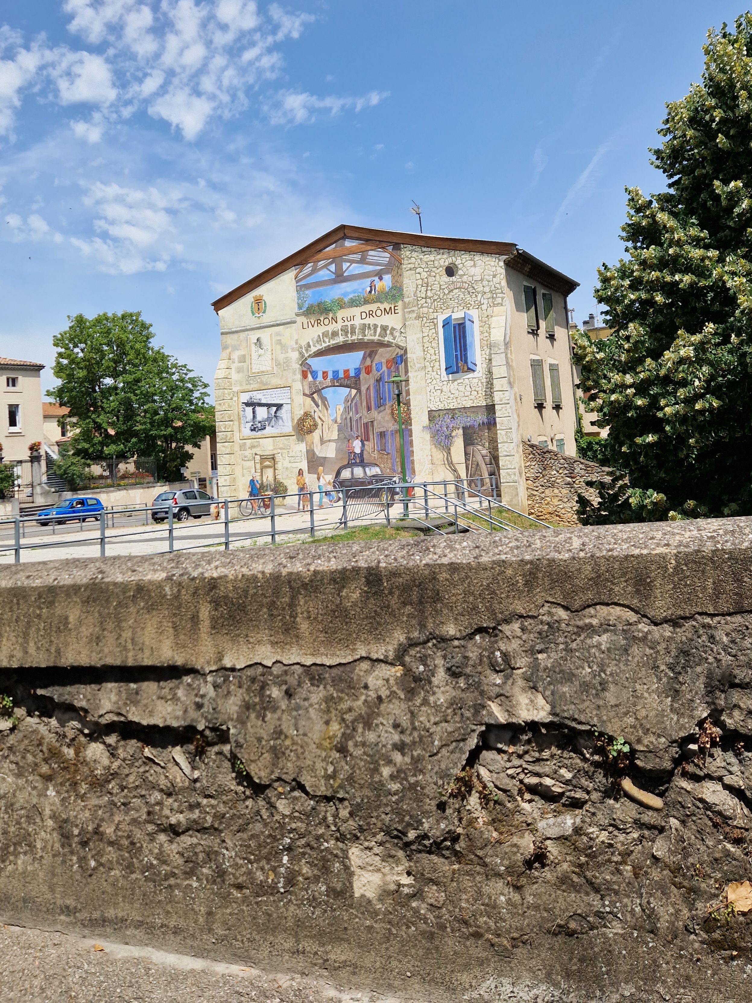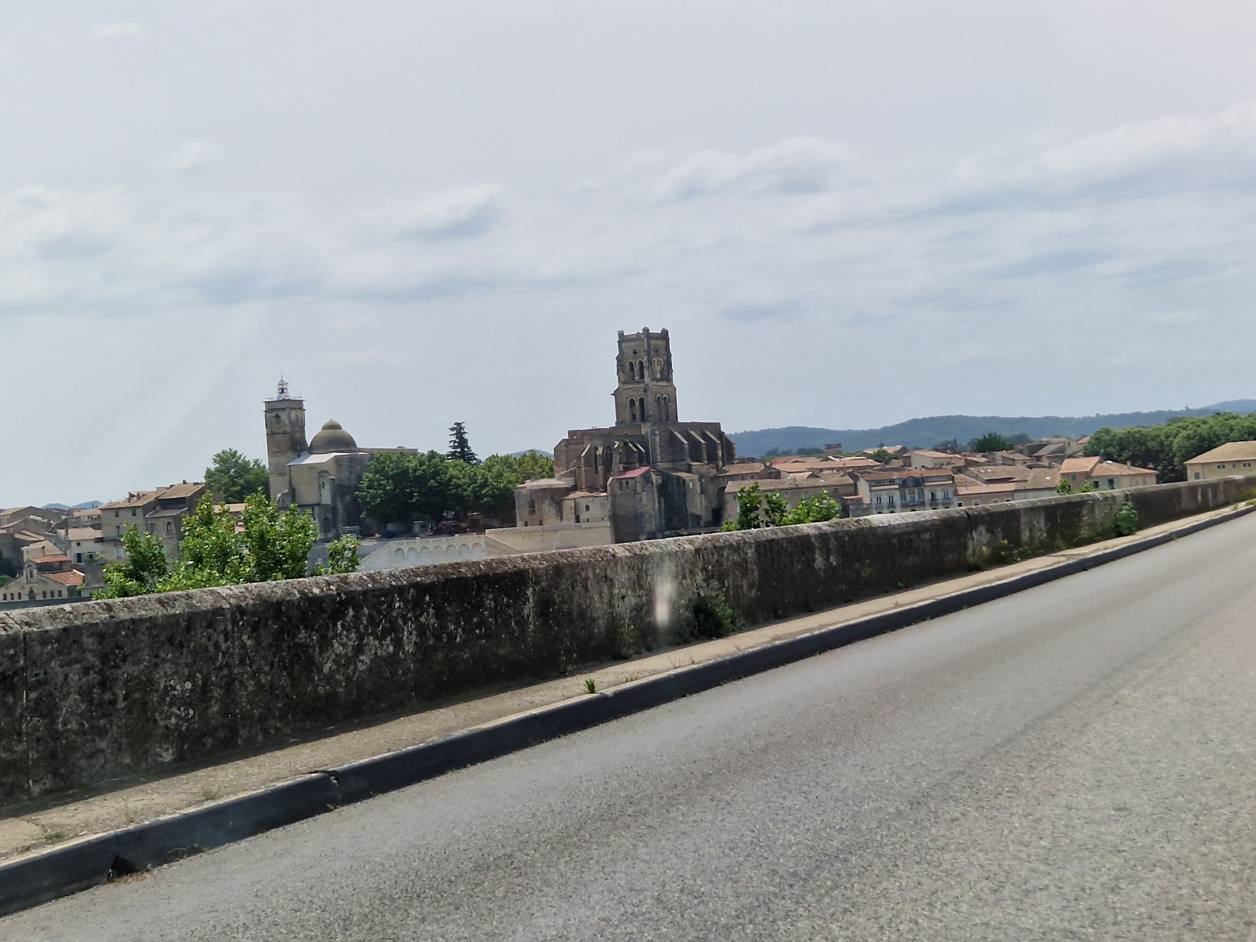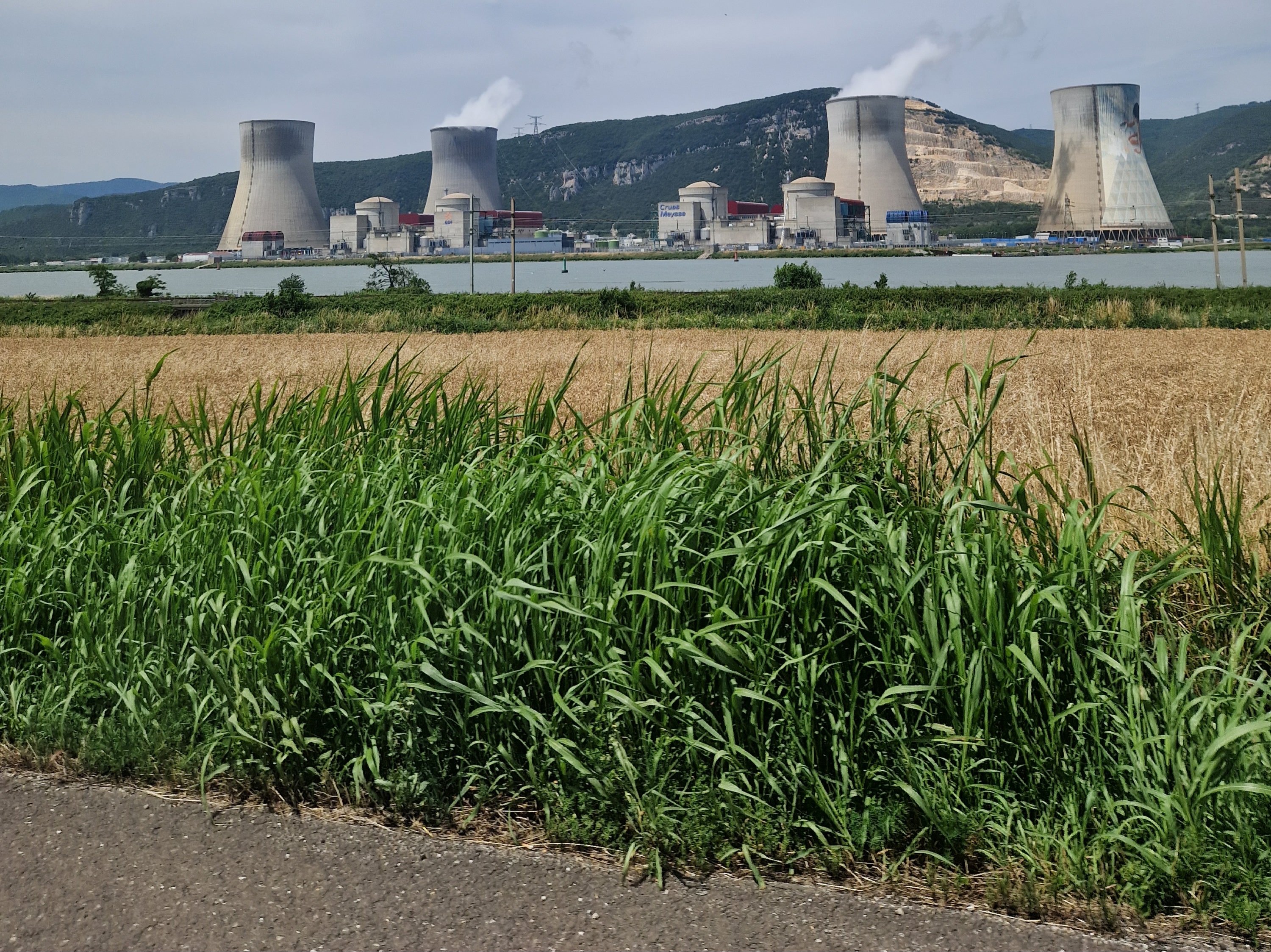 Bij Loriol komen we op de loeidrukke N7. Wat verderop zien we de koeltorens van La Coucourde. Een vrachtwagen met lange oplegger sliert met een rotgang uit een fabrieksterrein links van de weg onze kant op. We schrikken ons dood. Ik zie die achterkant al uitzwiepen en ons omgooien. Wat een…#@!%*&*#!! Hij blijft links naast ons hangen. Zijn broer zit achter ons zowat ín het karretje. Penibele ogenblikken. Gelukkig slaan wij af en zijn we ze kwijt. Pffff. Doodsangsten.