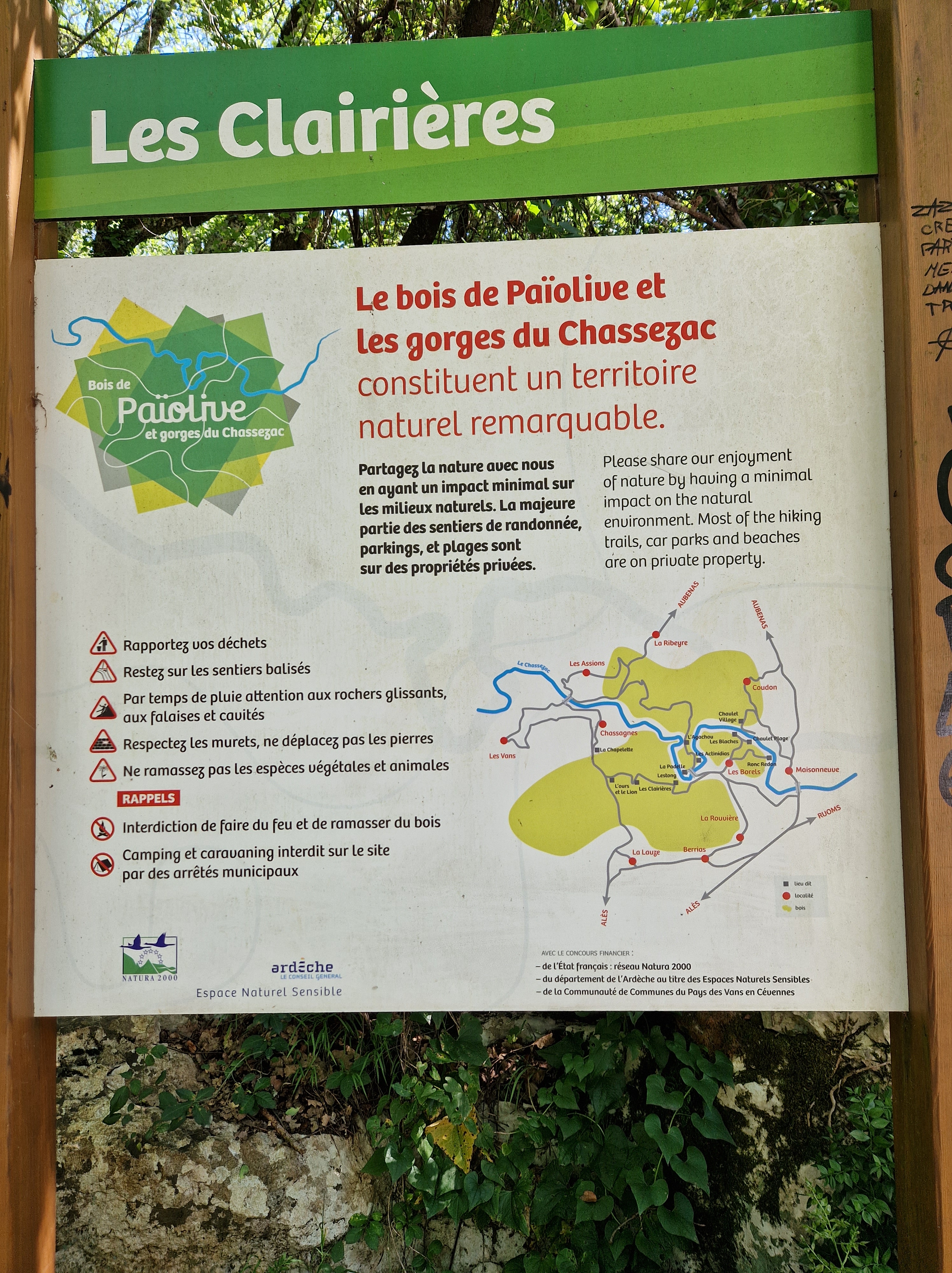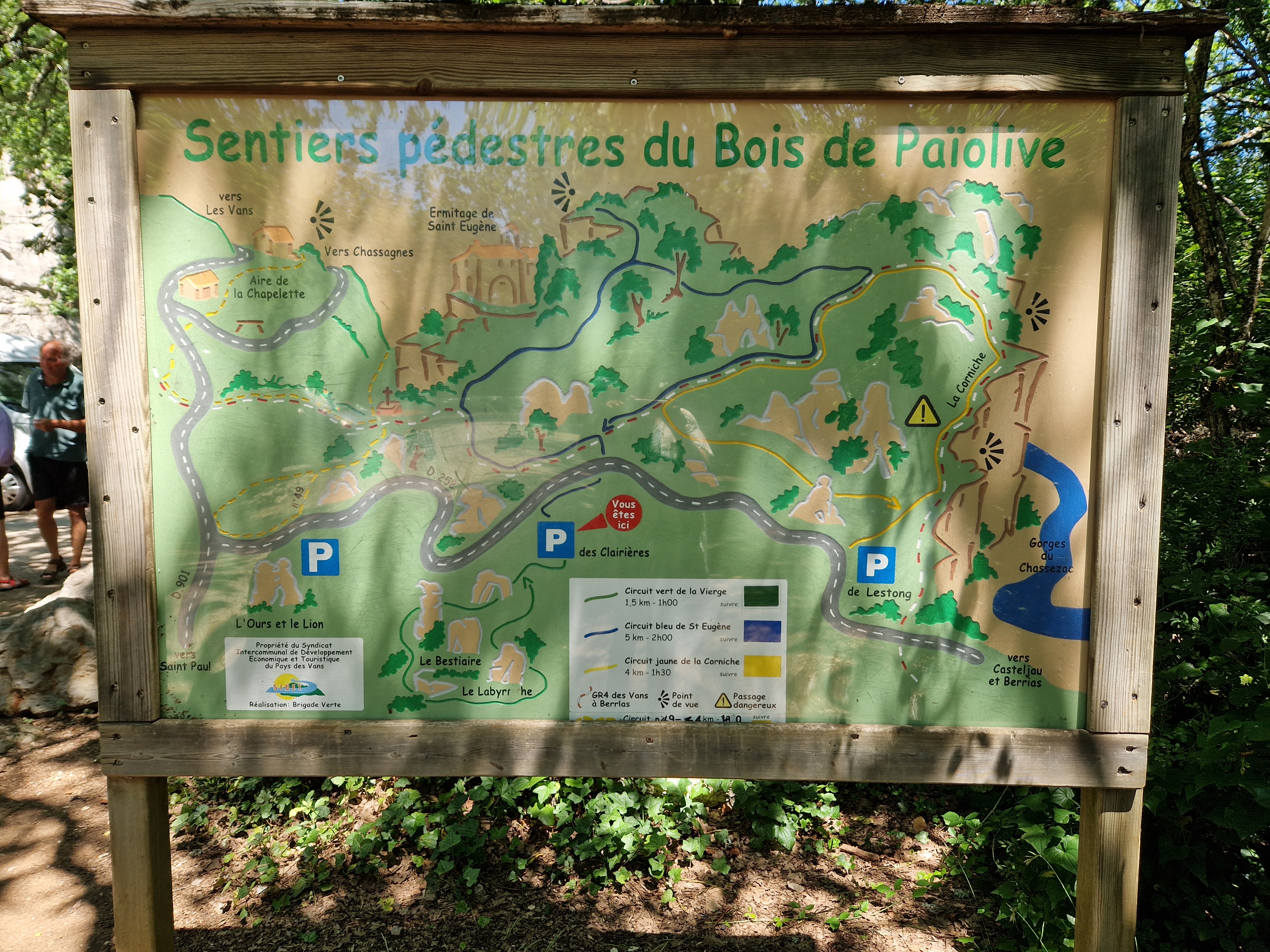 Bij de parking waar Franse families de weekendpicknick houden, begint onze hike met het plakken van blarenpleisters uit voorzorg. Zo vaak gebruik ik mijn wandelschoenen niet. 2 Liter water en een drinkfles voor Ravi mee en daar gaan we. Overmoedig nemen we het blauwe, het langste, parcours.