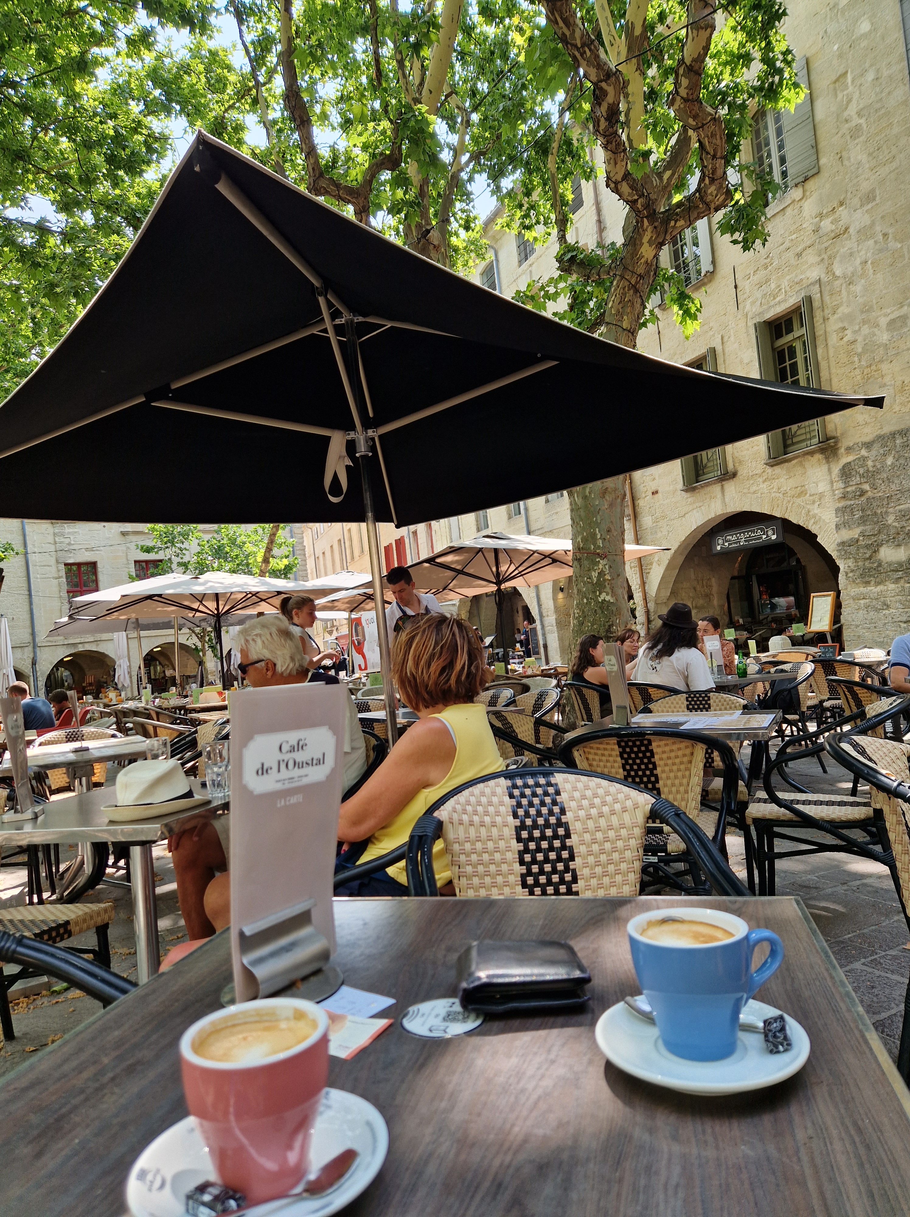 Op het plein waar we koffie drinken wordt er voor live entertainment gezorgd. Een klein vrachtwagentje prikt zijn laadruimte aan een grote parasol en duwt het hele gevaarte omver. Keek de bestuurder niet uit? Mocht hij hier überhaupt wel inrijden? Of stond de parasol te ver op de weg? We vermoeden het laatste. Zeer on-Gallisch nemen de bestuurder, de Chef du Café en de omstanders relaxt de situatie in ogenschouw.