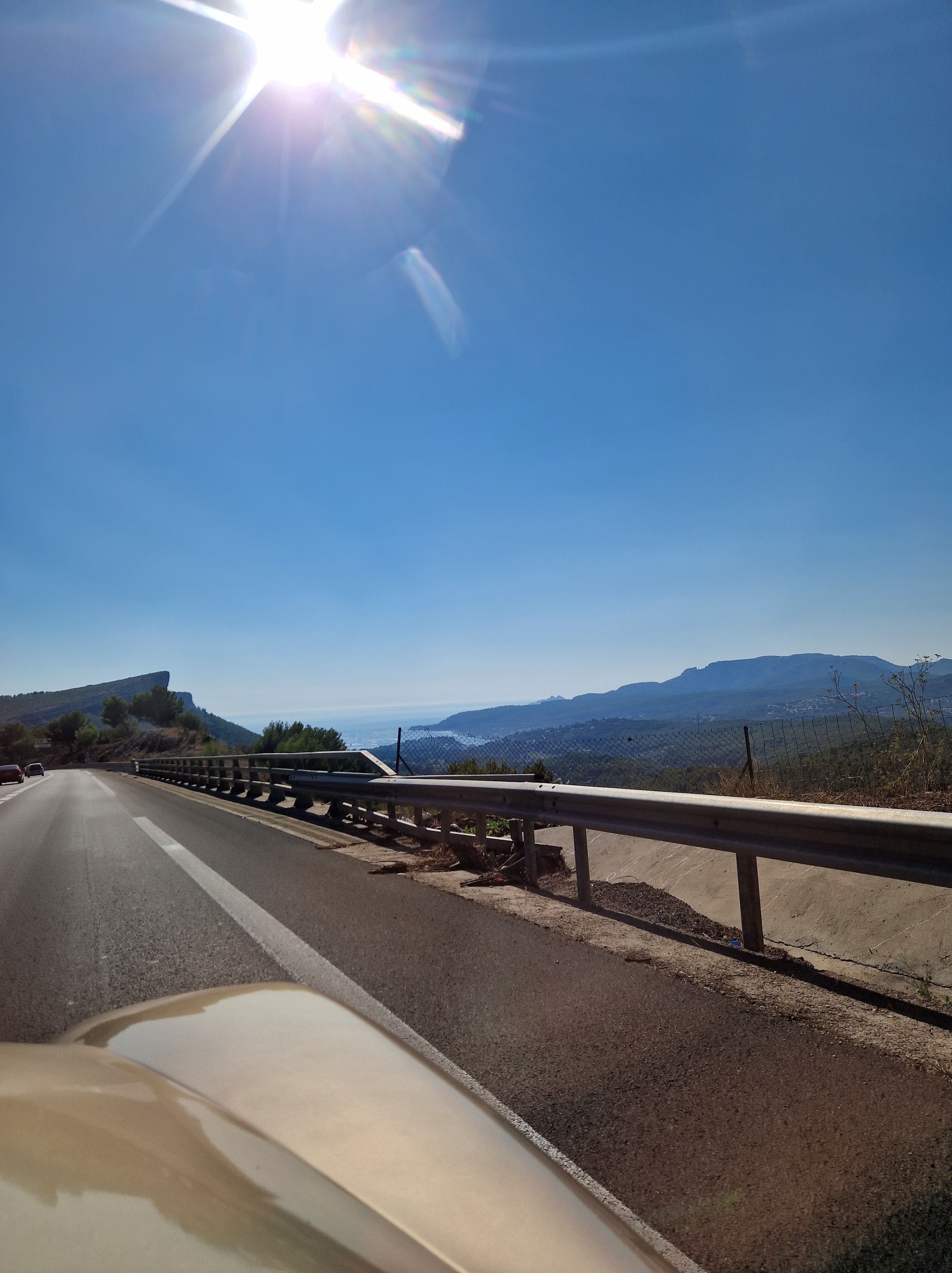 Buiten het dorp draaien we opnieuw de péage op voor het laatste stukje. Volgden we voorgaande decennia de A8 richting Nice, nu slaan we af naar Toulon, waar bij Cassis onmiddellijk de zee ons tegemoet glinstert. Een lange kronkeltunnel leidt ons onder de stad door naar Hyères. Hyères, en nu weten we weer waarom we déze route nooit namen, is één lange opeenstapeling van stoplichten. Een brede boulevard voert ons langs de kustlijn naar Bormes-les-Mimosas.
