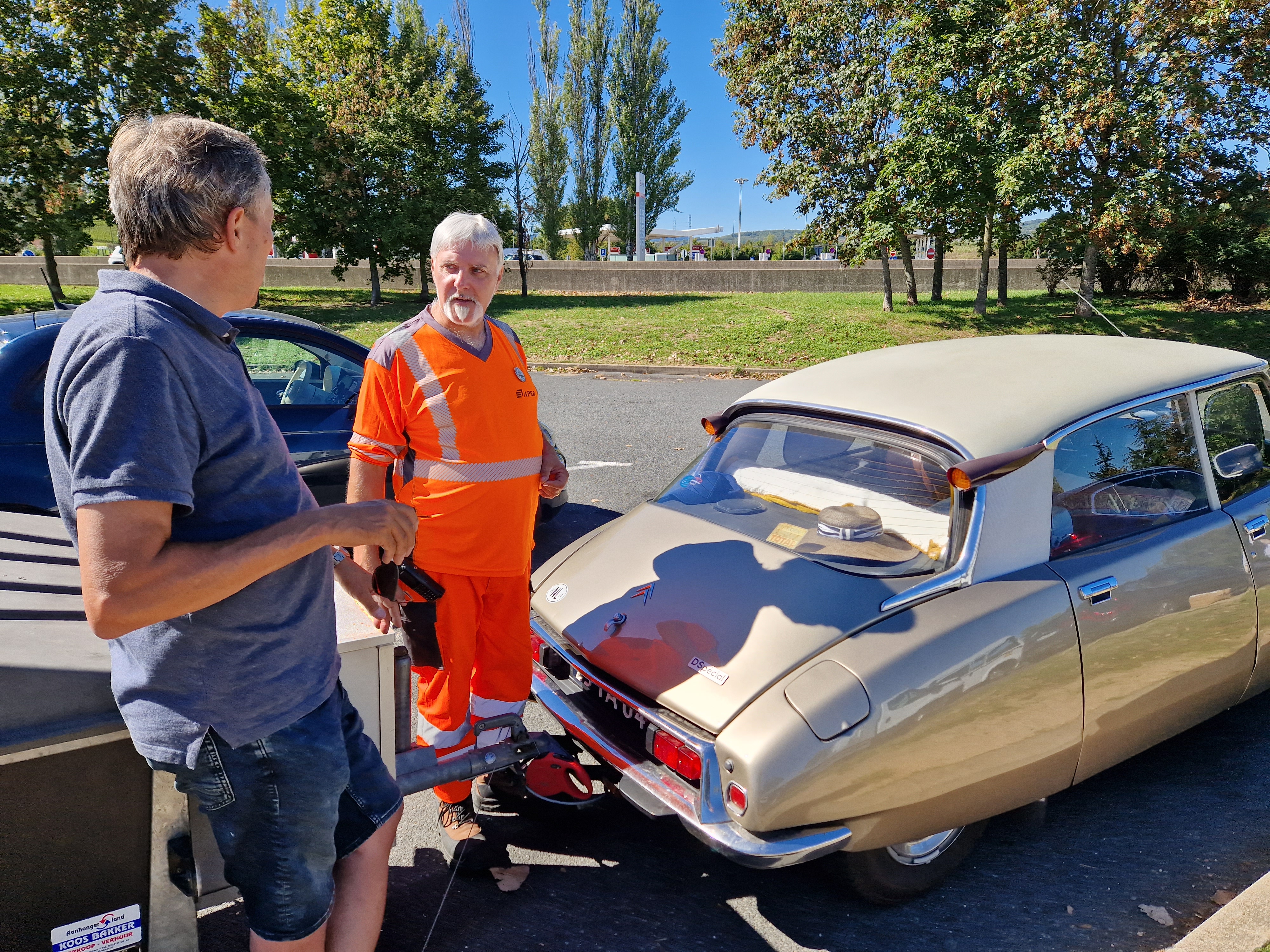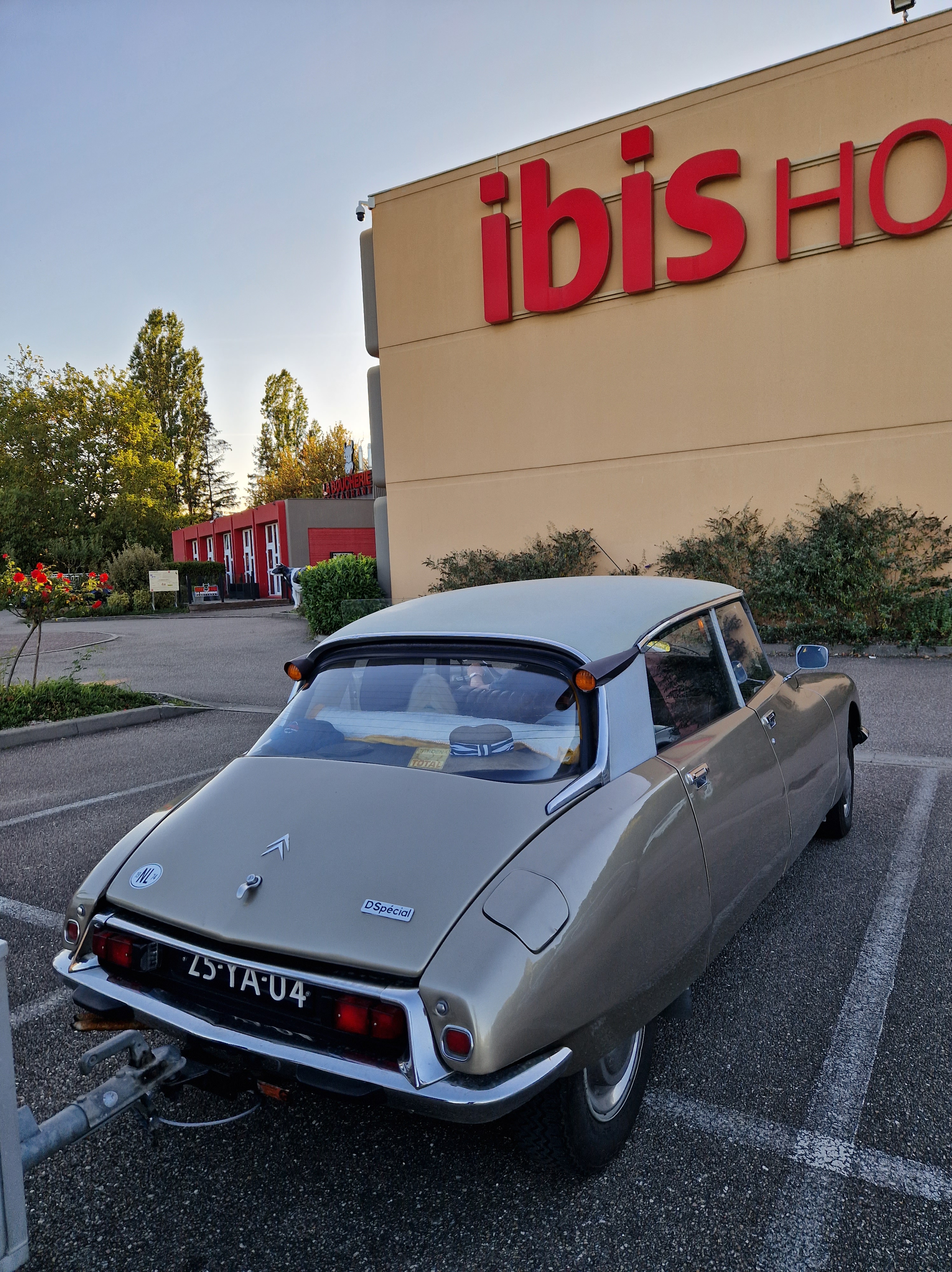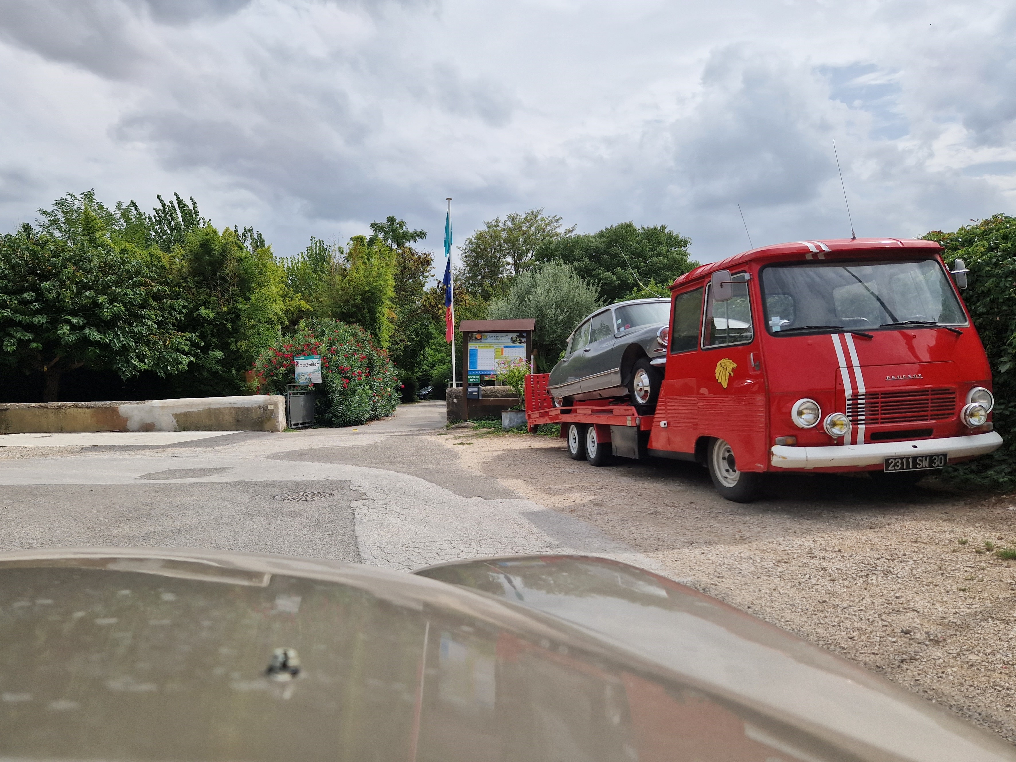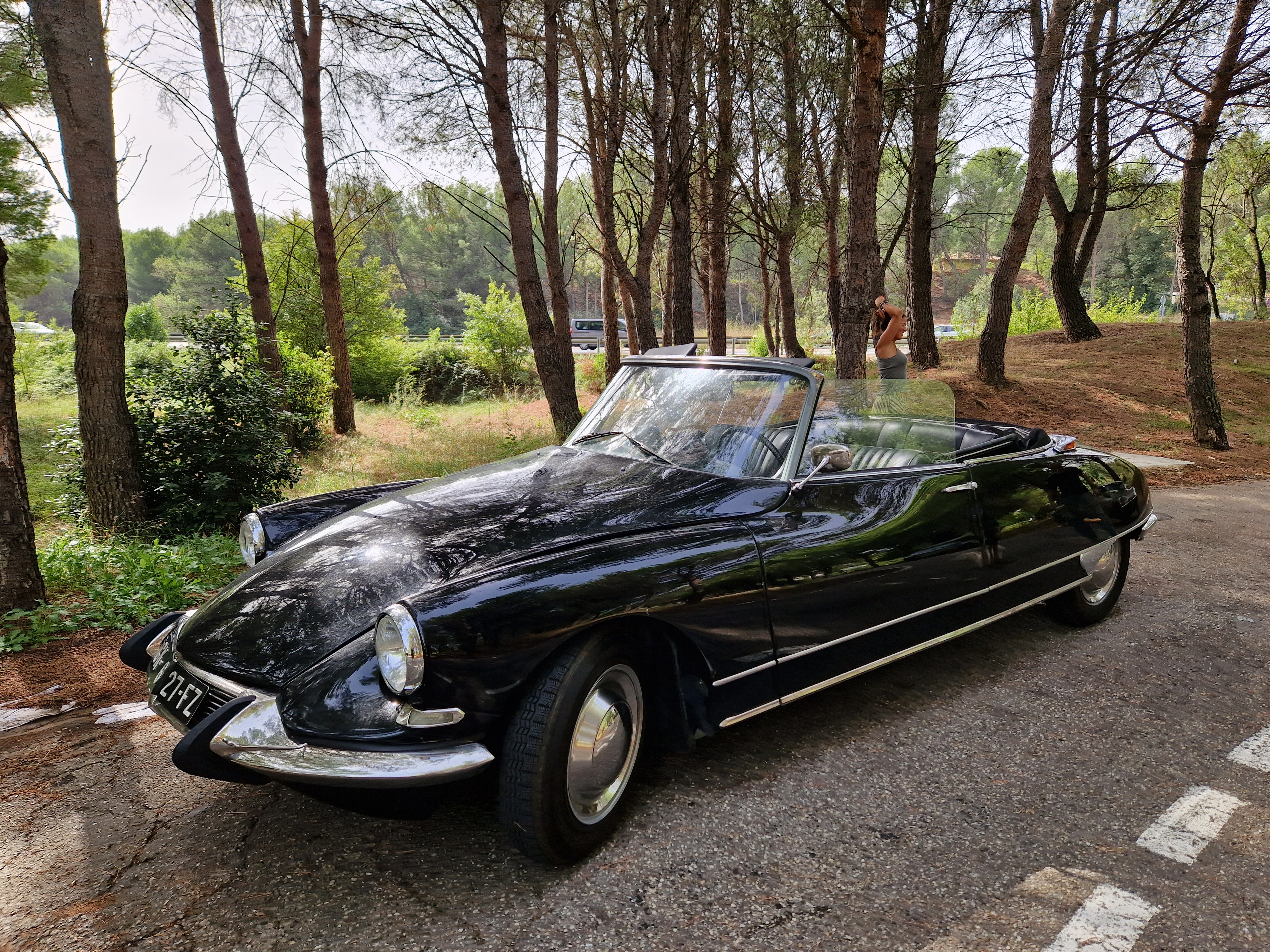 Bij Aire de Ventabren stopt er een zwarte DS Pallas cabrio voor ons. Tot mijn verbazing stappen er Hollanders uit. Ze hebben de auto in Monaco gekocht, rijden er nu mee naar huis om haar in Nederland helemaal te laten nakijken en haar vervolgens terug te brengen naar hun tweede huis in Frankrijk. Een verrassing, zo’n glimmende ontmoeting.