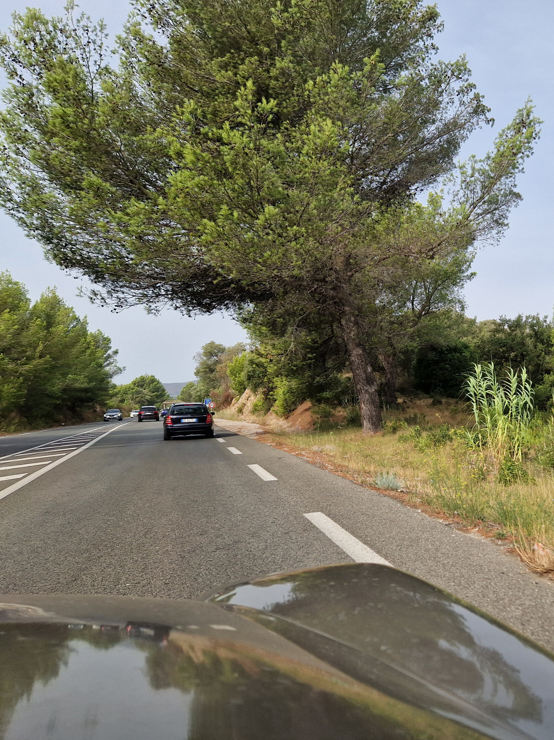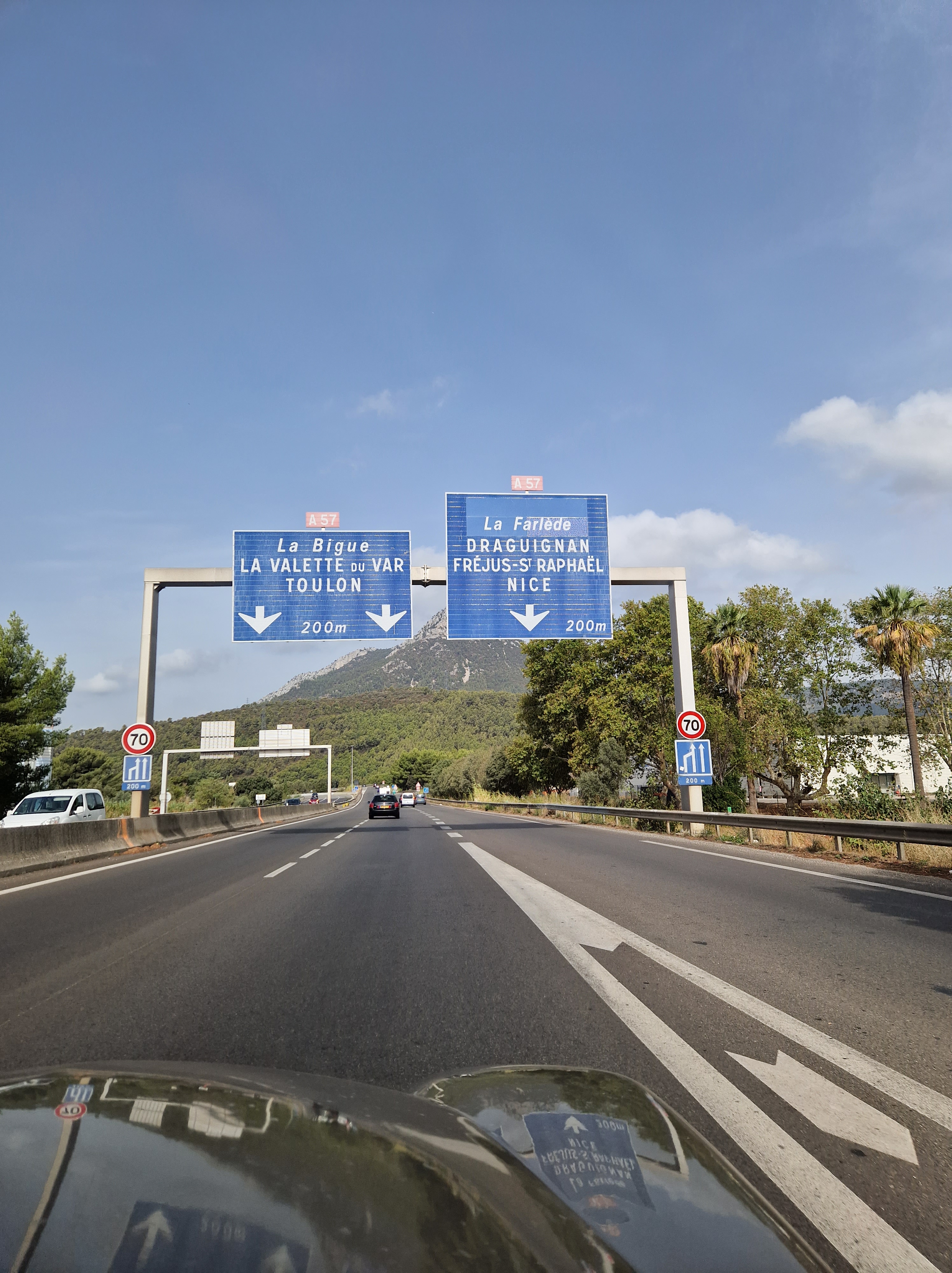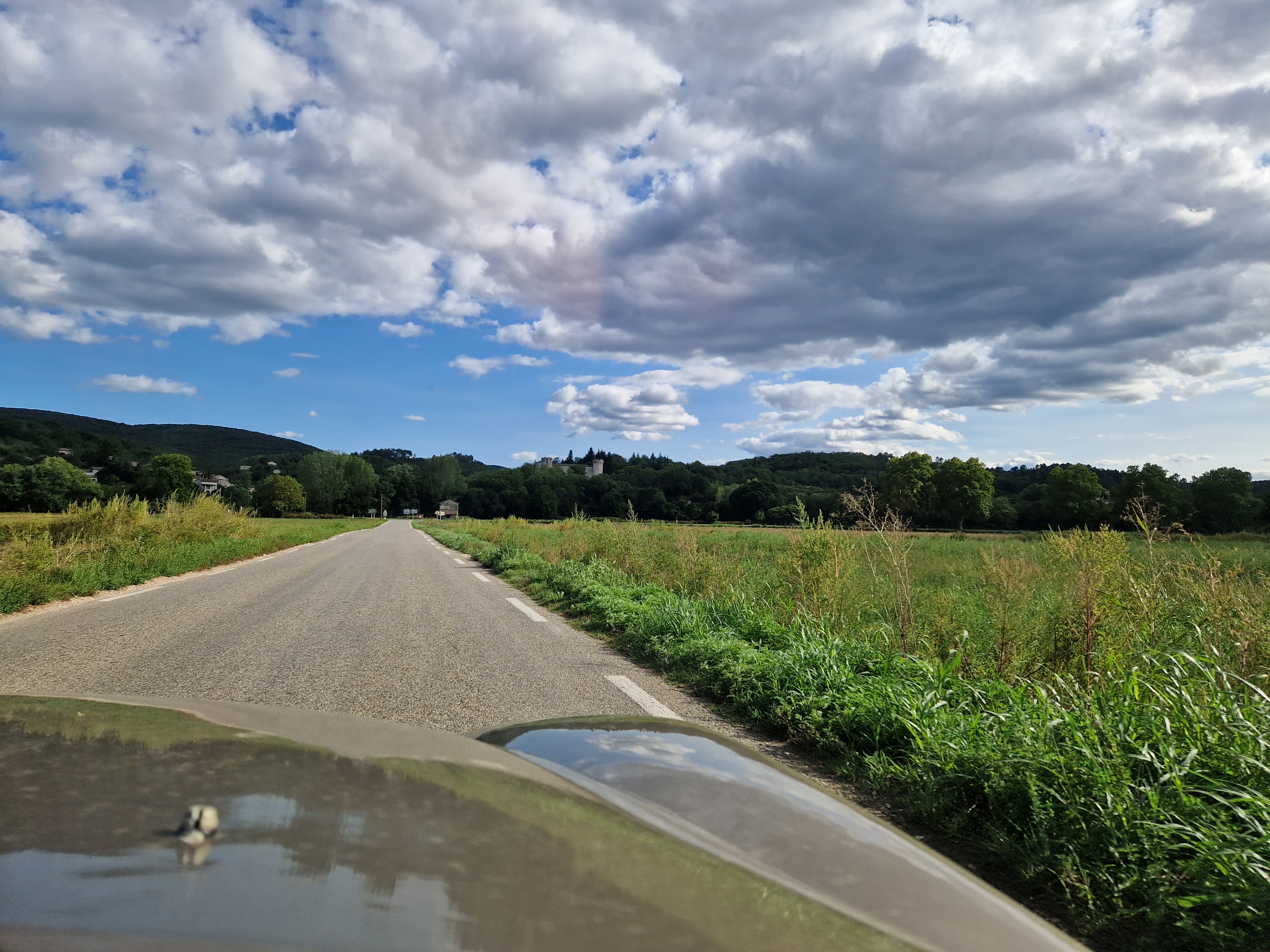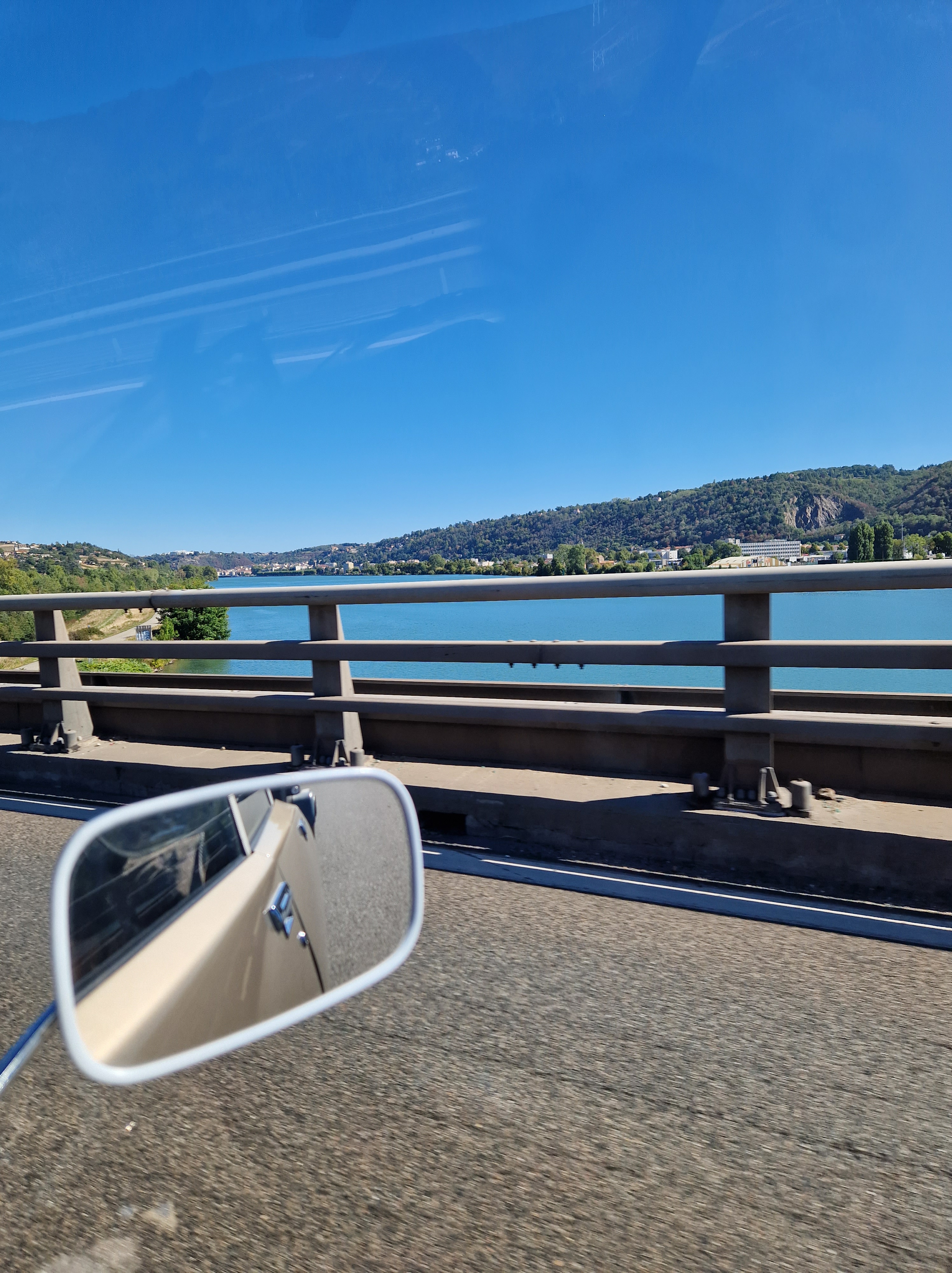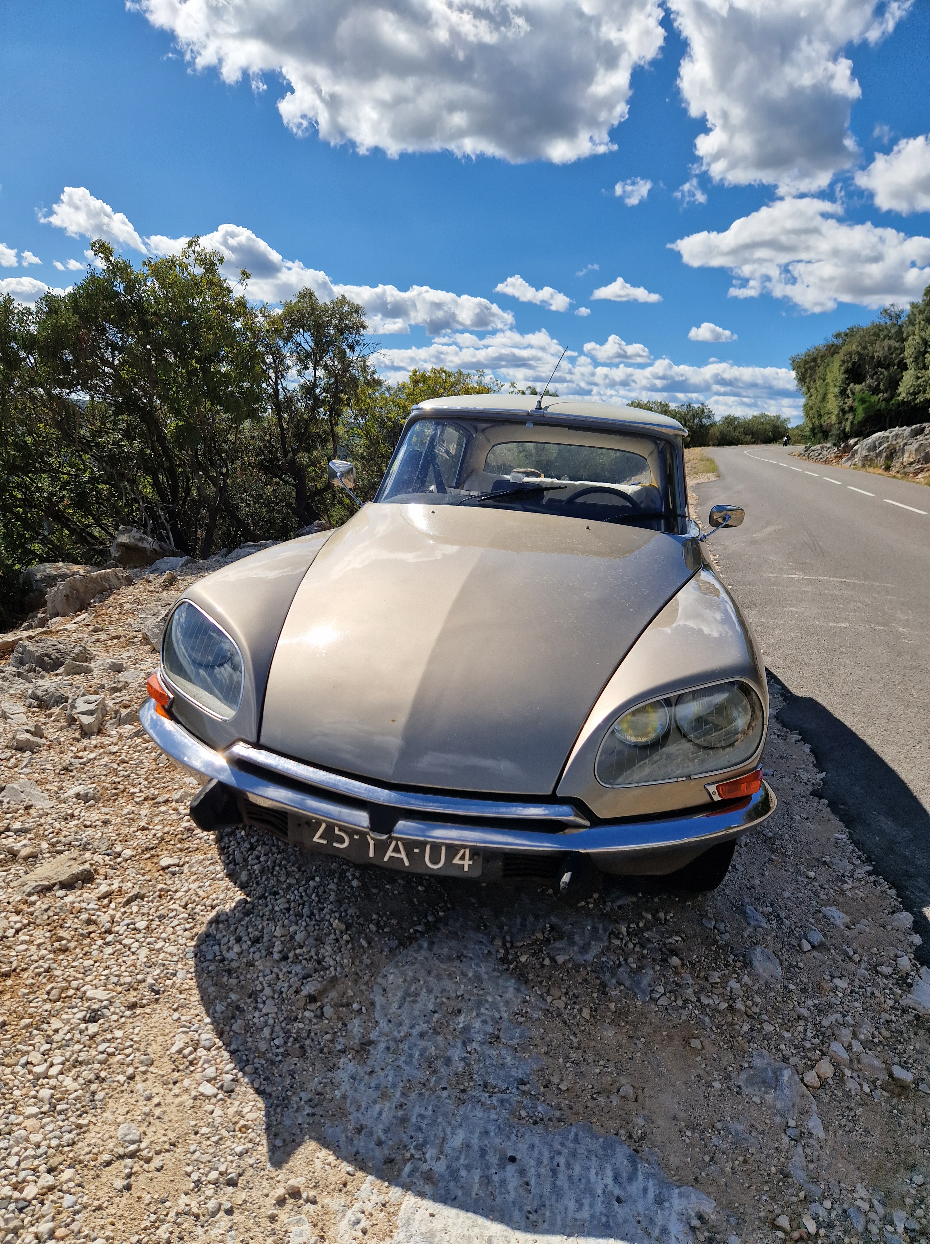 Bij Aire de Ventabren stopt er een zwarte DS Pallas cabrio voor ons. Tot mijn verbazing stappen er Hollanders uit. Ze hebben de auto in Monaco gekocht, rijden er nu mee naar huis om haar in Nederland helemaal te laten nakijken en haar vervolgens terug te brengen naar hun tweede huis in Frankrijk. Een verrassing, zo’n glimmende ontmoeting.