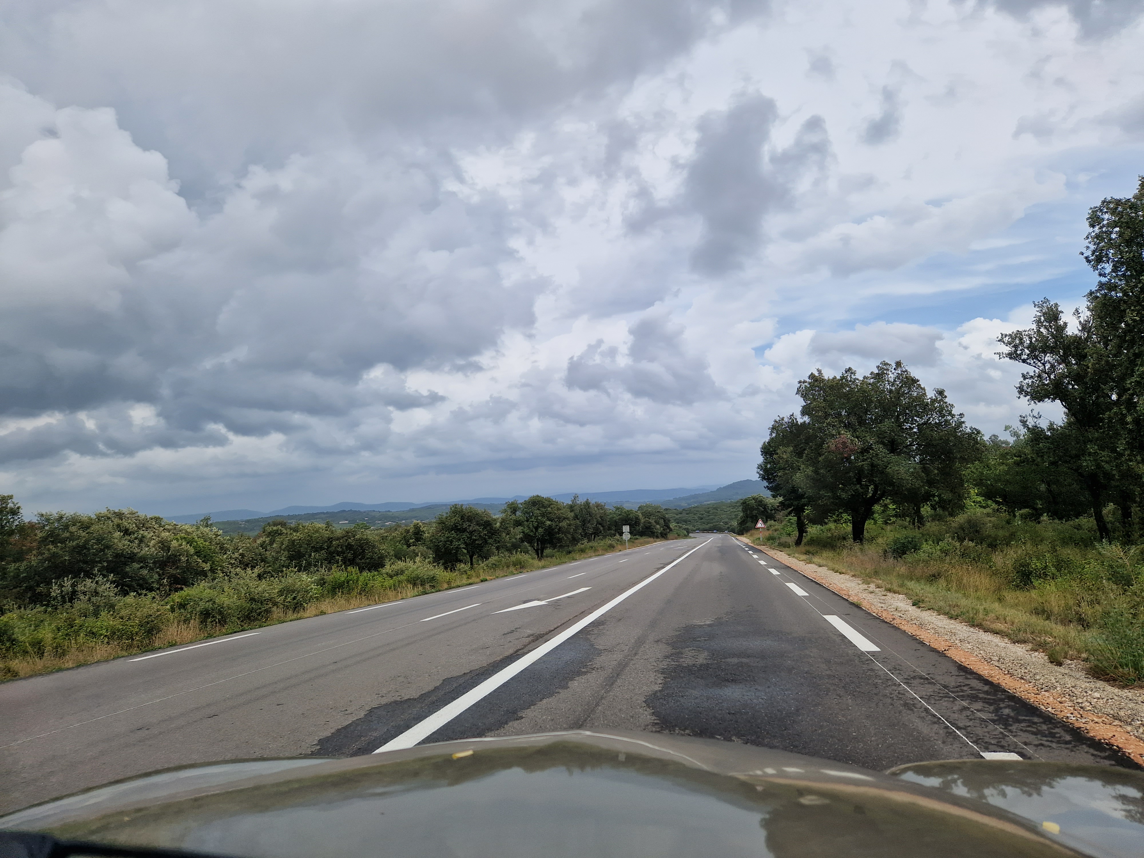 Er volgen een paar regenachtige dagen, de wolken hangen laag. We staan laat op, doen niets. Ik blog en pruts, Gijs leest. Saaaaai. We maken wat tochtjes, tussen dorpjes, wijnvelden en buien door. ’s Avonds gaan de truien, lange broeken en vesten aan, niet voor de muggen dit keer maar voor de rap kelderende temperatuur. Lachten we vorige week nog om die elektrische dekens en dat kacheltje, nu maken we er dankbaar gebruik van.