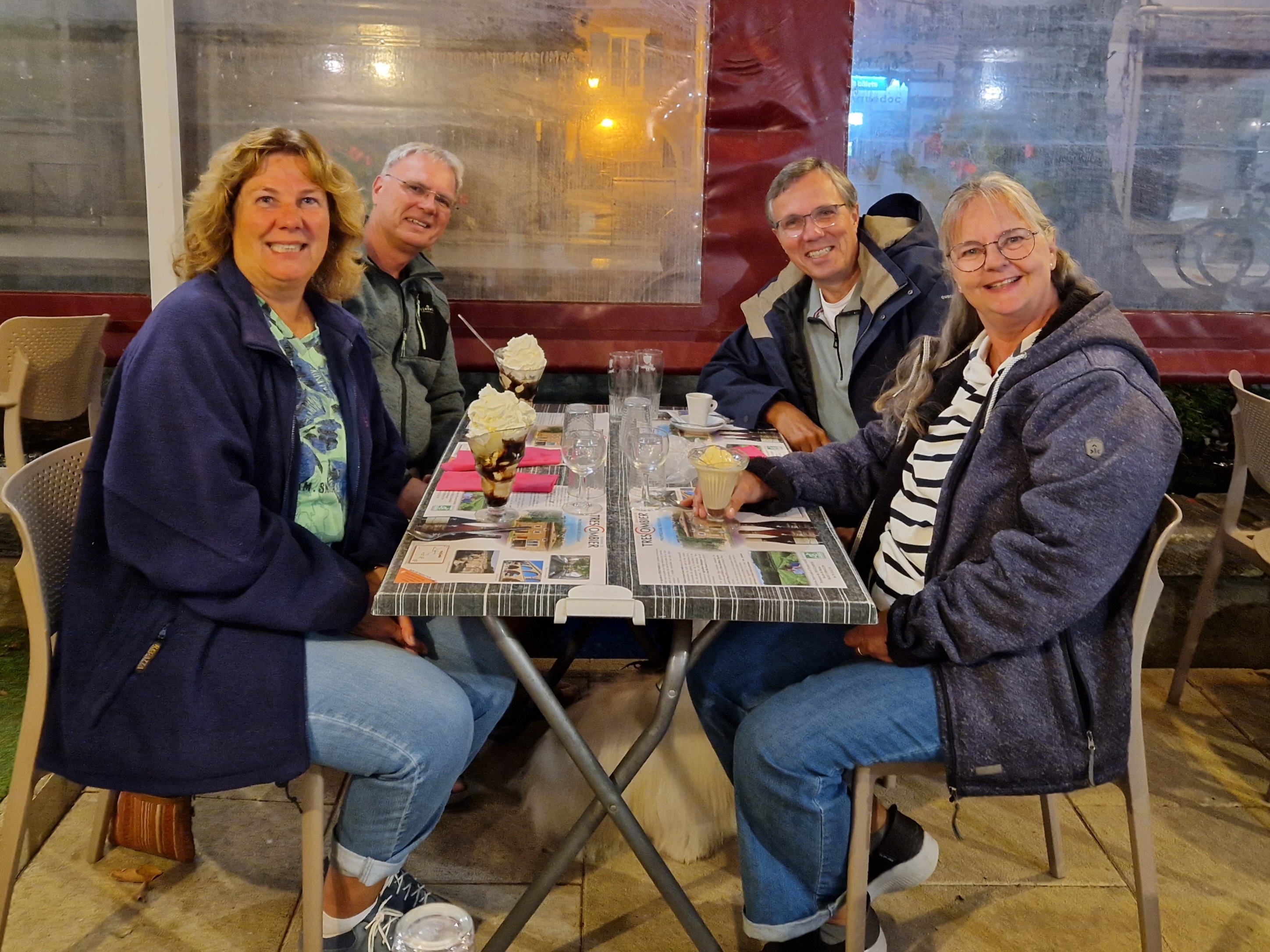 De laatste dag breekt aan. Nog één keer door het dorp naar boven lopen en langs de wijngaard en de volkstuinen terug naar de camping. Een laatste rondje toeren onder het mom van “vandaag vast tanken dan hoeft dat morgen de eerste uren niet.” Farewell dinner met Hans en Thilde (Gijs’ zus en zwager), ons laatste avondmaal bij ons stamcafé. Zij blijven nog langer, de mazzelaars.
