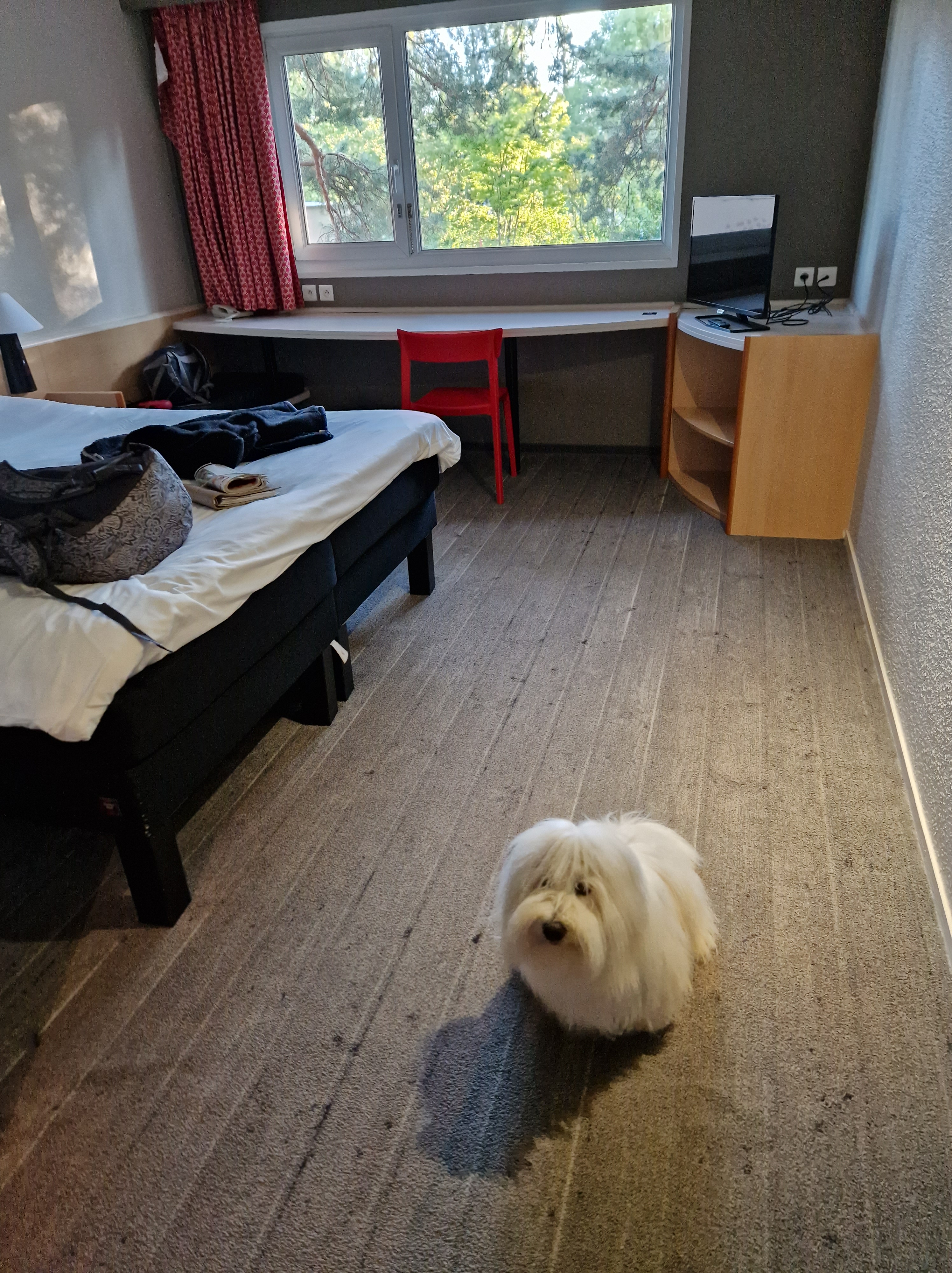 Even na zessen bereiken we Metz waar we een vertrouwd hotel geboekt hebben. Lichtelijk zwaaiend op de benen van de deinende rit máár we zijn d’r. We eten in het restaurant en daarna gaan de luiken dicht. Morgen zien we wel verder.