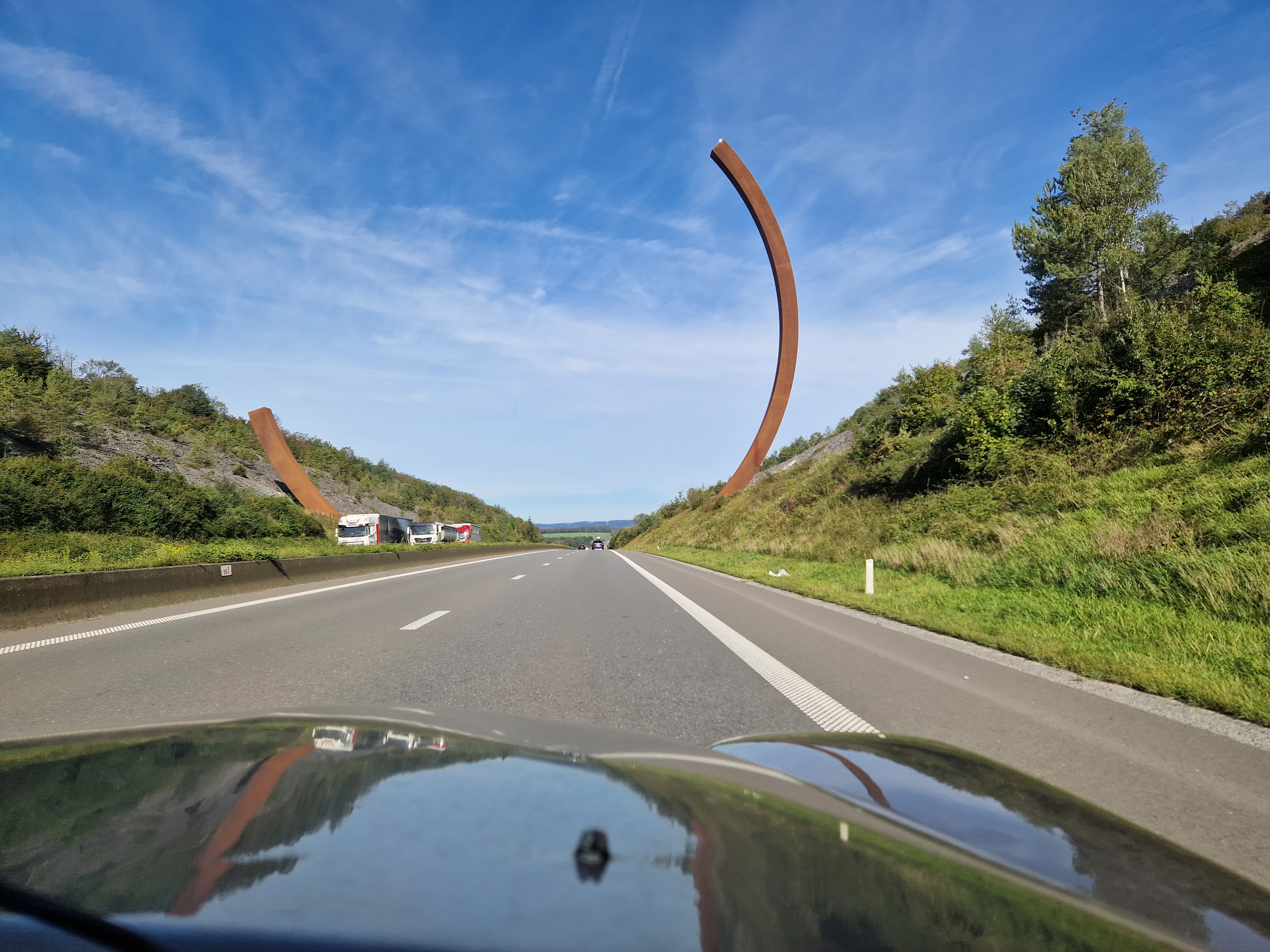 Na een goede nachtrust beginnen we aan de laatste loodjes. Onder Luxemburg langs, wat eigenlijk veel leuker is dan die gewone jakker-de-jakkerroute. In de Ardennen komt de DS makkelijk mee met de rest van het verkeer. Door de cirkel, het landmark bij Wellin/Rochefort. Zo’n reis over snelwegen zit vol met herkenningspunten.