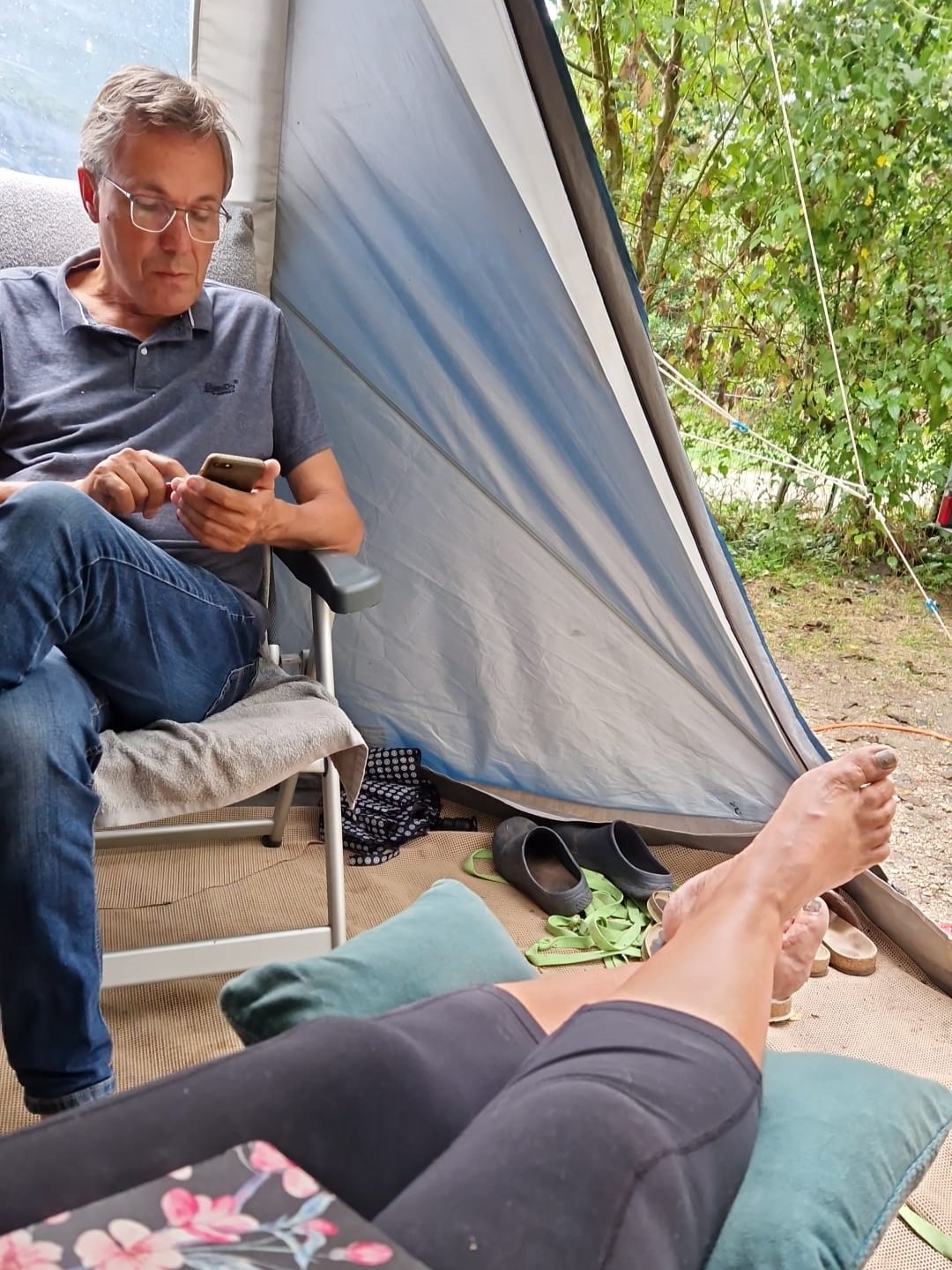 Zodra je Nederland inrijdt, stroopt het verkeer als pindakaas met klonten op. Men is agressiever, laat je er niet tussen bij het invoegen, allemaal korte lontjes met haasthaasthaast. Bij Hazeldonk, waar we in 2020 met de Dyane gestrand waren, doen we nu koffie met een schuimpje uit Goudargues.