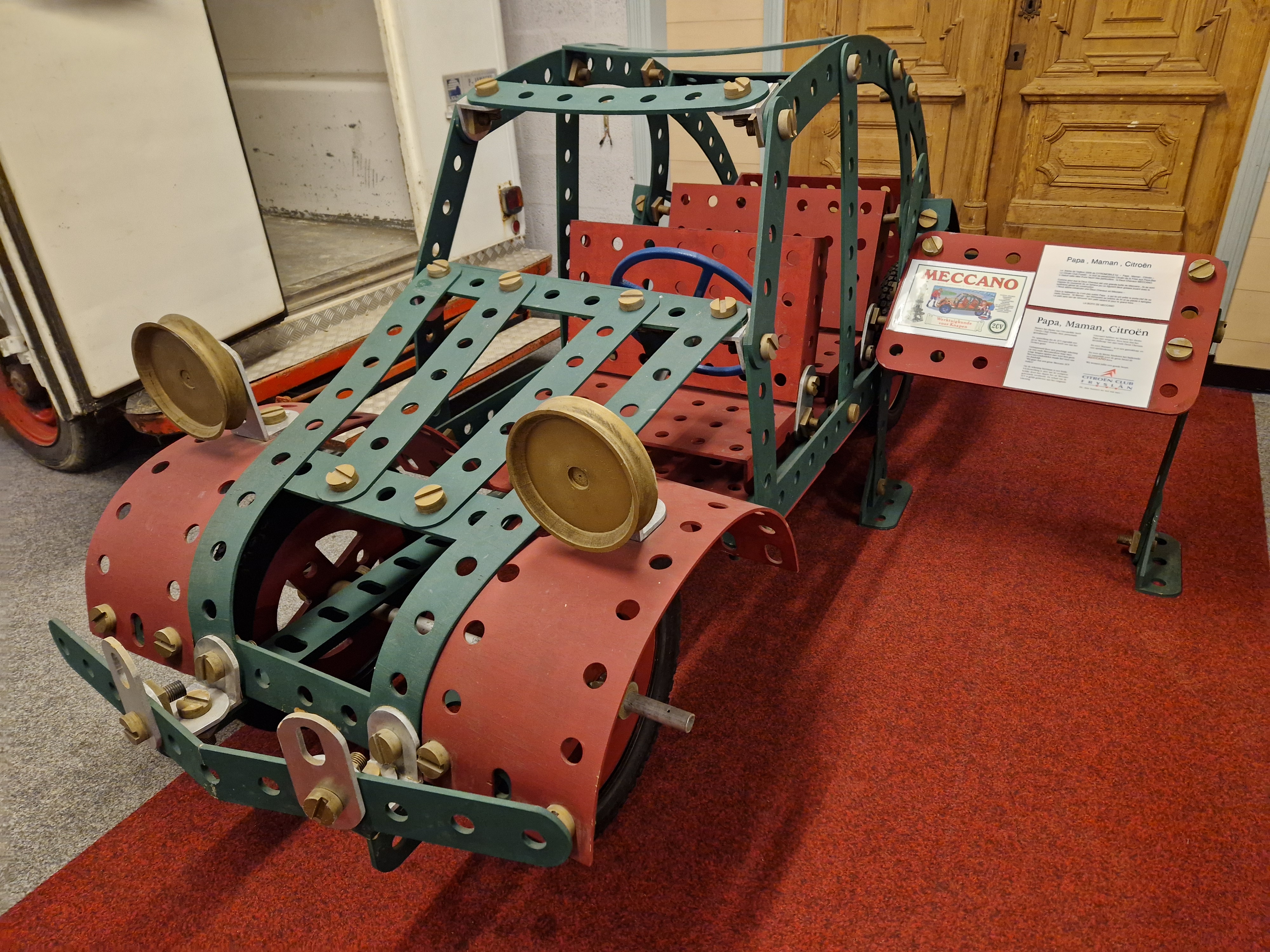 Janus met deur vóór en deur áchter, banken rug-aan-rug; Meccano-eend en zelfs Ford ontbreekt niet.