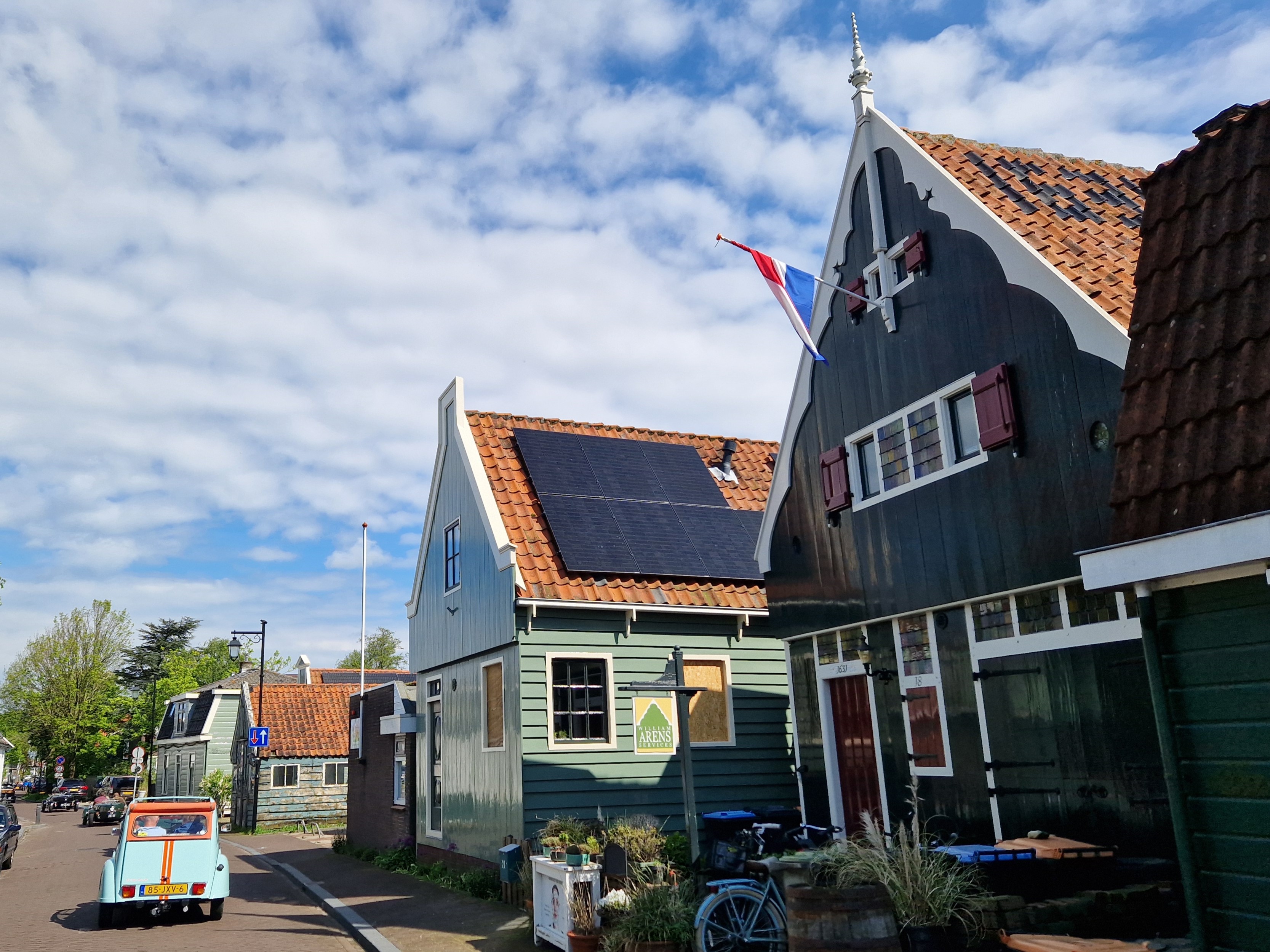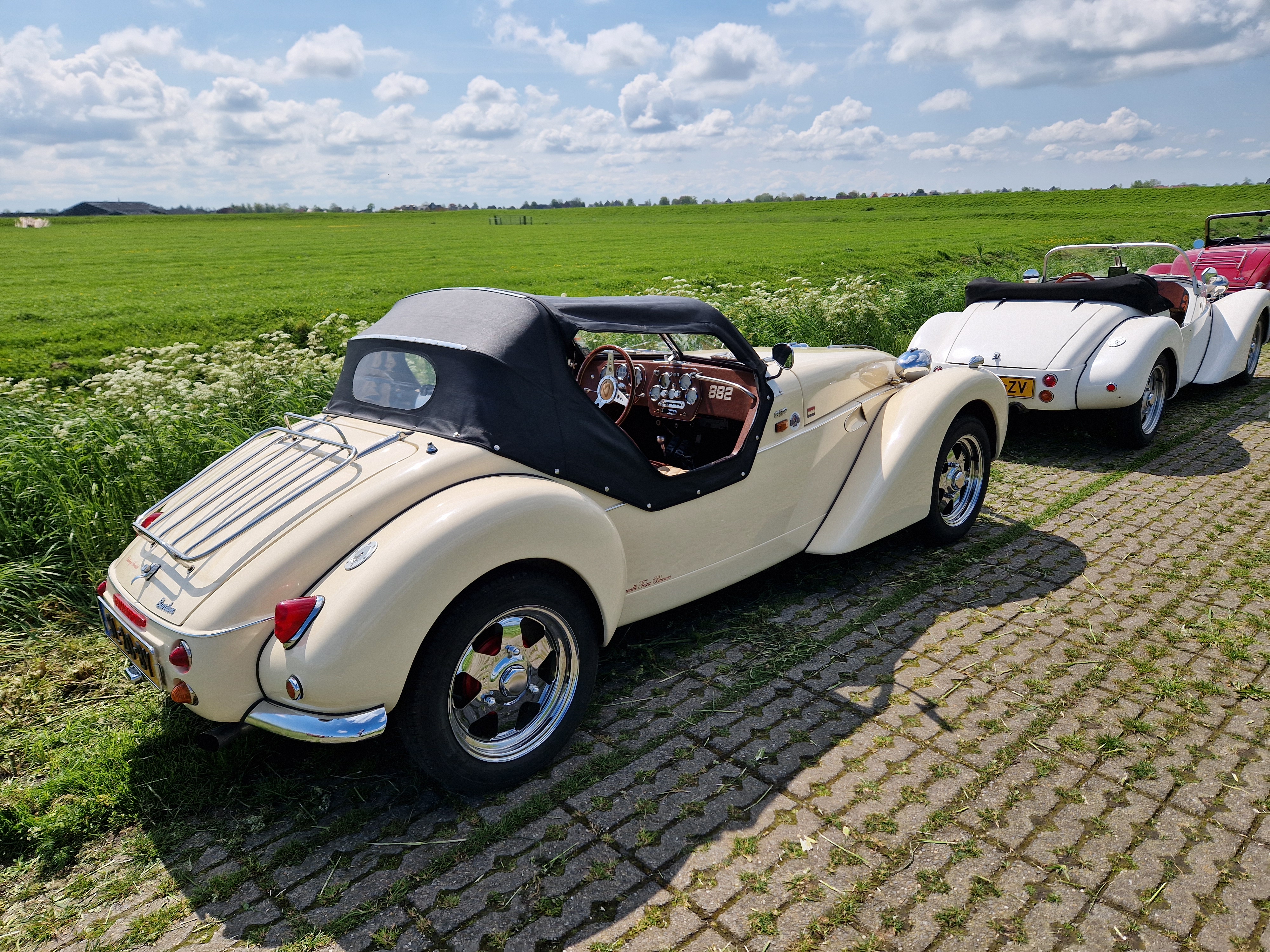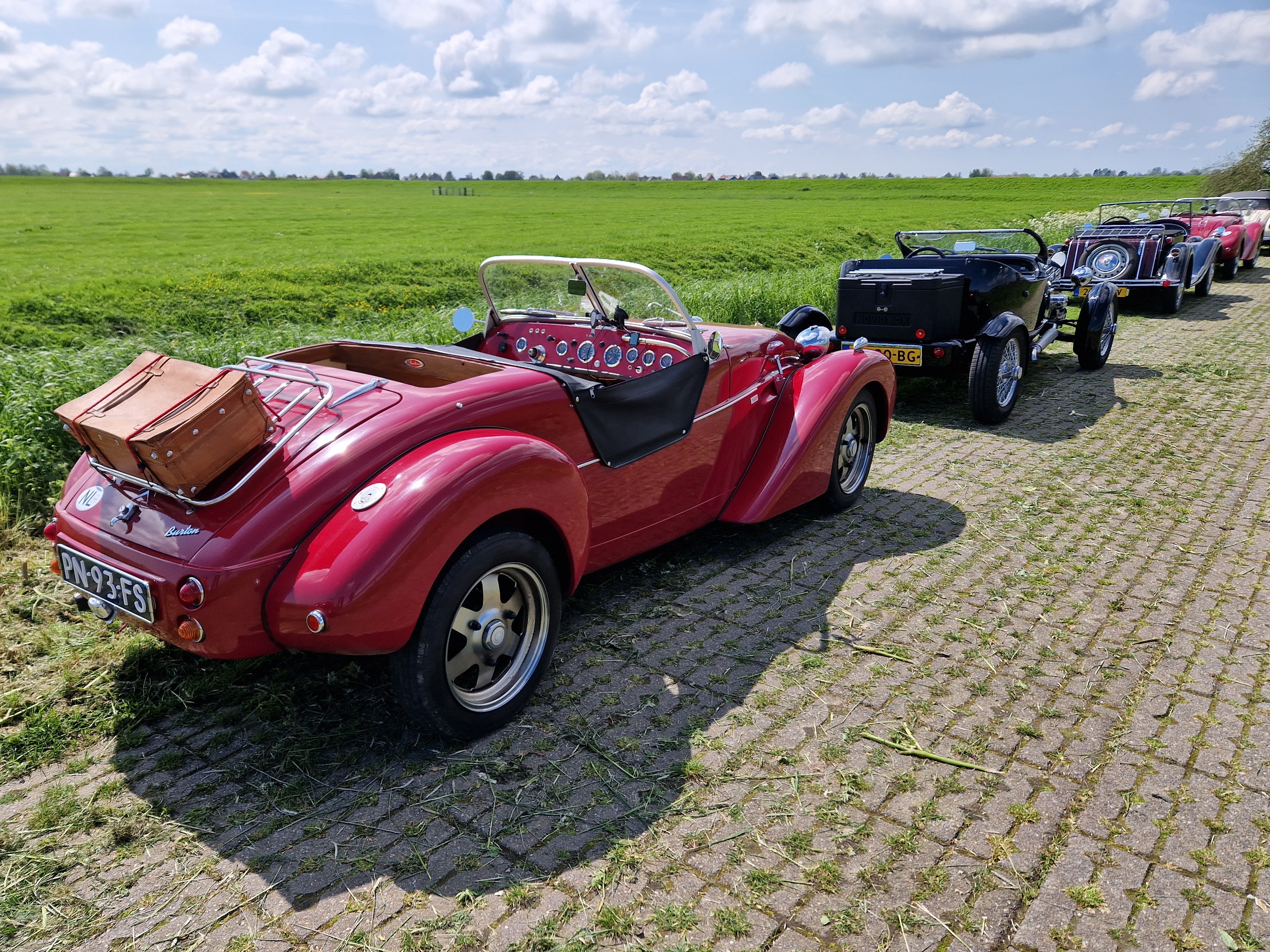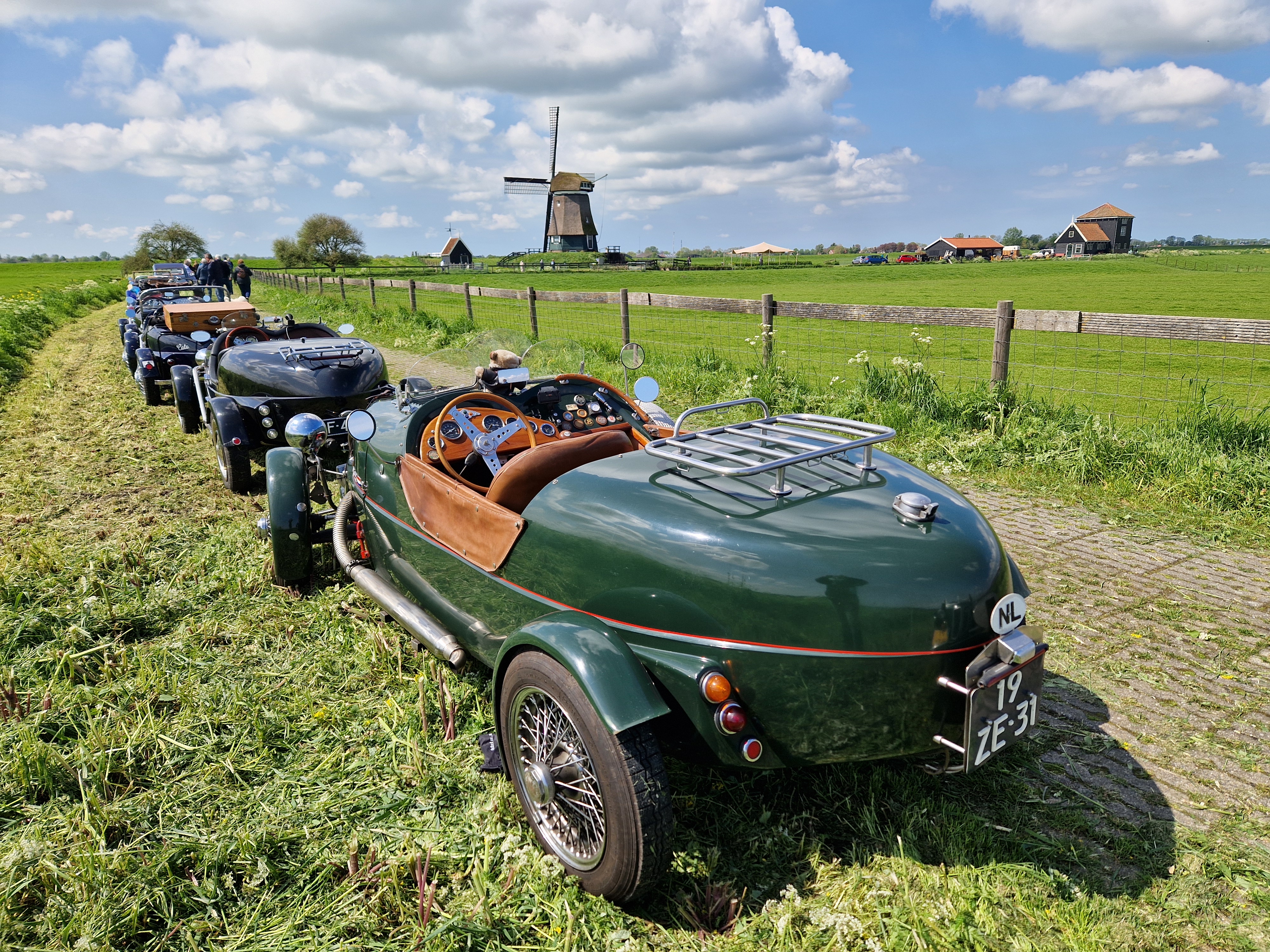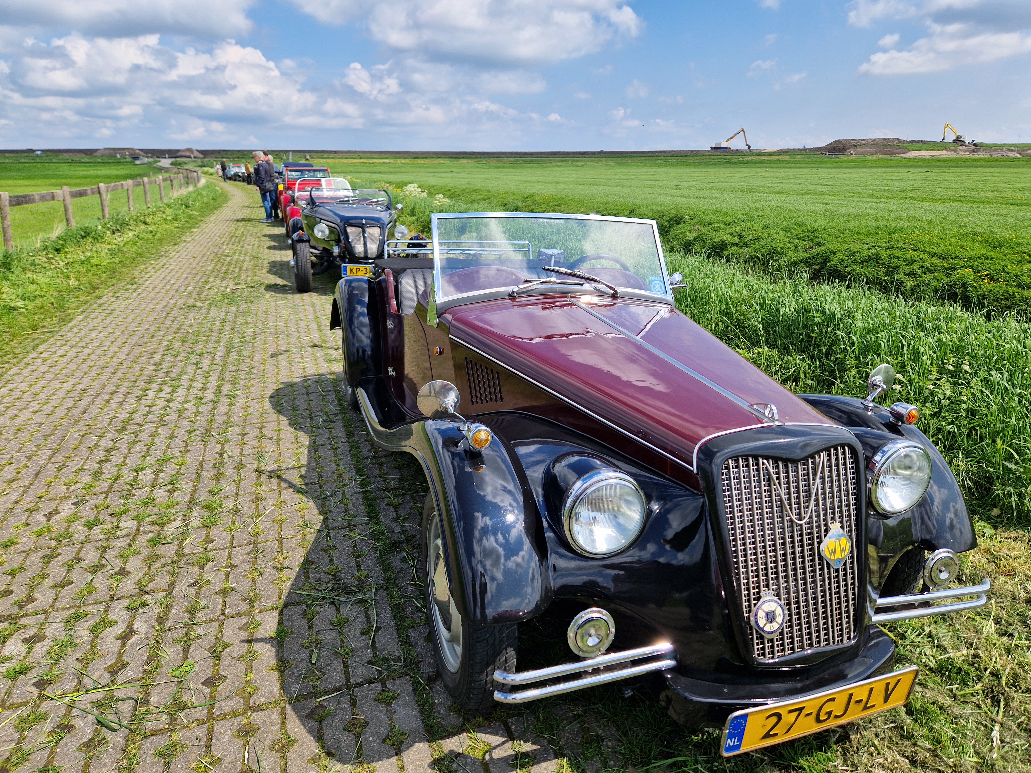 Daar gaan we! Langs de Zaans-groene huisjes en ’t Reght Huys van Westzaan. Het is 5 mei, overal hangt de vlag uit, overal stoppen mensen om onze optocht te filmen of te fotograferen. Kinderen zwaaien, wij toeteren terug. Het is tenslotte feest. Het moet ook een grappig gezicht en gehoor zijn, al die autootjes op basis van een 2CV, al die ronkende eendenmotortjes. Ze horen ons van verre aankomen.