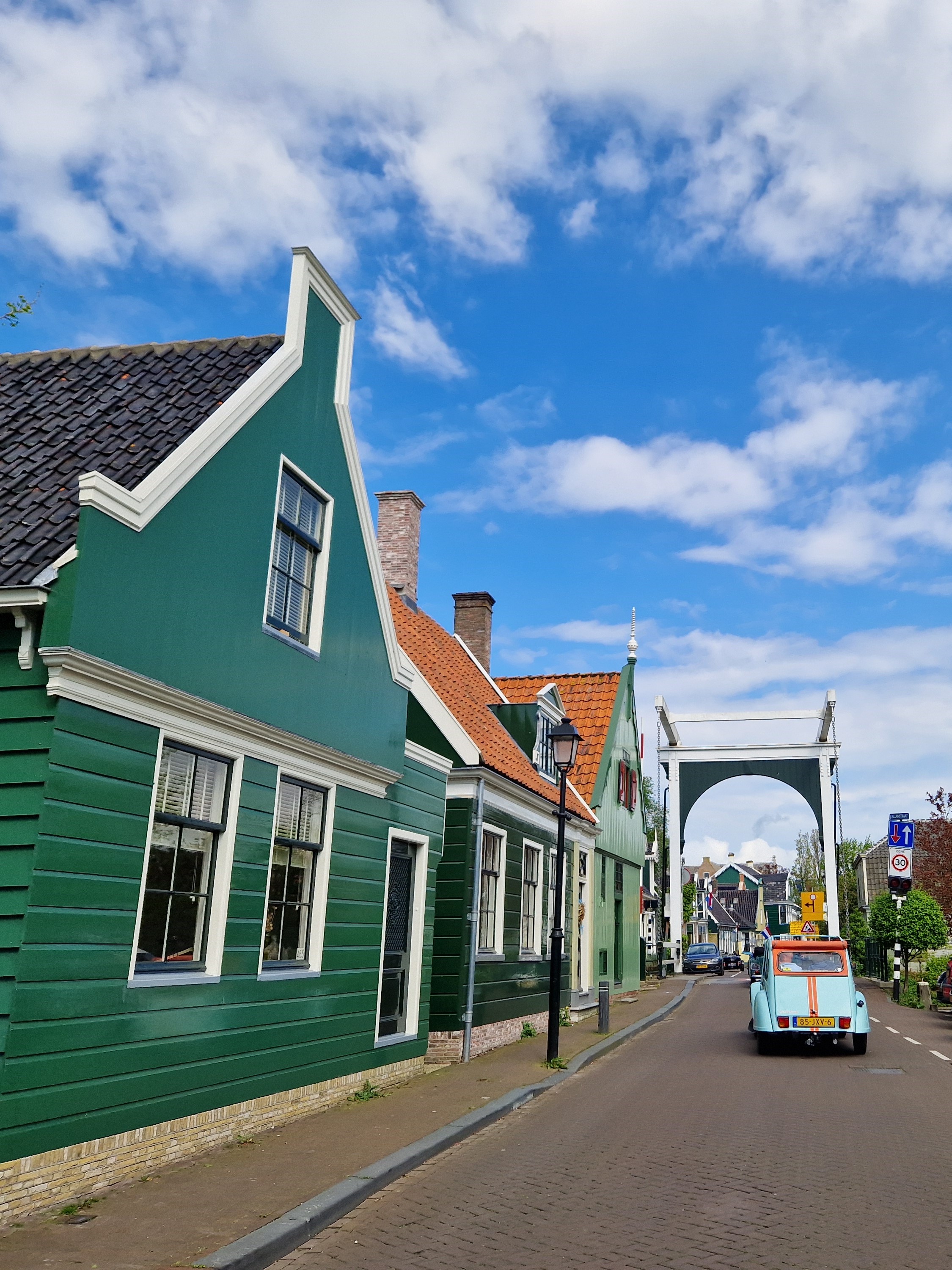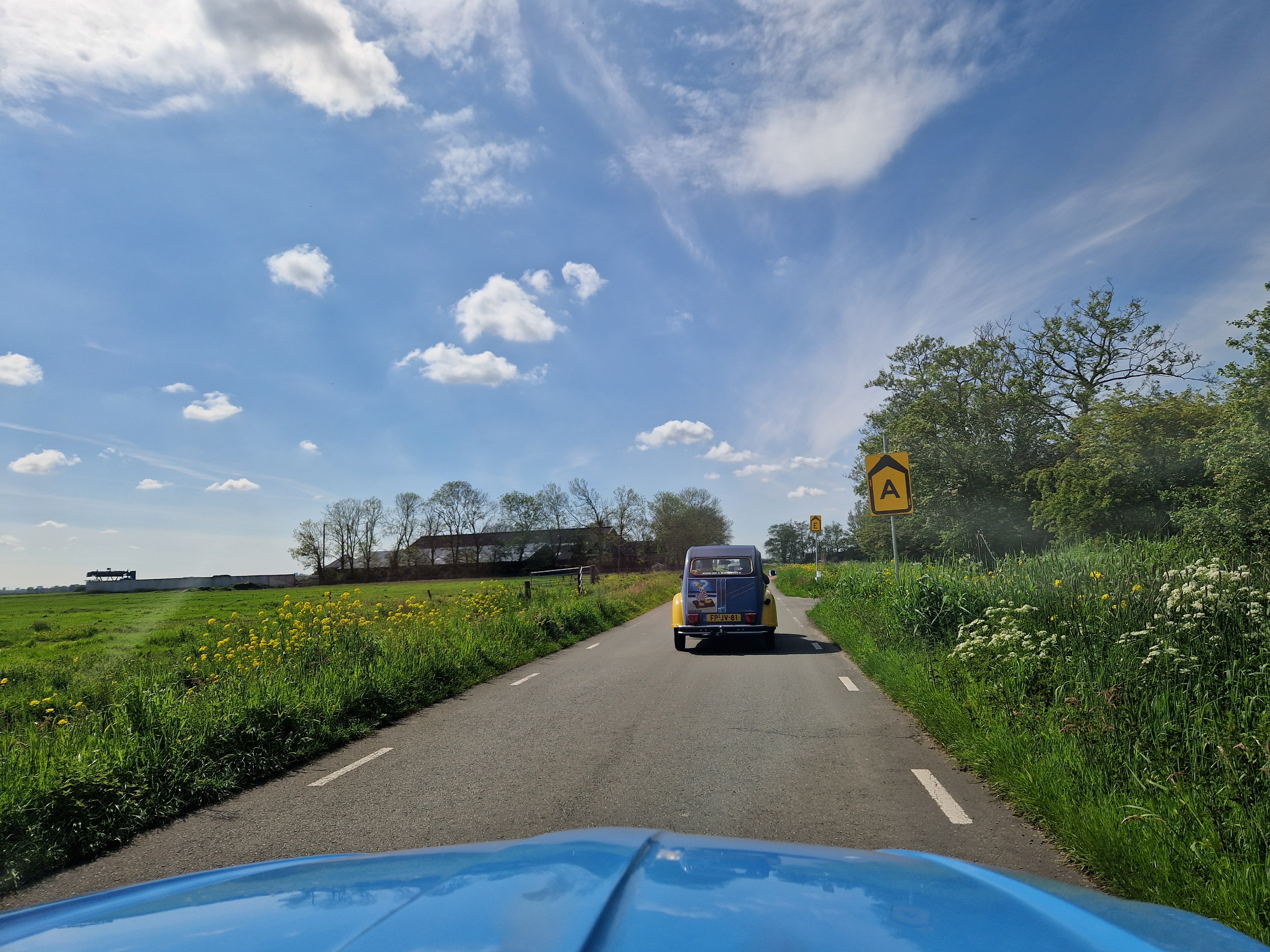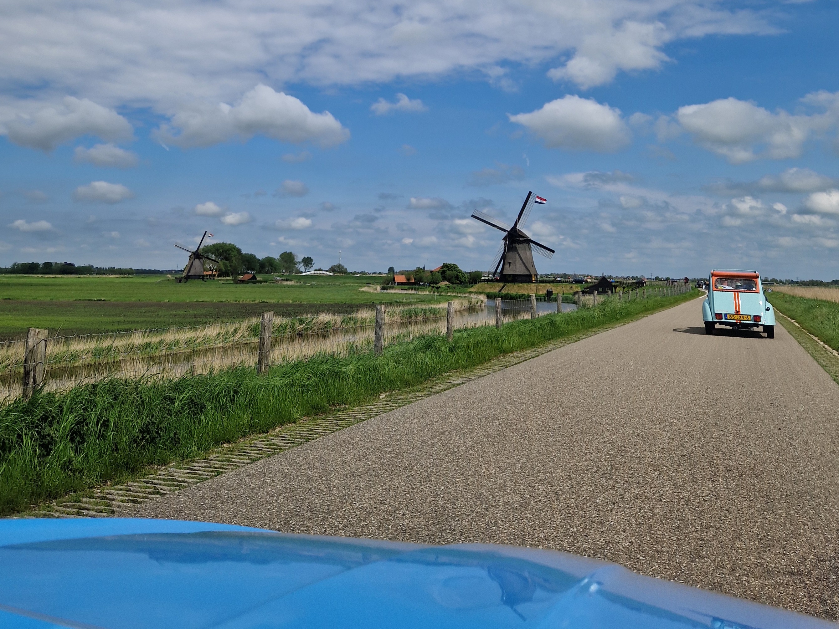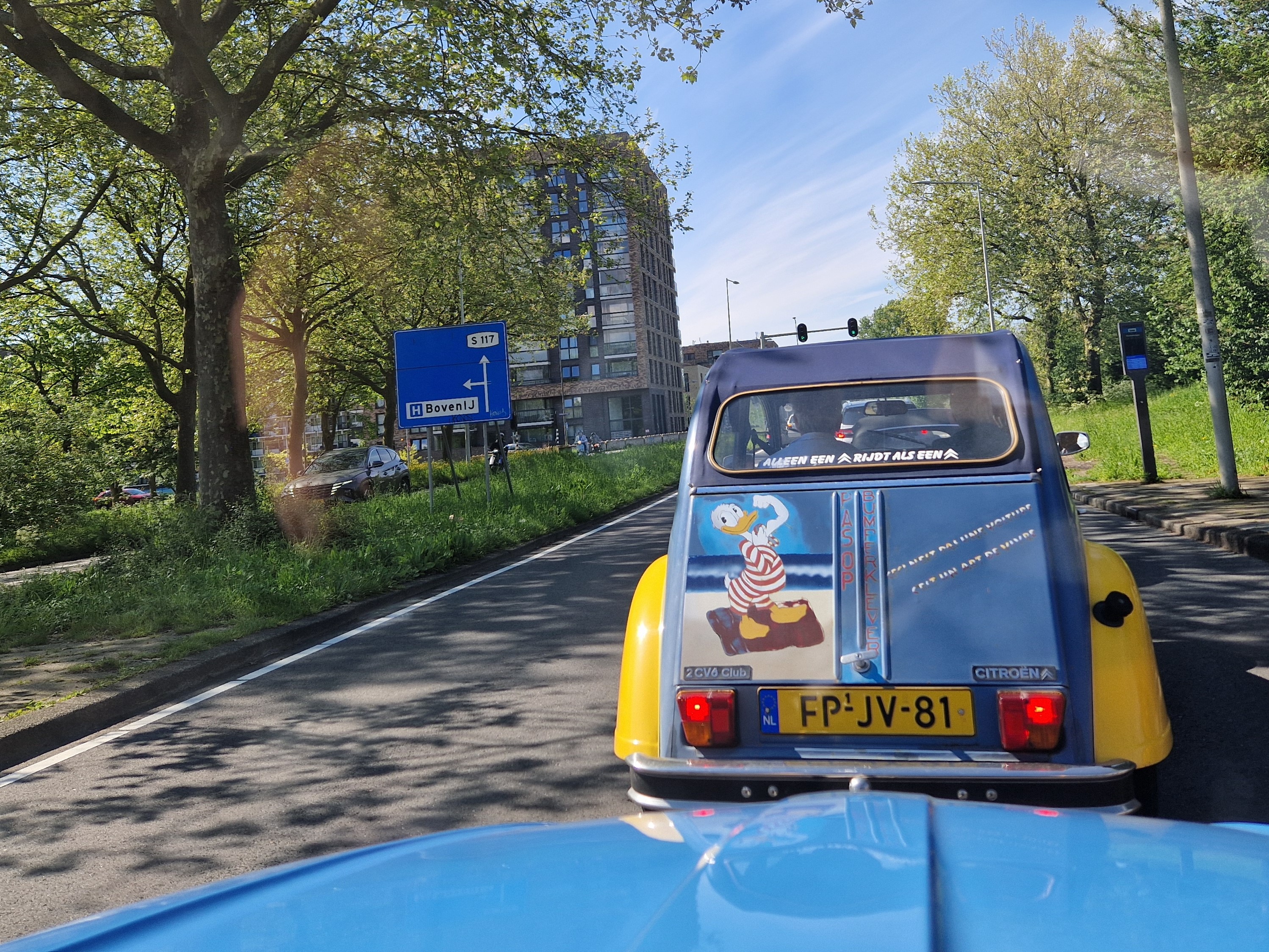 Onder het mom van “doe ‘es gek” gaan we “vreemd” met een tocht van de 2CV Kitcar Club. Vertrek vanuit Zaandam, dus voor ons een “bijna-thuis” rit. Het is nog frisjes maar het belooft een mooie dag te worden.