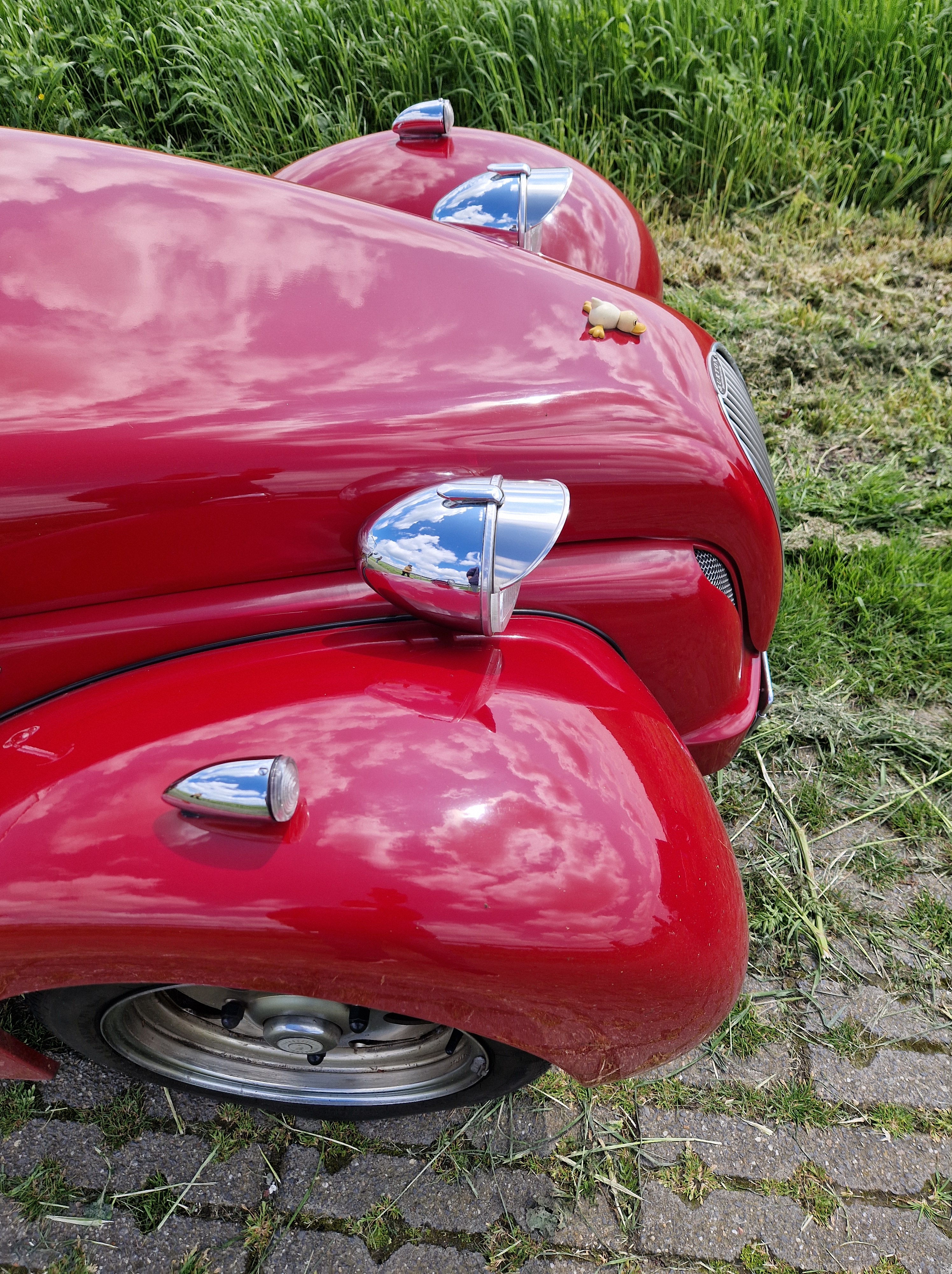 Als de koffie op is worden we welkom geheten door Walter, de voorzitter van de 2CV-KCC. Arthur, de organisator van deze Dammentocht vertelt wat over de route. Andere sprekers krijgen de microfoon om diverse evenementen te promoten, Christ van de 2CV Club Nederland benoemt onze rit op 1e pinksterdag in Limburg. Onderwijl loop ik stiekem een rondje foto’s te maken. Zoveel kleuren en uitvoeringen van de “zelfbouwers”: Burtons, Lomaxen (low cost, max fun) en Le Patrons, ik kijk mijn ogen uit. Er zijn er geen twee hetzelfde!