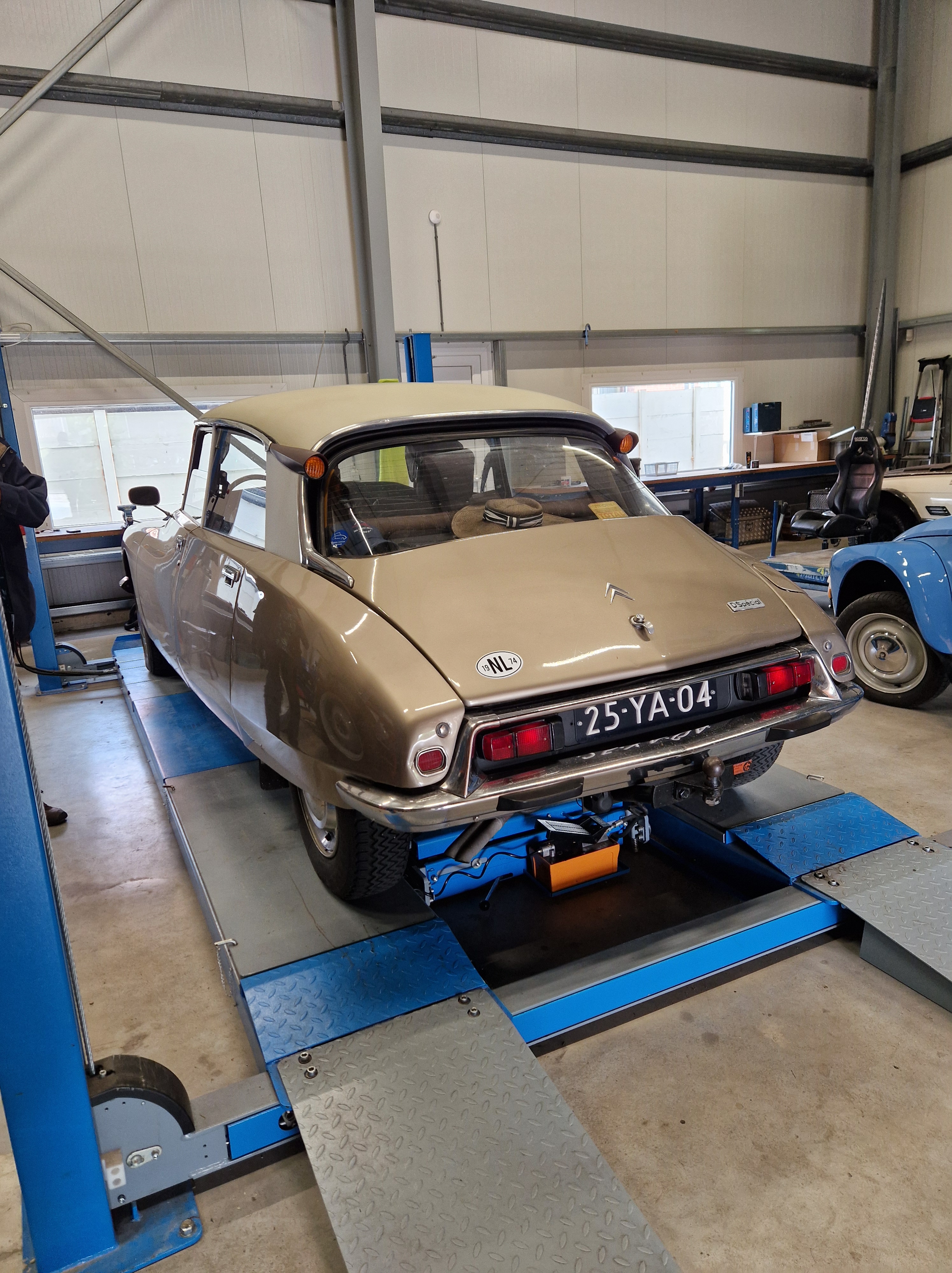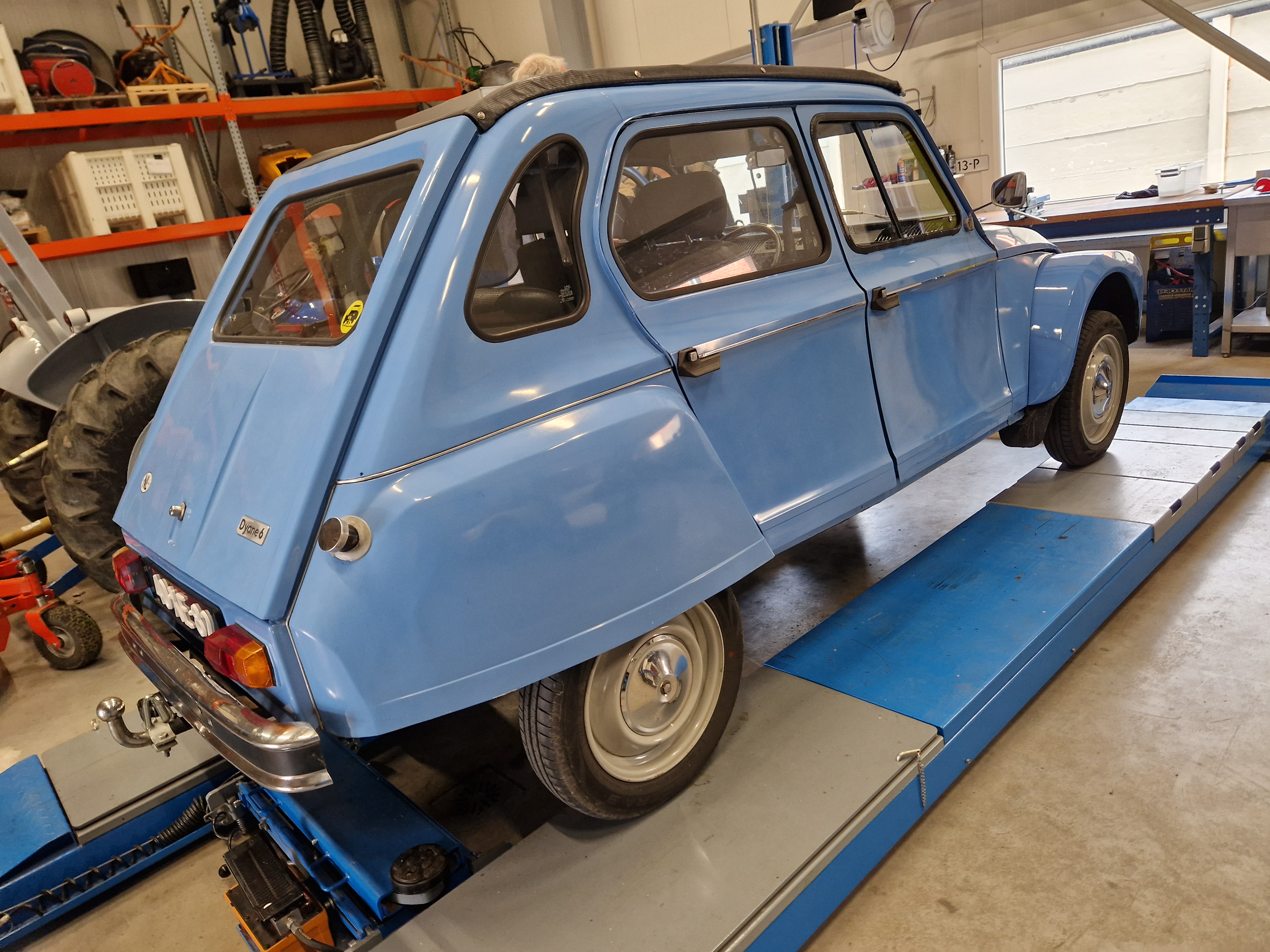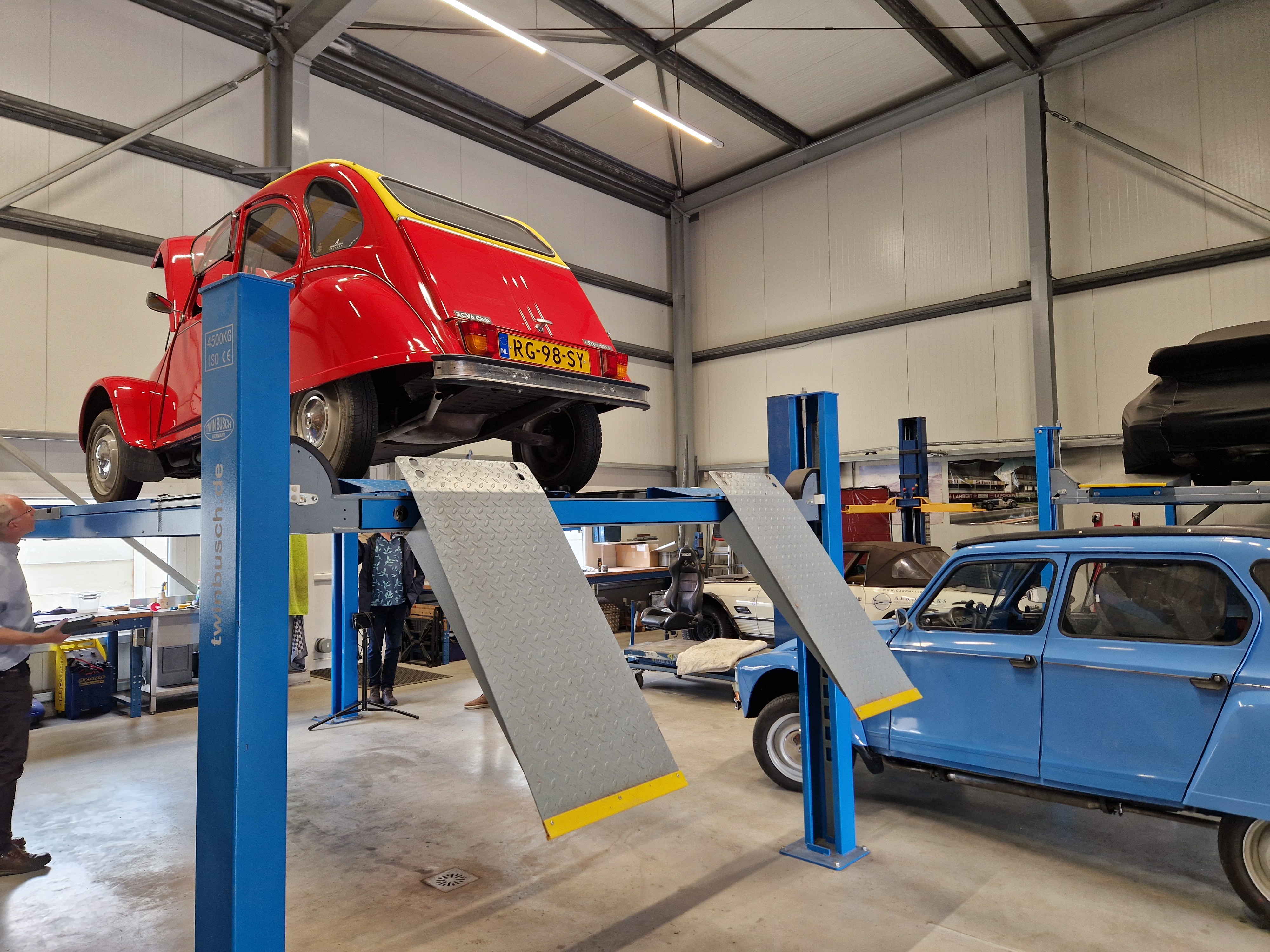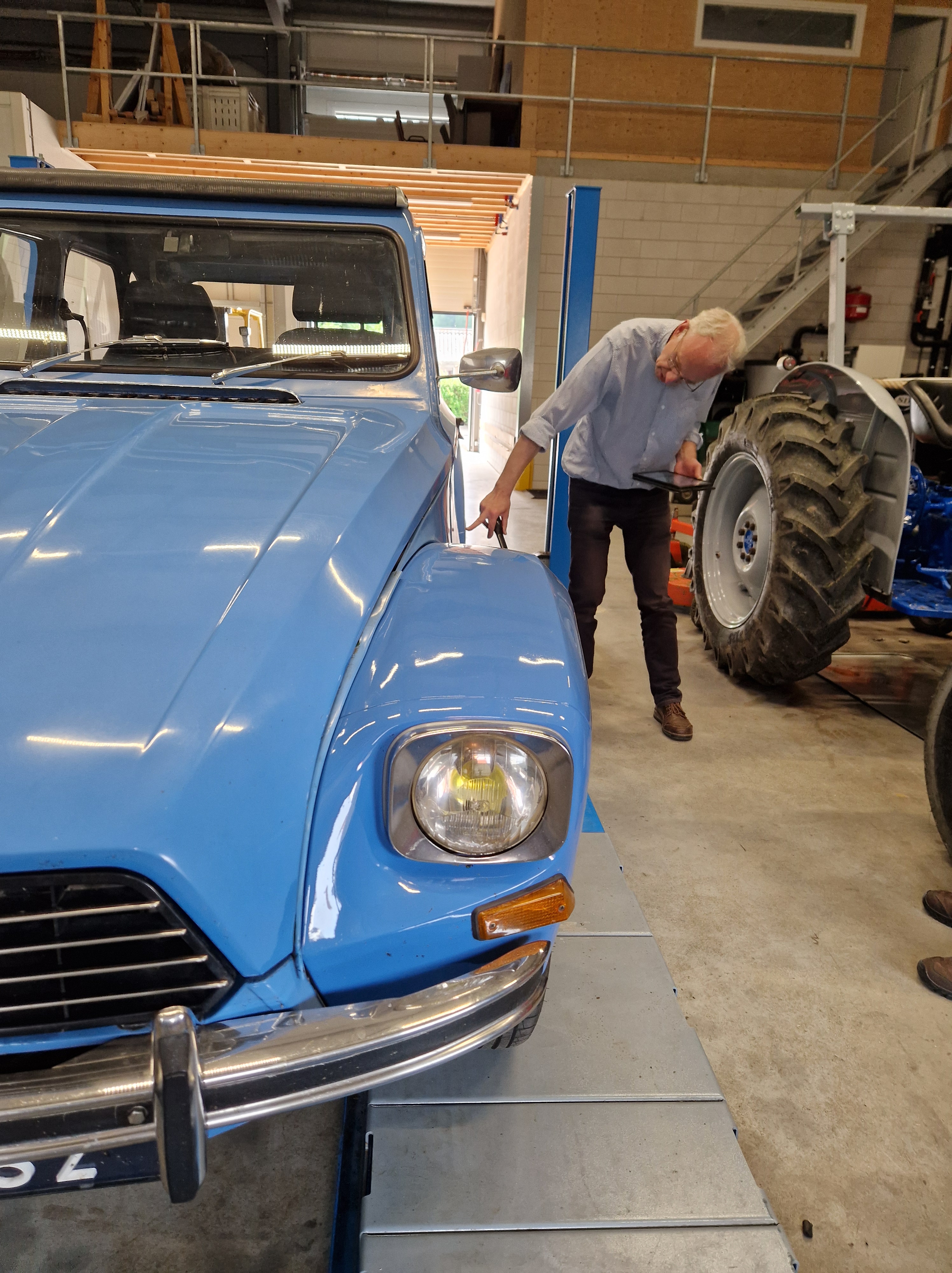 Vandaag is het zover. De rode eend met karakteristiek geel dak van Bertus, medeclublid uit het dorp, staat al te trappelen. Alle details worden bekeken en onder de loep gelegd. De 5e deur, vergrote achterklep, is een aanwinst. Dan mag de brug omhoog. Met een lampje wordt de onderkant geïnspecteerd, met een tooltje wordt het profiel van de banden gemeten. Secuur worden alle gegevens ingeklopt op de tablet.