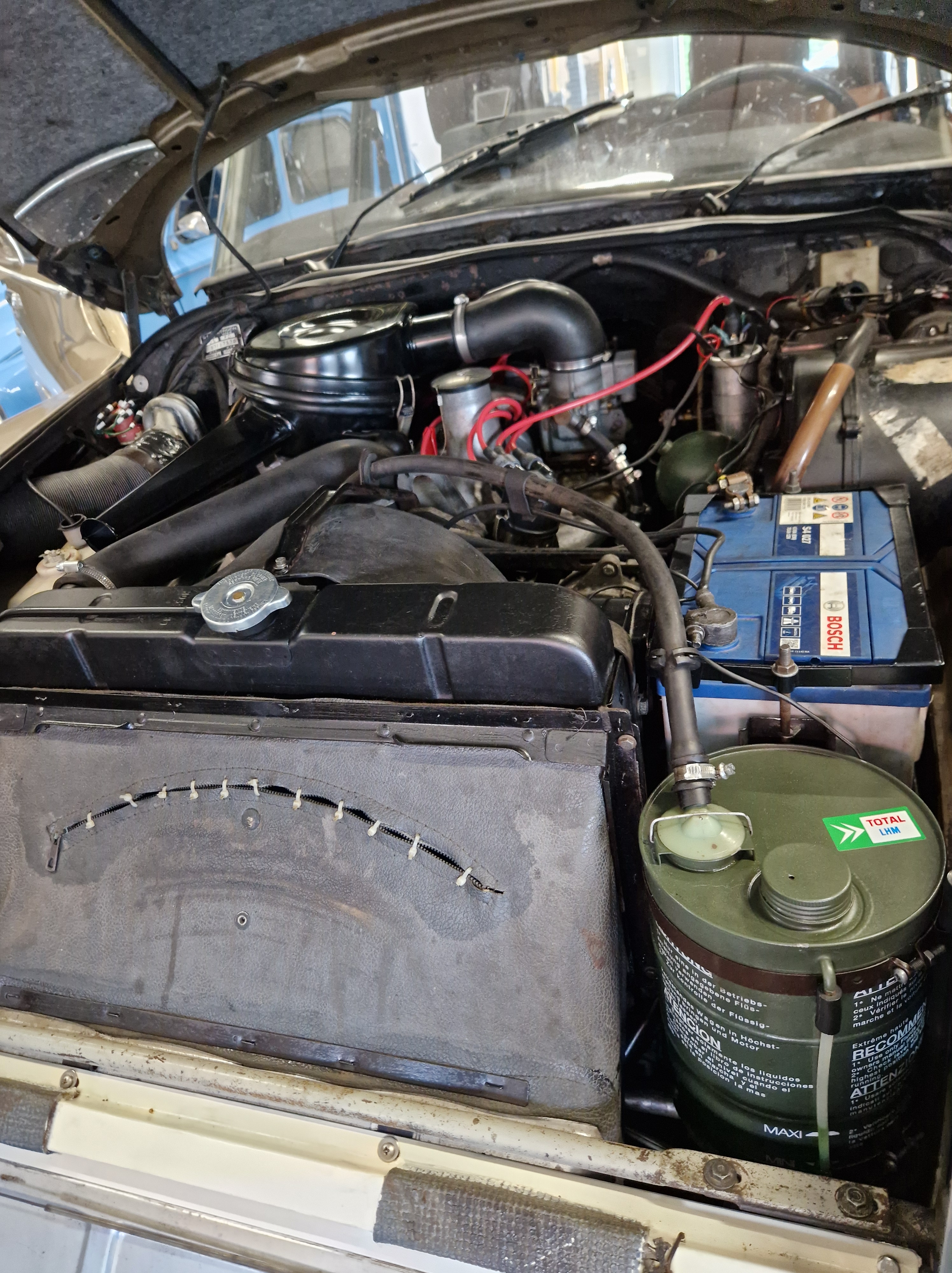 Dyaantje is als volgende aan de beurt. De procedure wordt herhaald, poeren in de banden (reserve band is nog nieuw) en met een lampje om onmogelijke hoekjes gluren. De nieuwe veerpotten, nieuwe ventilatiebuizen en de nieuwe grote benzinetank worden waarderend bekeken.