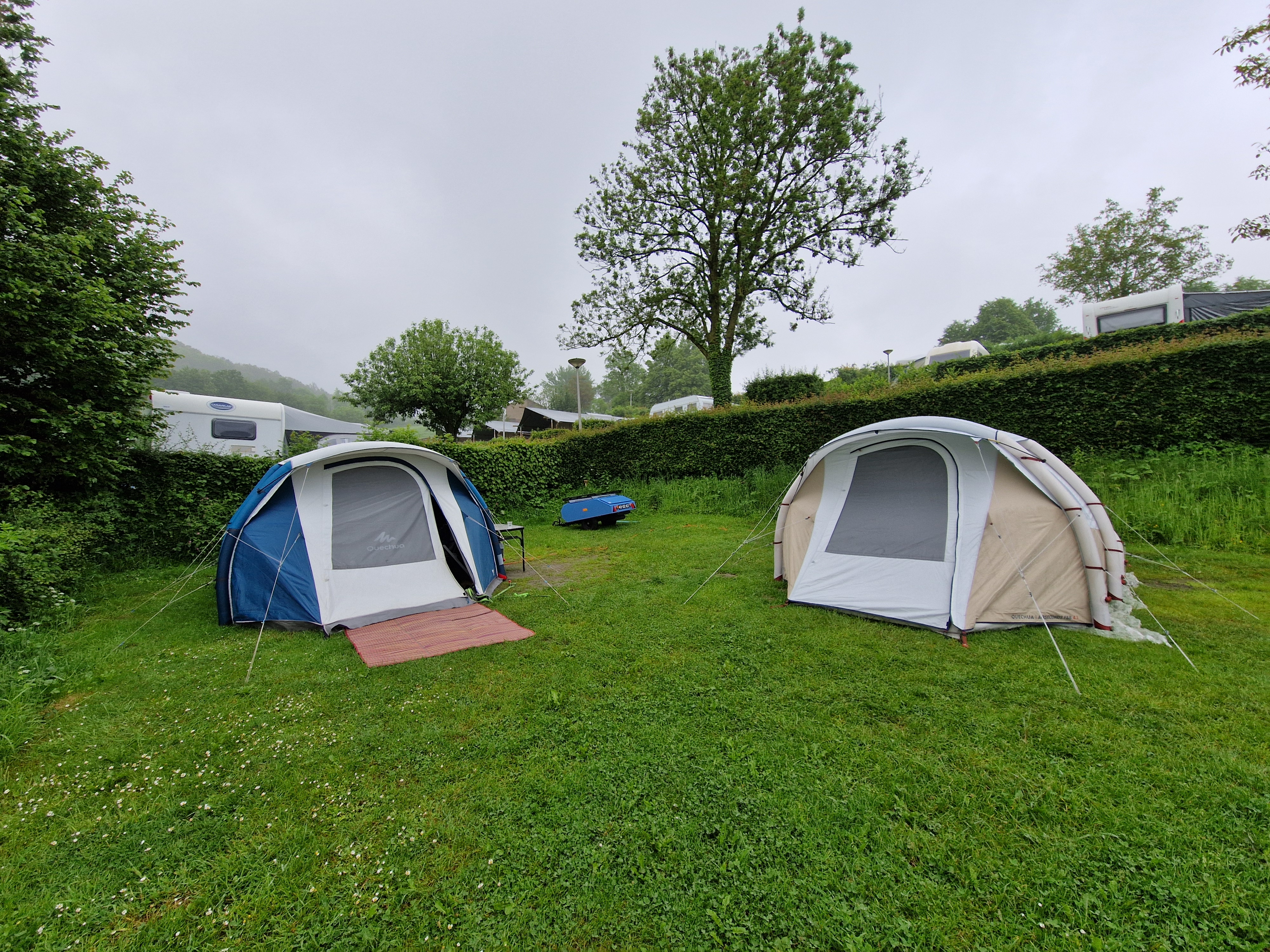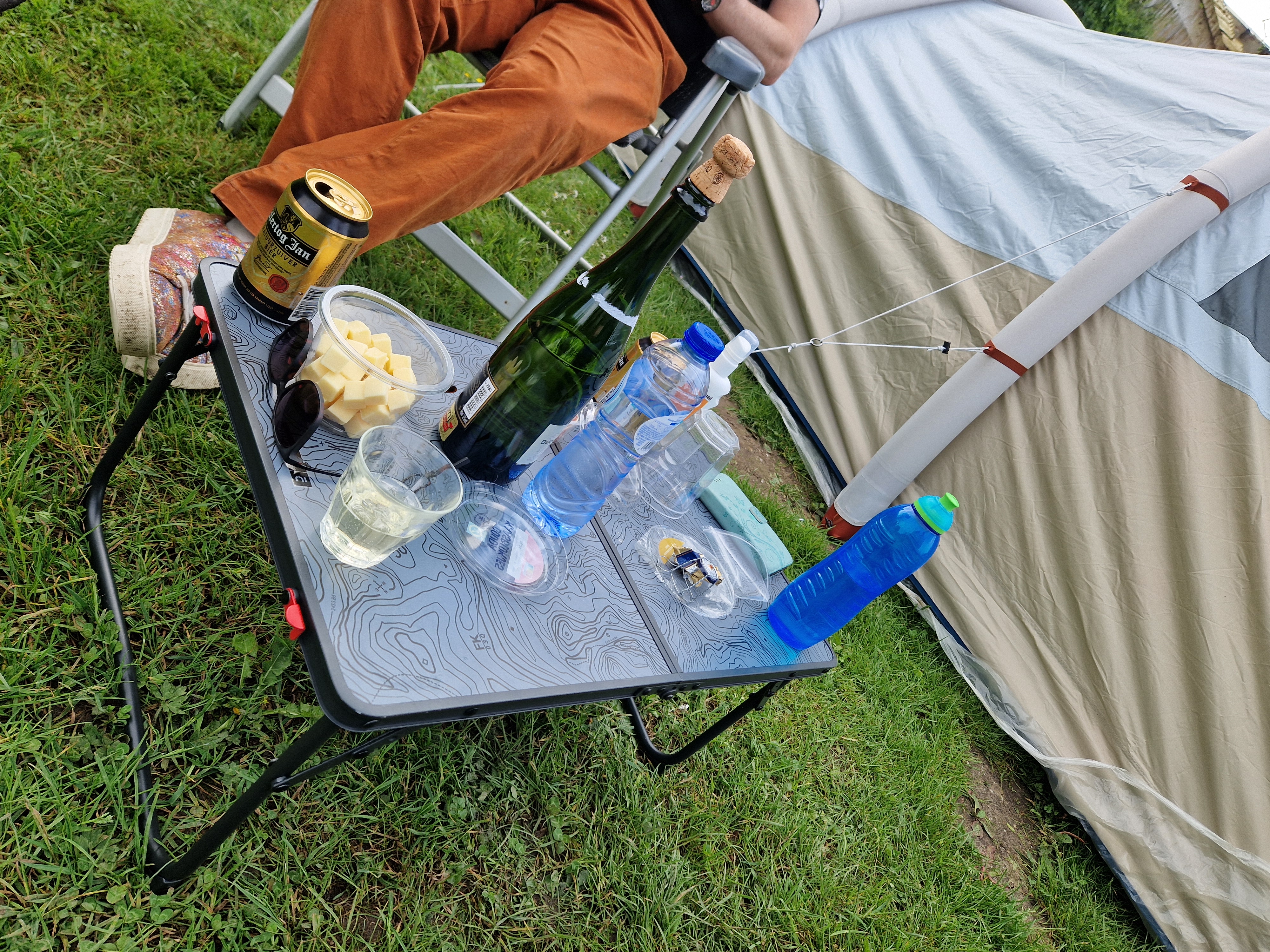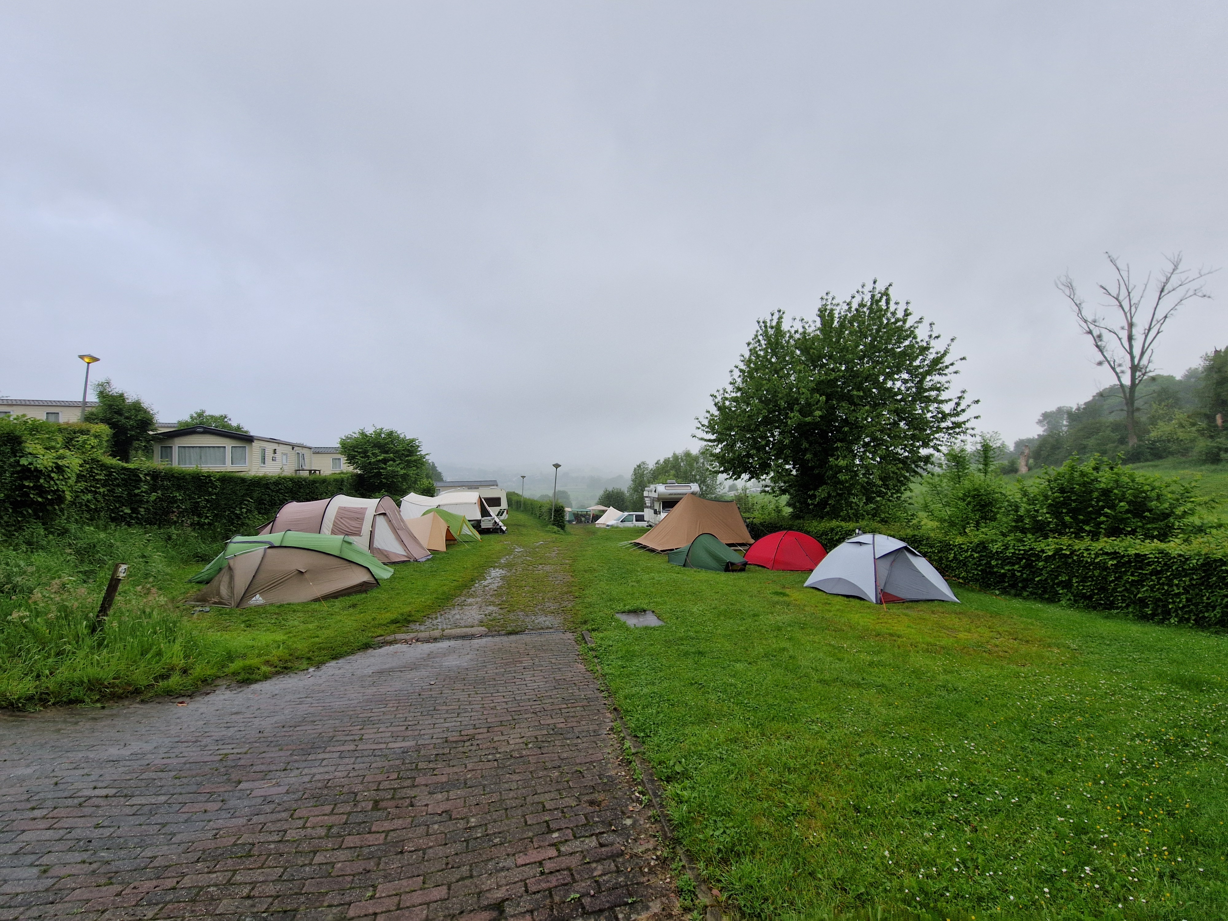 Na een chaosweek waarin NIETS ging zoals ik wilde/gepland had, staan de kampeerspullen eindelijk ongeveer bij elkaar verzameld. Ondertussen zaten we in Noord-Holland in de tuin in de zon, terwijl Zuid-Limburg een bak regen over zich heen kreeg. Weersvoorspellingen voor het weekend waren navenant. Zaterdagochtend. Overstromingen in Limburg, campings ontruimd. Dat belooft wat. De appjes van iedereen (“weet je wel dat…” “zou je wel gaan…” etc.) wrijven wat extra zout in de wonde. We gáán en zien wel waar het schip strandt. Hoe hard het regent en wat we allemaal teveel of te weinig mee hebben, er is nu niets meer aan te doen. We zijn weg!