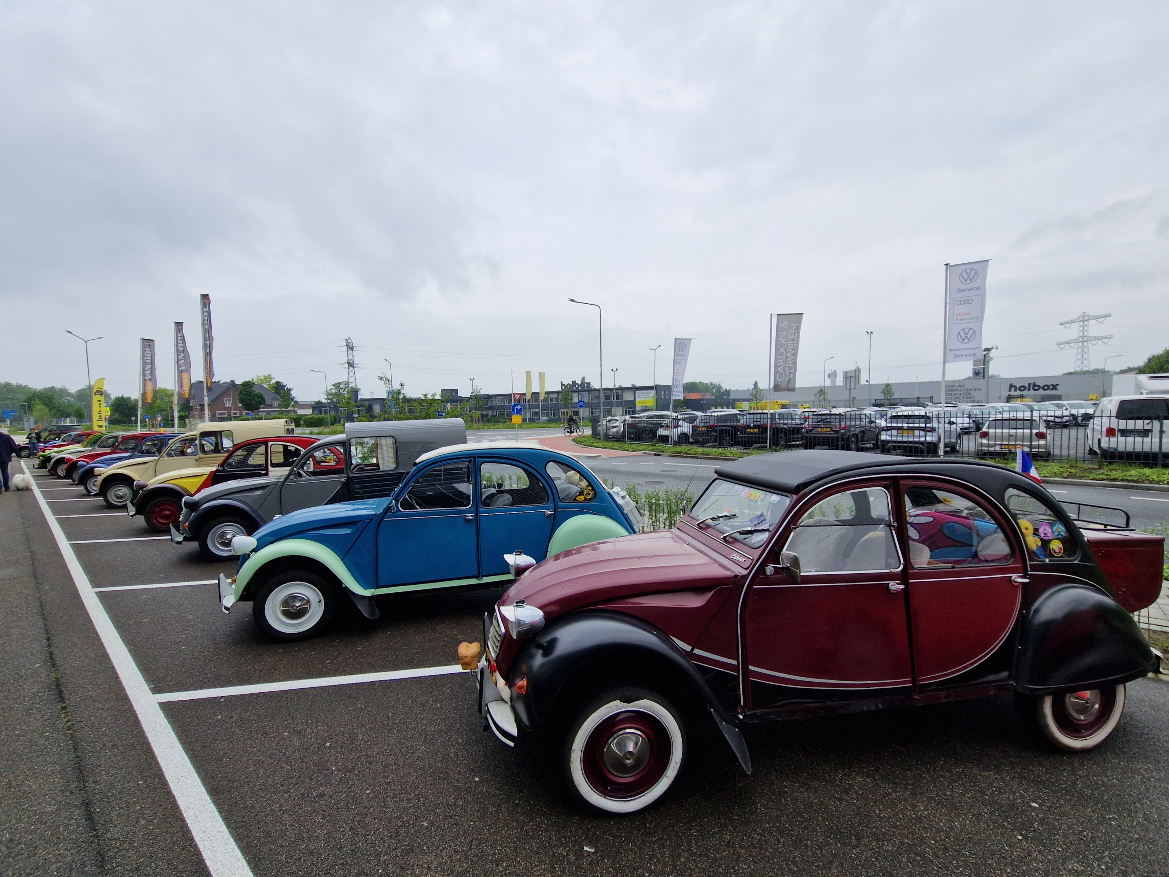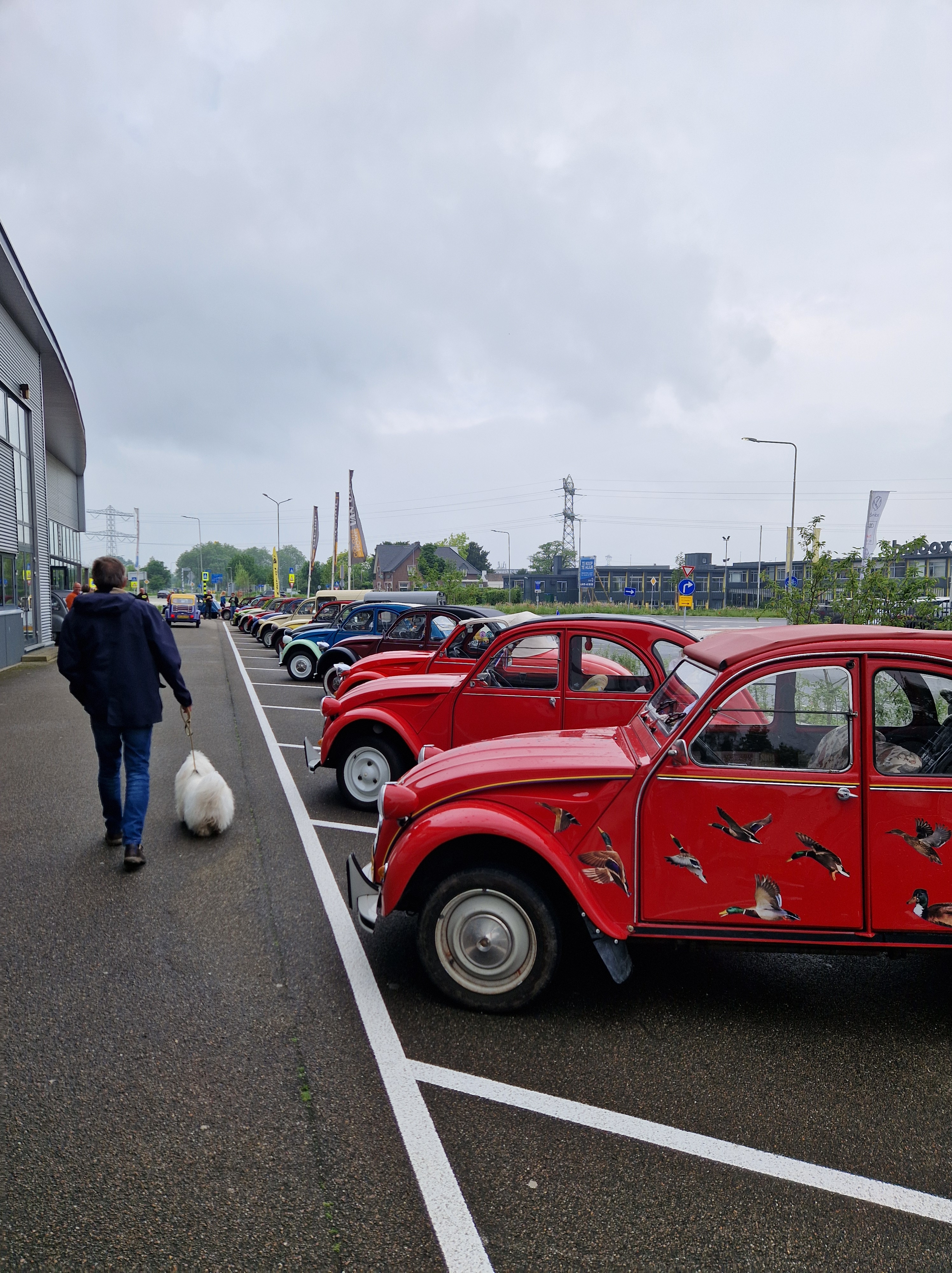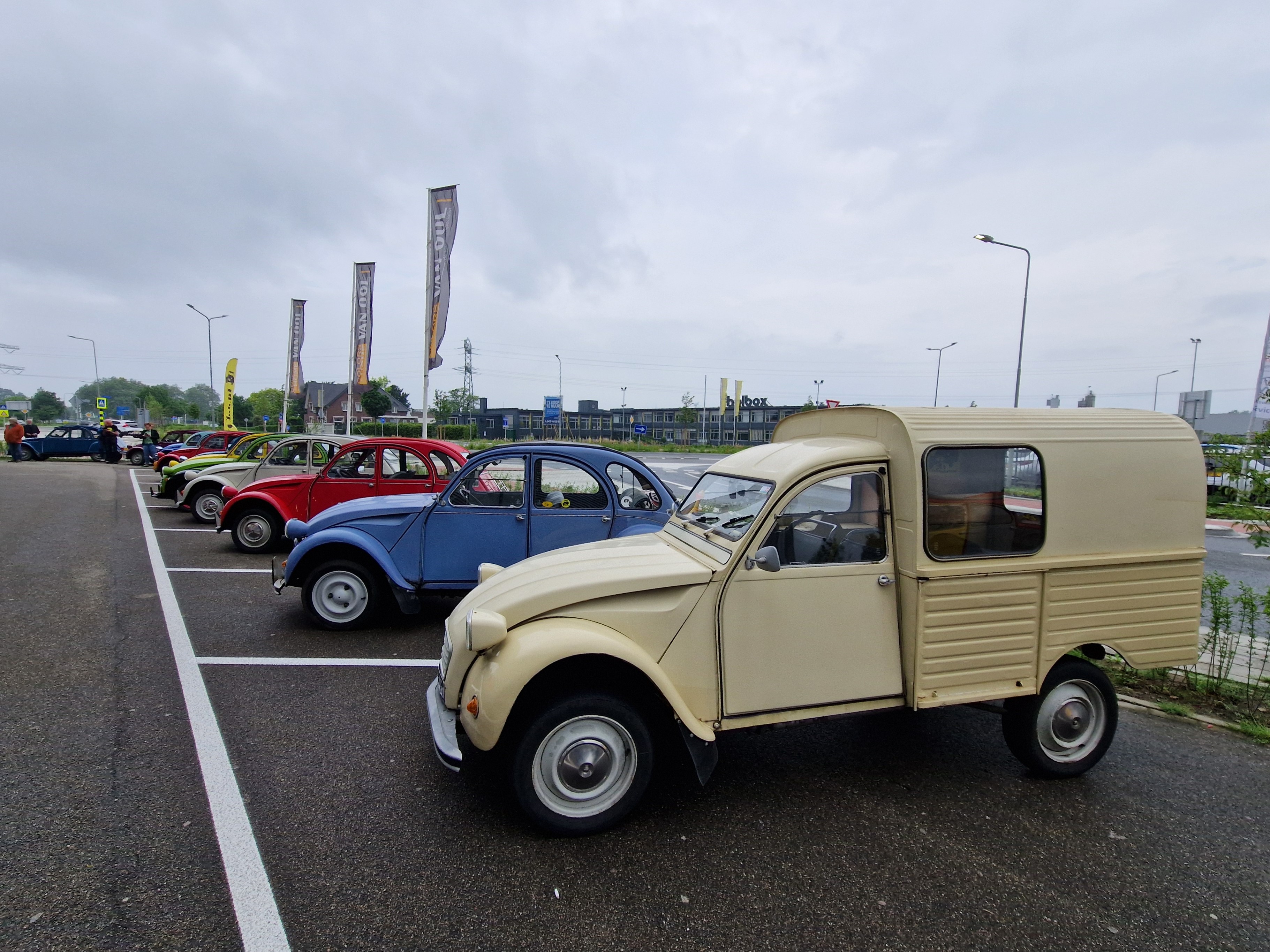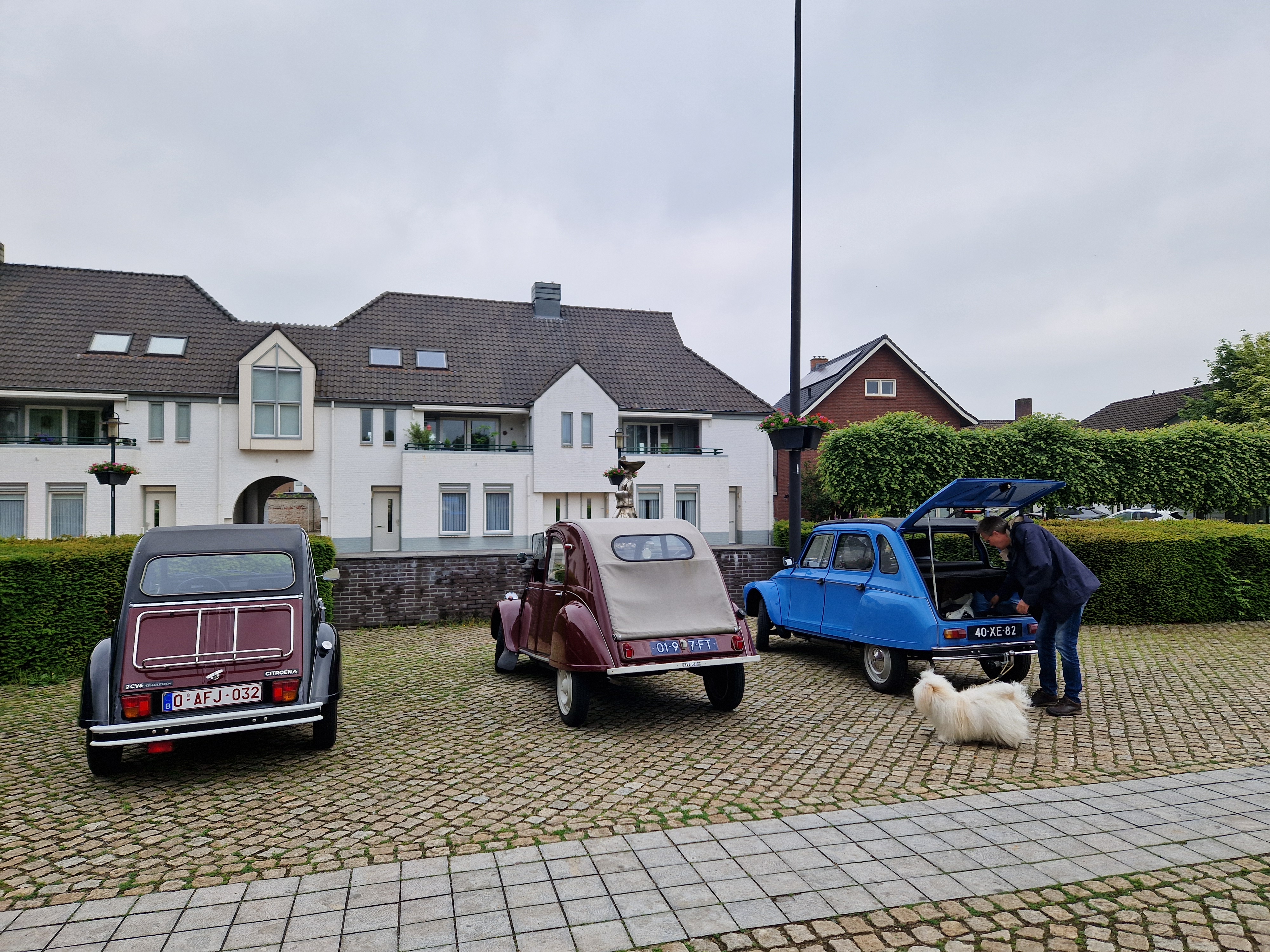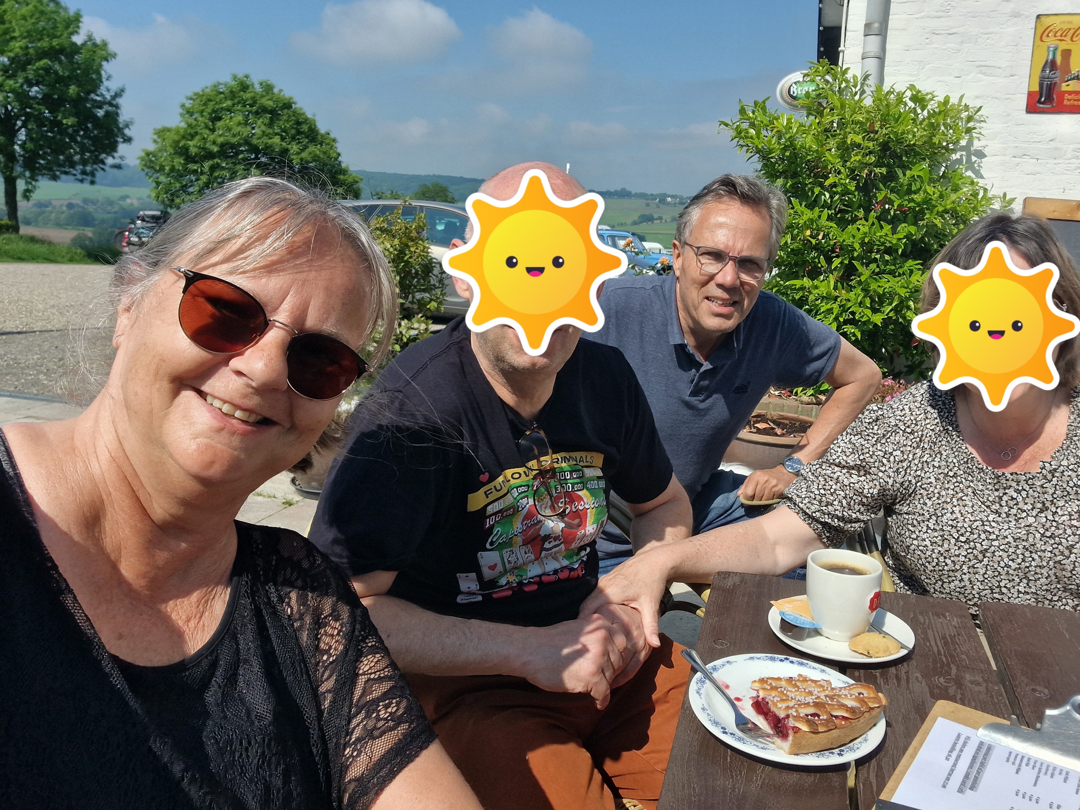 We vertrekken naar het startpunt van de tocht in Echt, waar we worden ontvangen met koffie en vlaai. Bijkletsen met Els, collega redactielid van de club. Achterin de zaak verstaan we niets van het welkomstpraatje, maar dat mag de pret niet drukken.