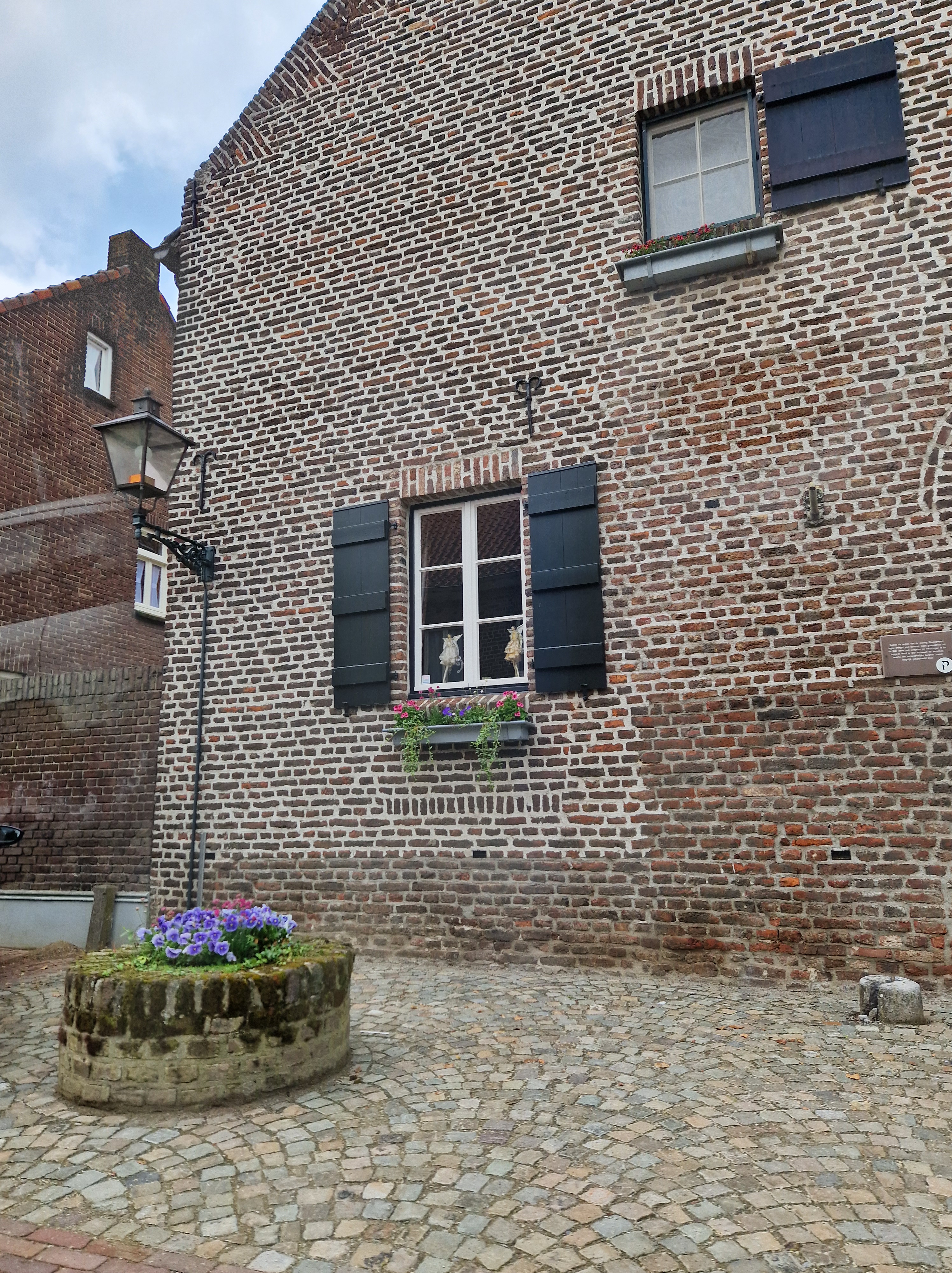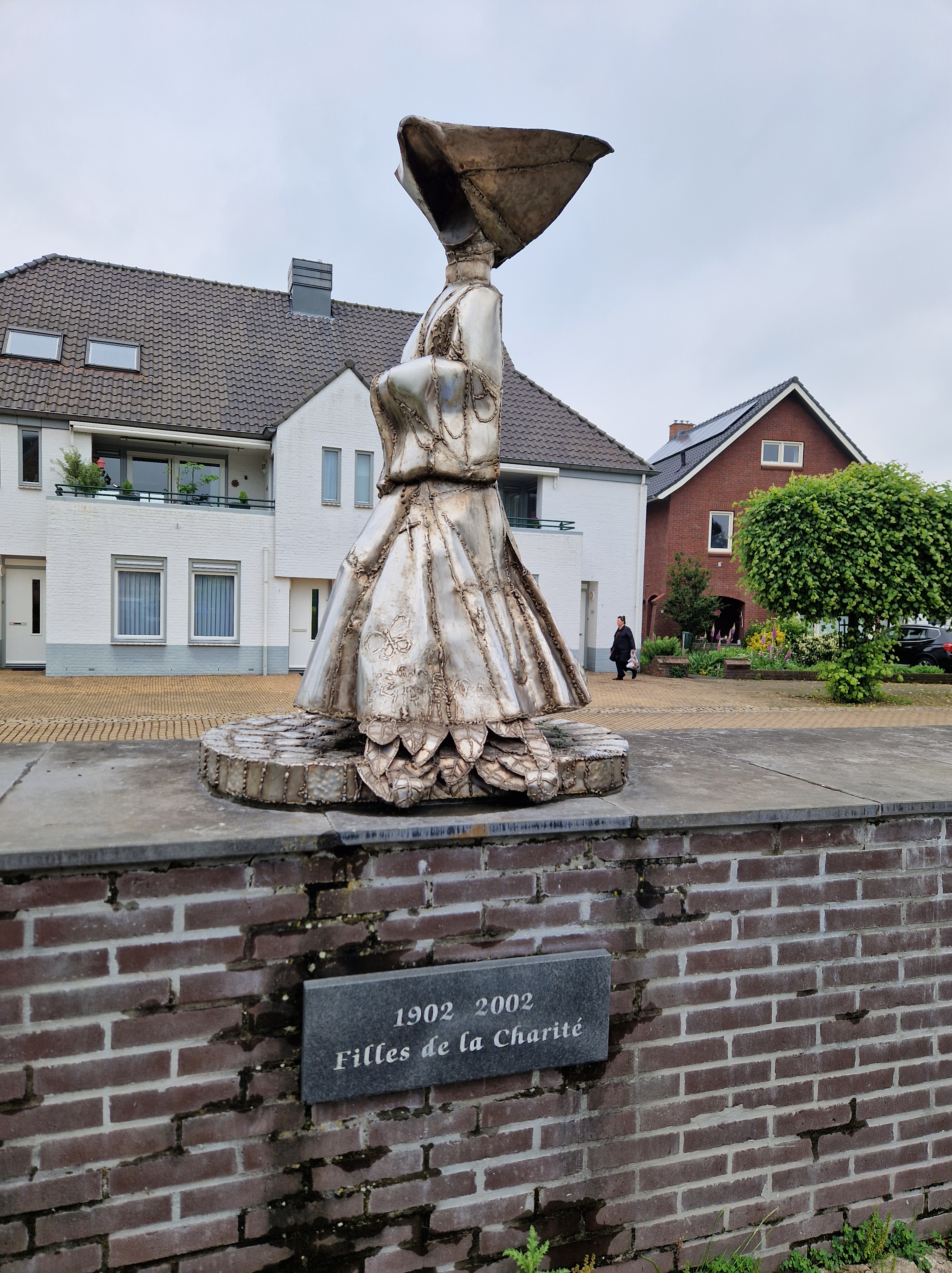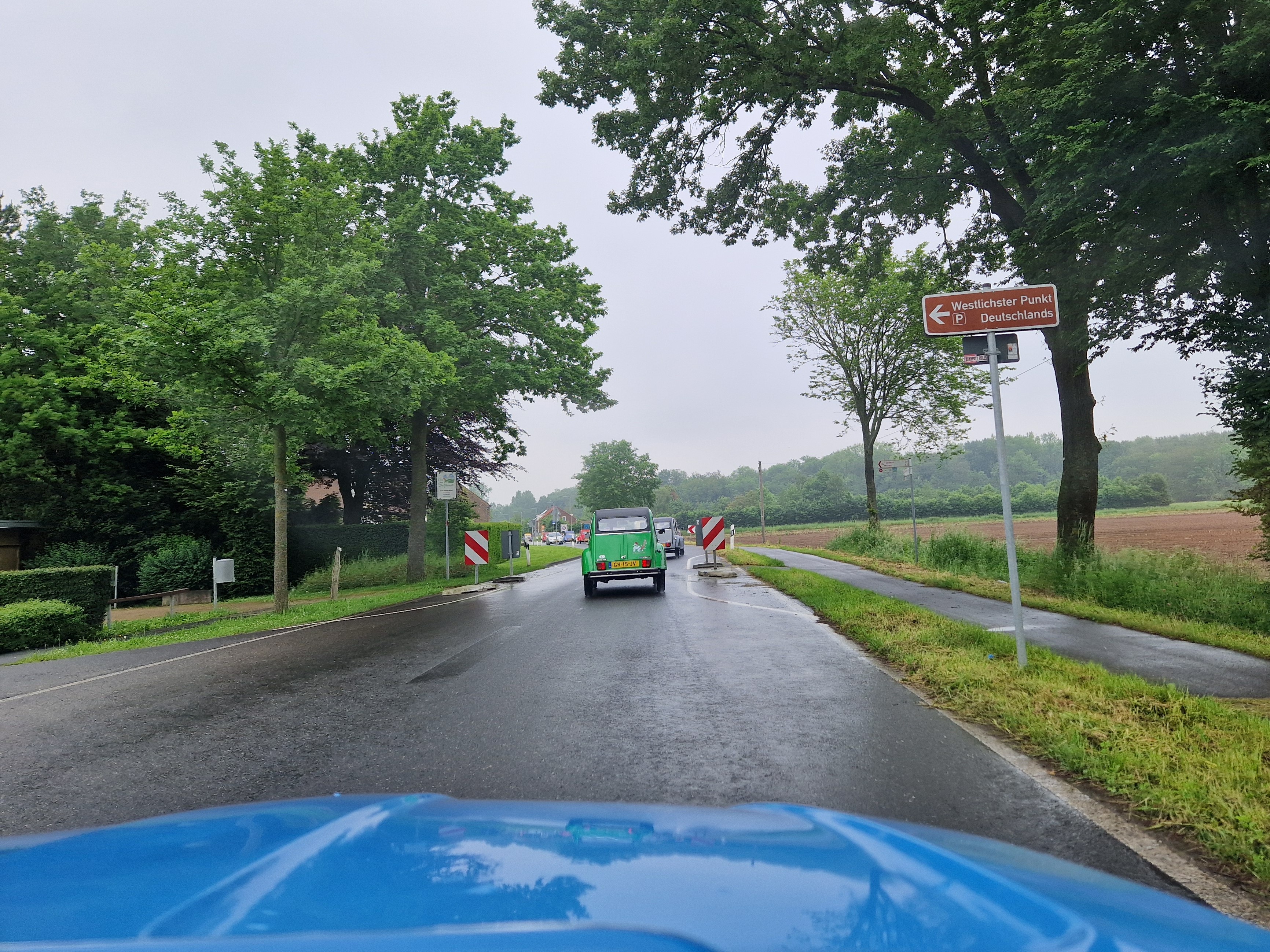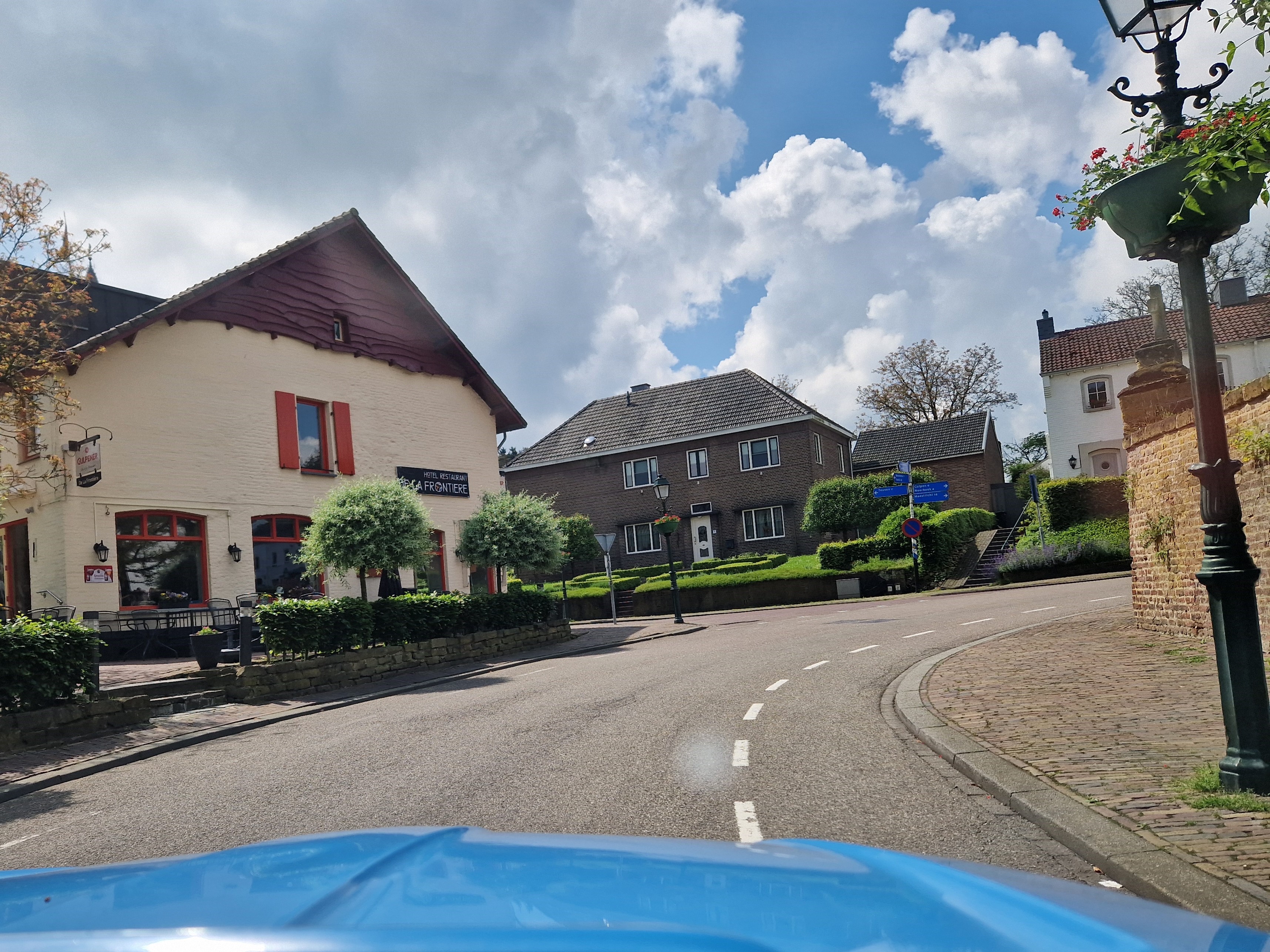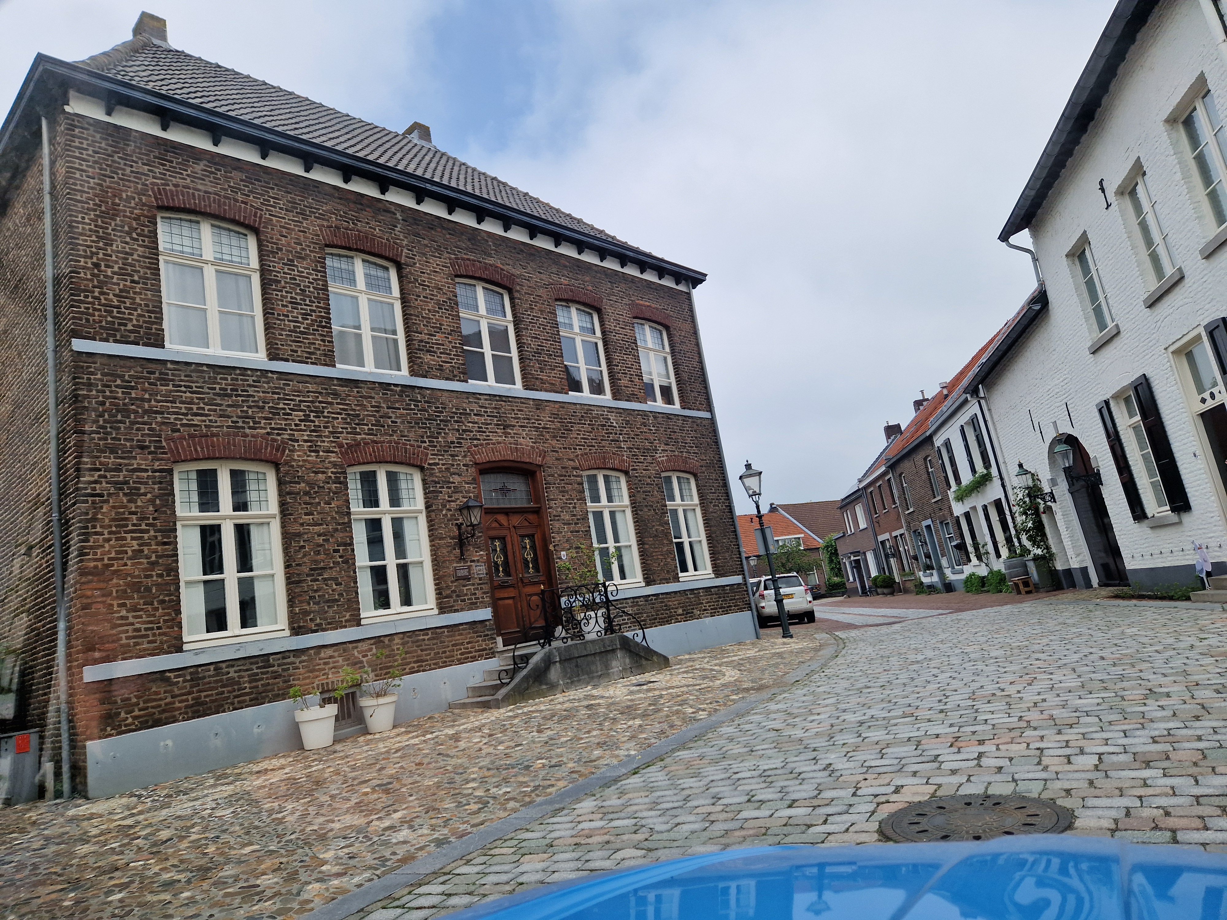 Dan gaan we op pad. In Duitsland stopt een meute eenden om te tanken, wij gaan er niet voor in de rij staan. We rijden van het meest westelijke stukje Duitsland terug naar het smalste deel van Nederland. Nederland op zijn smalst is 4,8 km breed. In Susteren stoppen we bij de Sint Amelbergabasiliek, de oudste basiliek van Nederland, waar je in het voorportaal een kaarsje kunt opsteken. Het is tenslotte Pinksteren. Verder is de kerk gesloten. Het is een aardig plein waar we in alle rust wat eten.