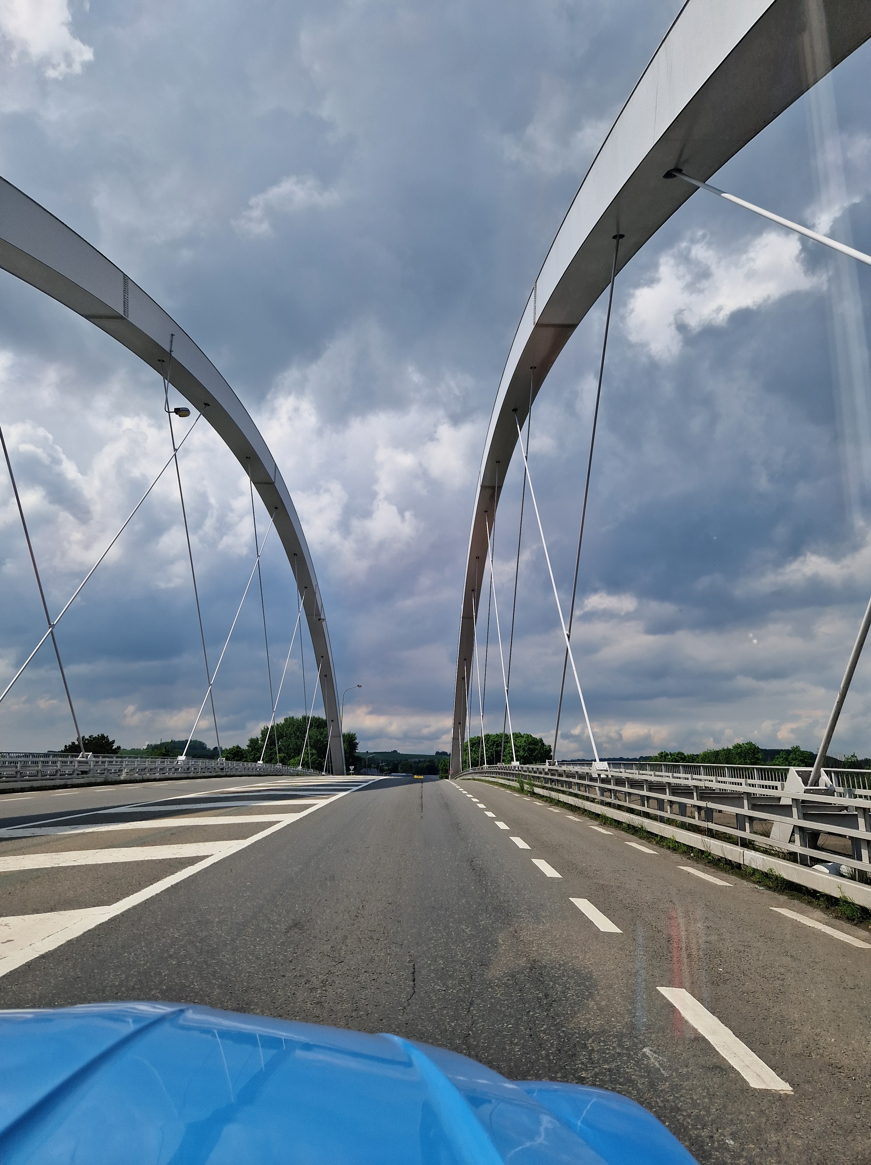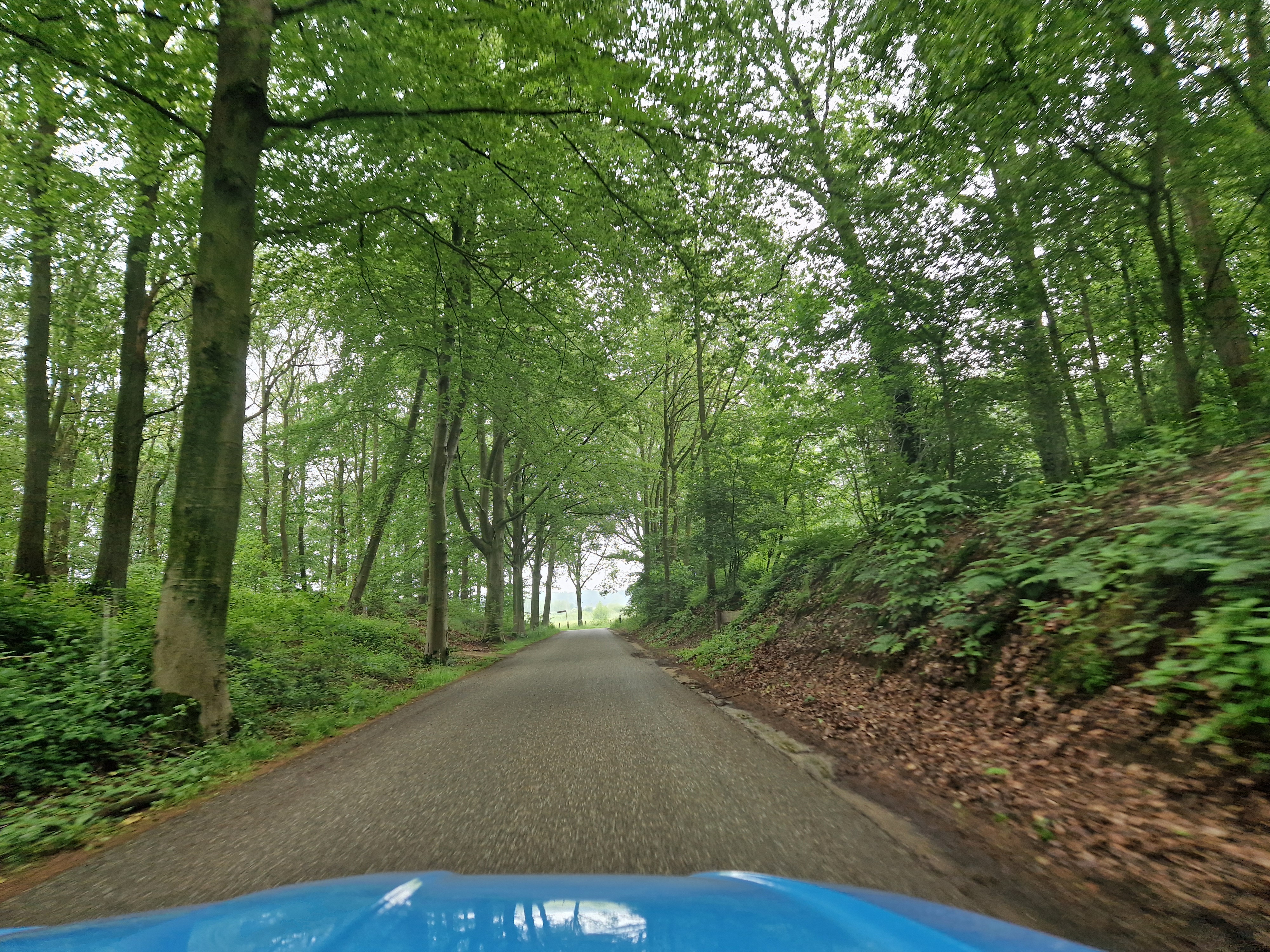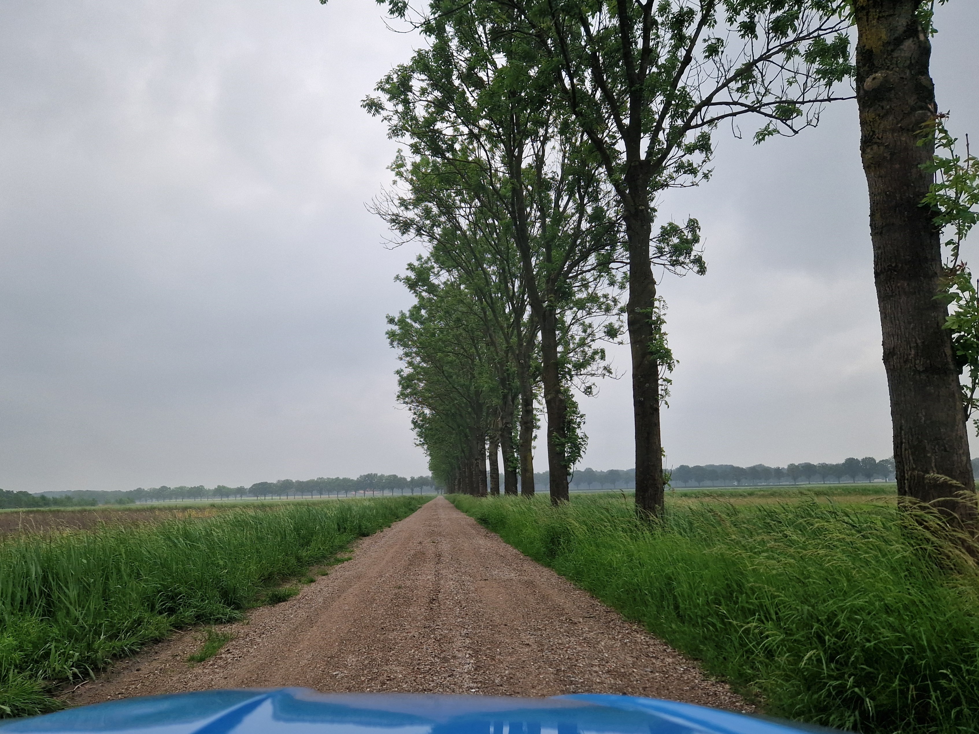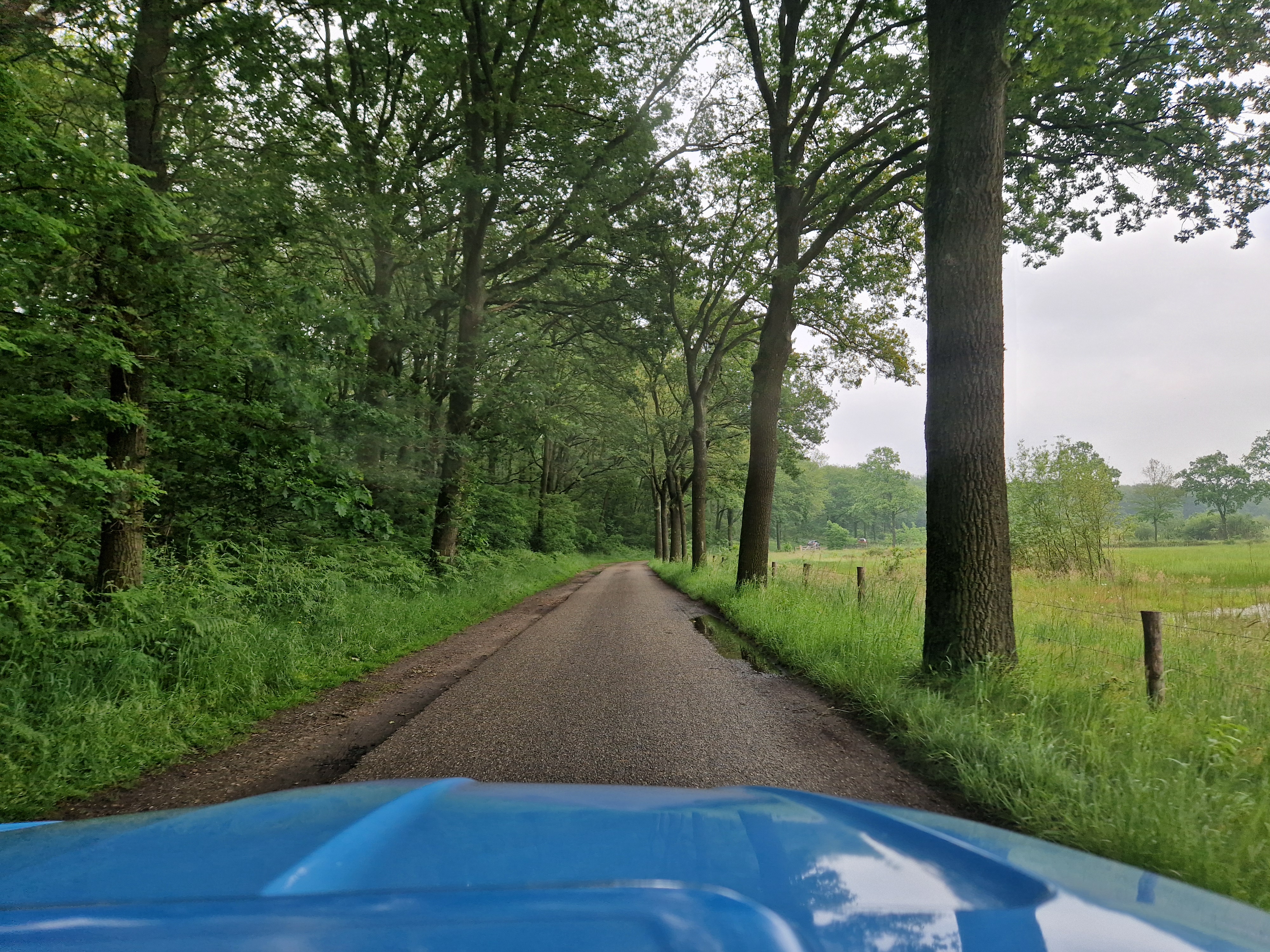 De eerste onverharde weg zou een blubberpad zijn, die slaat Tom alvast voor ons over. We passeren een boel kleurrijke terrasjes, bezienswaardigheden en kastelen waar we allemaal niet voor stoppen. Eigenlijk zijn wij maar saaie mensen. Je ziet aan de doffe foto’s dat we niet met open dak rijden. De voorruit is soms wat mistig.