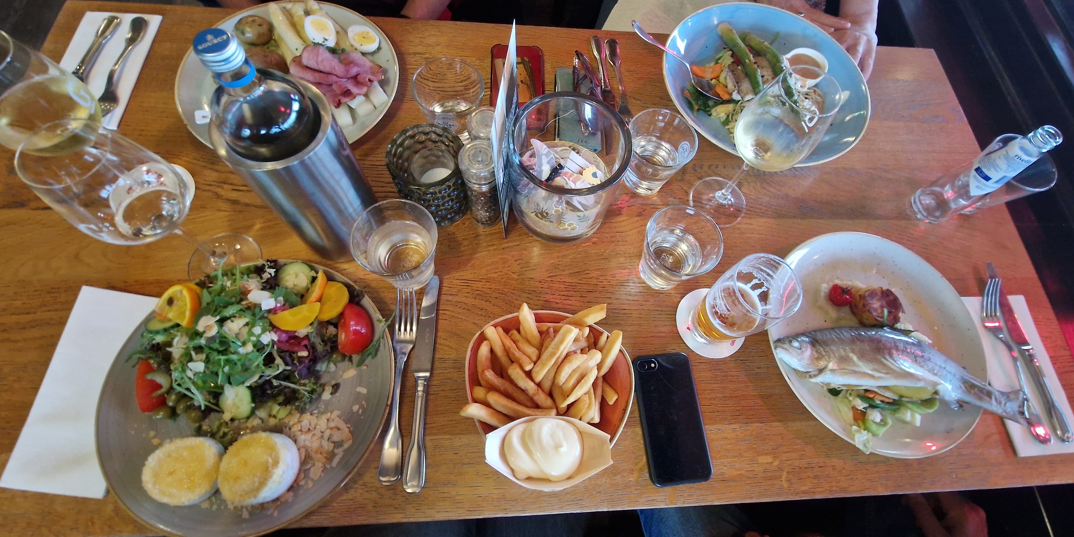 We gaan eten in restaurant Bergzicht waar we in Vincents auto naartoe rijden. Wachten. Veel wachten. De twee vriendelijke tieners kunnen het gewoon niet bijbenen. We hebben het gezellig en komen de tijd wel door.