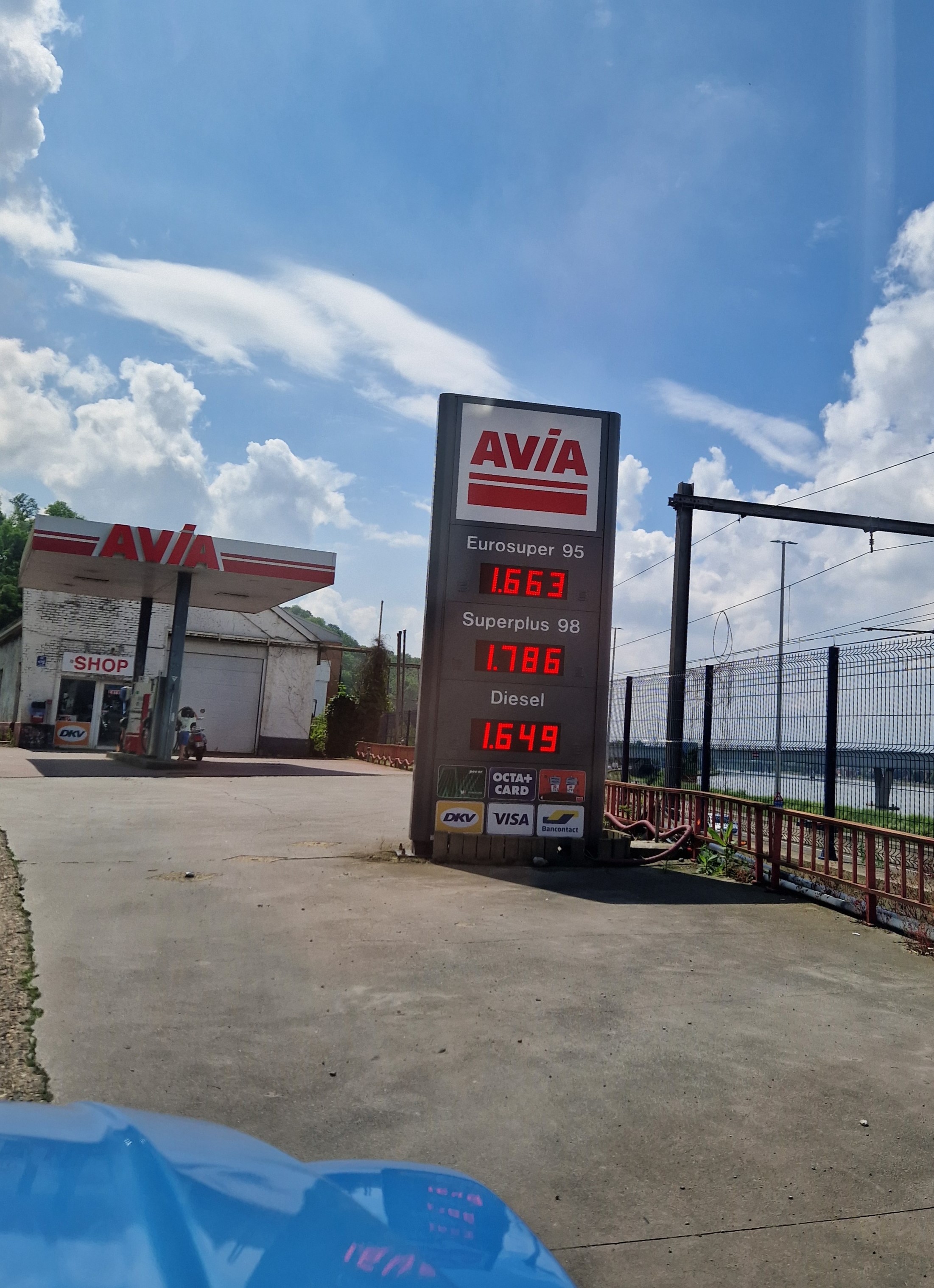 Bij Visé vinden we een tank met de goede benzine. Ook het reservetankje wordt gevuld, het scheelt dik 40 cent per liter dus dat is de moeite. We vervolgen onze kronkelroute langs de Maas, ik ben de tel kwijtgeraakt hoe vaak we dit weekend de rivier zijn overgestoken.