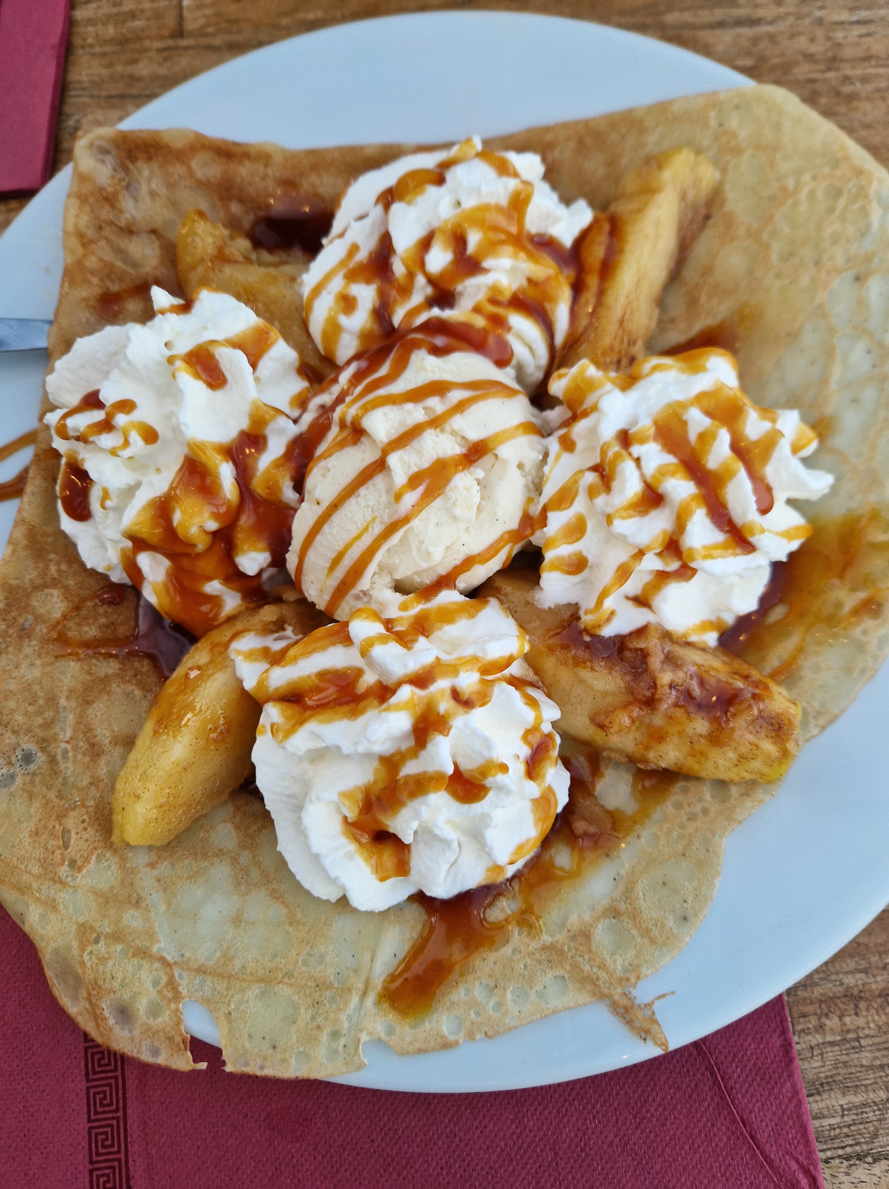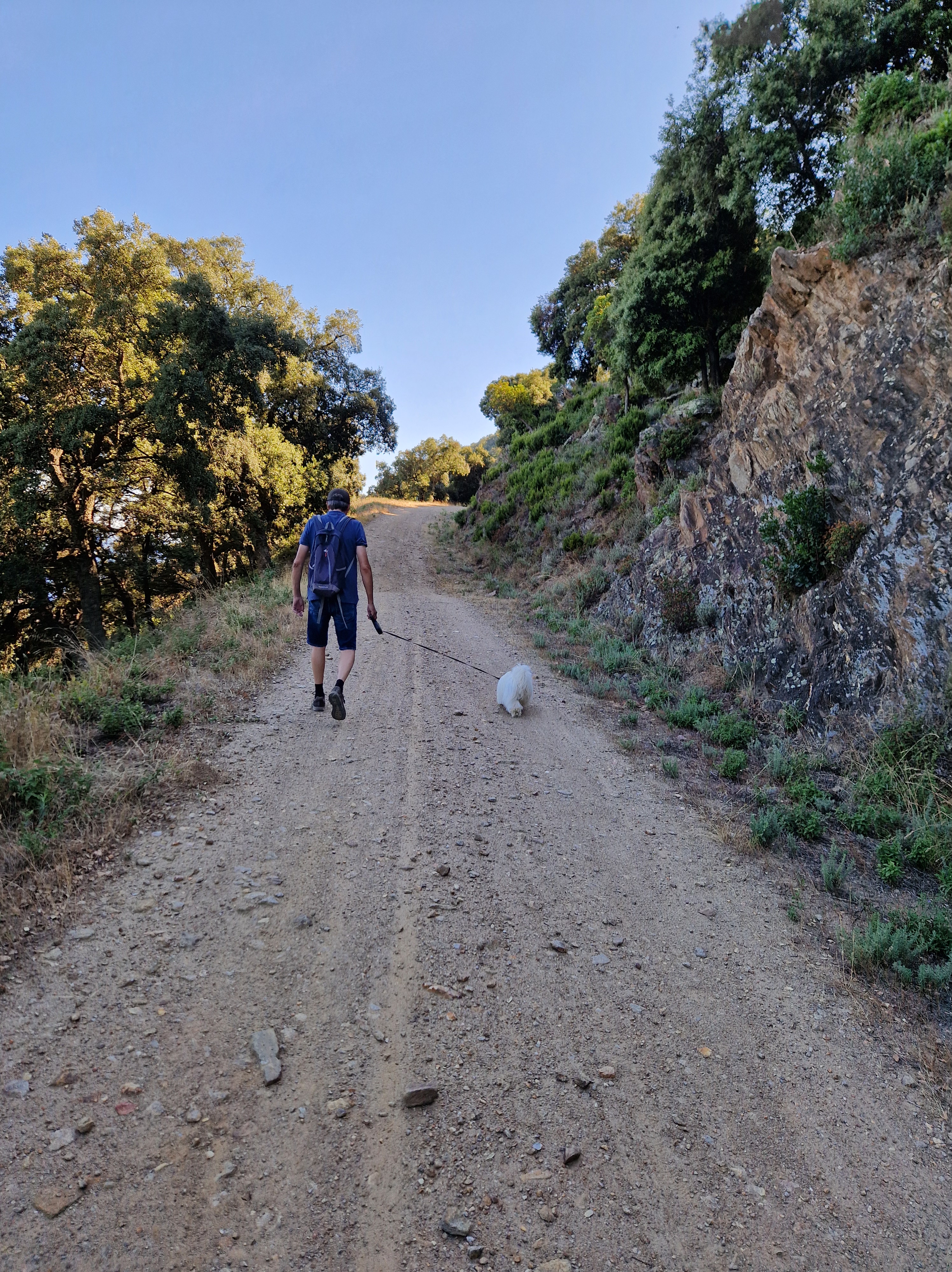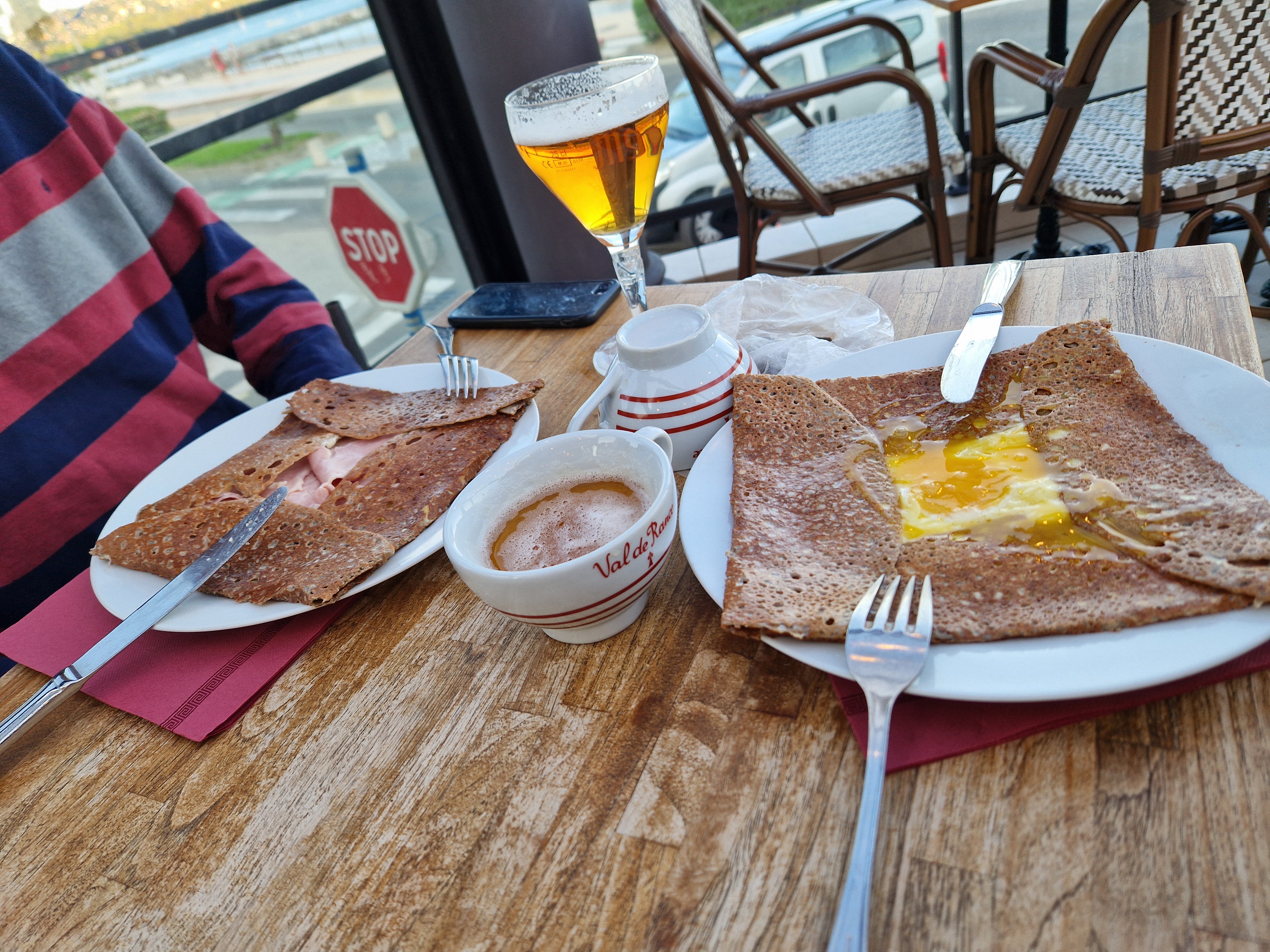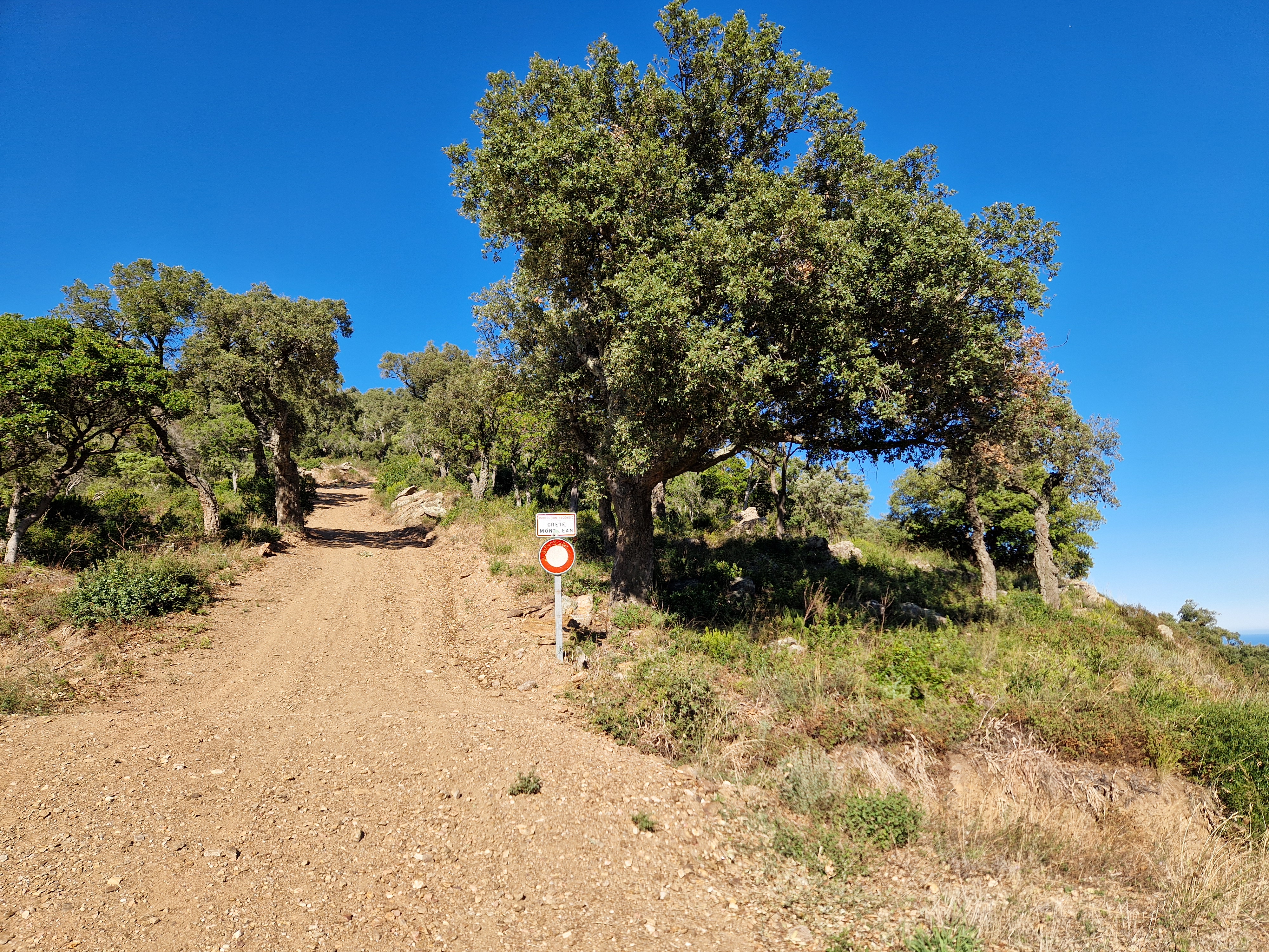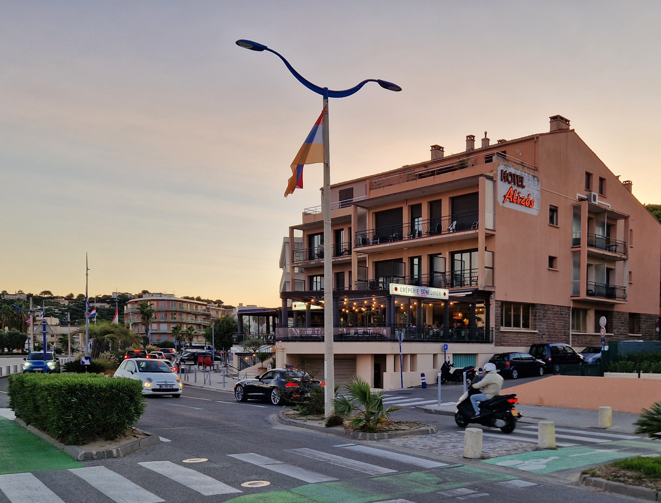 Om echt te kunnen wandelen rijden we door naar Gigaro. Hier waait het eveneens behoorlijk; mijn telefoon slaat op tilt van een weldadige overdaad aan blauw. We vinden een nieuwe doorsteek dat ons rondje met meer dan de helft inkort: bij de liggende boomstam recht omhoog naar het grote achterpad. Mijn voeten en ik halen opgelucht adem. We sluiten deze gekke dag af met crèpes, met uitzicht op de baai waar we een paar uur eerder liepen. De zon gaat vroeg onder.