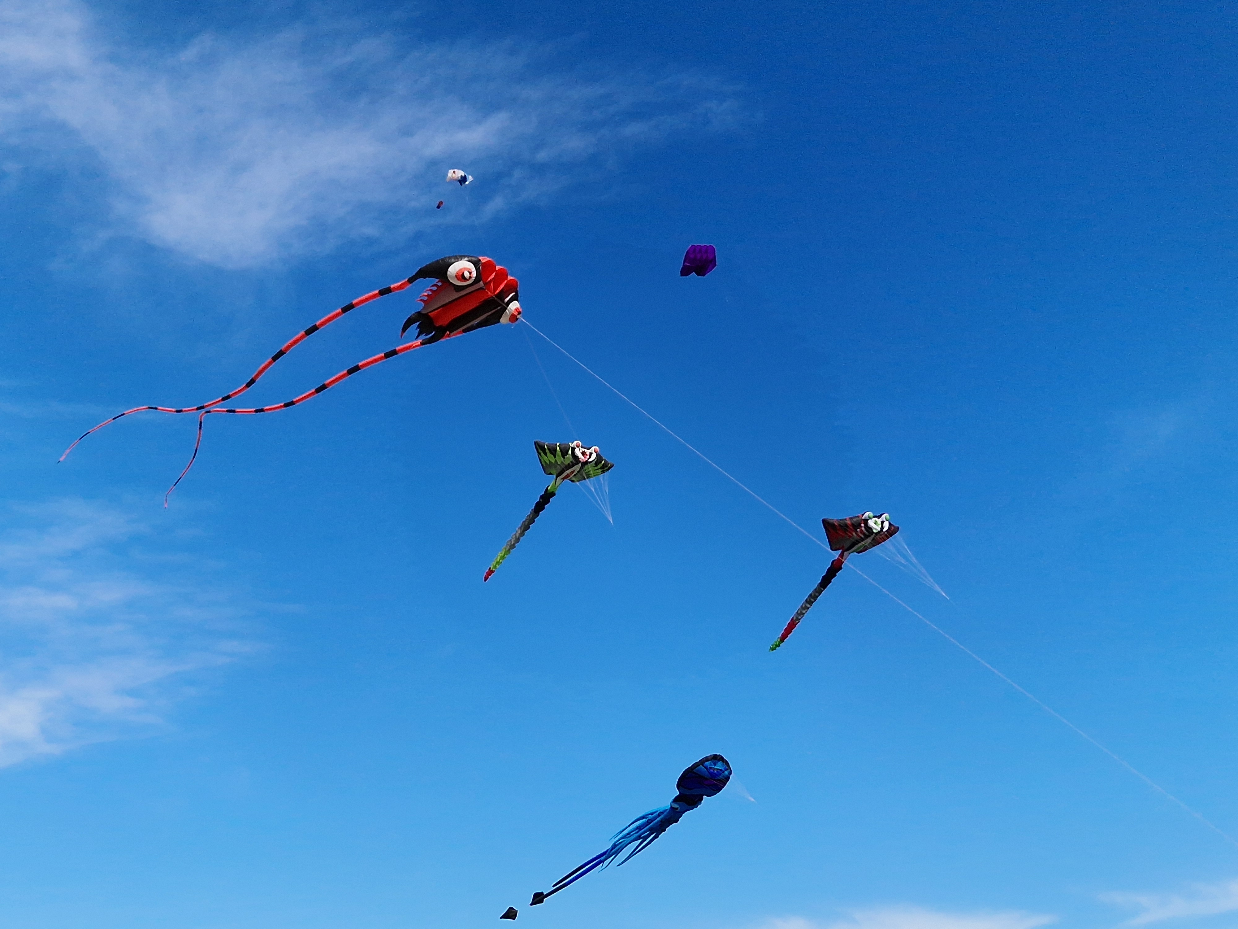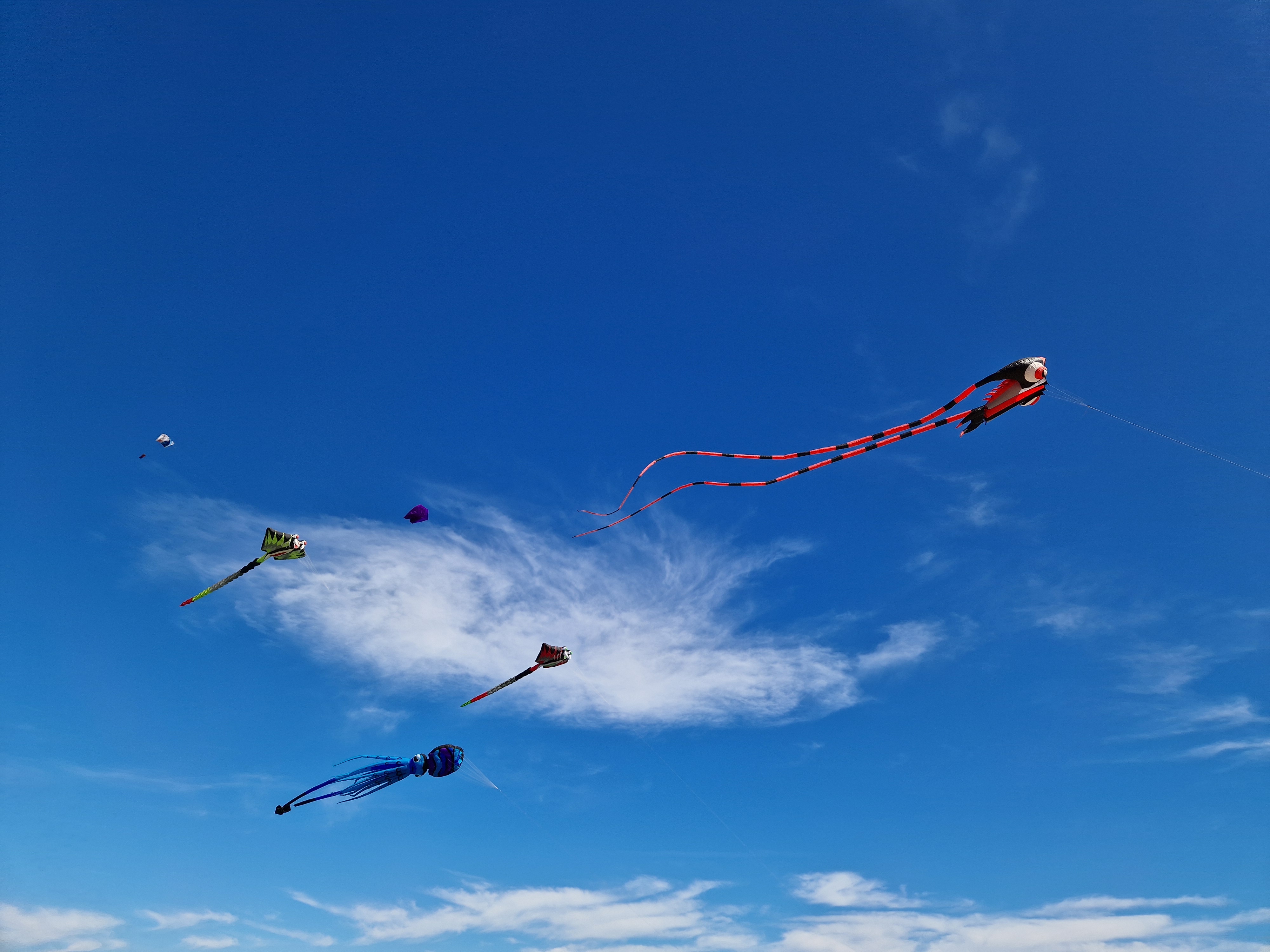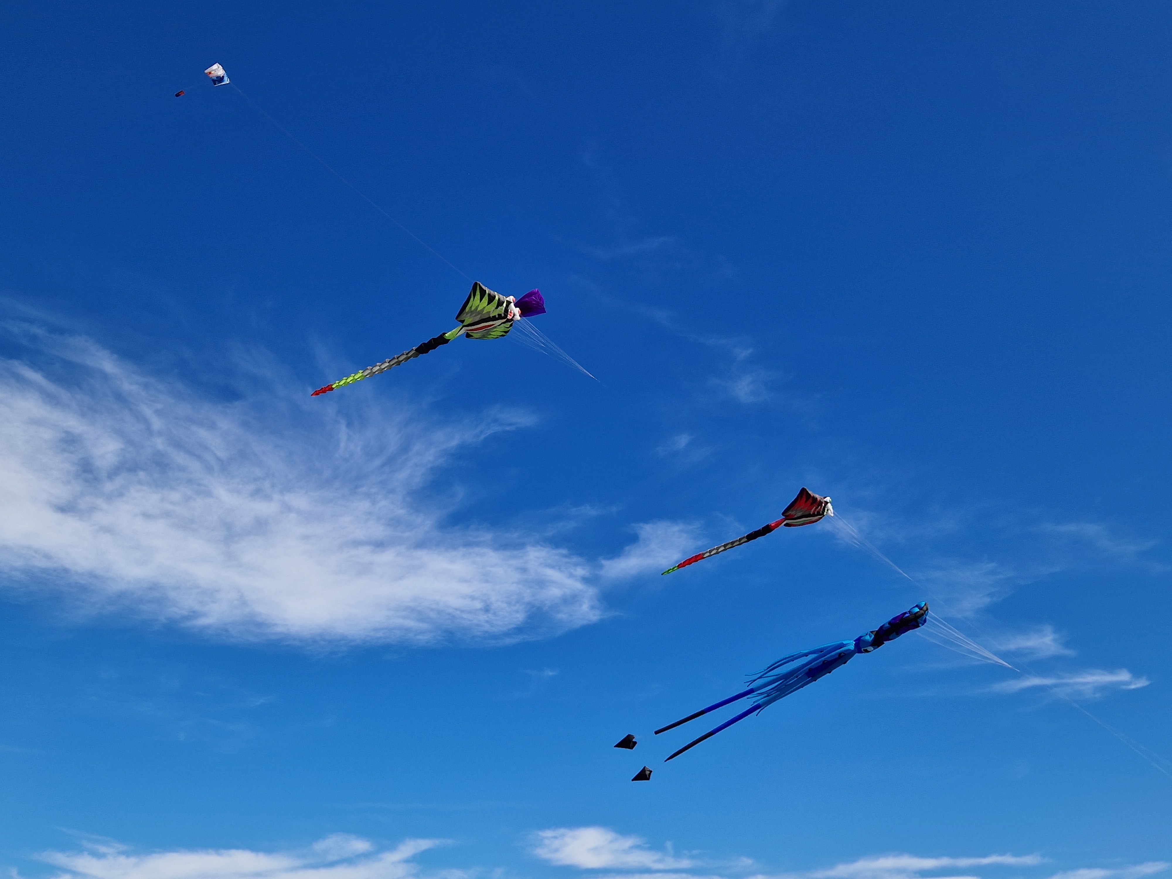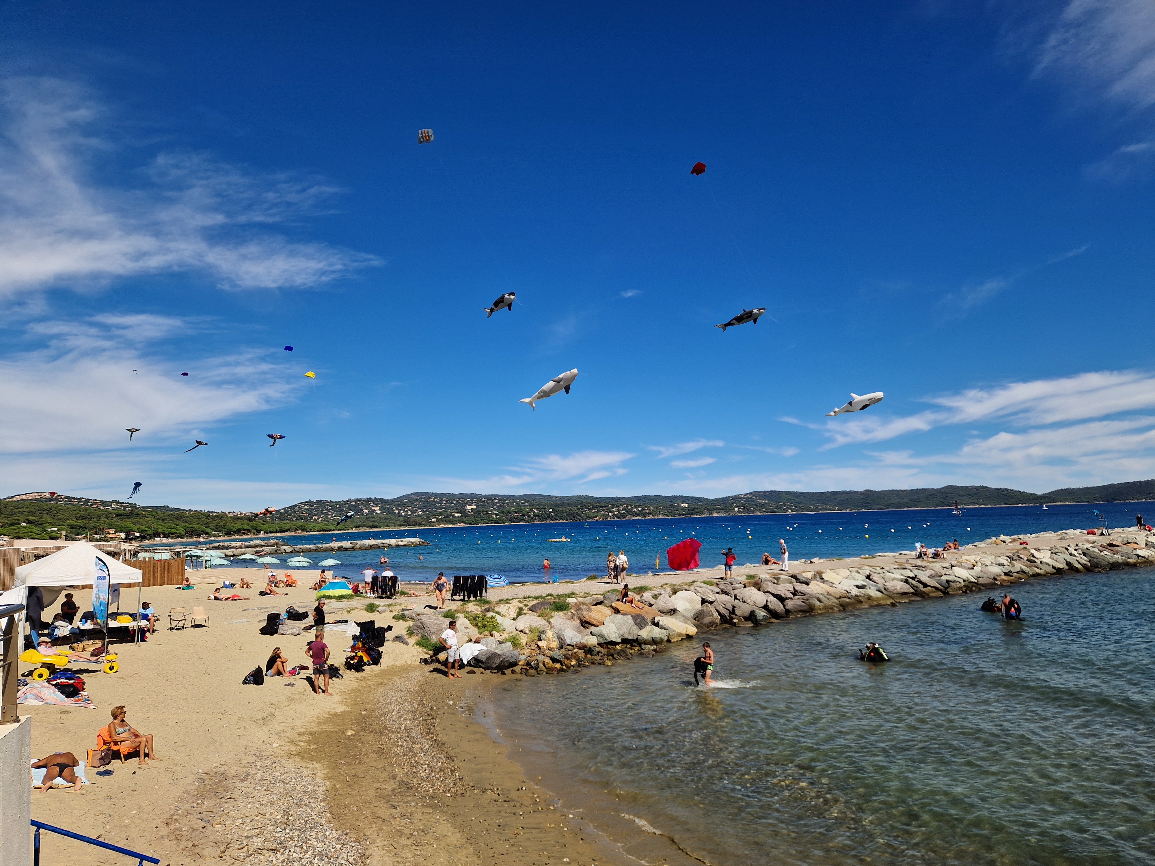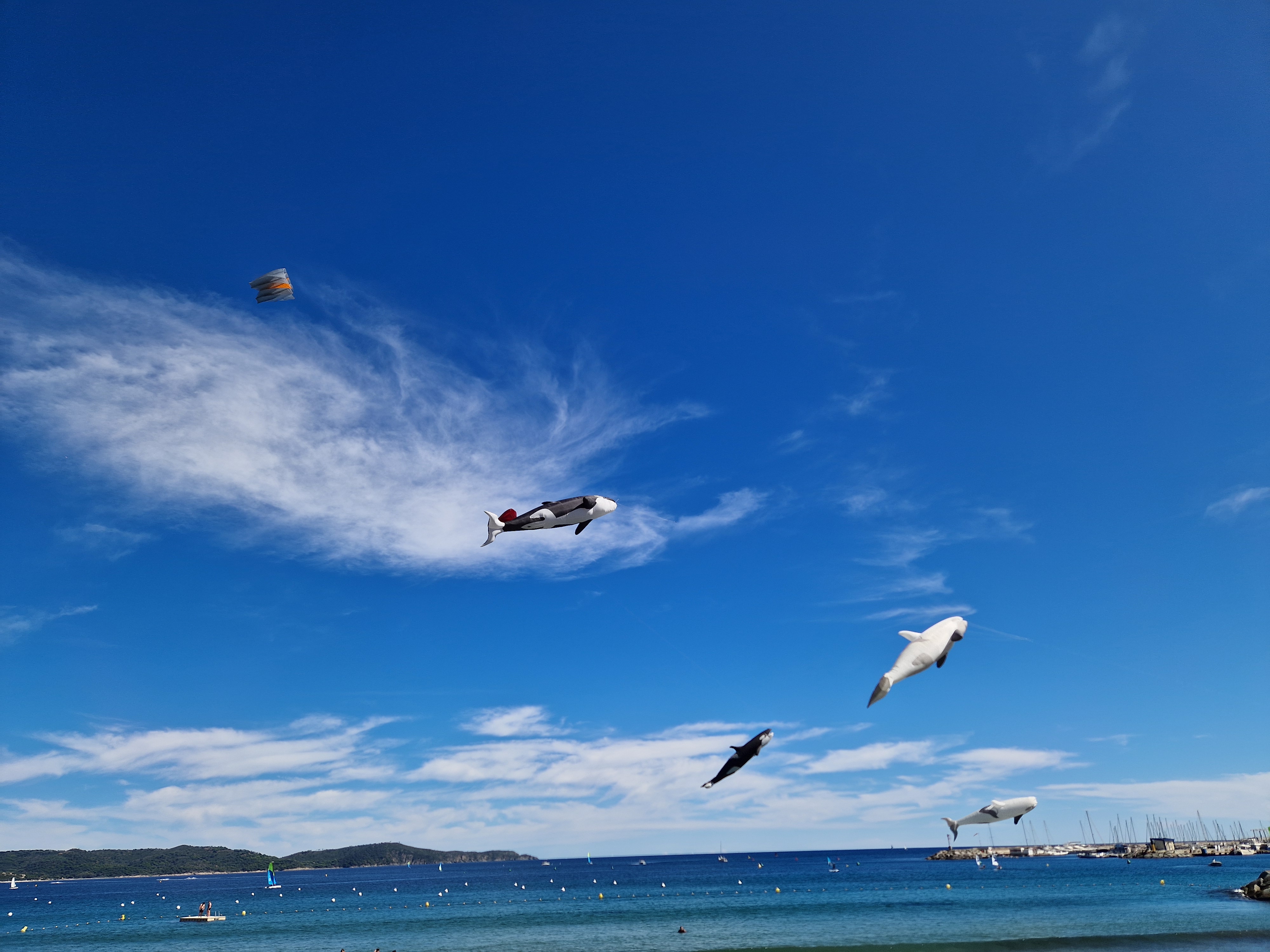 Na een stokbroodje gaan we het uitproberen. Beneden bij de boulevard hangt er van alles in de lucht, dat gaan we eerst bekijken. En niet alleen bekijken: op de boulevard moeten we ons een weg banen door de aftershaves en Douglas-uitverkopen terwijl vanaf het strand de vette kokoswalm van Nivea en Ambre Solaire ons in het gezicht slaat van de glimmende lijven, gebronsd tot zwartgeblakerd, die liggen te braden op het zand. De windveren wedijveren met de vrolijk vliegende vissen. Het lijkt wel zomer.