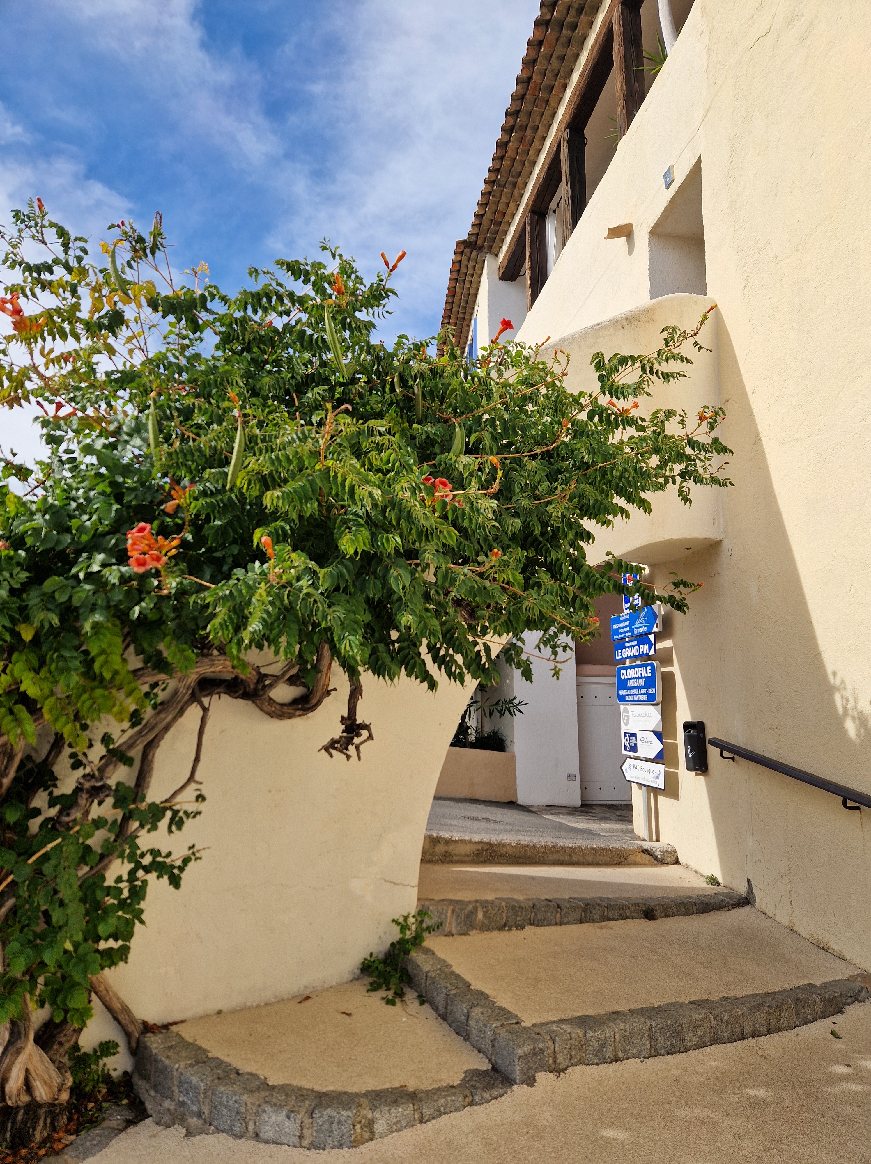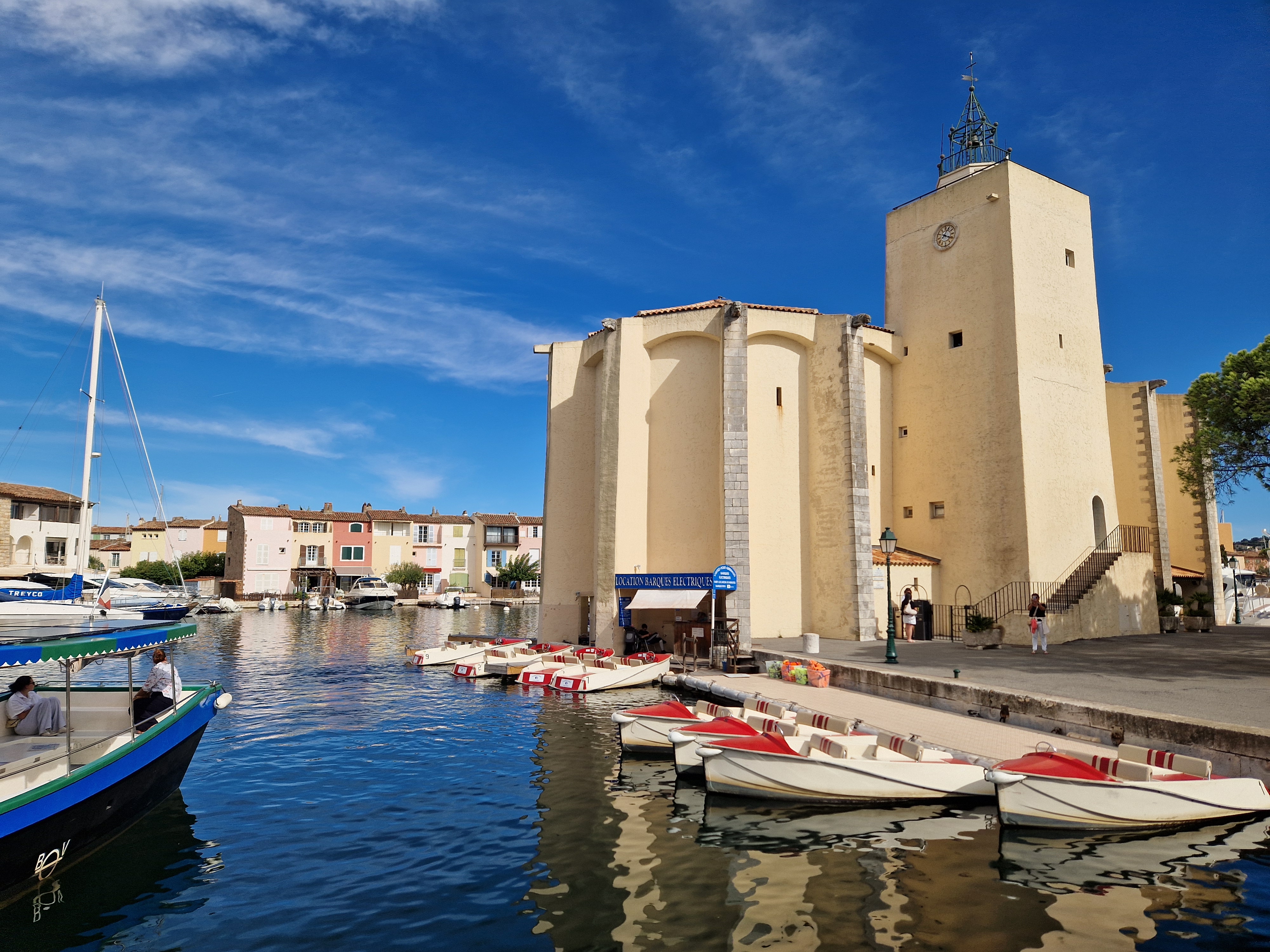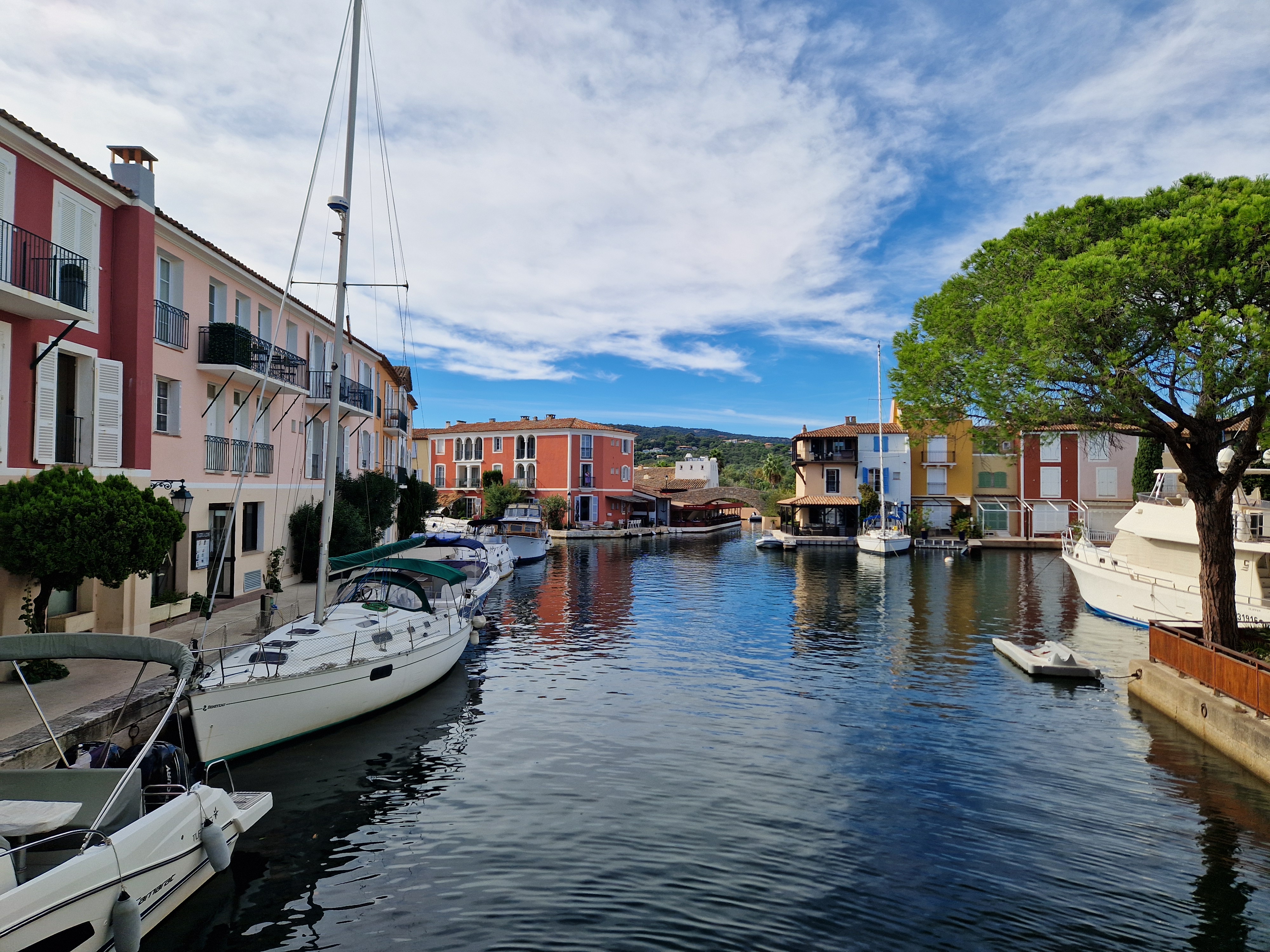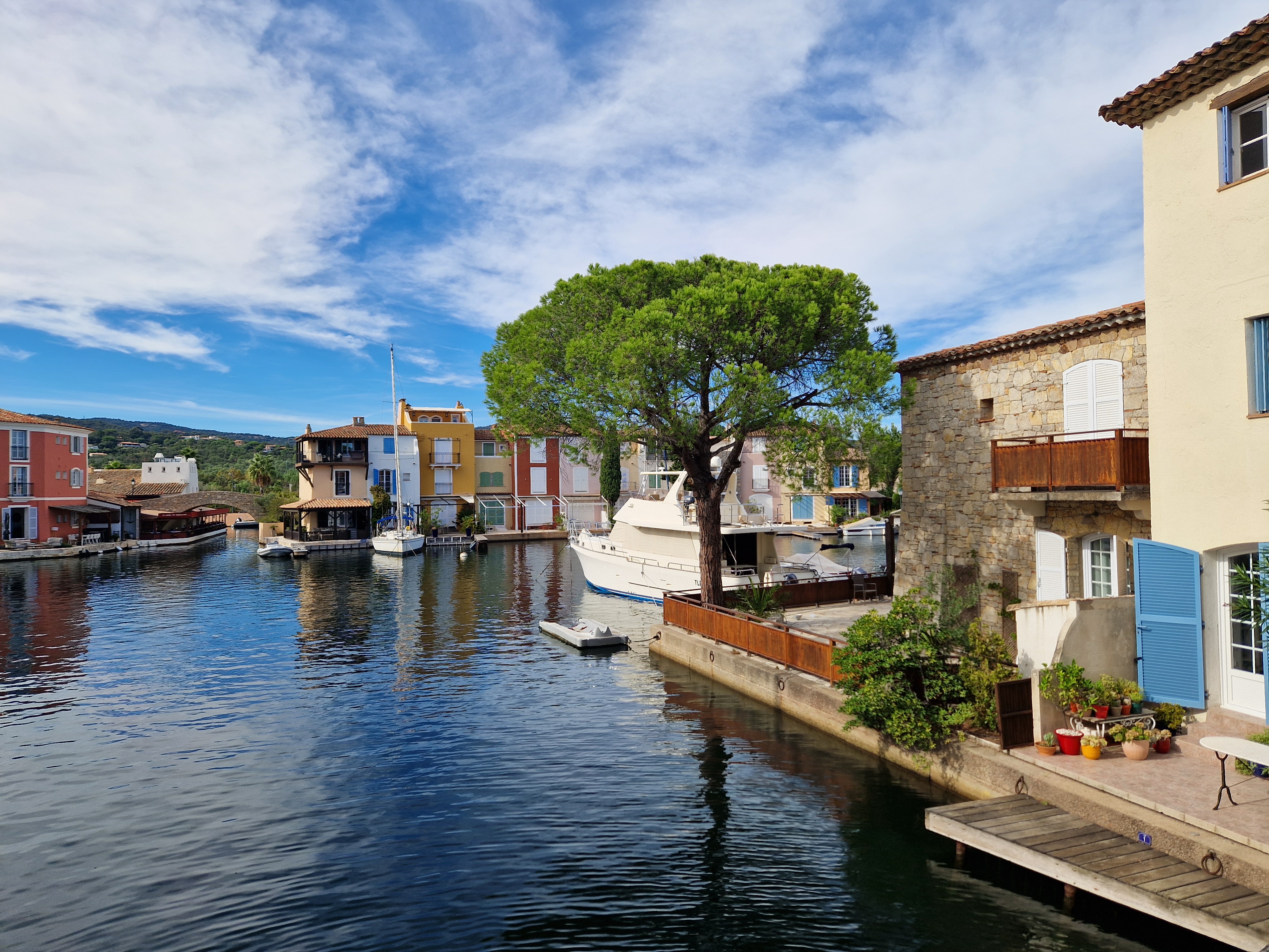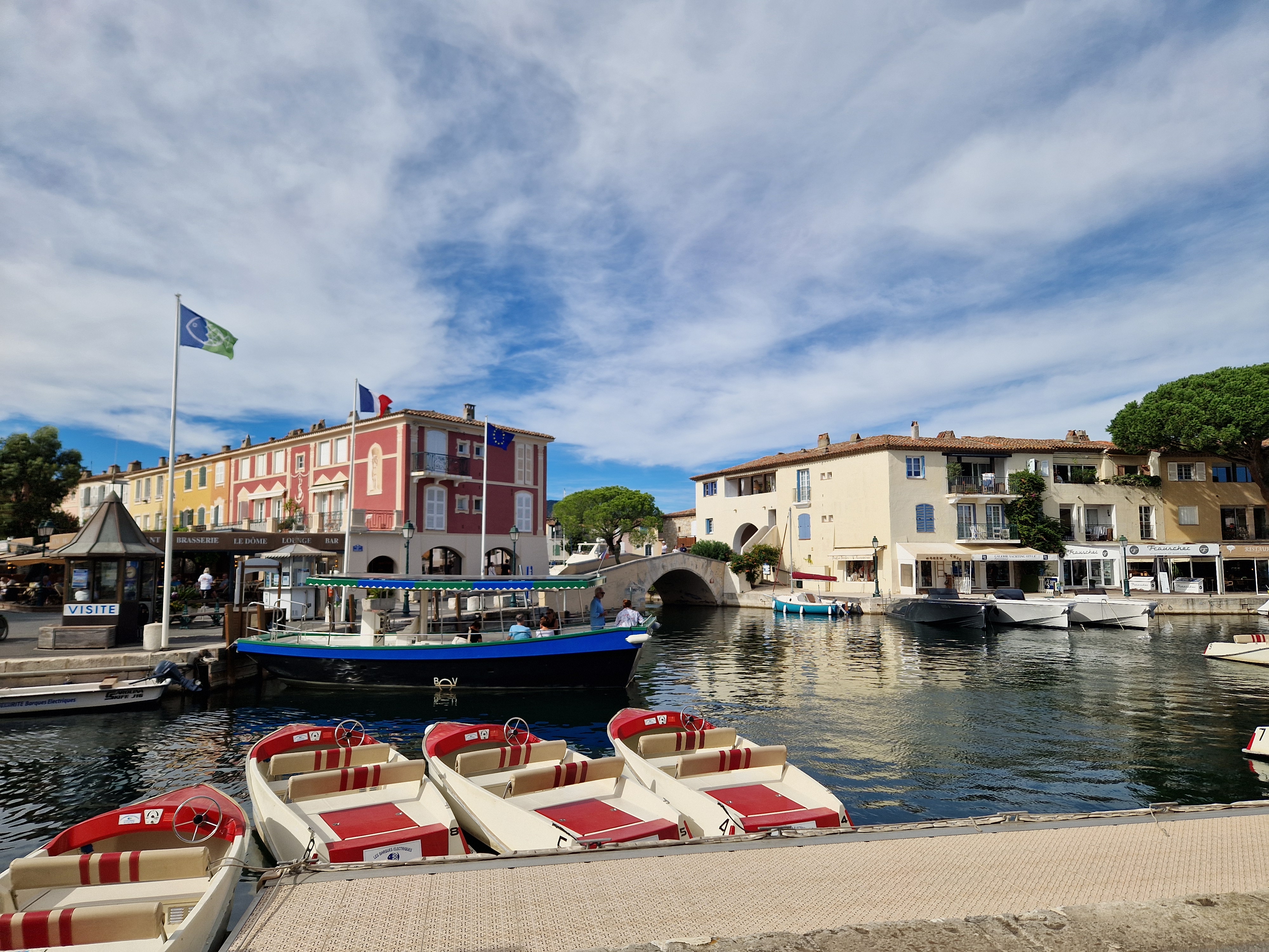 Via een achteraf kronkelroute, D93, slaan we af richting Ramatuelle. Fotoshoot bij Col de Collebasse (plm 136 meter). Tenslotte komen we bij Port Grimaud. Jaren geleden dat we daar waren, tijd voor een weerzien met de kanaaltjes, de nogakleurige huizen en de bruggetjes.