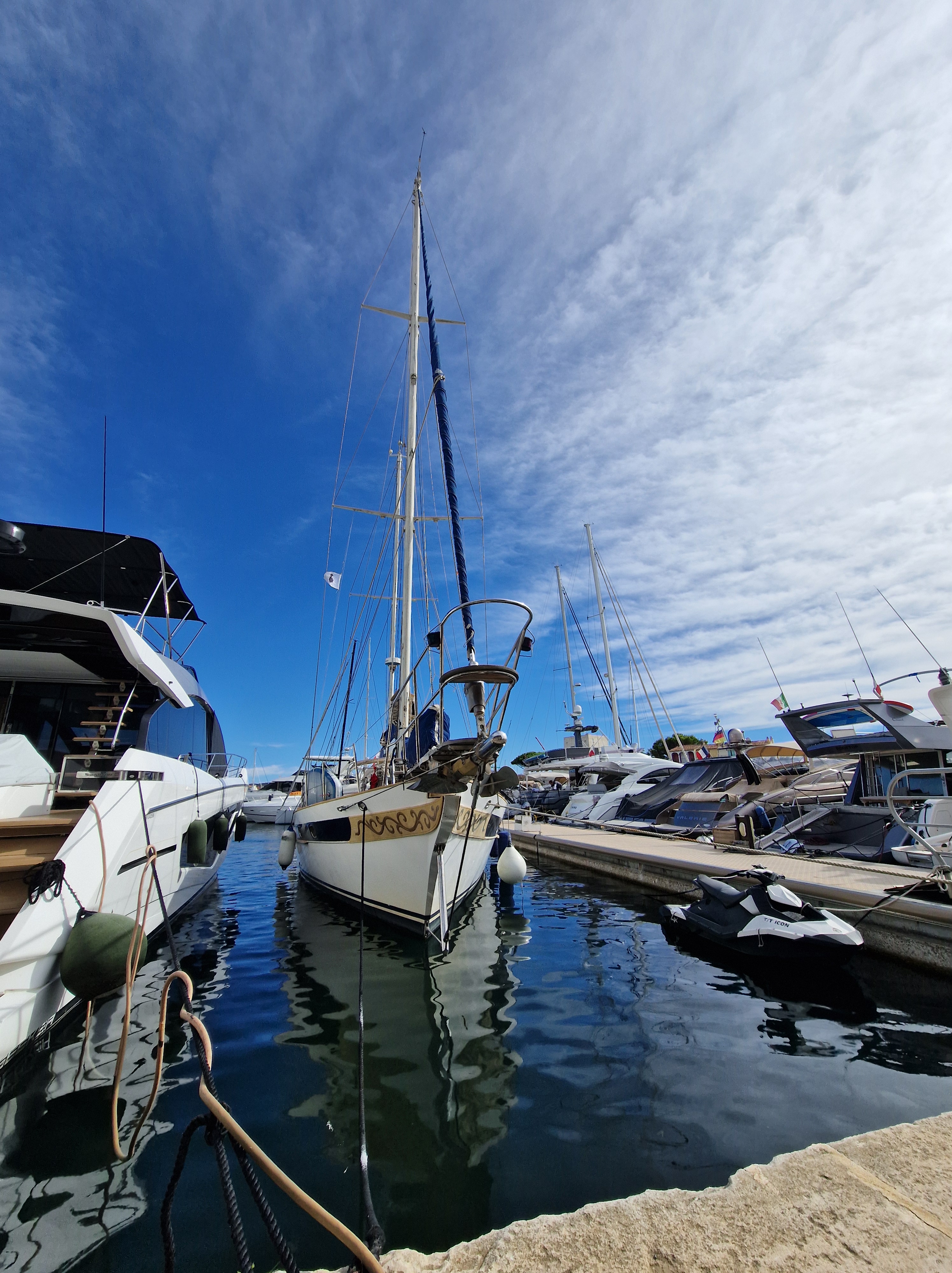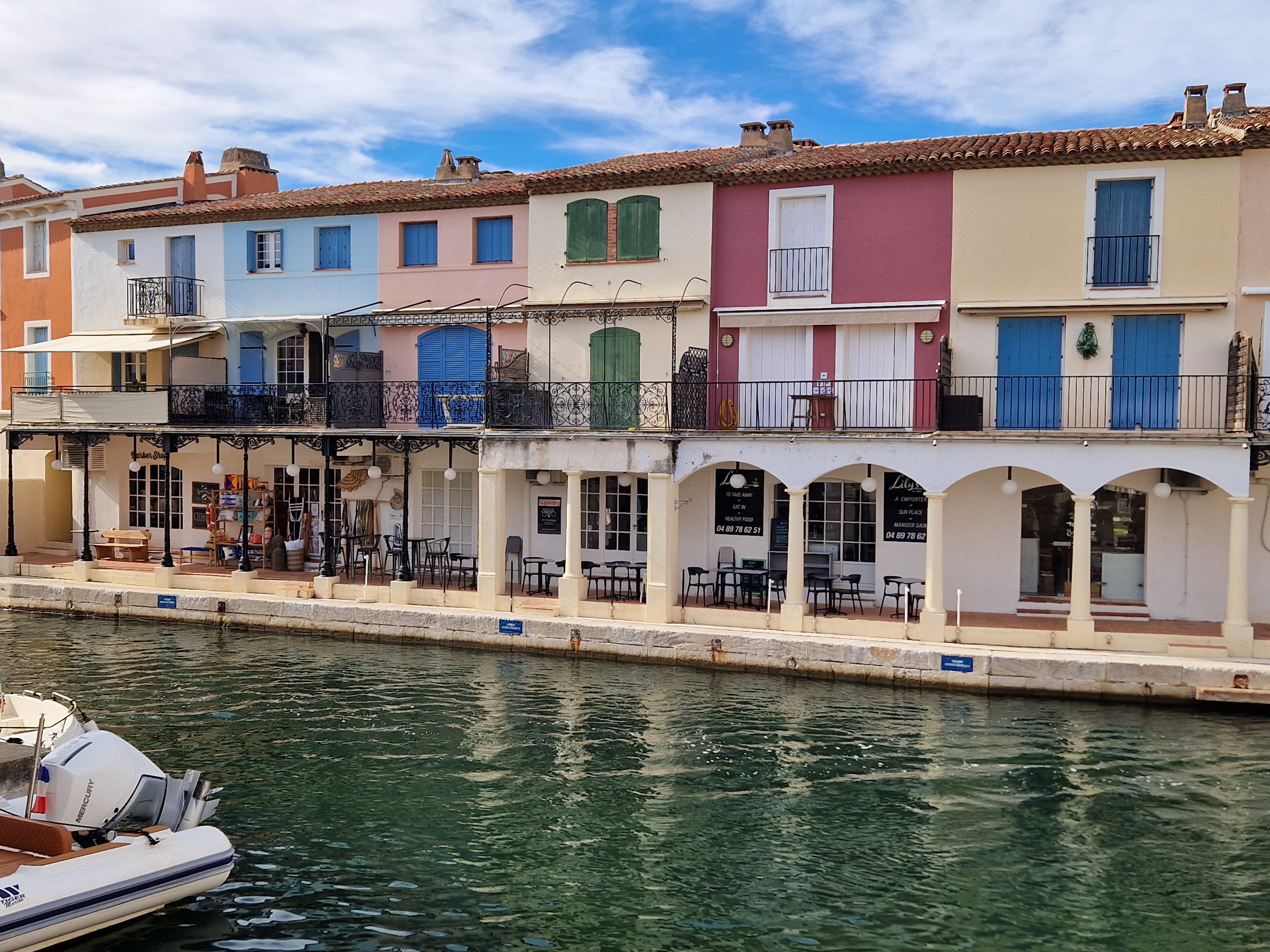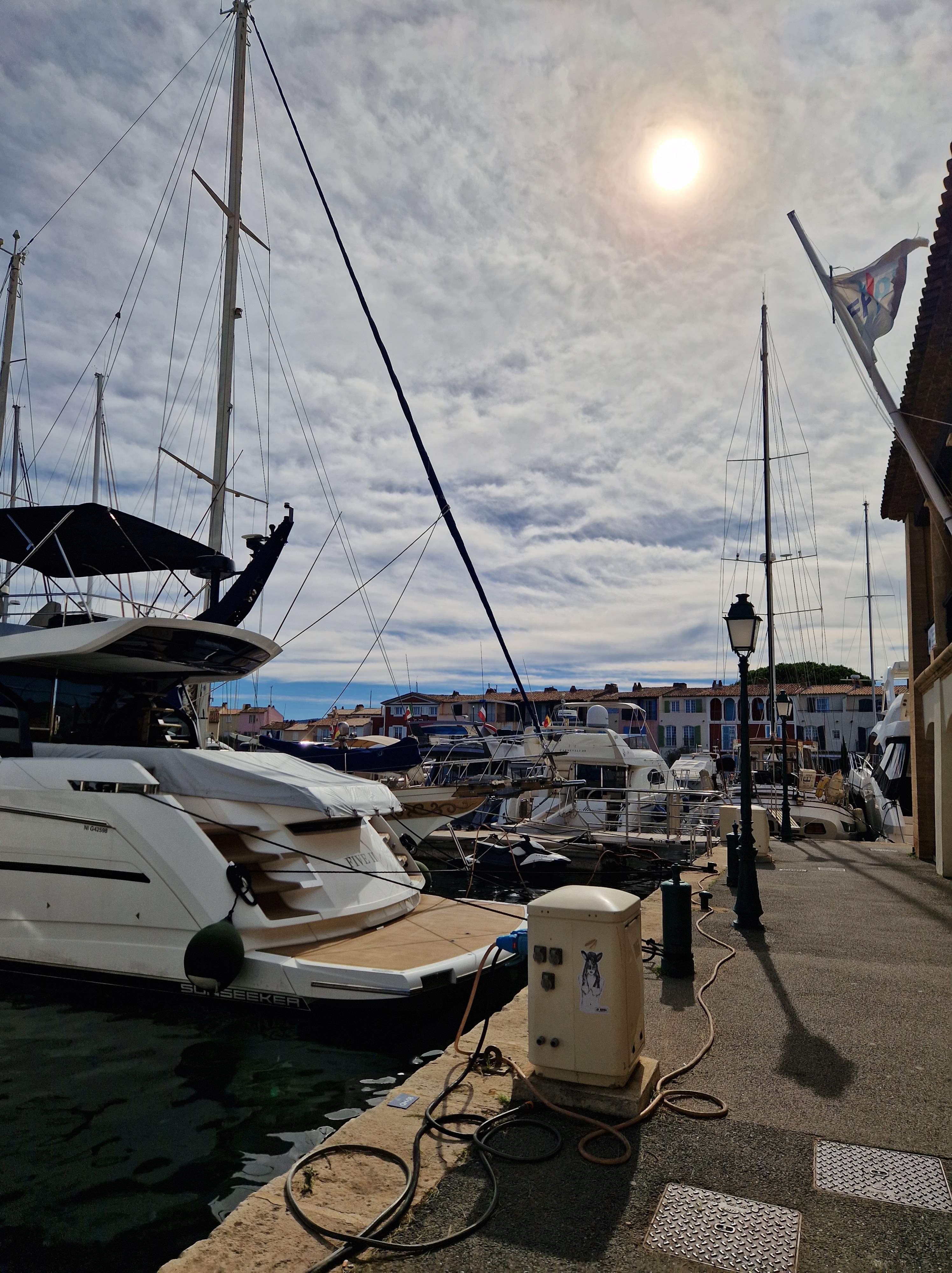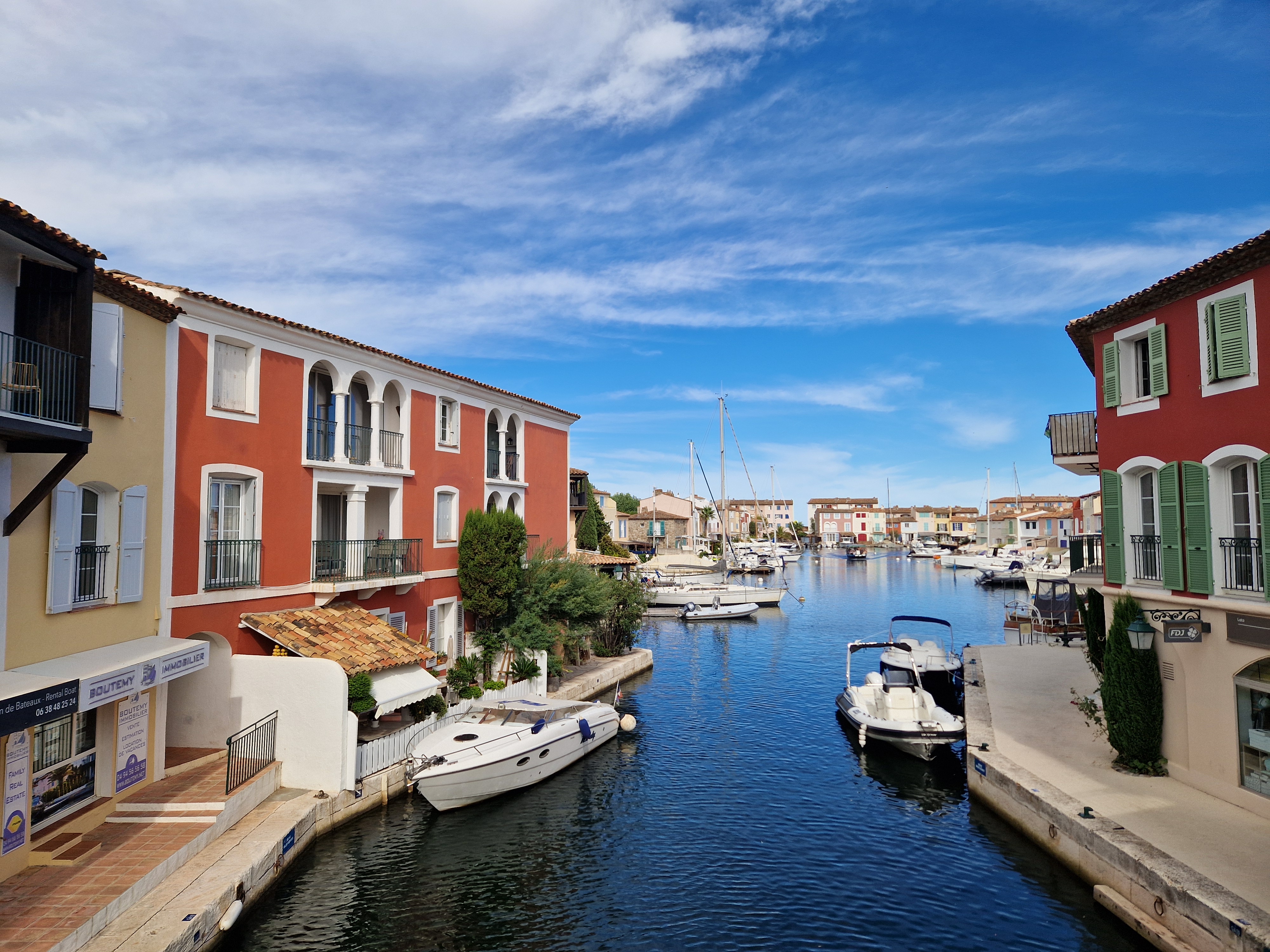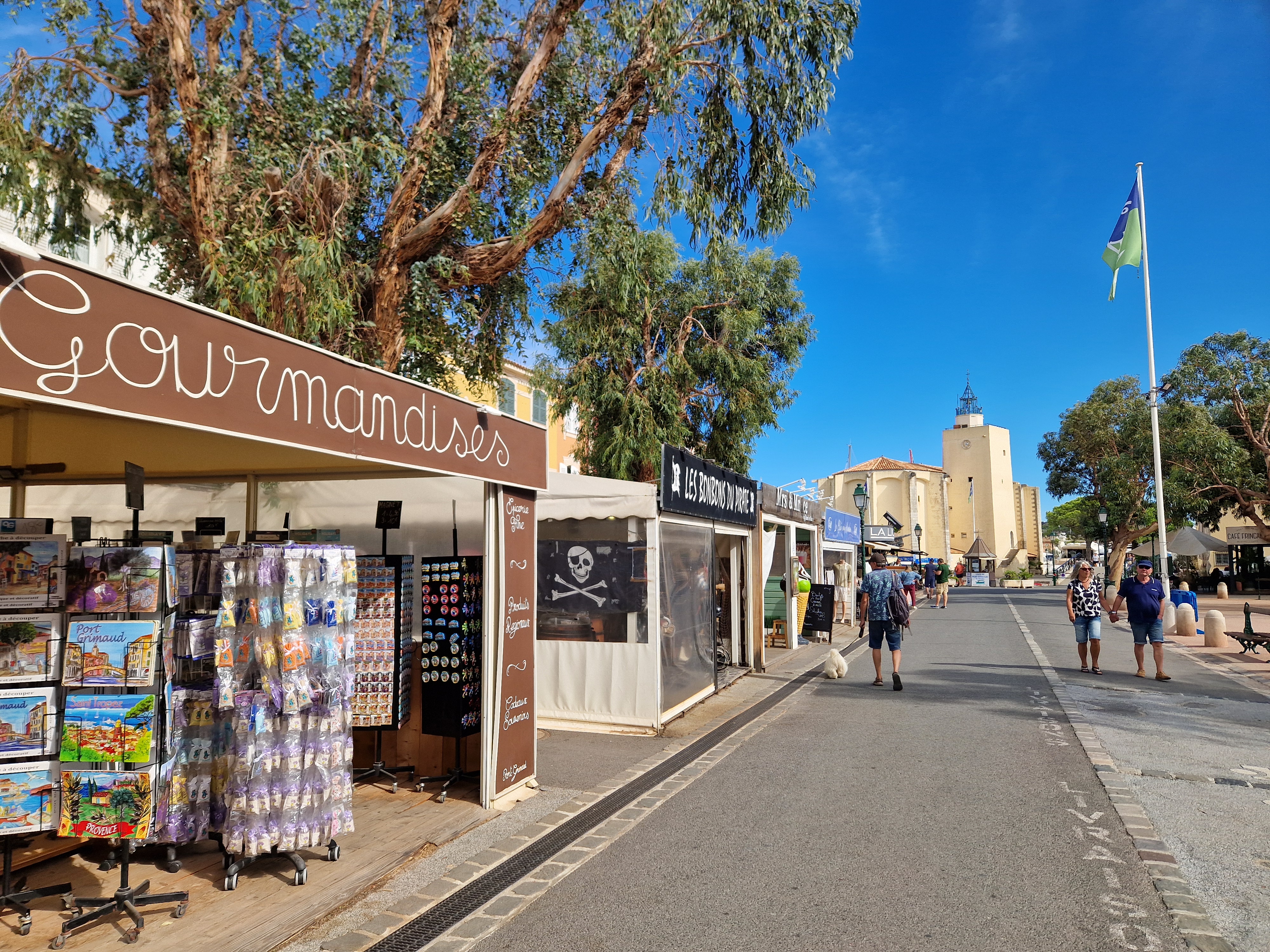 Via een achteraf kronkelroute, D93, slaan we af richting Ramatuelle. Fotoshoot bij Col de Collebasse (plm 136 meter). Tenslotte komen we bij Port Grimaud. Jaren geleden dat we daar waren, tijd voor een weerzien met de kanaaltjes, de nogakleurige huizen en de bruggetjes.