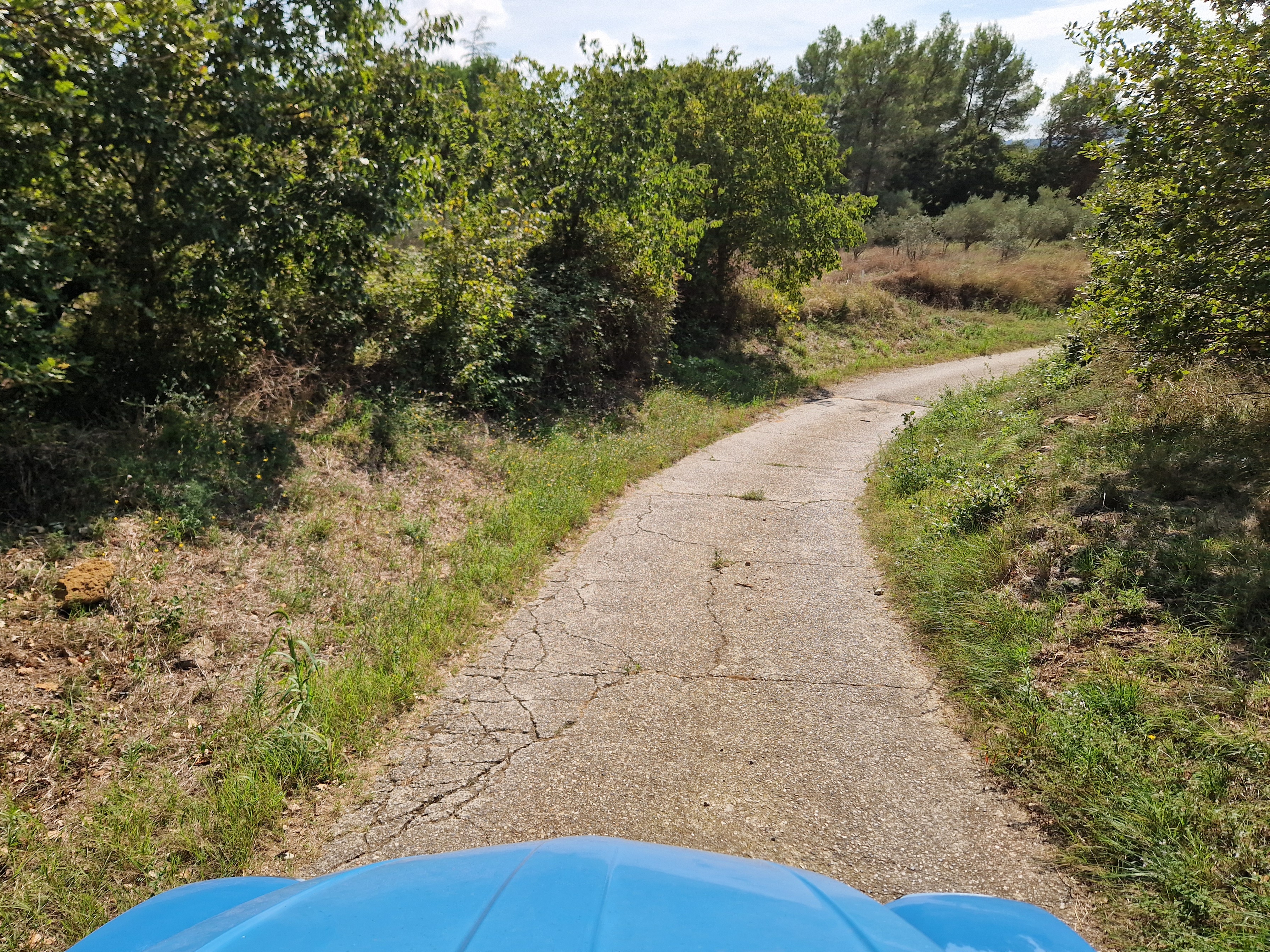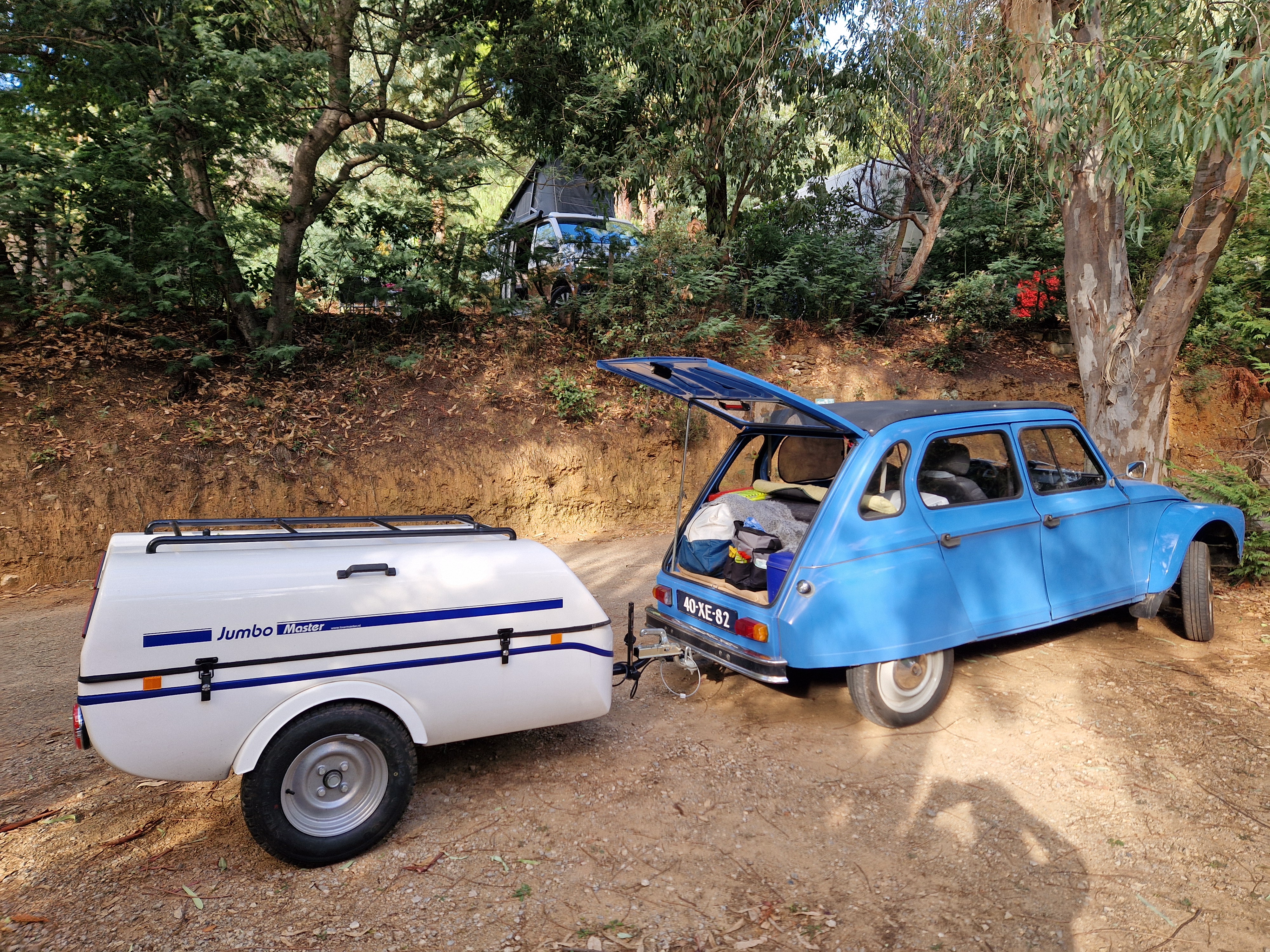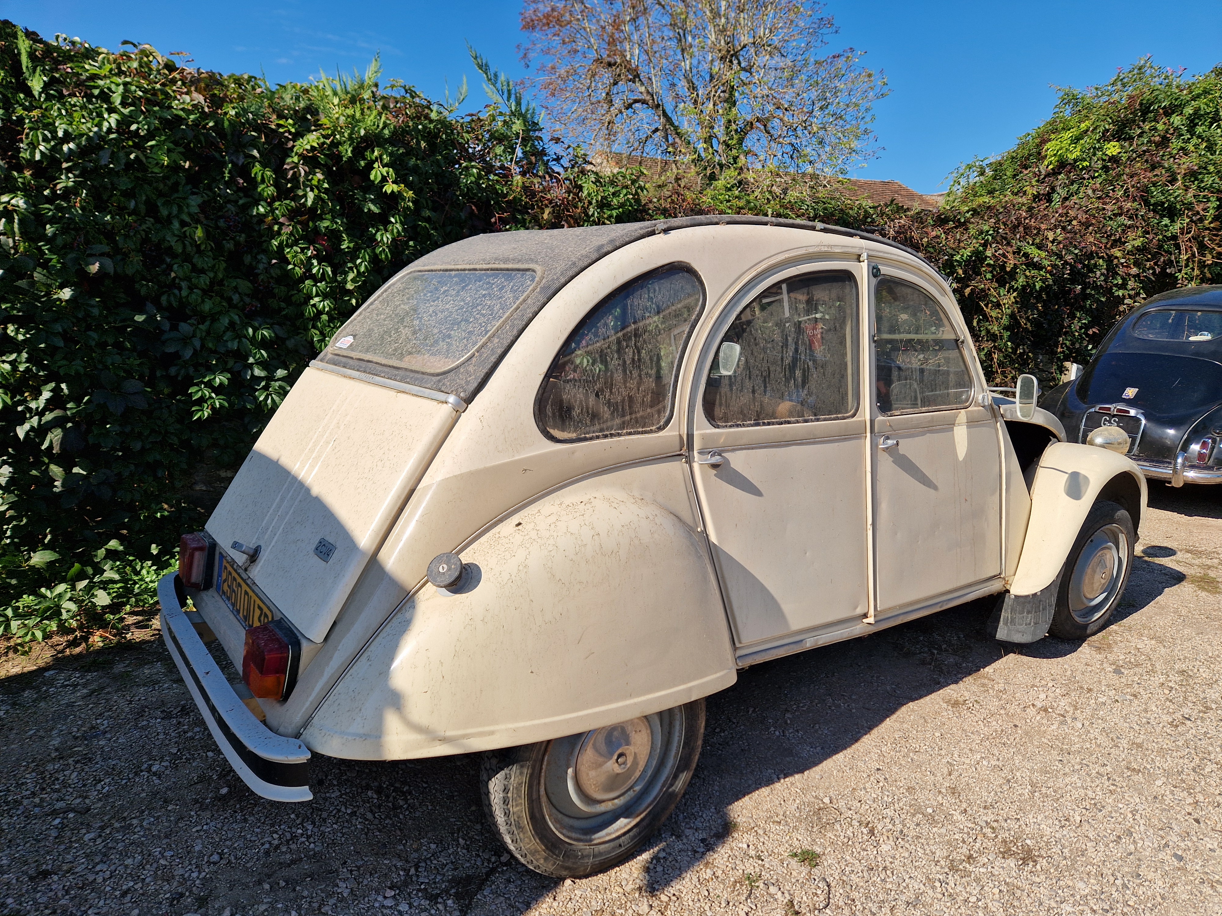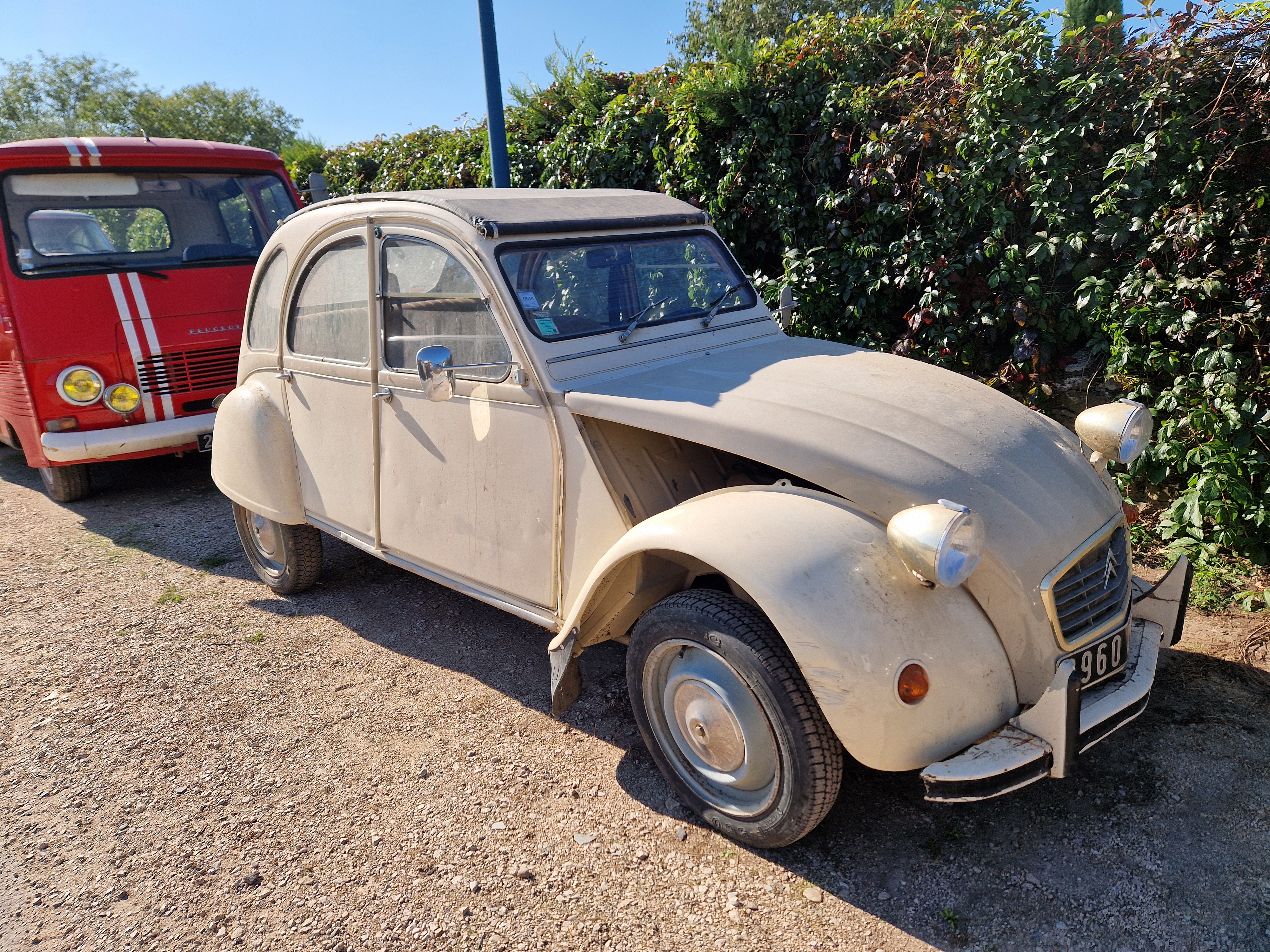 We hebben vanuit Cavalaire naar de volgende camping een gekke rit uitgezet, benieuwd wat ons vandaag te wachten staat. Via Le Lavandou en Toulon en dan bij Hyères naar boven. Ergens in een dorpje foutparkeren en terwijl Gijs brood haalt sta ik nieuwsgierigen te woord: “Ja, we zijn hiermee helemaal uit Nederland gekomen.” Die vraag wordt zo vaak gesteld. Een rebbelende meneer, het duurt even voordat ik hem versta, vertelt een heel verhaal. Hij had een gele Dyane uit hetzelfde bouwjaar. We hebben een aanknopingspunt. Een oudere dame vertelt dat ze in 1972 uit Spanje naar Frankrijk is gekomen in een 2CV. Je leert op deze manier wel tellen in het Frans: bouwjaar, leeftijd, kilometers. Als Gijs terugkomt met het brood, komt de man van de gele Dyane aangesneld om trots een foto te laten zien van zijn toenmalige auto. Inderdaad een prachtkarretje. “Blijft mooi hè, maar het is hard werken, rijden in zo’n eend!” zegt de man.