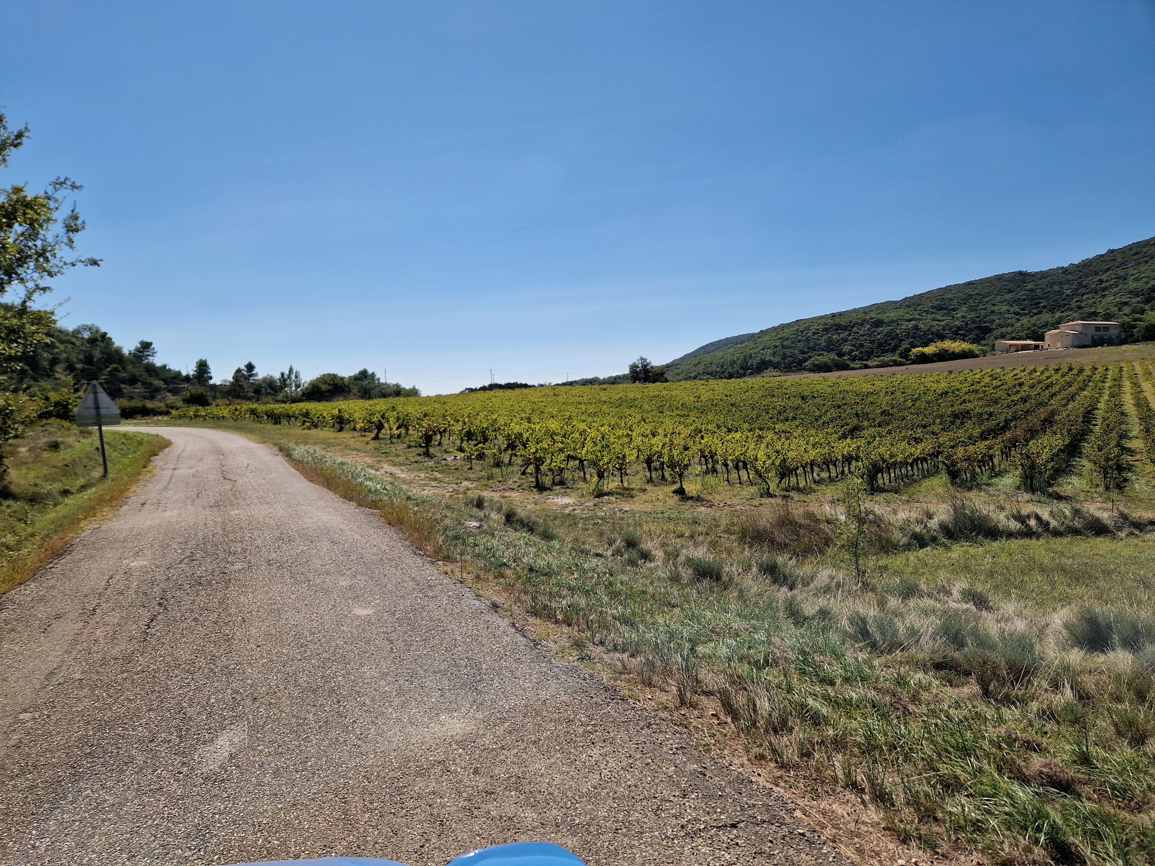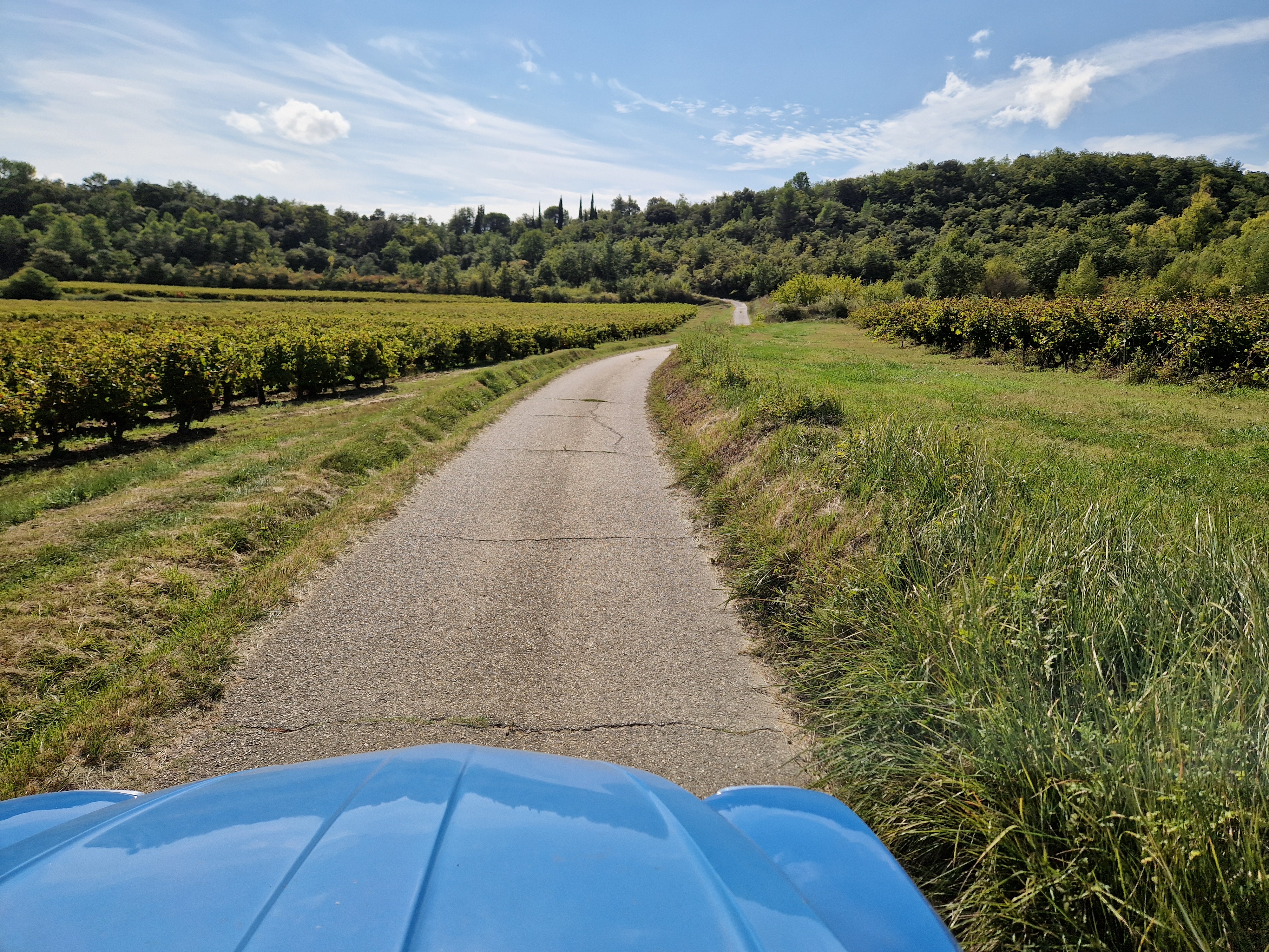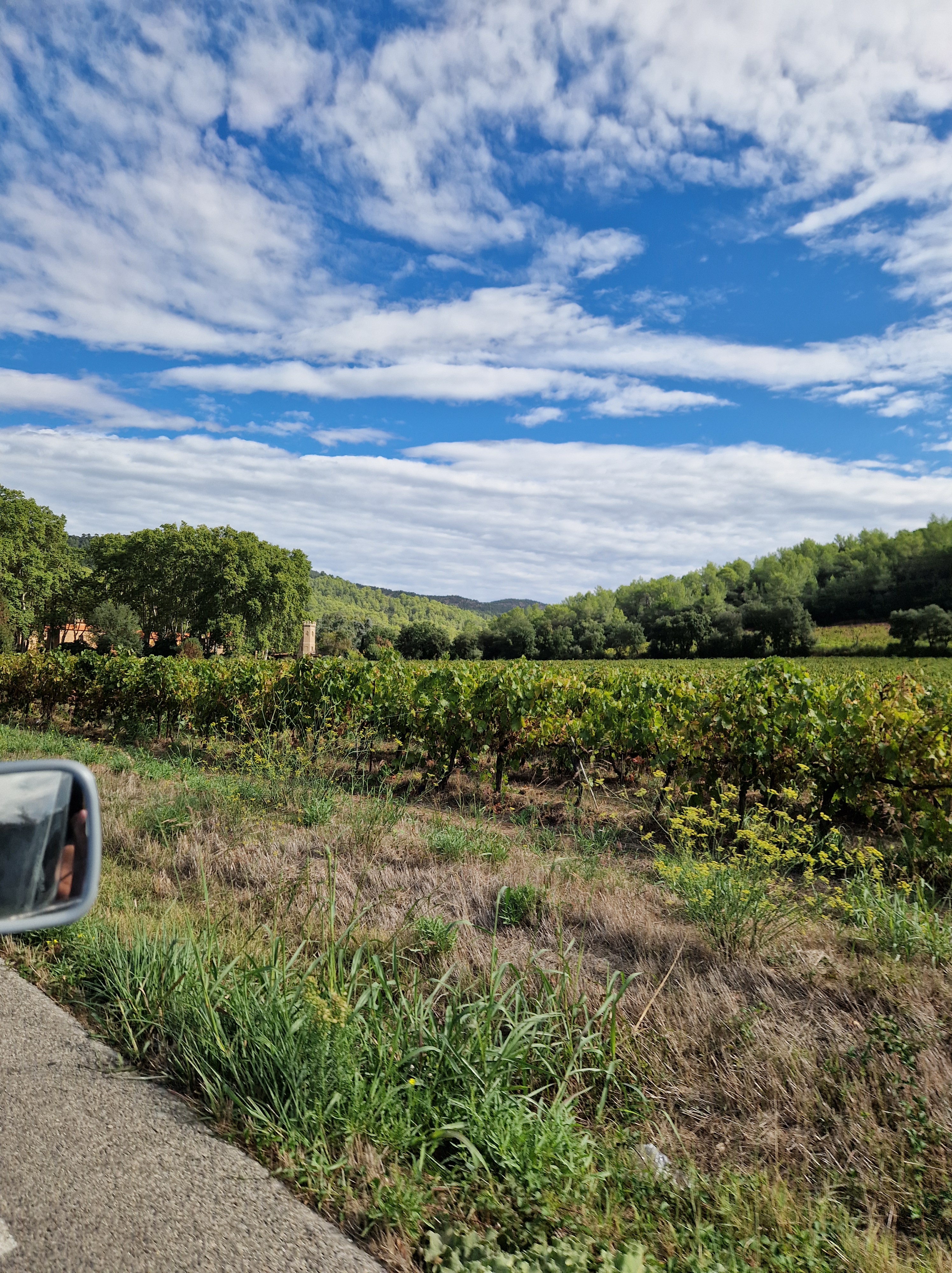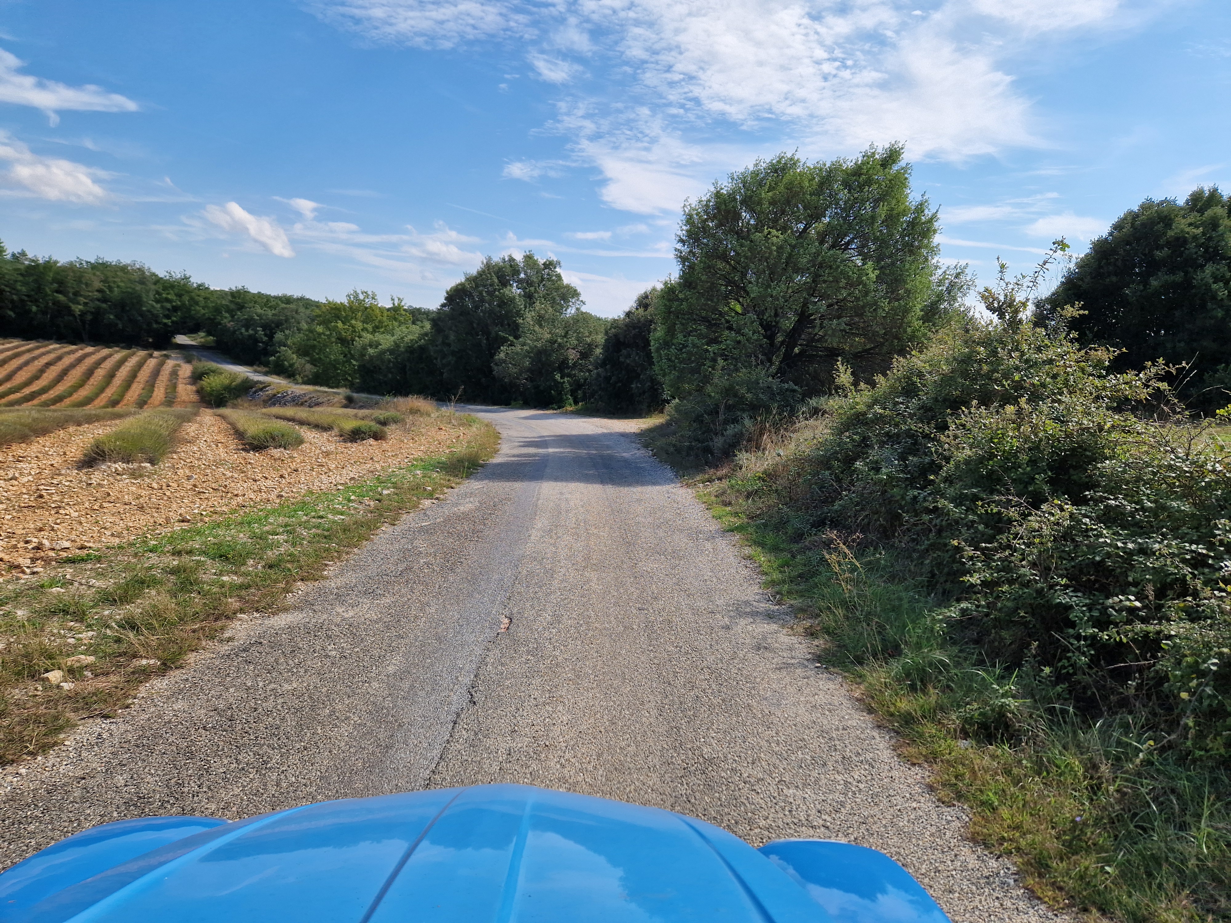 Omdat we de komende drie dagen in de auto zitten, maken we ook de laatste dag nog een ritje, langs gesnoeide lavendel- en nog niet geoogste wijnvelden om het af te leren.