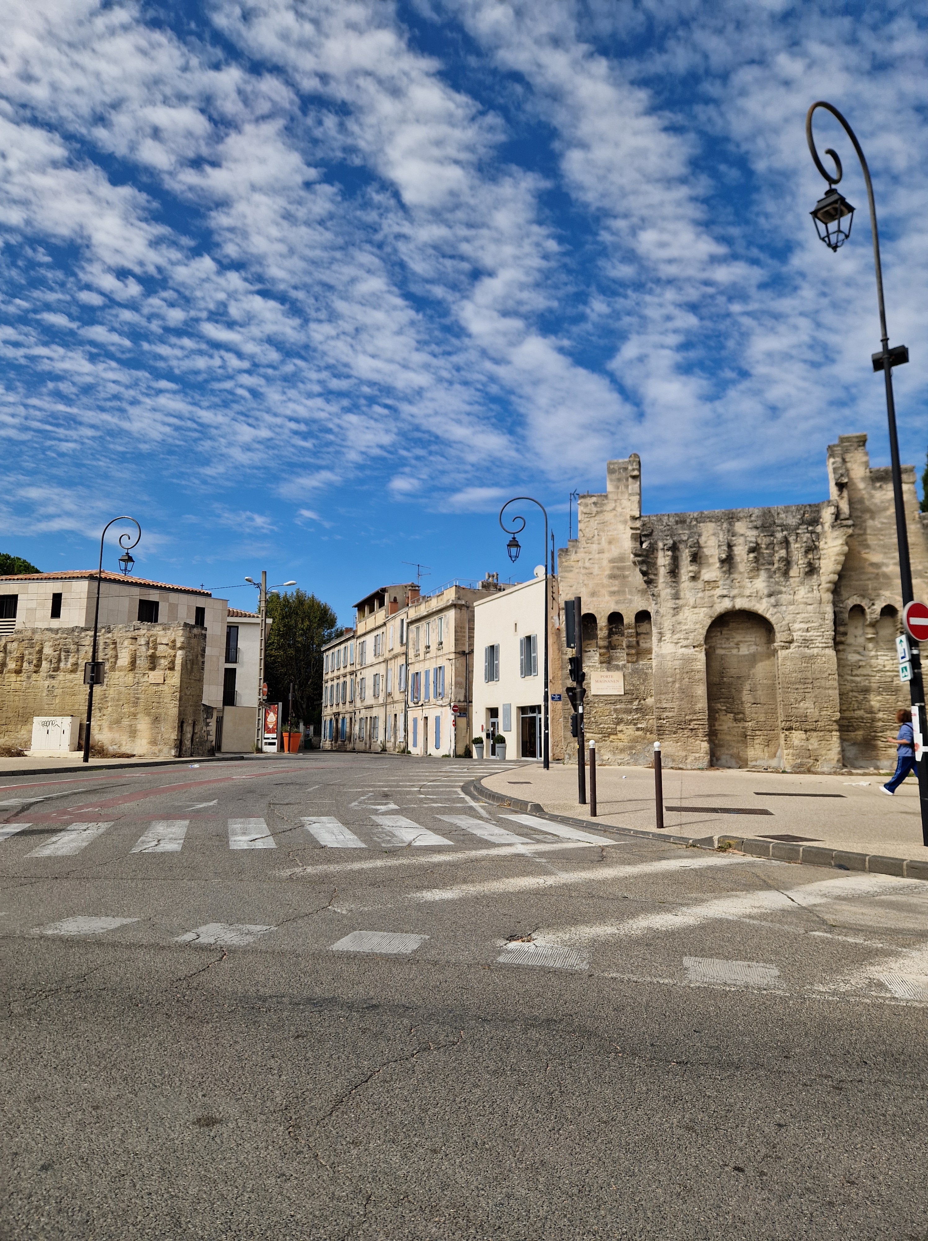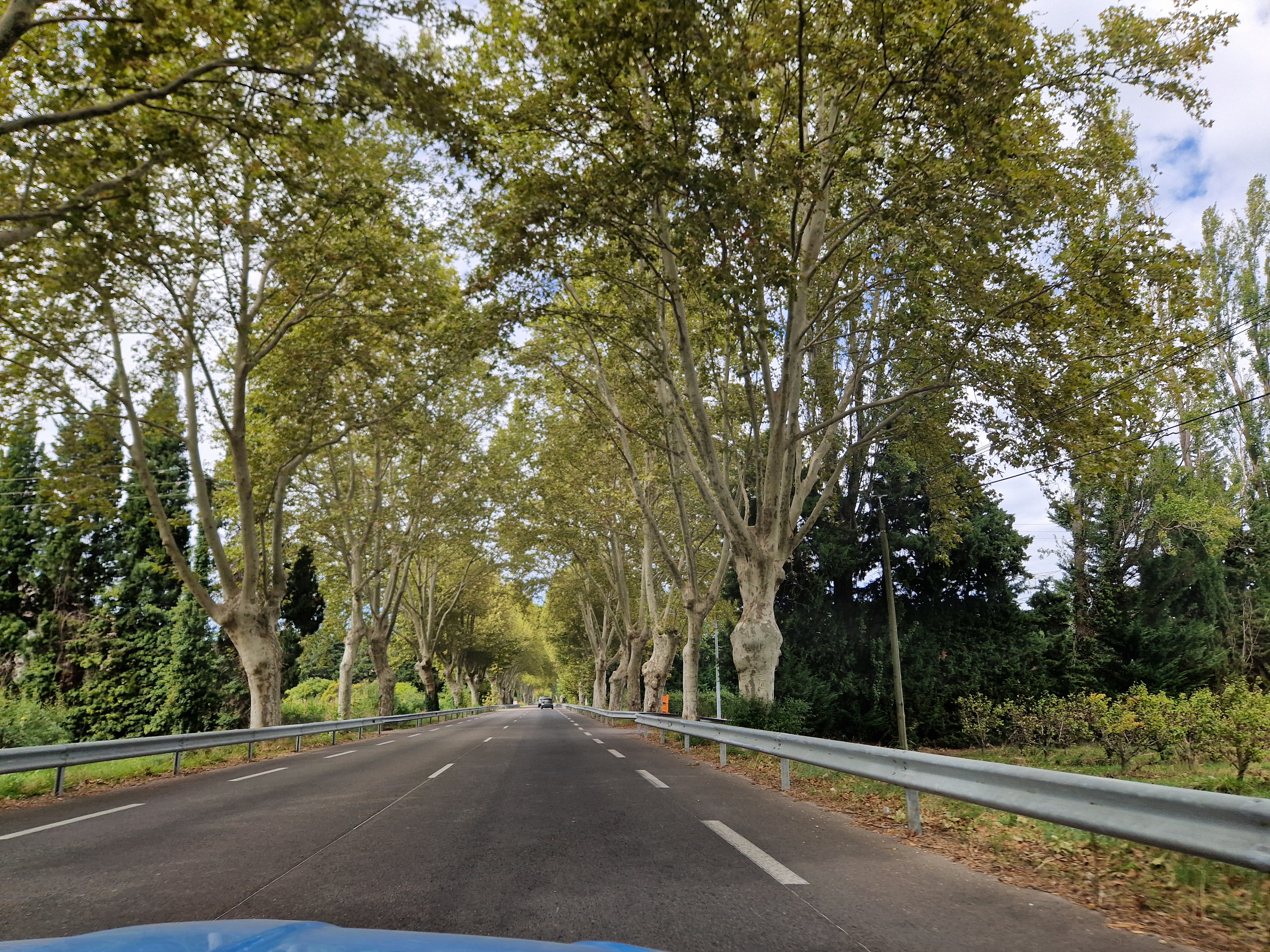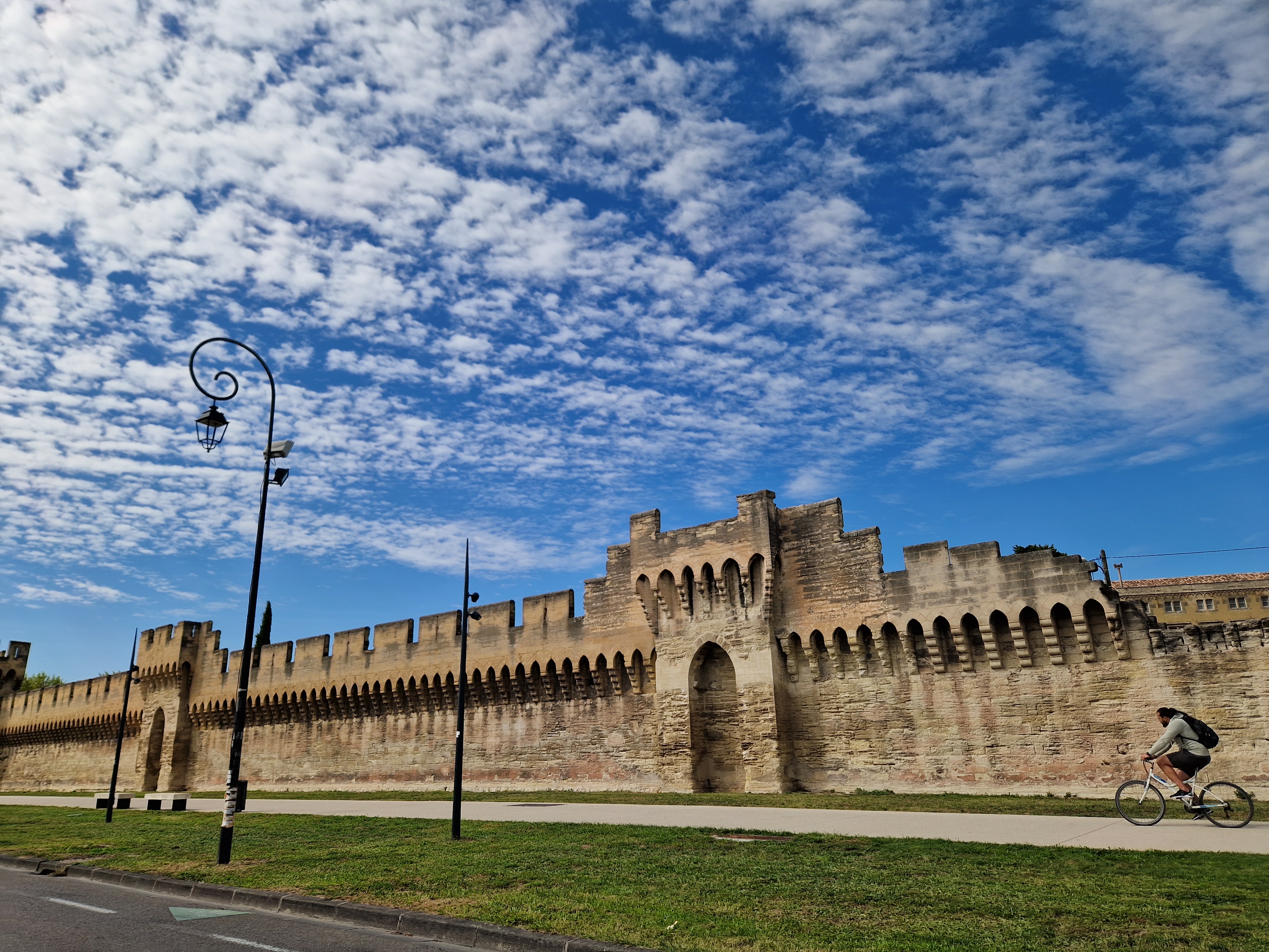De N7 gaat dwars door Avignon, langs de muren. Hartstikke mooi, ware het niet dat het ontzettend druk is en alle stoplichten verstopt raken wat mij mooi tijd geeft om hangend uit m’n raam foto’s te maken. Gijs is vooral aan het opletten.