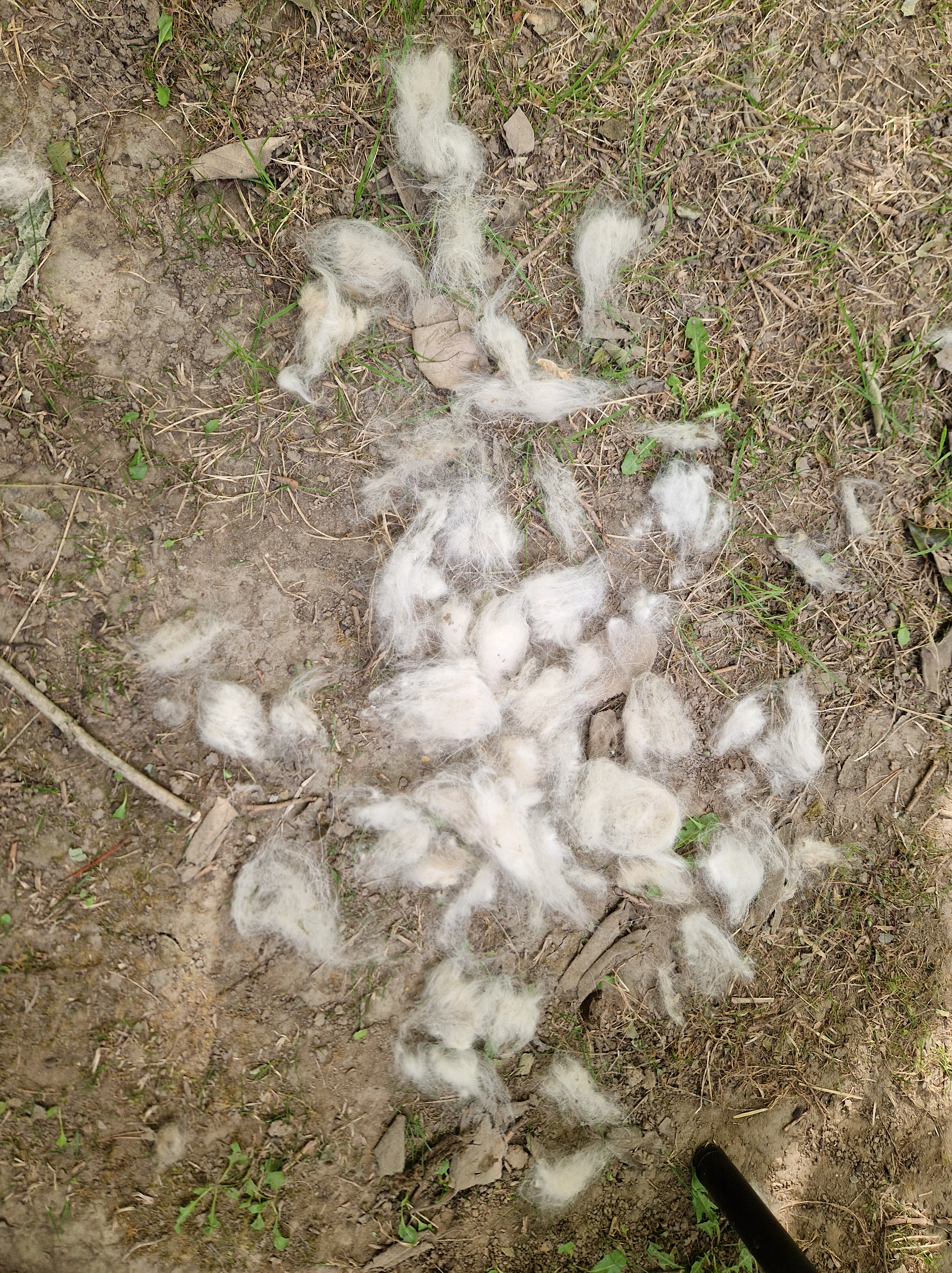 Wat is het hier ’s morgens koud! 12 graden en erg vochtig. Da’s ff wennen. Gijs’ zus en haar man plus hondje komen een bakkie halen, hier zien we elkaar vaker dan in Nederland. Na het bezoek borstel ik Ravi, allemachies wat een hoop vilt en vuil komt eraf als dat een paar dagen niet gebeurt is. Een berg klitten later een aardig resultaat… wat 2 minuten later grondig teniet is gedaan.
