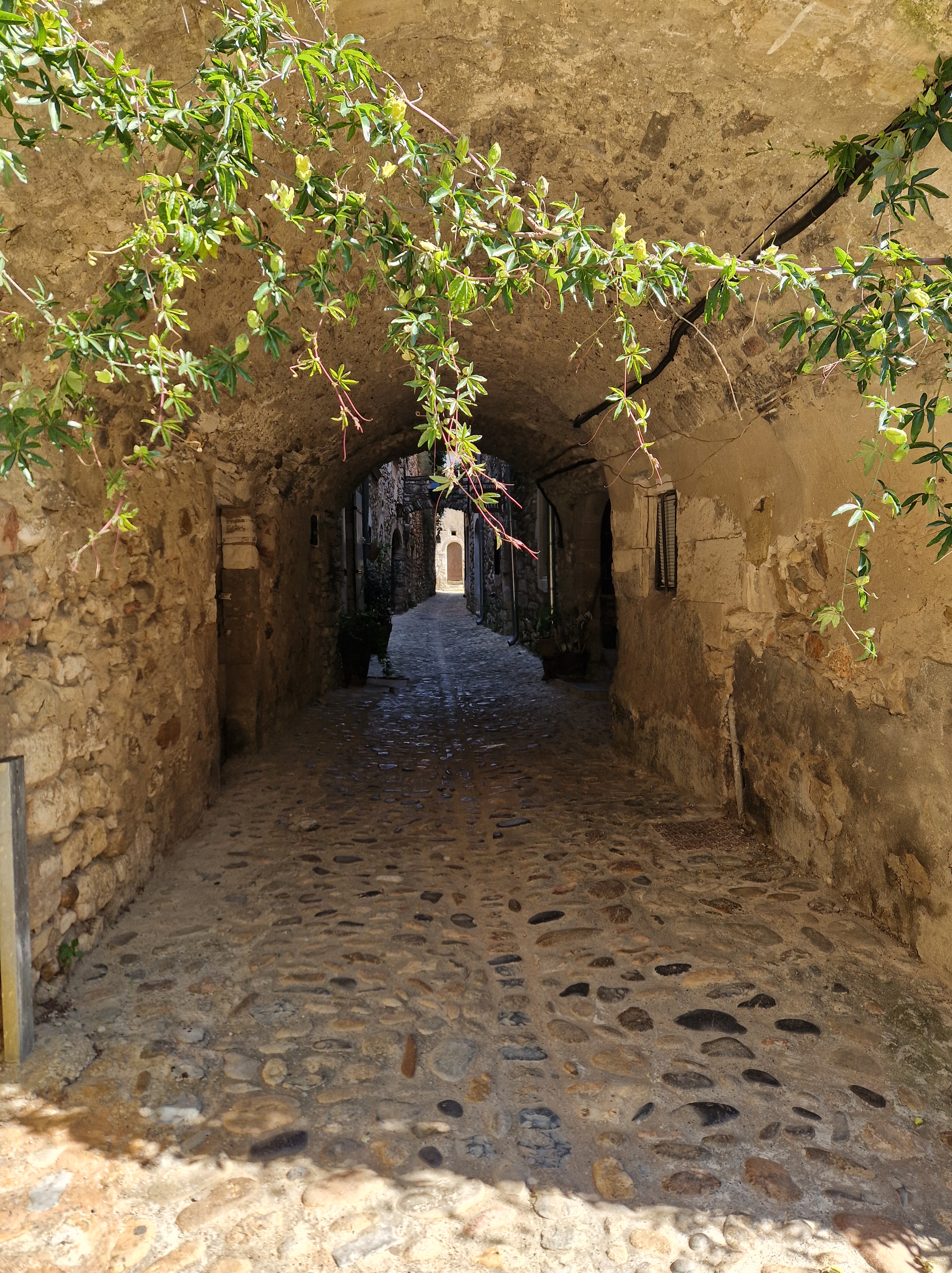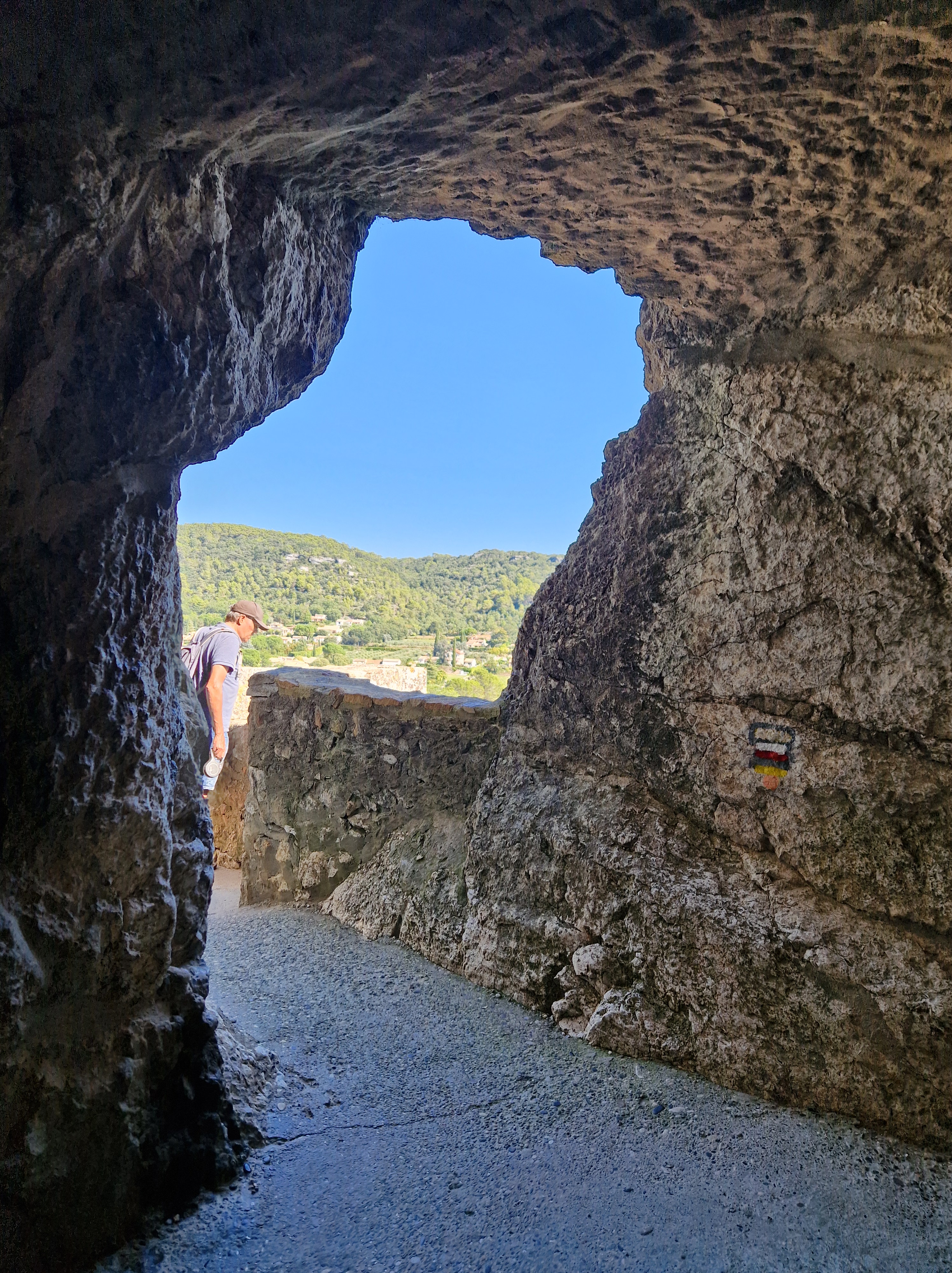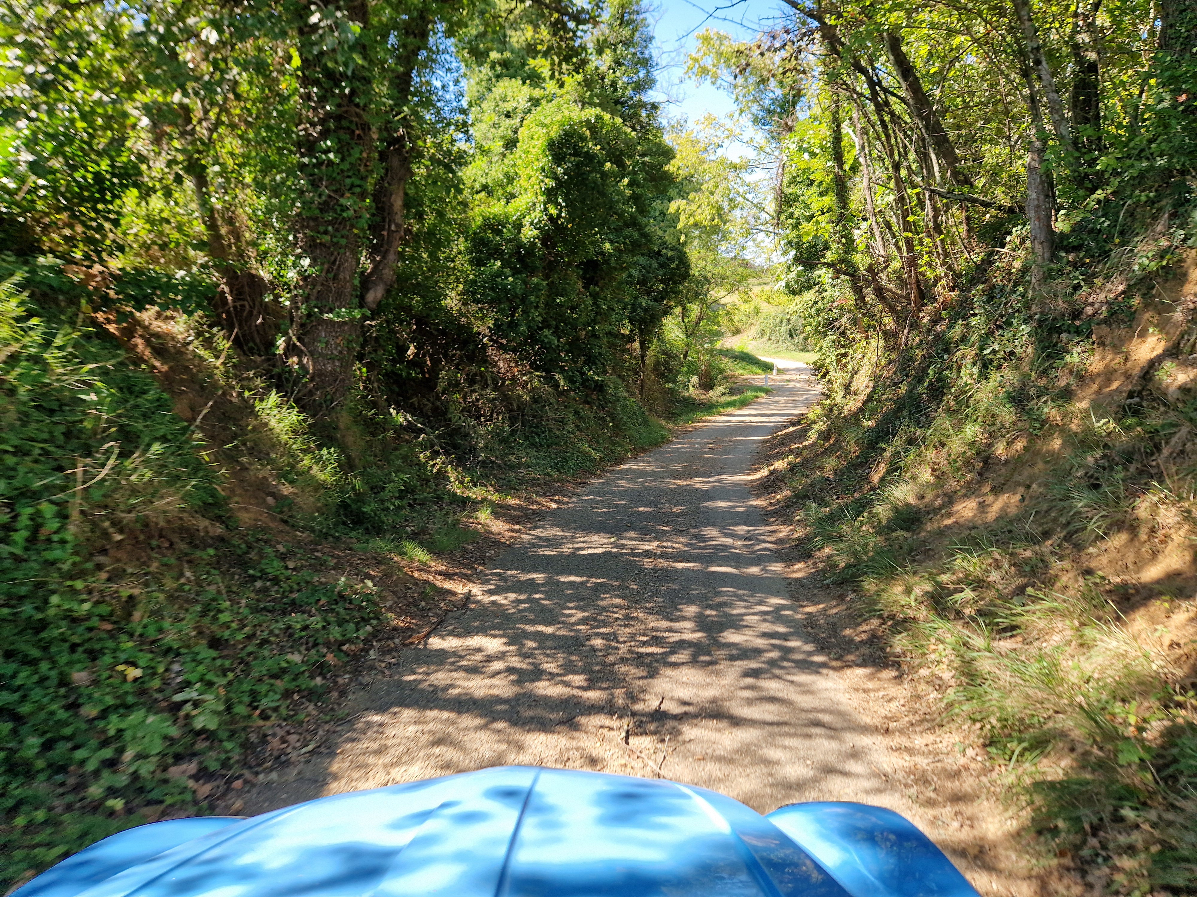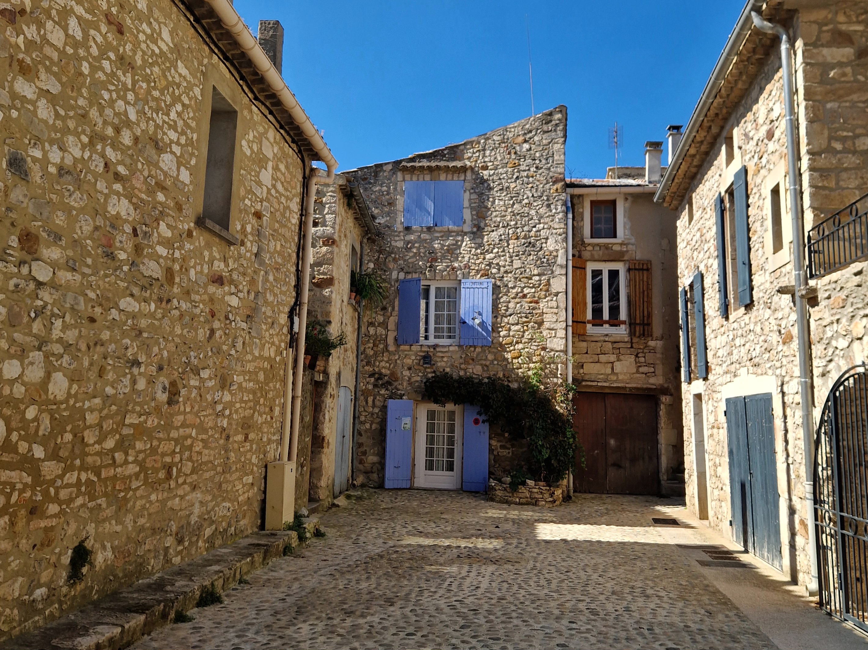 Langs de muren met zicht op de Ardèche klimmen we hoger en hoger tot we op het stadje neer kunnen kijken. Eenmaal beneden zijn we toe aan koffie, met een stukje Fondant aux Marrons, fait maison. Crimineel, wat een stuk. Zelfs met zijn tweeën krijgen we ‘m amper op. Lunchen hoeft niet meer. Tandenpoetsen wel, voor zover er nog glazuur op onze tanden zit. We lopen een ander klein rondje door de straatjes om de kastanjes te laten zakken voordat we een kronkelroute terug uitzetten via St.-Christol-de-Rodières. Lekker slingeren over een soort fietspad waar we gelukkig geen tegenliggers tegenkomen. Dit is leuk, dit is vakantie. Zo hoort het.