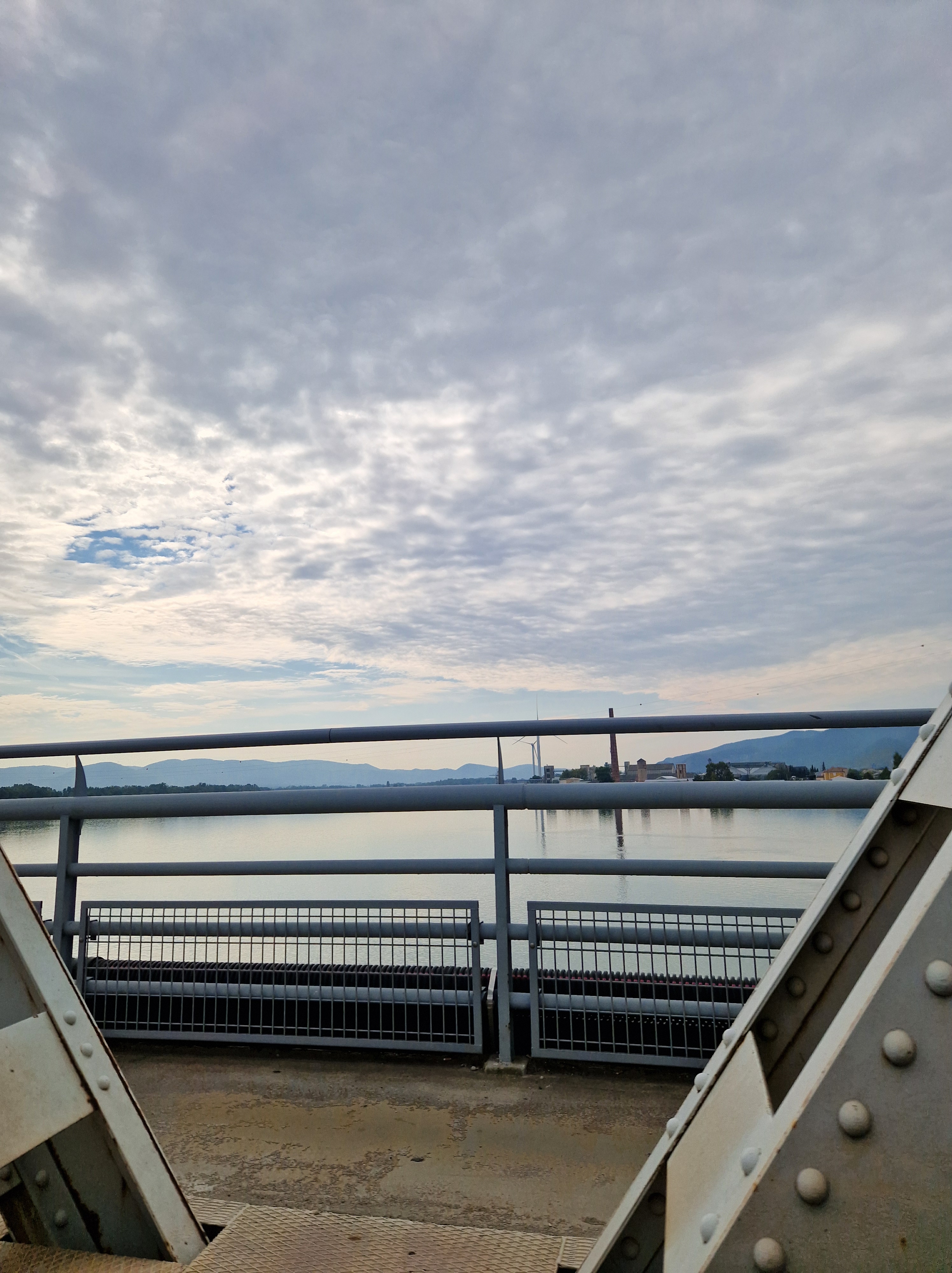 Daar verschijnt ook eindelijk wat zon. Mysterieus zijn die bergen van Parc Naturel Réginal du Vercors in schaduwnevels. De Vercors, weten we, is donkergroen noten- en natuurgebied, al dat fraais blijft echter rechts van ons liggen. We passeren Viviers (vierkante kerktoren), Rochemaure (burchtstadje) en bij Pouzin steken we onverwacht weer de Rhône over.