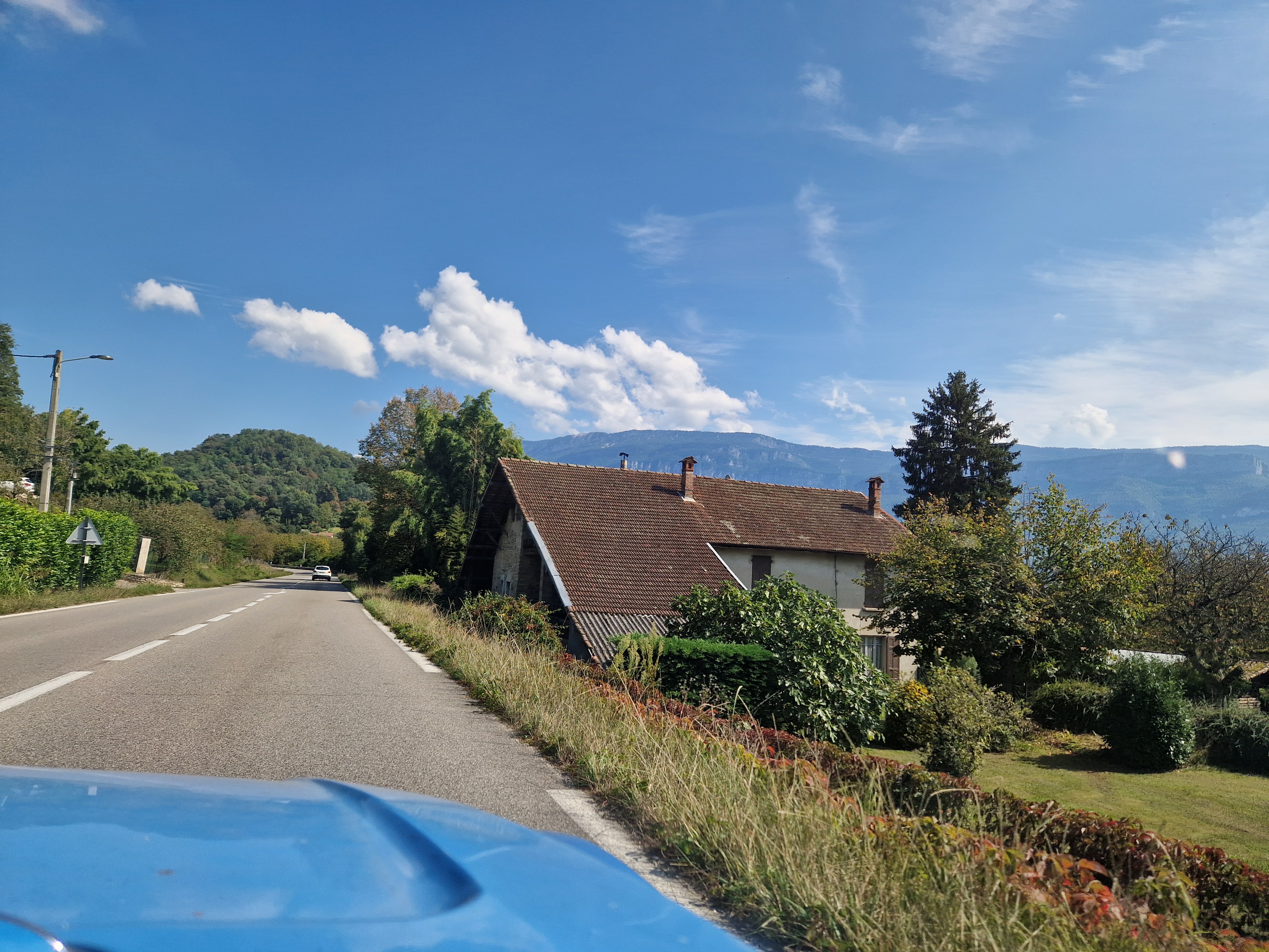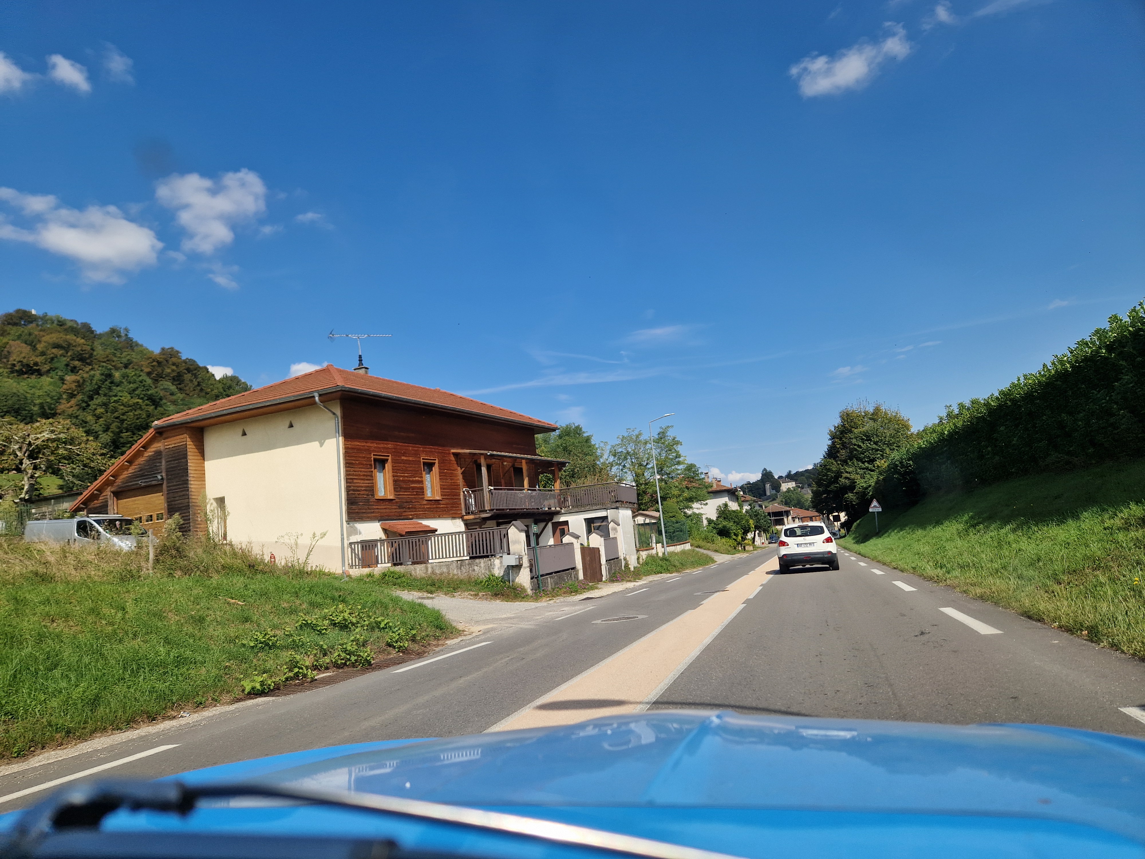 De lucht trekt verder open en wordt het uitzicht gaandeweg Zwitseriger, heuvelachtiger en authentieker naarmate we de Vercors naderen. Komen we ineens toch langs de notenkwekerijen. We huppelen steeds van durp naar durp, slierend over de rotondes en in zijn 2 lange hellingen van 10% op. Vergezichten, kerktorentjes zoals de spitse van Voiron en locals die omkijken als ze ons gepruttel horen. Forten en kastelen, al dan niet tot ruïne vervallen lijken lukraak in het landschap gepoot. We lunchen in het zonnetje, nog een uurtje te gaan.