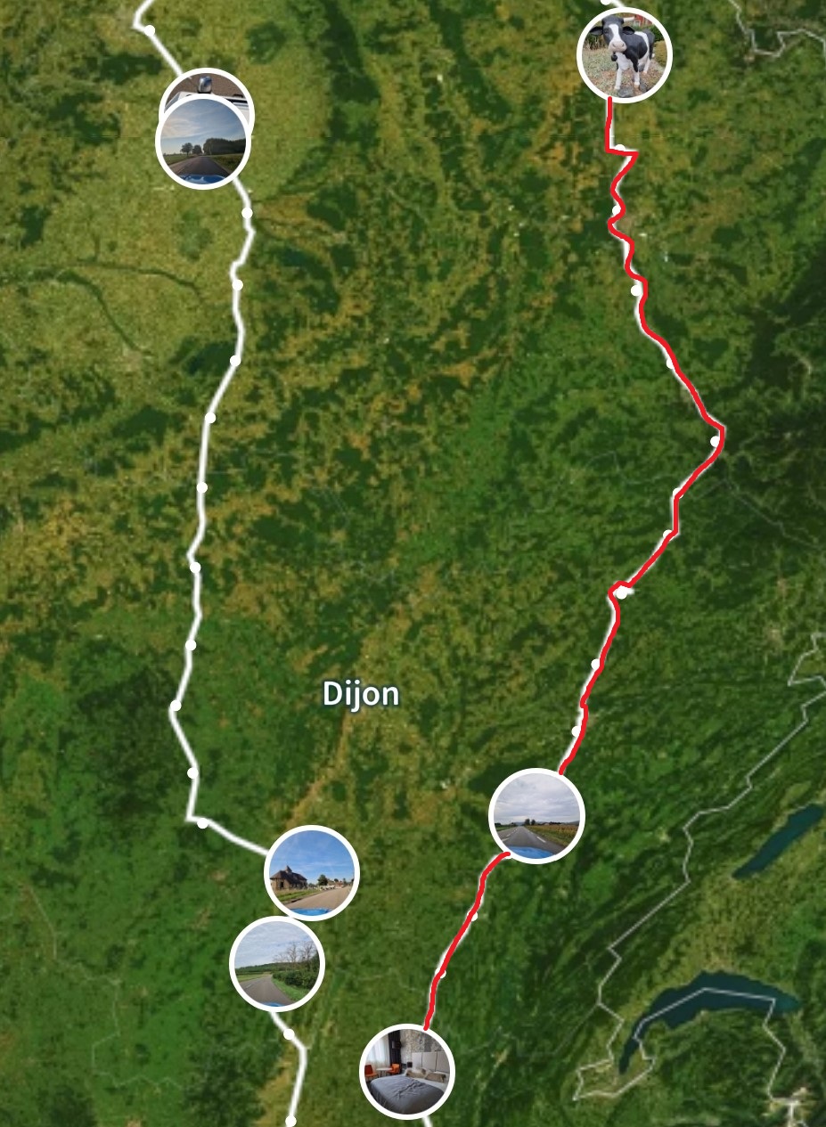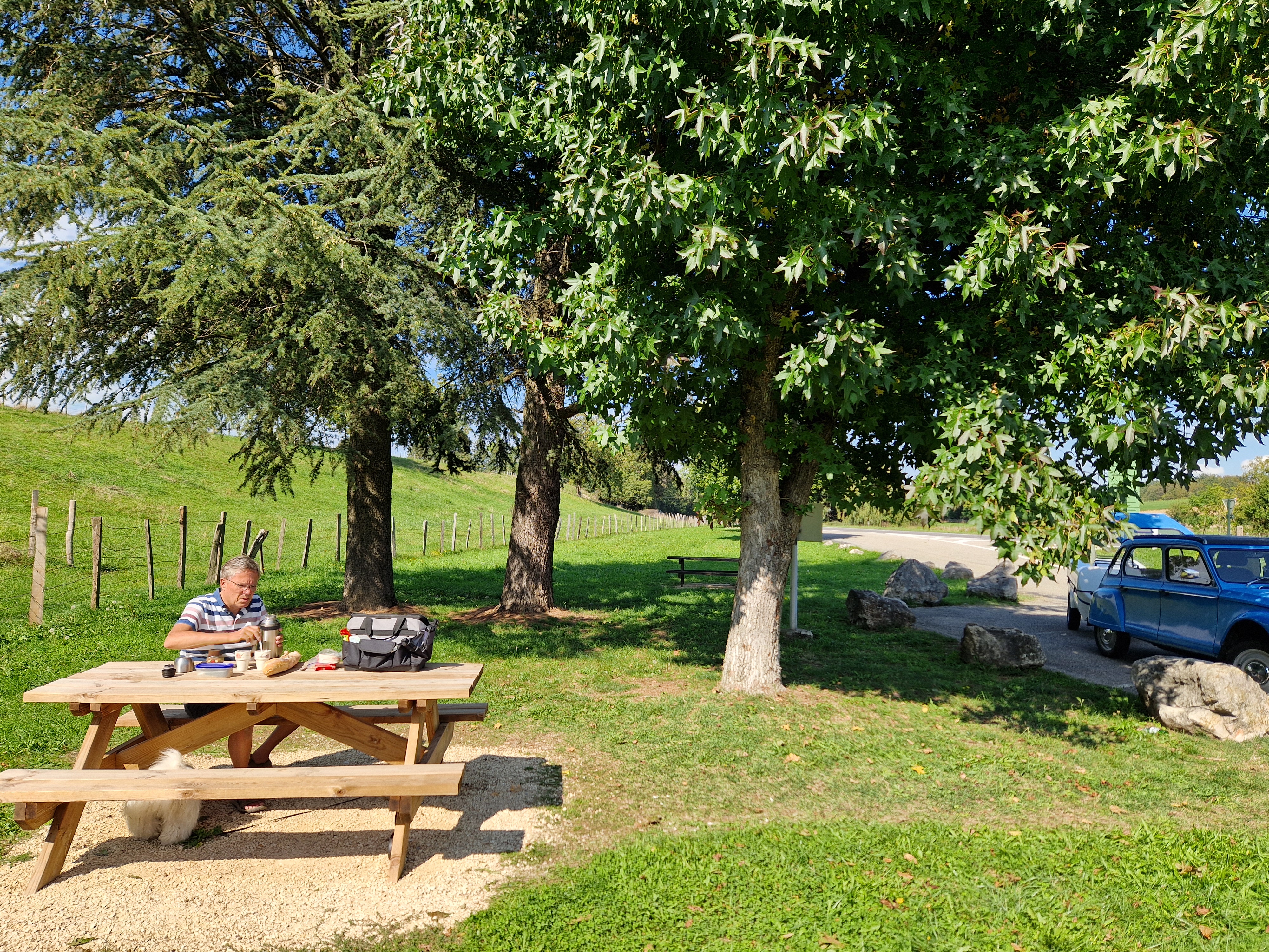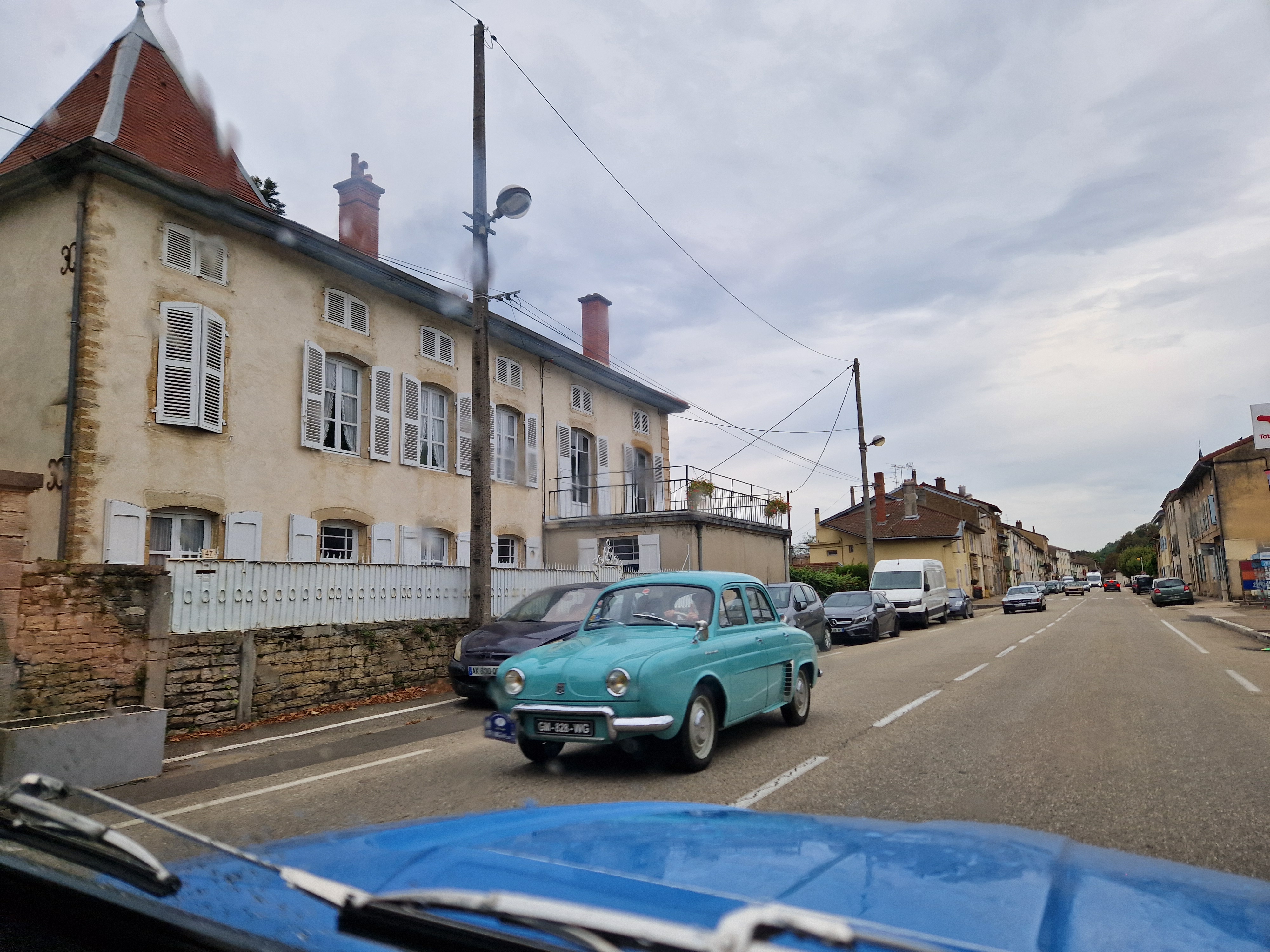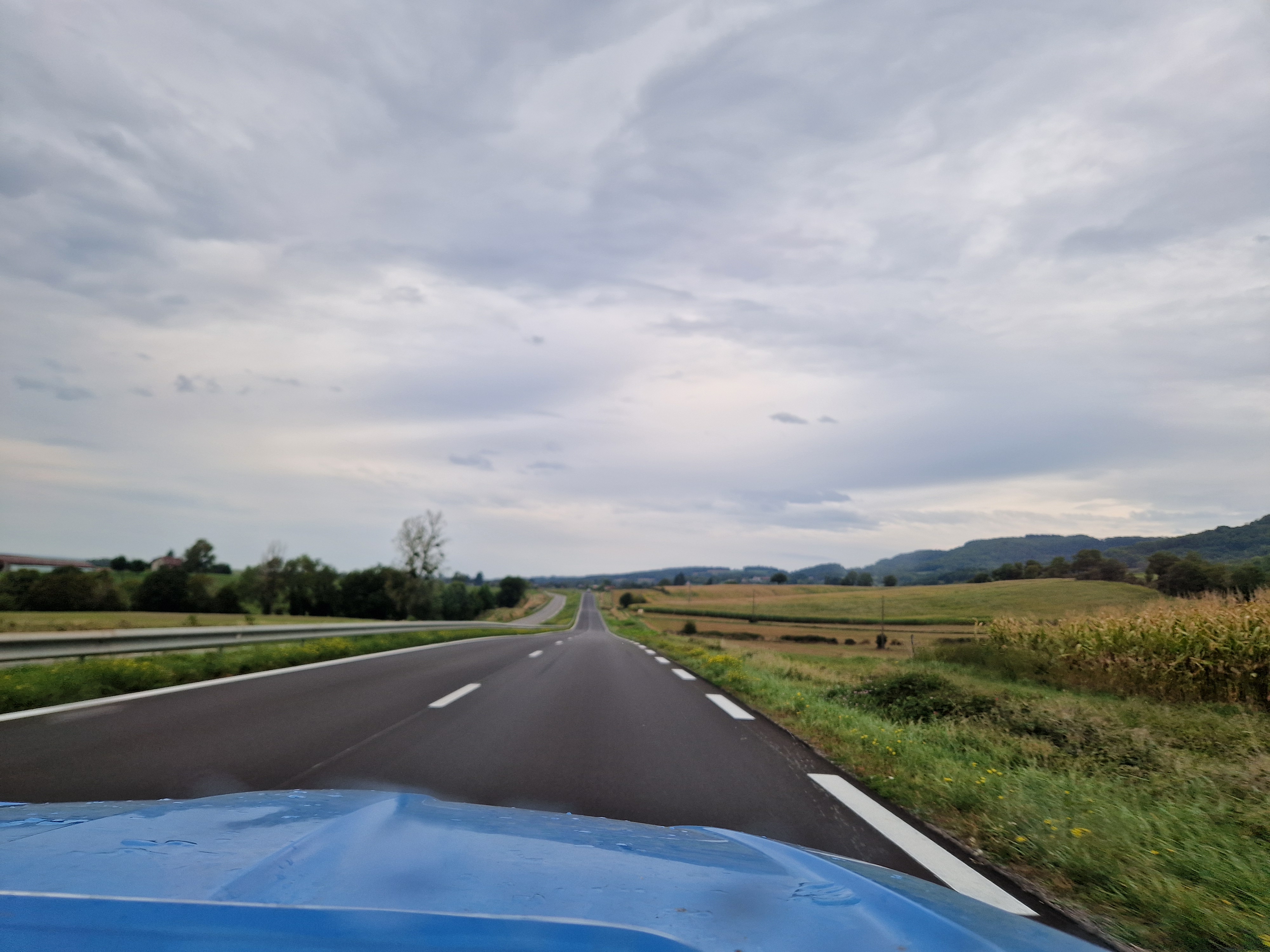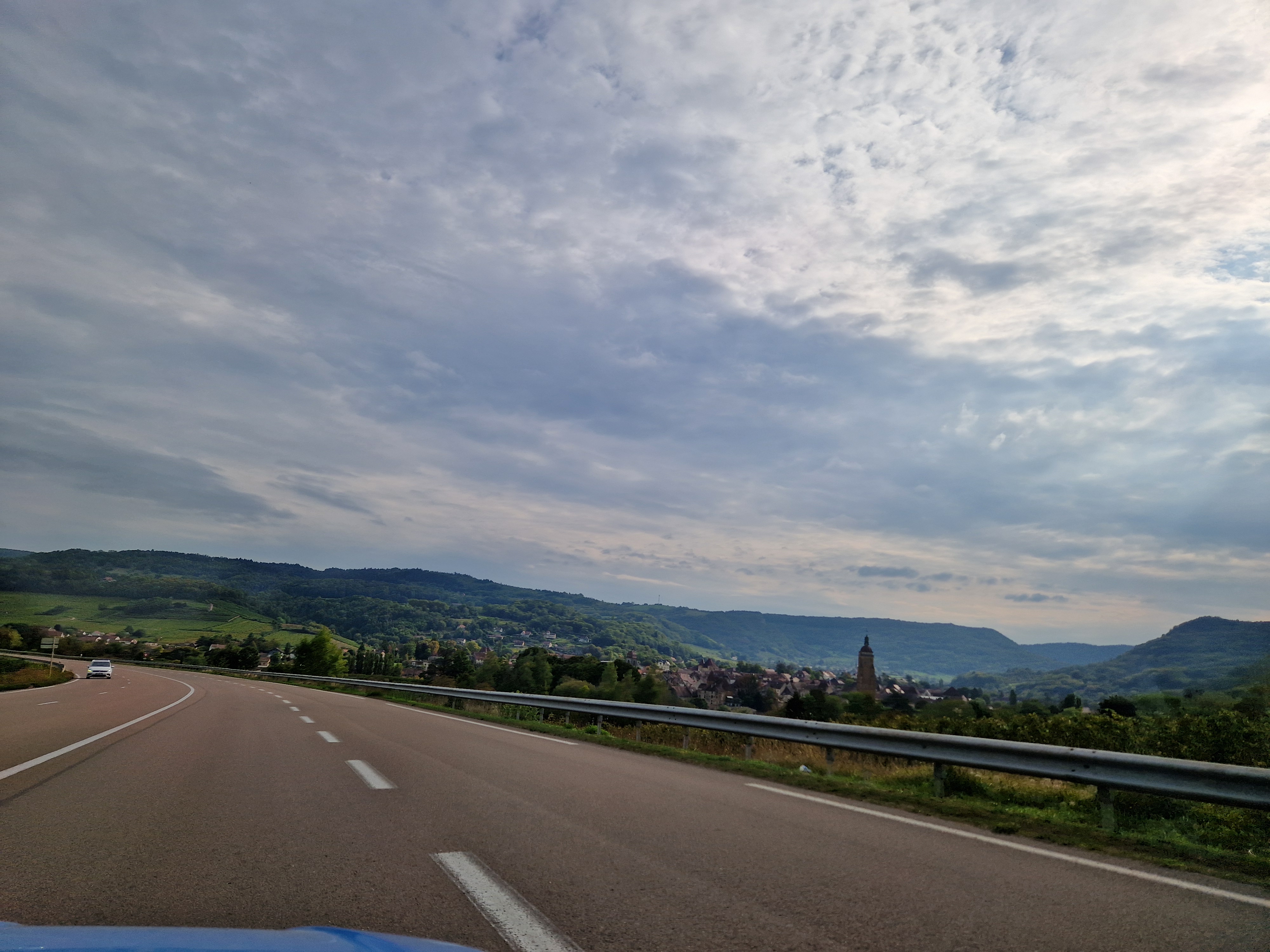 We golven door de Jura, bekend om zijn AOC wijnen. Ik zie alleen de vignobletjes op de rotondes, slechts heel in de verte gloort iets wat een wijngaard zou kunnen zijn. We zitten op de Bis-route naar Nancy, zeer geliefd bij campers en caravanners. Echt een aanrader. Het is zondag, op die enkele walvis na is het erg rustig.