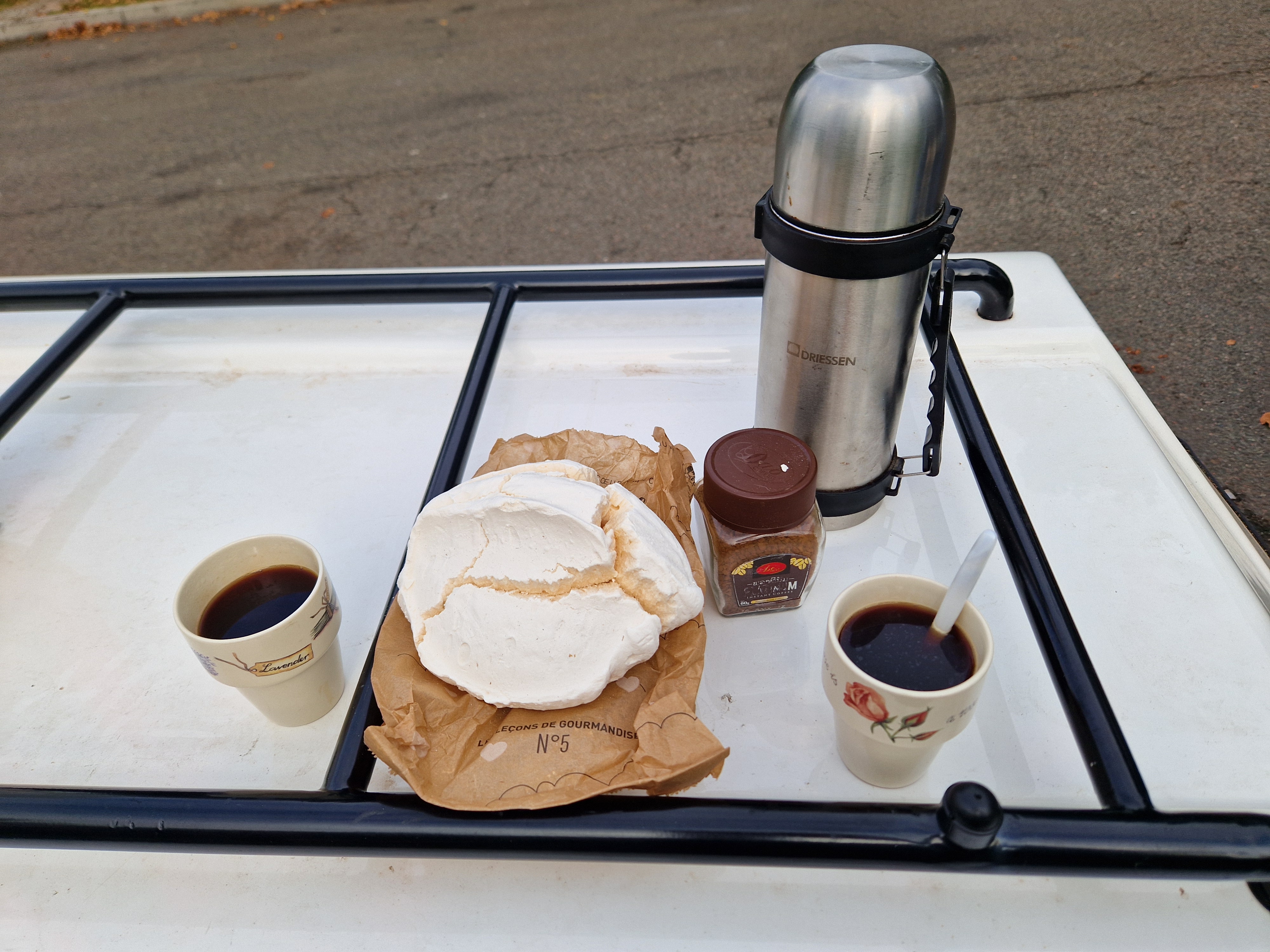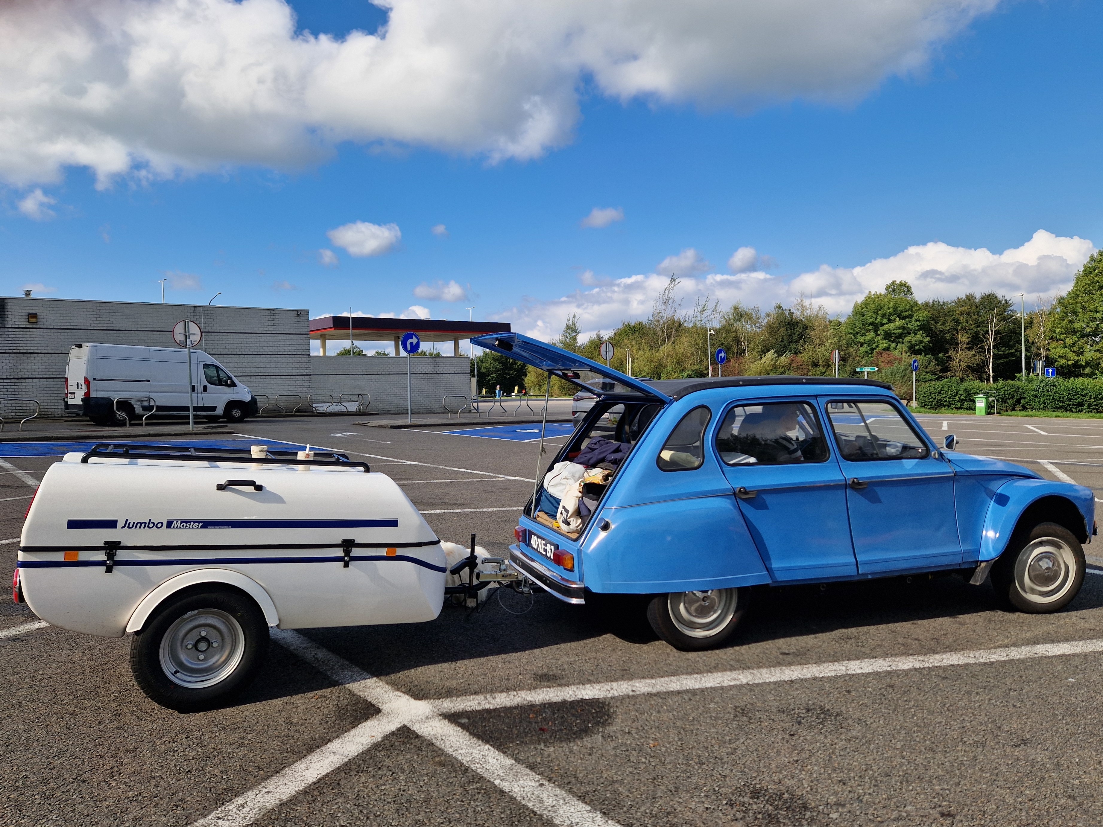 We maken ons op voor het laatste hortje naar huis. We gaan het zien hoe het vandaag loopt. In elk geval laten we Luxemburg links liggen, rijden via Arlon wat een prima weg is. Vlak voor Luik bij Sprimont eindelijk koffietijd, bokkoud met een blauwe lucht.