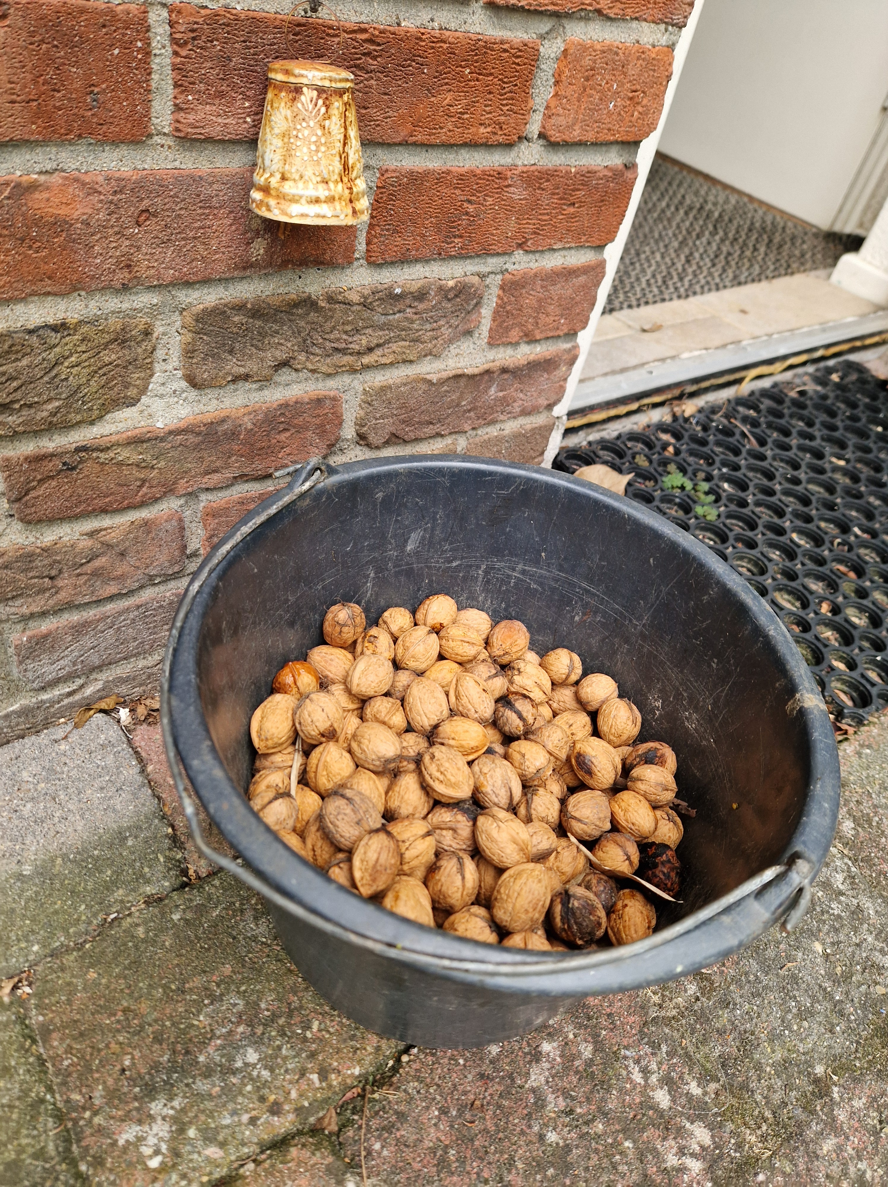Half vijf zijn we thuis. Het autogeraas uit de oren, met een drankje rust in de tuin, Ravi onder zijn tafel met een knaagje. Gijs raapt driekwart emmer noten in 10 minuten tijd. Herfst in Holland en nog steeds… buiten!