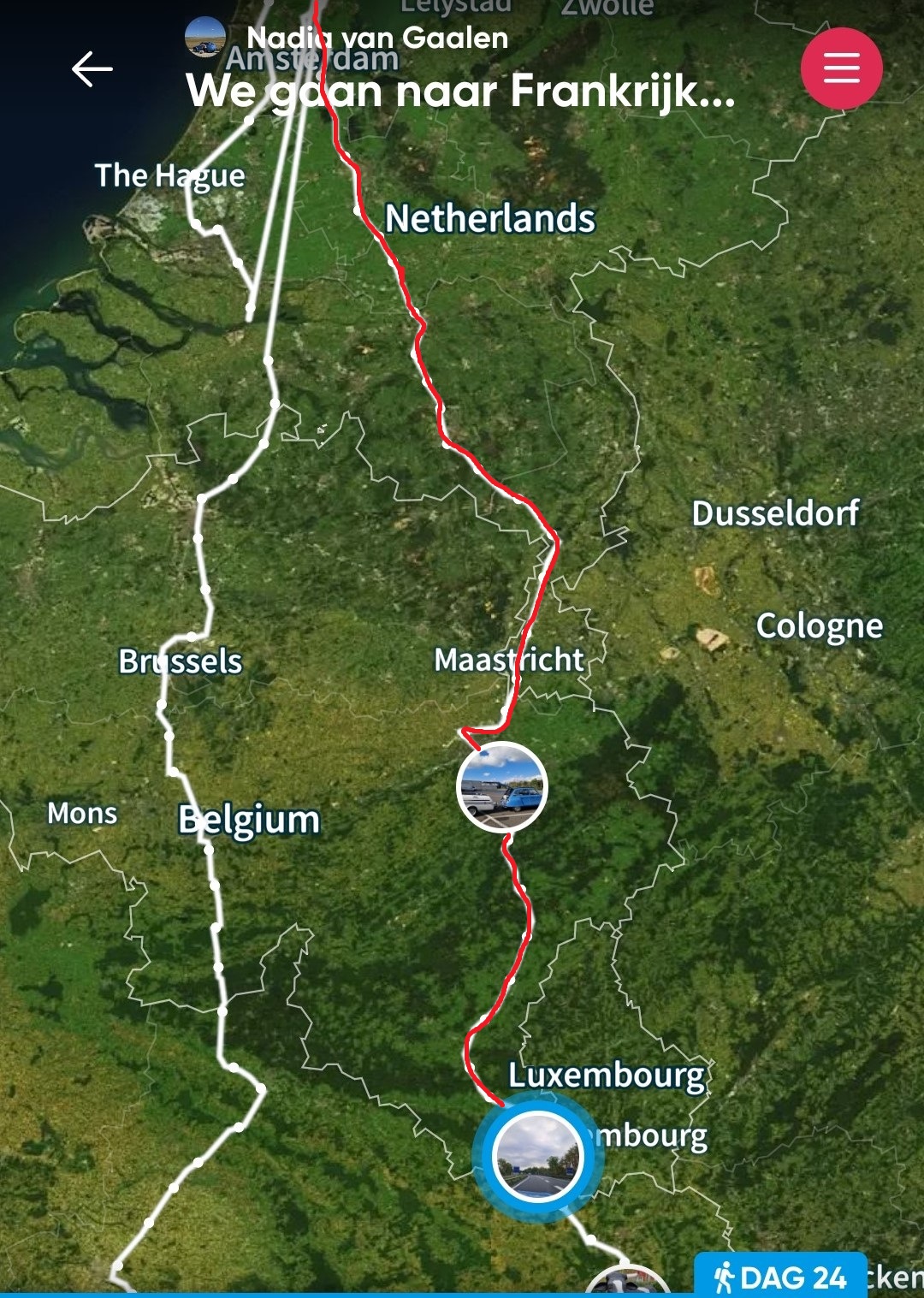 Bij Luik volgen we de borden E25 Maastricht, wat Tom en Goog ook zeggen. Twee tunnels, je mag er maar 50 maar het sukkelt wel lekker. Na Luik kunnen we de gewone route Maastricht-Eindhoven-Utrecht-Amsterdam volgen, wat een verademing is in vergelijking met de heenreis.