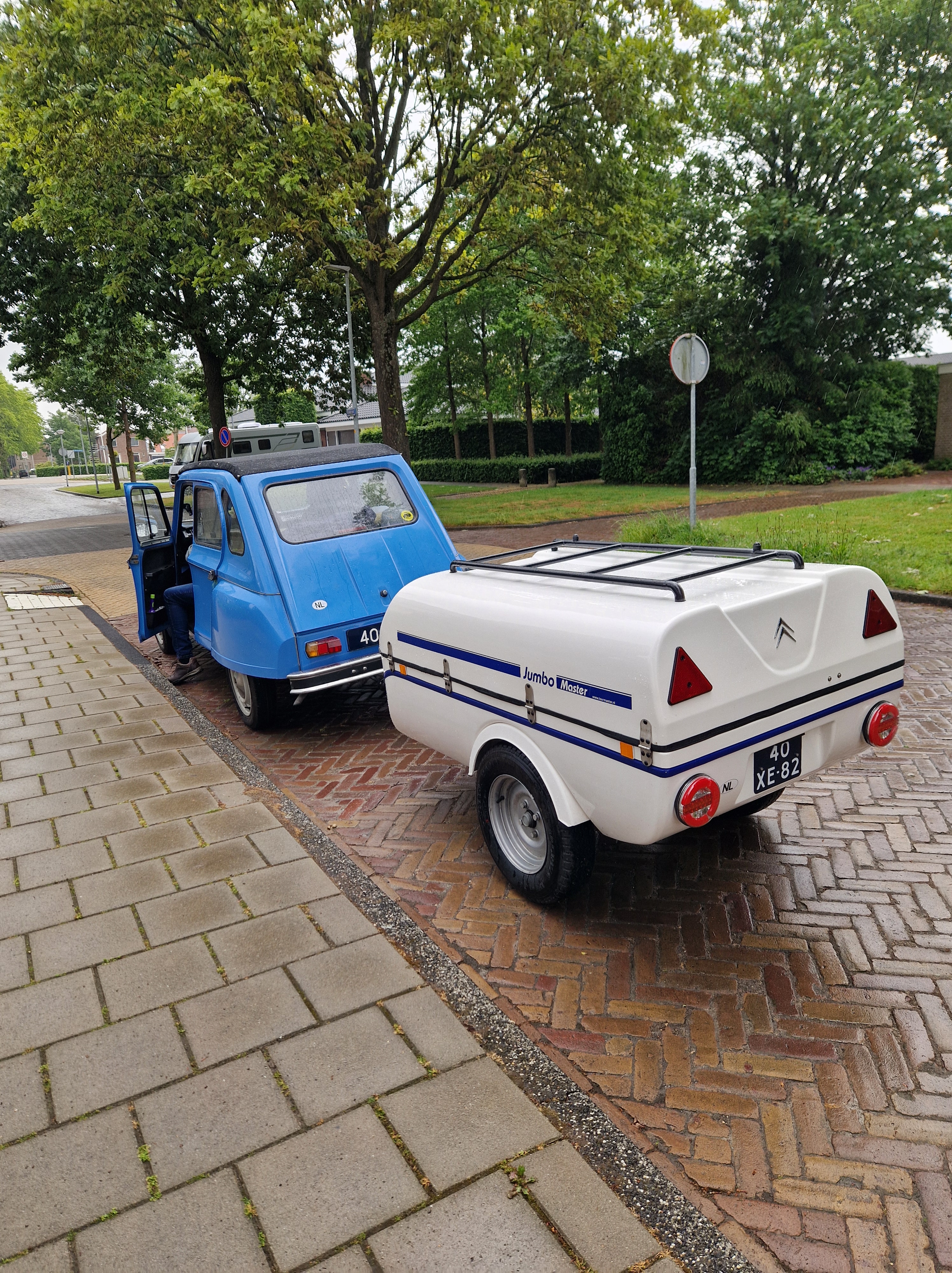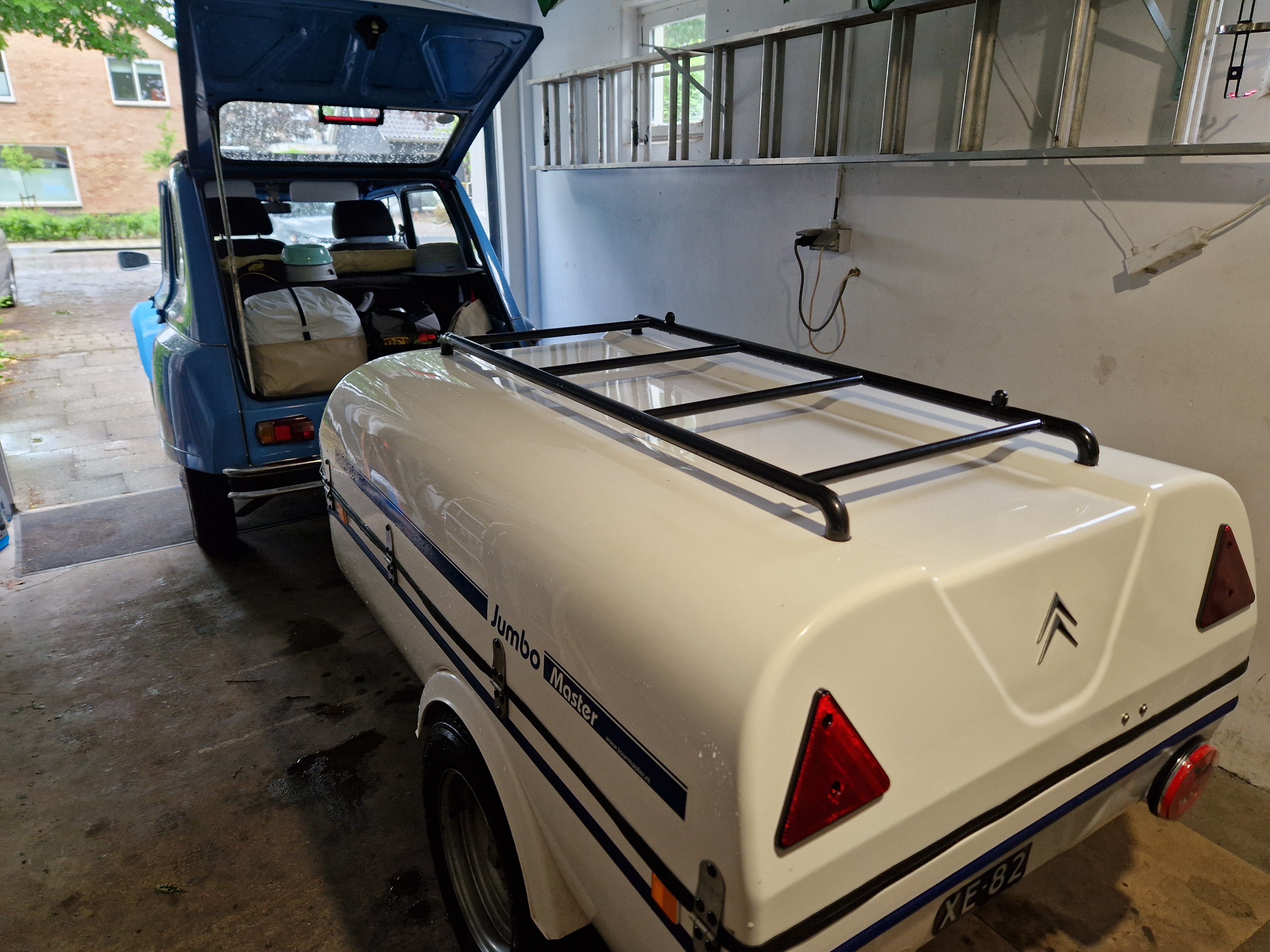Het komt deze Hemelvaartochtend met bakken uit de hemel. Noodgedwongen pakken we de kar en de kofferbak van de Dyane in de garage in.