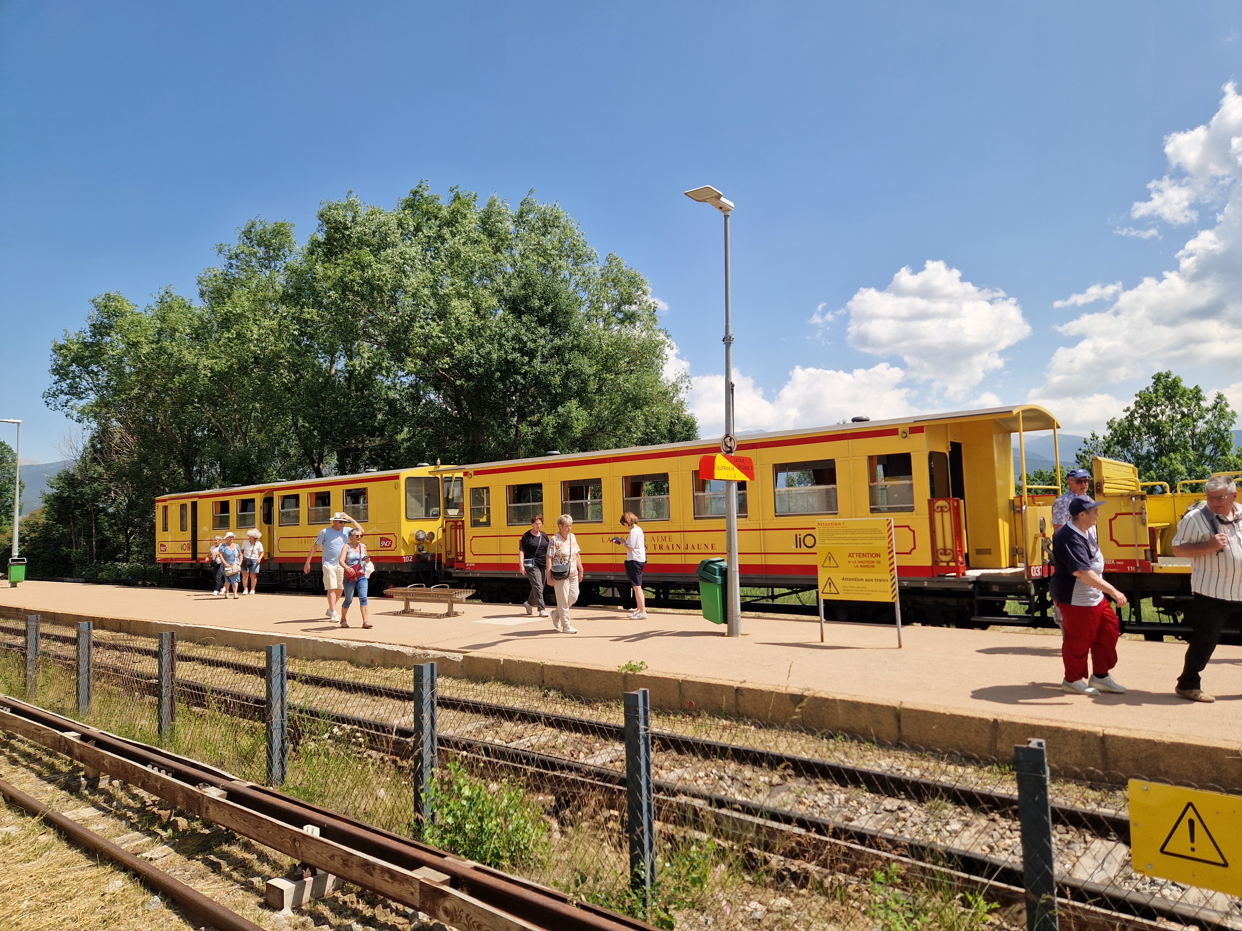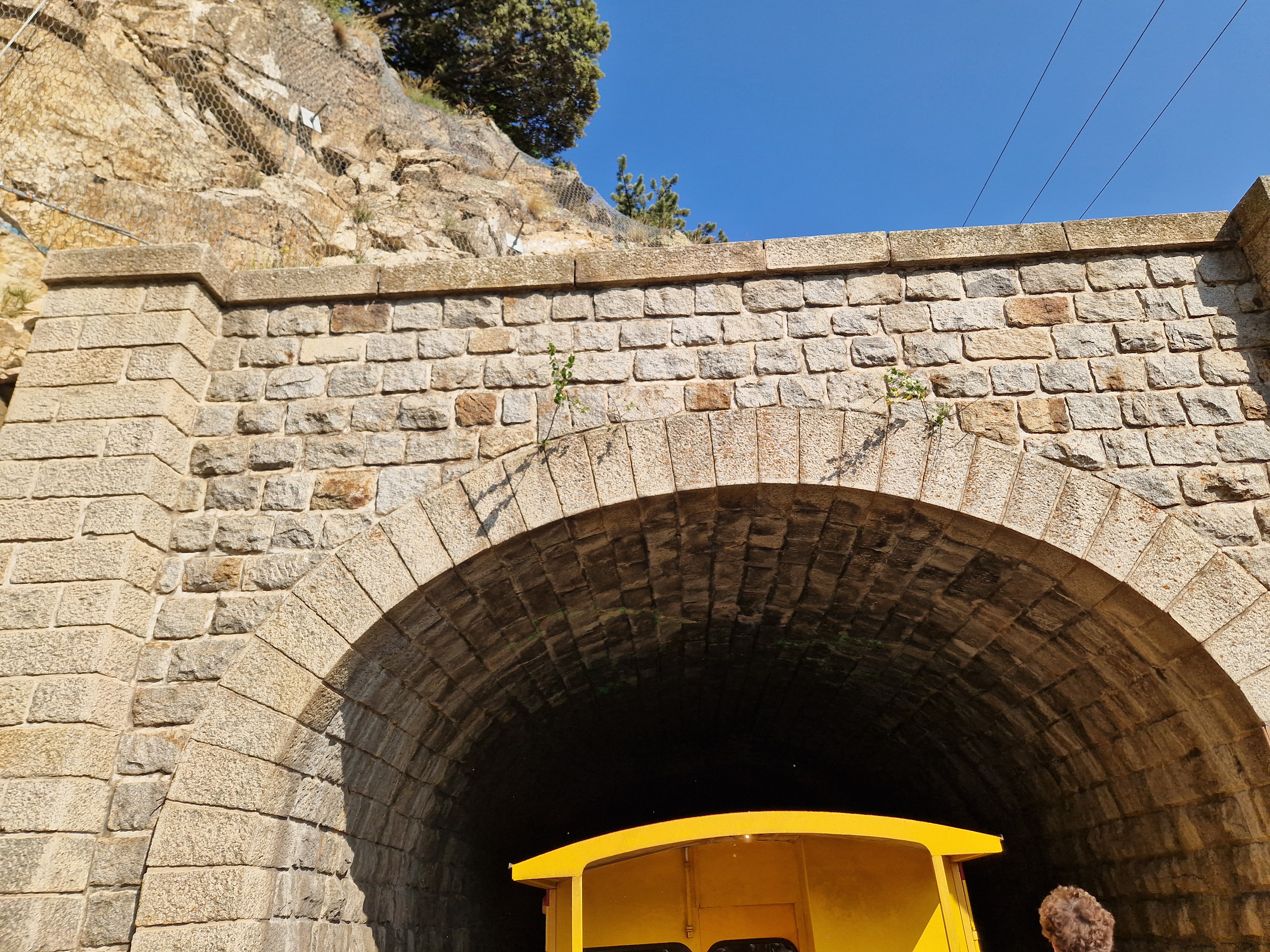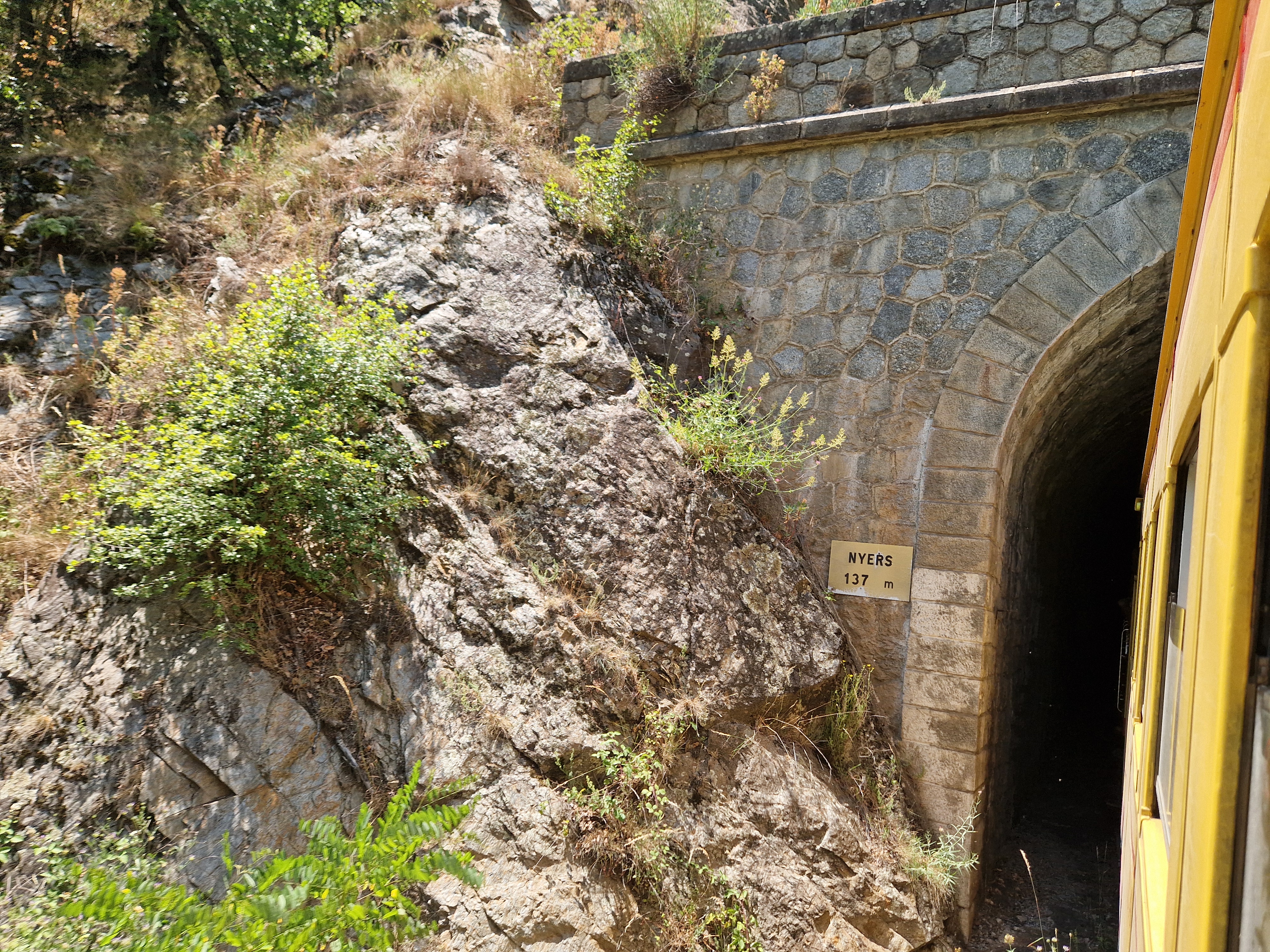 De heenrit zitten we binnen. De trein zit vol Fransen, wij zijn de enige buitenlanders. Tunnels en bruggen worden door een jongetje dat met Papy et Mamie op pad is en met zijn hoofd uit het raam hangt, luidkeels aangekondigd. “Tunnèl, tunnèl! Pont! Pont!” Zijn guitig smoeltje met roetvegen op de wangen glundert van pret. Op onmogelijk kleine stationnetjes stoppen we af en toe om een tegemoetkomende boemel te laten passeren.